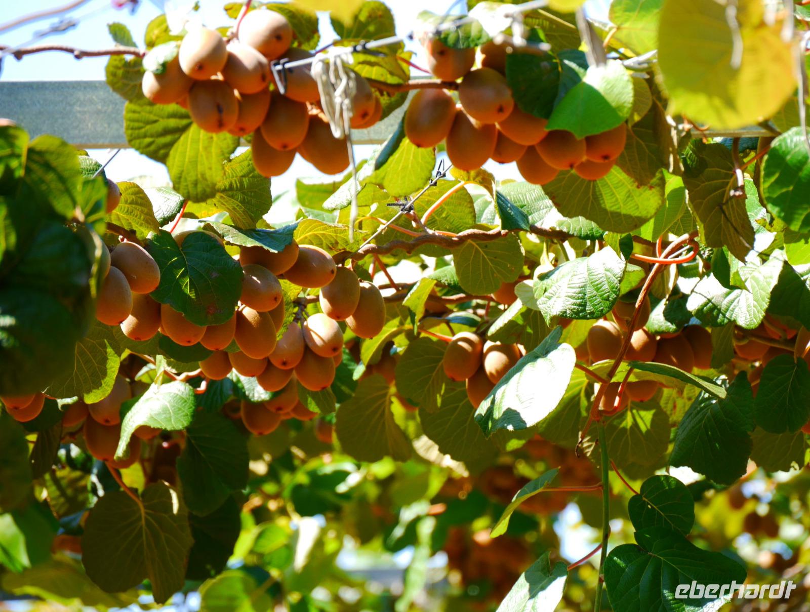 Bye bye Coromandel und auf nach Rotorua. Mit Zwischenstopp an der großen Tagebau-Goldmine in Waihi geht es direkt in das geothermale Zentrum der Nordinsel. Dabei streifen wir noch die Bay of Plenty - der fruchtbare Landstrich ist vor allem für den Anbau der Kiwi bekannt. „Kiwi" hat in Neuseeland ja dreierlei Bedeutung: zum einen die leckere Kiwi-Frucht, zum anderen den flugunfähigen putzigen Vogel, der sich zum Nationalvogel des Landes gemausert hat und last but not least bezeichnen sich die Neuseeländer selbst als Kiwis.
