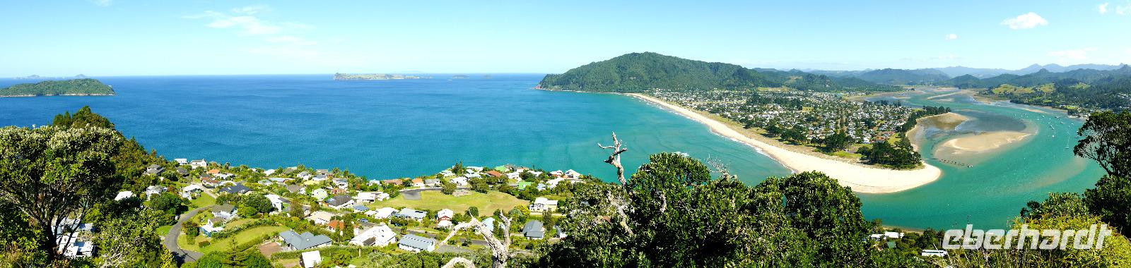 Heute ist einer der wenigen längeren Fahrttage der Reise. Wir verlassen die Bay of Islands und fahren vorbei an großen Mangrovenfeldern und Auckland nach Süden. Von der Harbour Bridge erhaschen wir noch einmal einen herrlichen Blick auf die Skyline der „City of Sails". Das Tor zur Coromandel Peninsula ist Thames, dessen Architektur eine Mischung aus Artdeco, Jugendstil und viktorianischen Einflüssen zeigt. Ihren Reiz verdankt die Stadt dem Goldrausch Mitte des 19. Jahrhunderts und auch heute hat die Stadt noch ein wenig den Charakter einer Westernstadt. Von hier geht die Fahrt durch die satt grüne Hügellandschaft nach Tairua. Das charmante Urlaubsstädtchen ist auch besonders beliebt bei den Kiwi-Touristen, die hier ihre Ferienhäuschen haben. Wir können gut verstehen warum - herrliche Strände, Ruhe und Beschaulichkeit... wirklich ein Ort zum wohl fühlen.