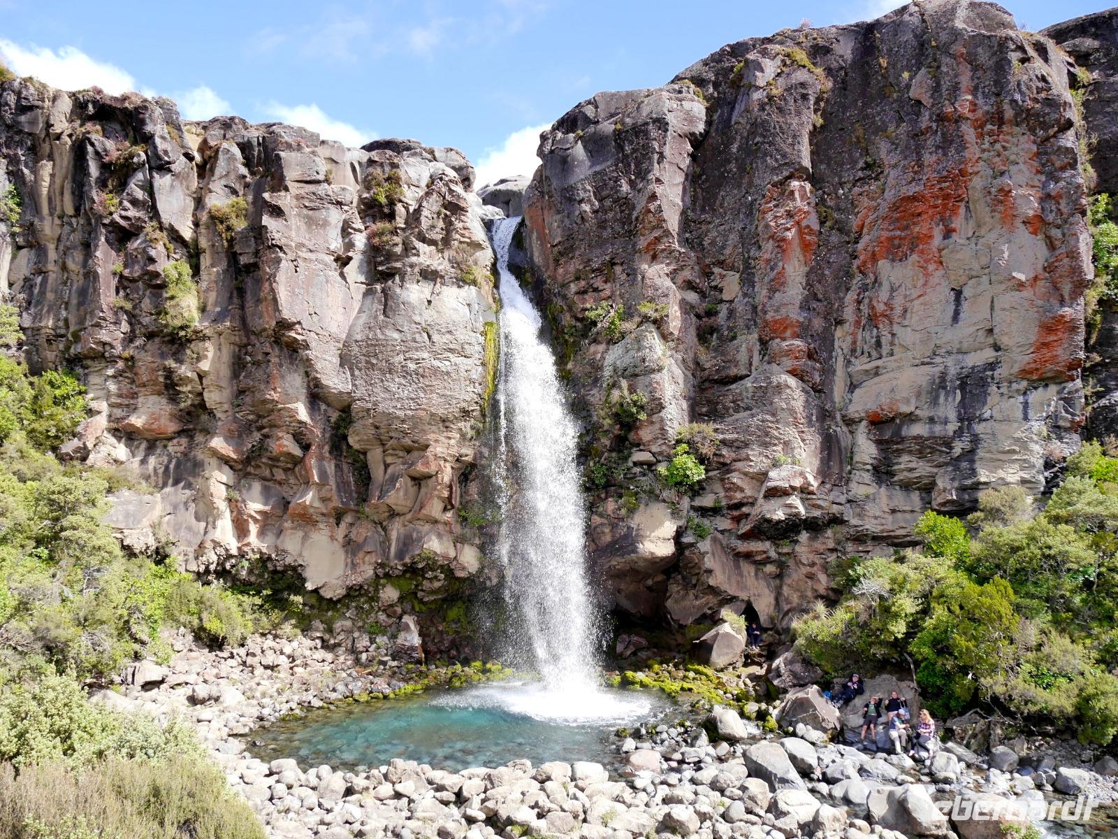 Der älteste Nationalpark Neuseelands steht für die drei Vulkane Ruapehu, Ngauruhoe und Tongariro. Und wieder meint es das Wetter heute gut mit uns... in der Nacht regnet es und am Morgen lächelt uns die Sonne an. Je nach Lust und Laune stehen heute eine längere Wanderung zu den Tama Lakes auf dem Programm oder eine kürzere Alternative zu den Taranaki Falls... wir wandern zunächst gemeinsam direkt ab dem Hotel durch die einsame vulkanische Landschaft. Trotz widriger Bedingungen haben sich die Pflanzen an die Umgebung angepasst. Besonders ist die Landschaft geprägt durch das goldgelbe Tussockgras, dazwischen gedeihen zaghaft neuseeländischer Enzian, lilafarbene Heide, Moose und Flechten. Jeder, der „Herr der Ringe" gesehen hat, wähnt sich mitten in Mordor, denn genau hier wurden die dunklen Szenen der Film-Trilogie gedreht. Trotz dem der Wind an den Tama Lakes etwas auffrischt, scheuen wir uns nicht vor dem Aufstieg und werden mit einem grandiosen Blick auf die blauen Tama Lakes und die atemberaubende Landschaft belohnt. Im Windschatten der Felsen genießen wir unser Picknick. Auf dem Rückweg statten wir noch den Taranaki Falls einen Besuch ab und wandern durch ein Waldstück zurück zum Hotel. Beim abendlichen Buffet werden die unterschiedlichen Erlebnisse des Tages ausgewertet und wir sind uns einig, dass es ein besonderer Tag unserer Reise ist.