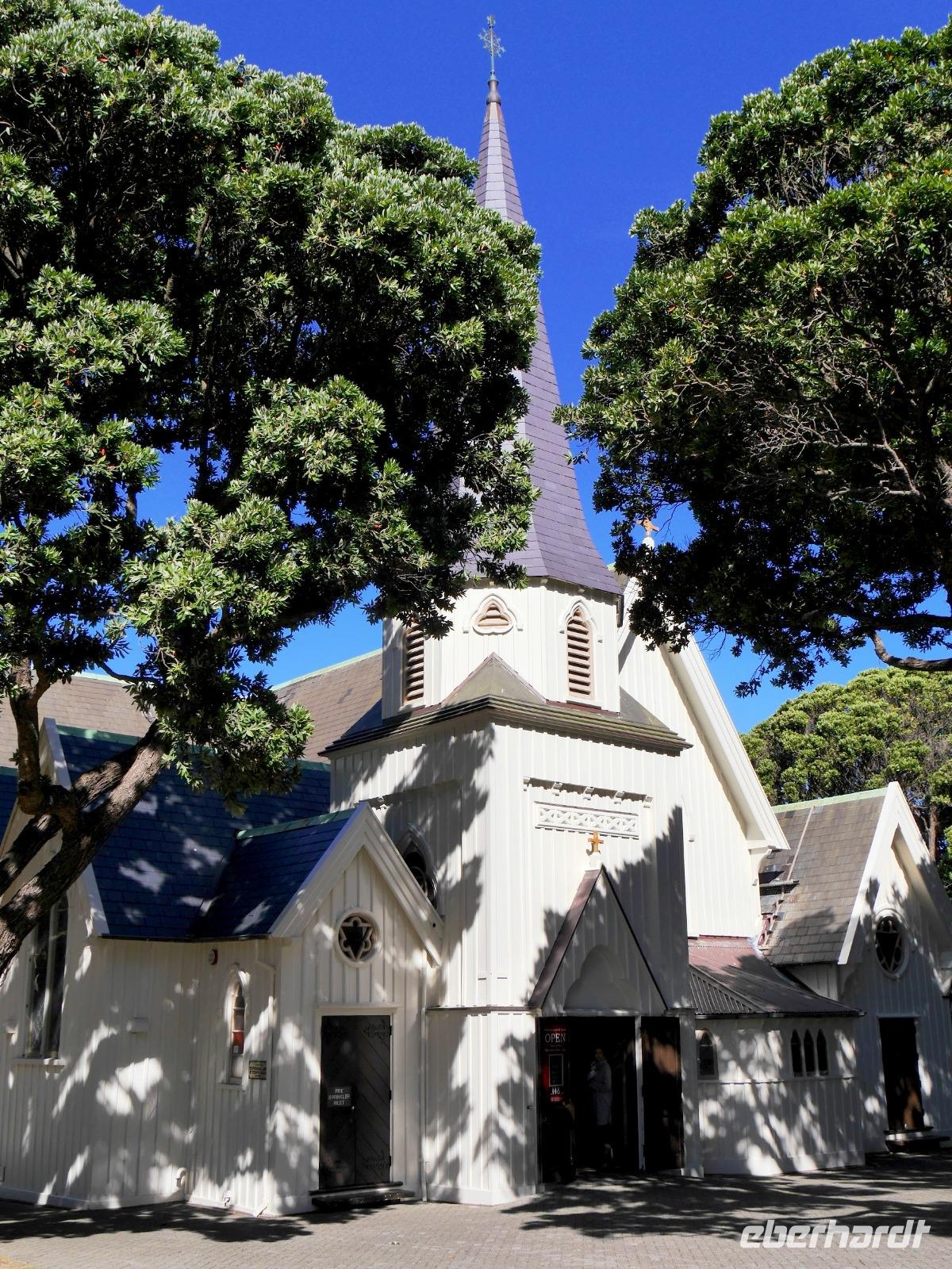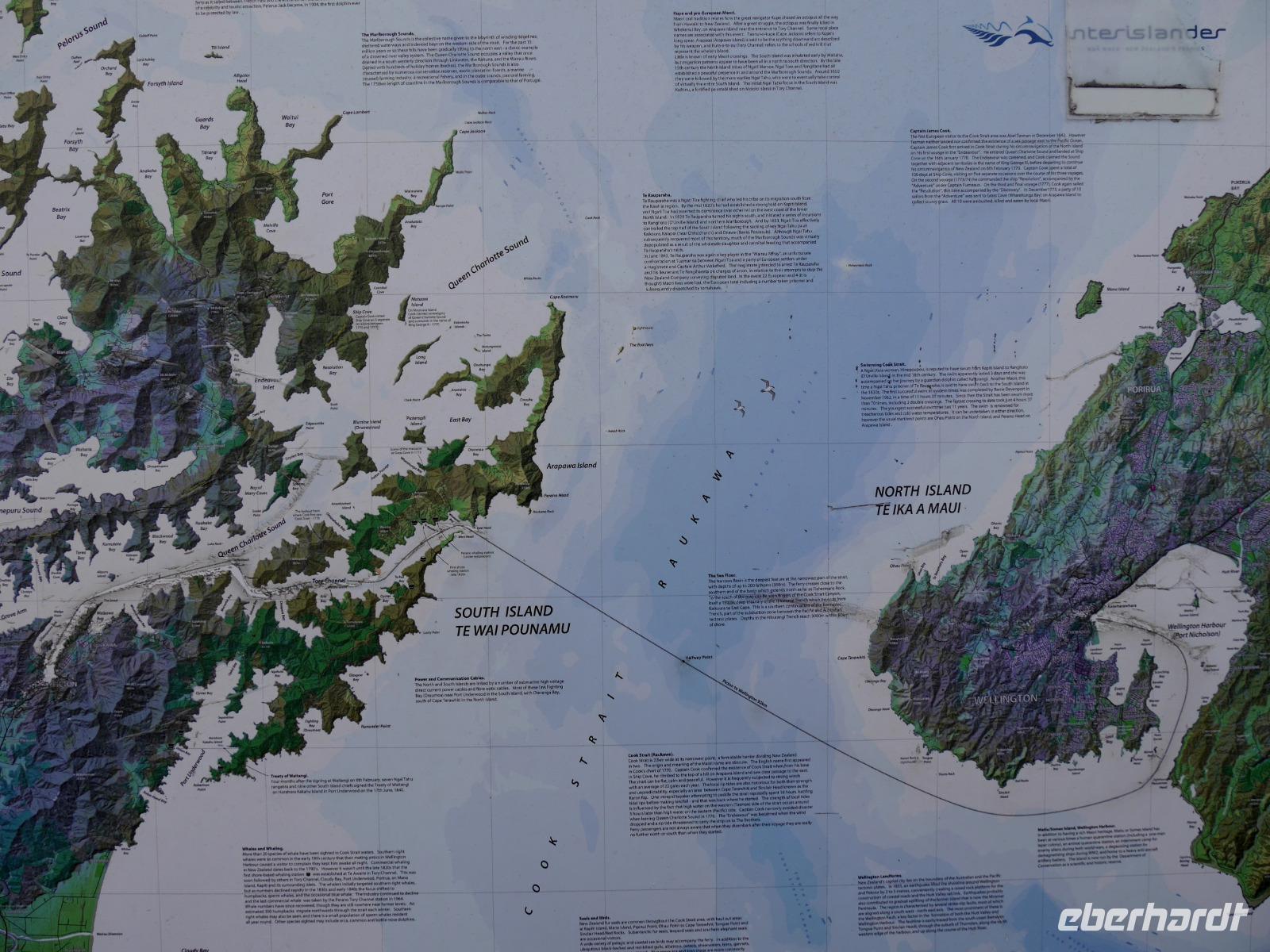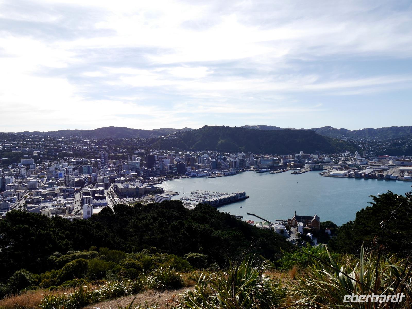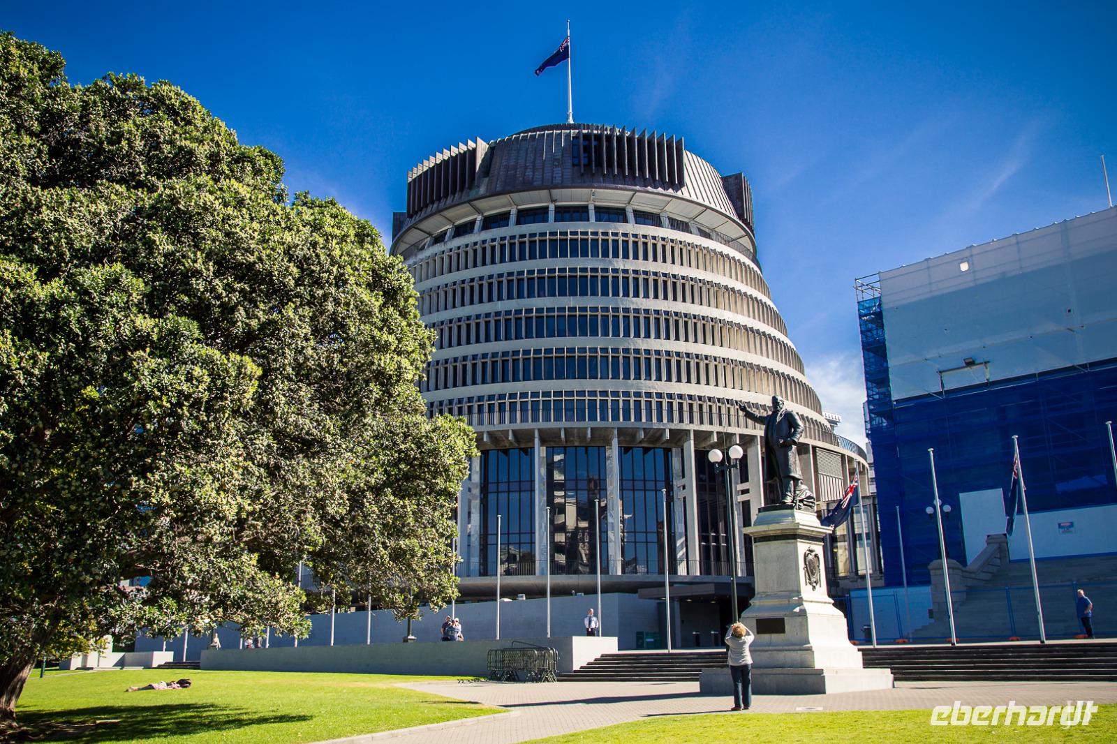 Wir verlassen das Hochplateau des Tongariro Nationalparks - aber nicht ohne noch ein paar Bilder festzuhalten. Die majestätischen Vulkane ragen in den wolkenfreien Himmel und am Straßenrand entdecken wir endlich auch einen Kiwi. Nunja, zugegeben keinen echten, aber das originelle Straßenschild ist dennoch ein willkommenes Motiv. Bei Ohakune spazieren wir auf dem Rimu-Walk durch ein Waldstück. Erstaunlich wie sich die Vegetation im Windschatten der Berge vom gestrigen Wald unterscheidet: wir lernen Rimu-Bäume, Rangiora (Bushmans Friend) und verschiedene Farne kennen. Weiter geht es in südlicher Richtung durch kleinere Städte und entlang der Kapiti Coast bis wir am Nachmittag Wellington erreichen. Auf einer Rundfahrt durch die neuseeländische Hauptstadt sehen wir die Waterfront, die Parlamentsgebäude mit dem „Bienenkorb" und die St. Pauls Kirche, ein bedeutsames Kulturdenkmal und Beispiel gotischer Holzarchitektur von 1866. Es ist auffällig, dass Alt und Neu in Wellington oft unmittelbar nebeneinander liegen: moderne Hochhäuser neben schmucken viktorianischen Häuschen. Bevor wir im zentral gelegenen Hotel einchecken, legen wir noch einen Stopp auf dem Mount Victoria ein. Von hier haben wir einen tollen Blick auf die Stadt, den Hafen und die Umgebung.