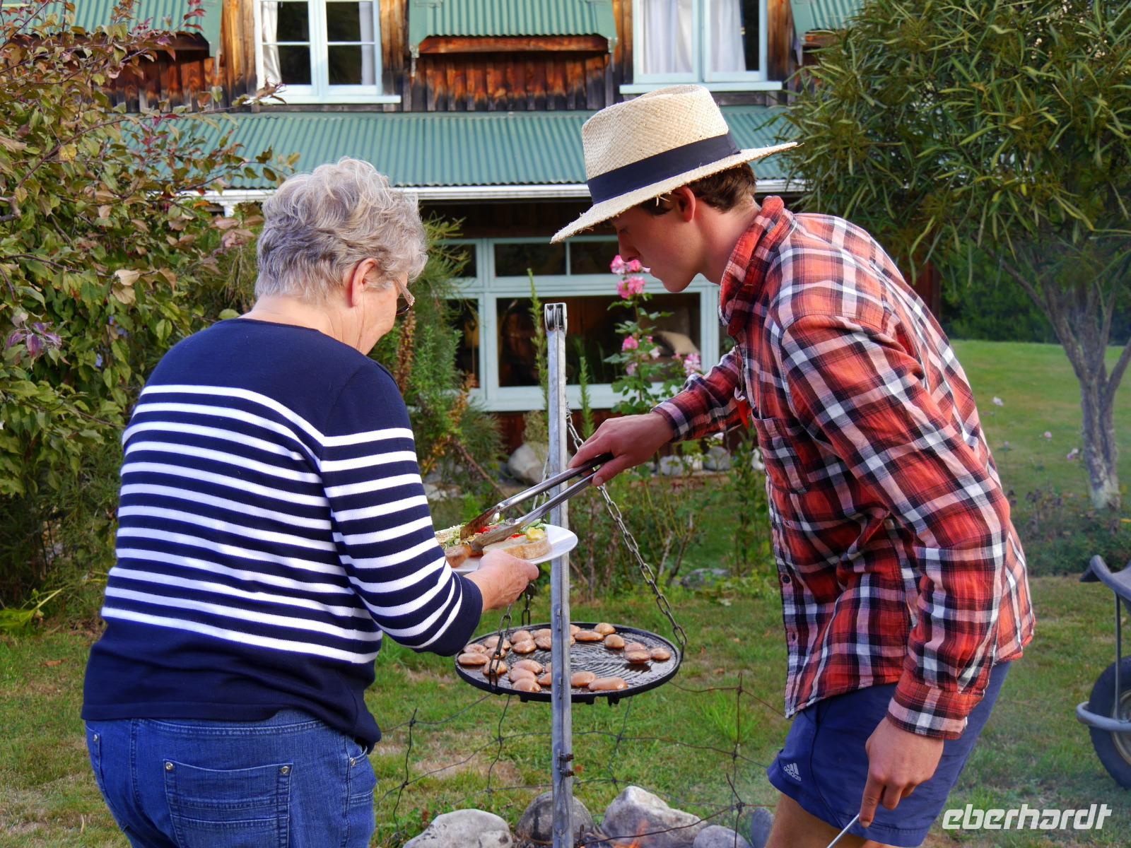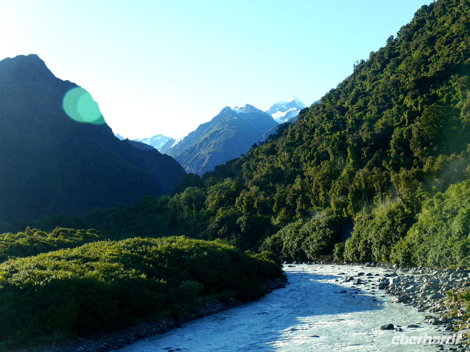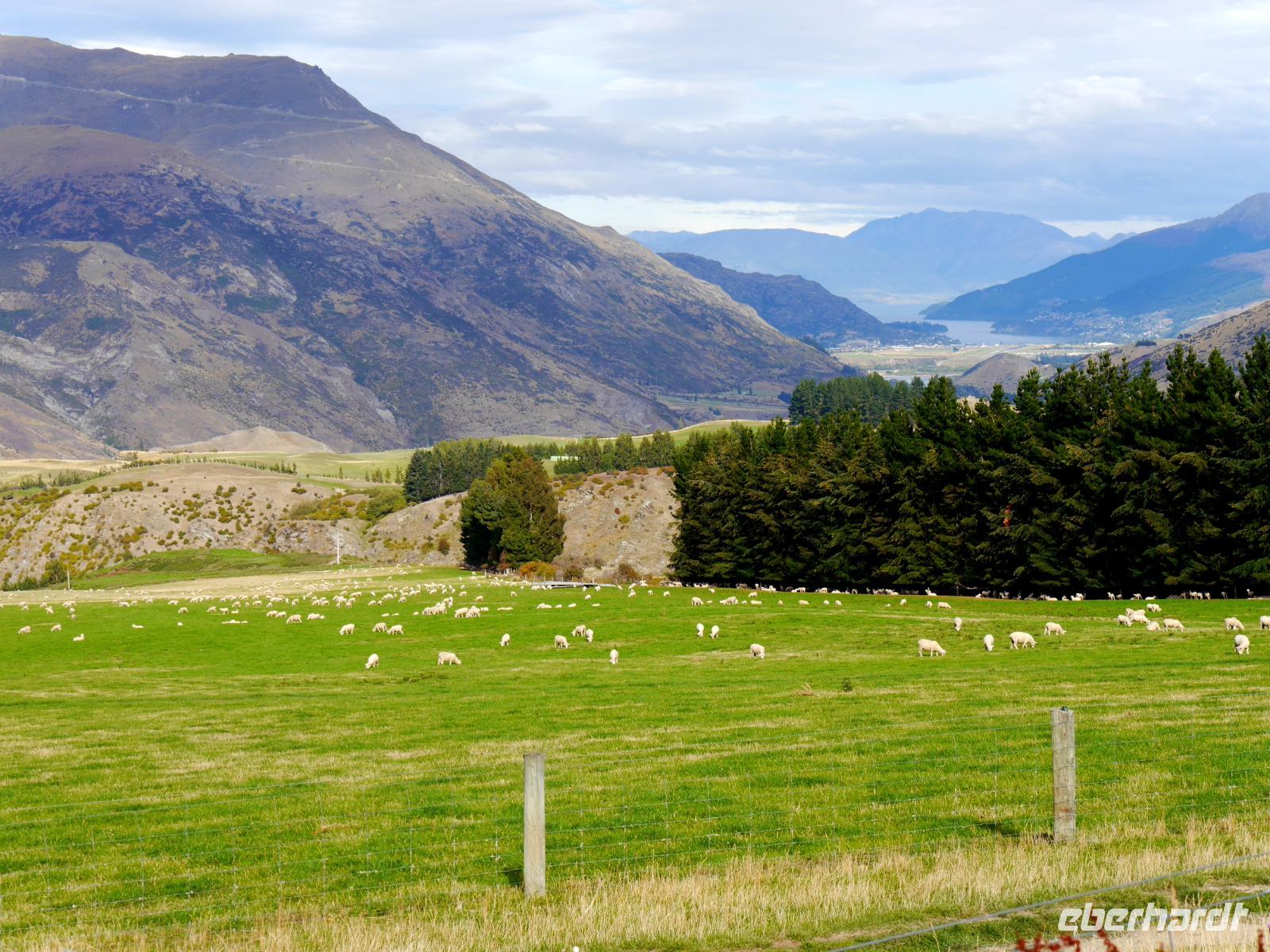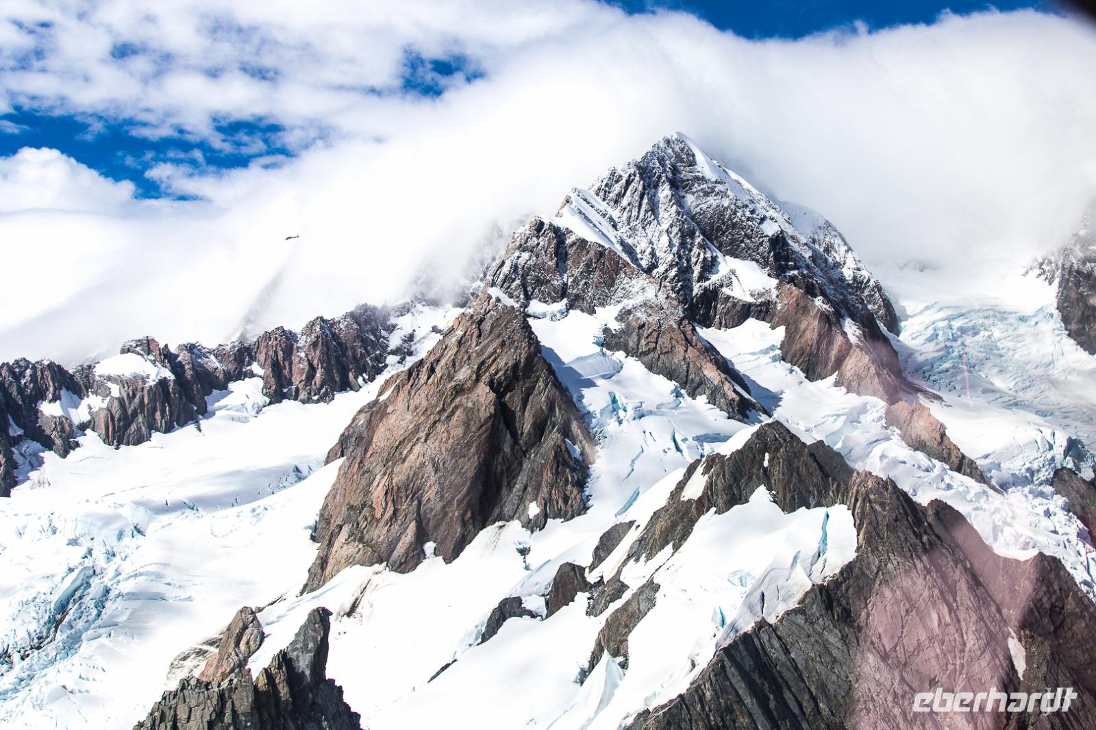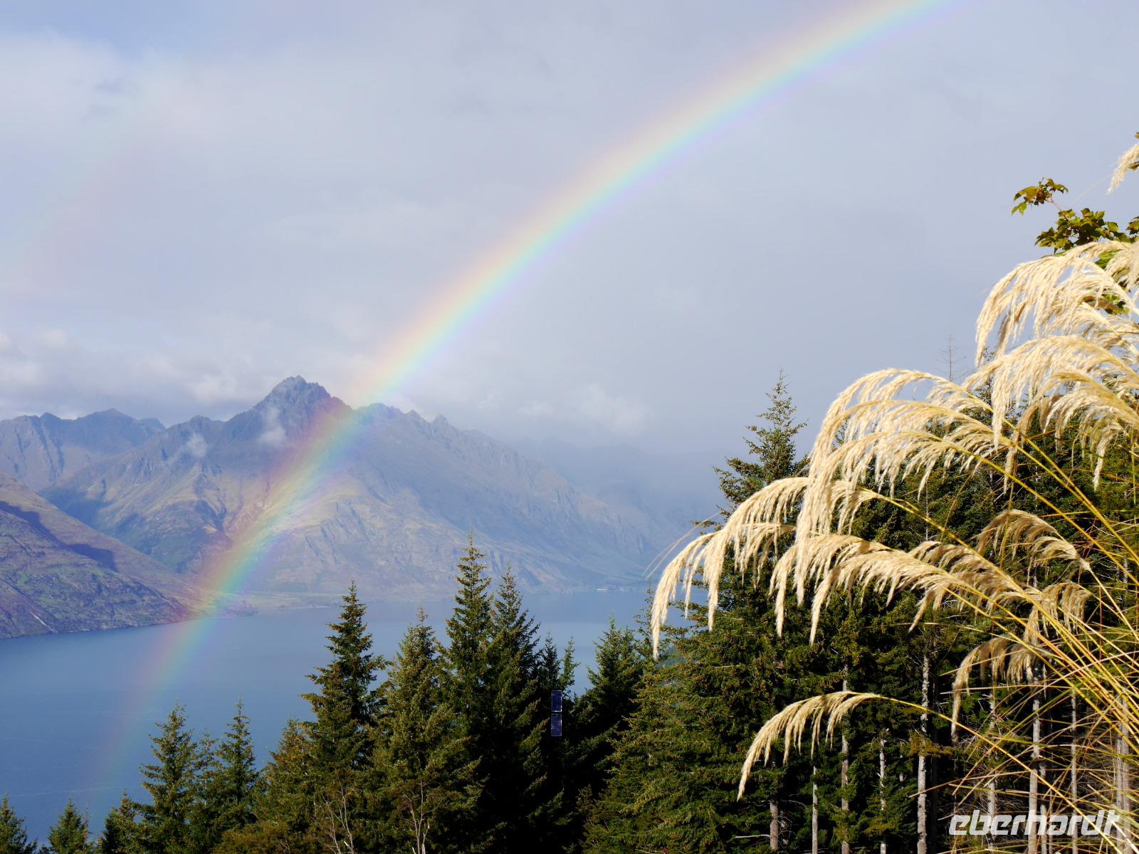 Es gibt nur wenige dieser Tage hier: blauer Himmel, die Sonne lacht vom Himmel und präsentiert uns Mount Cook (mit 3.724 Metern der höchste Berg im Südpazifik), Mount Tasman und die beiden Gletscherzungen Franz Josef und Fox in voller Pracht. Wenn selbst die örtlichen Reiseleiter Fotos schießen, will das schon was heißen! Das Westland gehört zu den am dünnsten besiedelten Regionen Neuseelands und bietet unendlich viel Natur. Bis zum Haast-Pass bewegen wir uns im Westland-Nationalpark, der wie der Fiordland-, Mount-Aspiring- und Mount Cook-Nationalpark auch zum Weltnaturerbe der UNESCO zählt (zusammen nehmen die vier Nationalparks 10% der Landesfläche ein). Nach kurzen Stopps am Strand (Achtung Sandflies!), am Lake Paringa und Knights Point spazieren wir zum Roaring Billing Wasserfall. Die Route führt uns mit fantastischen Landschaftsbildern weiter entlang des Haast River über den Haast-Pass, den mit 563 Meter tiefst gelegenen und südlichsten der drei Alpenpässe. Und mit einem Schlag ändert sich auch die Vegetation - das dominante Grün des Regenwaldes weicht den goldenen Ebenen und Berghängen von Central Otago. Bald passieren wir den Lake Wanaka und Lake Hawea und lassen uns von der beschaulichen Atmosphäre im kleinen Städtchen Wanaka einfangen. Diese malerische Kulisse verdient eine kleine Eberhardt-Fiesta und es darf gern zugegriffen werden! Überhaupt ist das Essen in Neuseeland (leider) viel zu gut ;-)... Lamm, Steak, Wild, Fisch und Meeresfrüchte kommen hier oft auf den Tisch.
