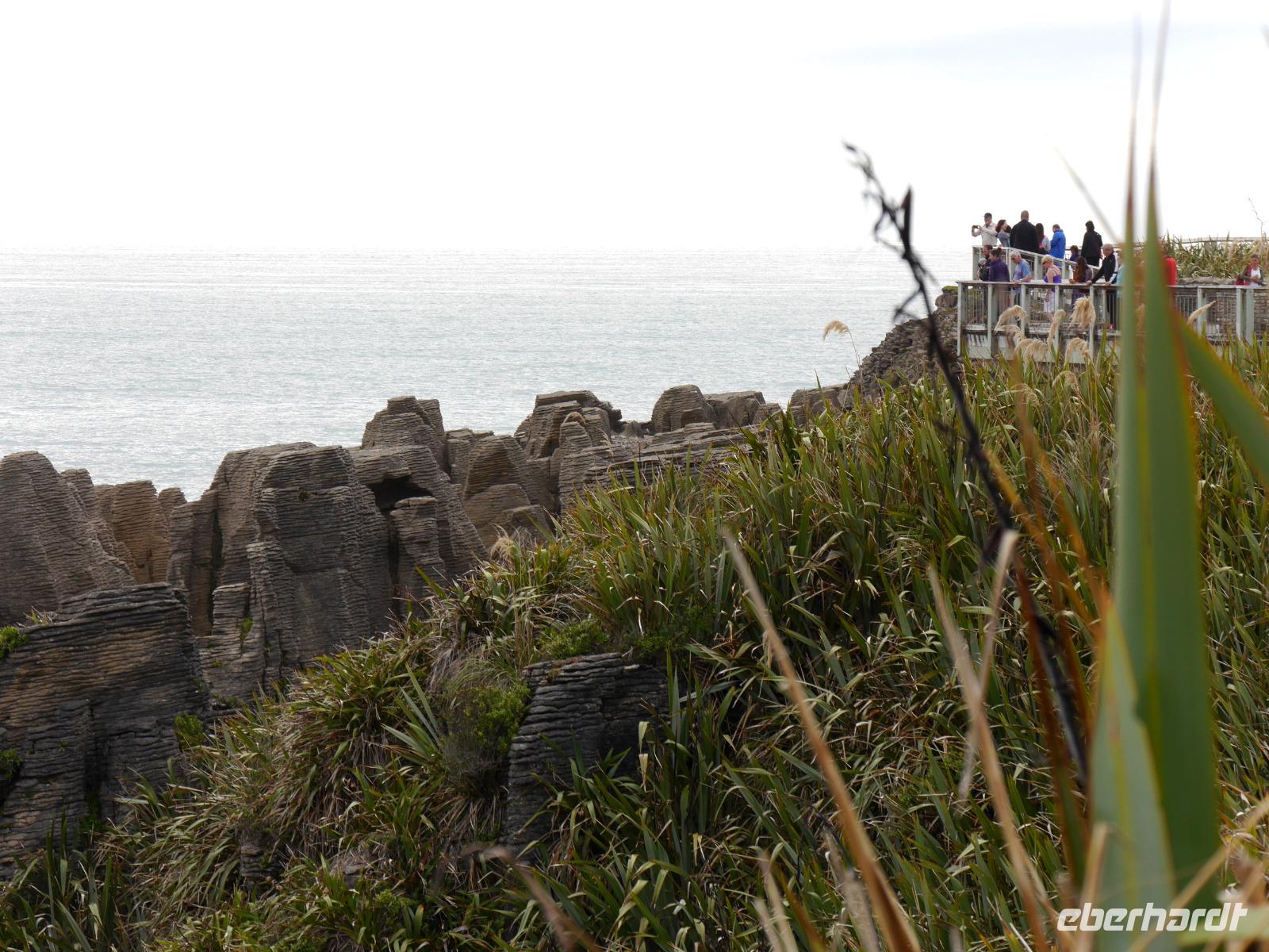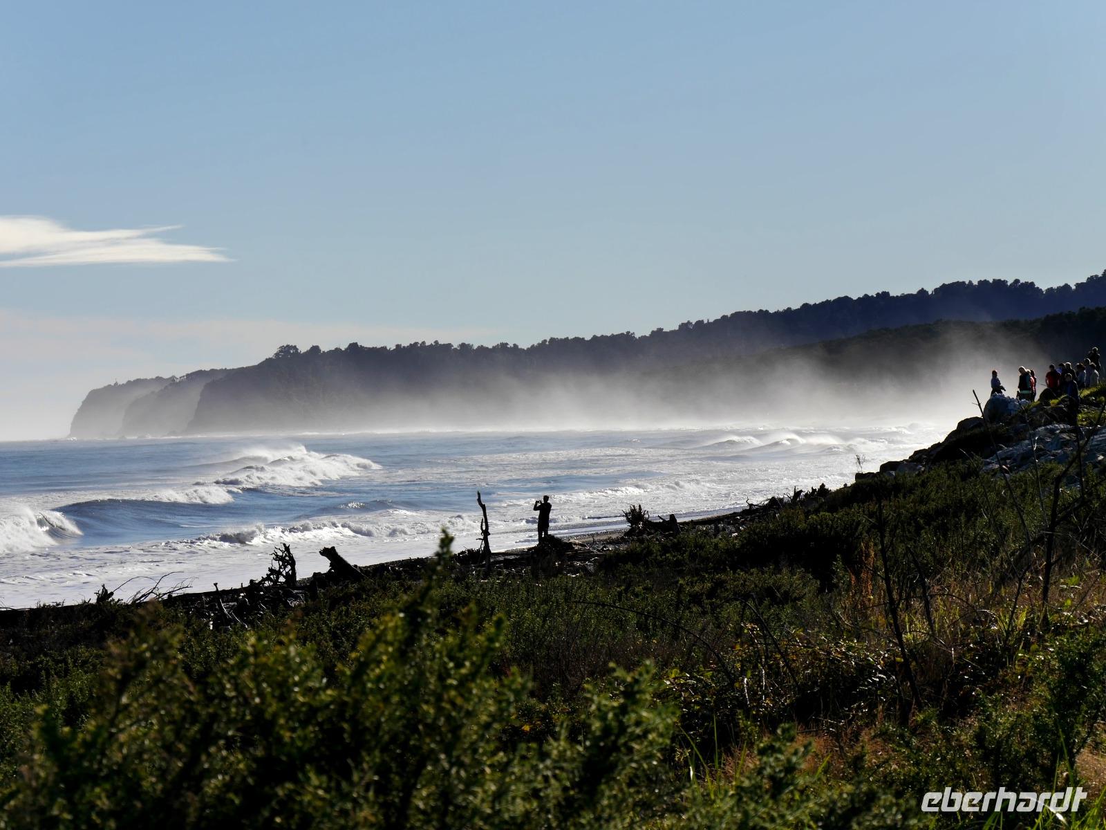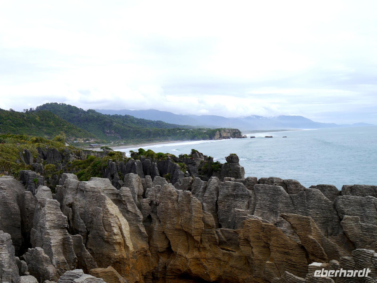 Heute verlassen wir den sonnigen Norden und reisen entlang der Flanken des Kahurangi Nationalparks durch die Schlucht des Buller Flusses an die Westküste. Die „Westcoaster" sind schon ein besonderes Völkchen - sie trotzen dem Regen und den lästigen Sandflies in einer der am dünnsten besiedelten Regionen des Landes. An der Westküste ist so wenig los, dass es südlich von Westport keine einzige Ampel gibt! Am Cape Foulwind unternehmen wir noch einen Spaziergang zu einer Kolonie von Seehunden, die sich auf den Felsen sonnen und im Wasser plantschen. Bevor wir zum Hotel nach Greymouth fahren, besuchen wir noch die Pancake Rocks in Punakaiki. Hier hat die Natur wiederum ein kleines Wunderwerk vollbracht. Die Felsen sind wie Plinsen aufgeschichtet und bilden interessante Formationen. Ein Spazierweg führt durch einen Wald aus New Zealand Flax und Nikau Palmen zu einigen schönen Aussichtspunkten. An die wilde Küste schmiegen sich die Berge mit einem grünen Teppich aus Südbuchen und Rata-Bäumen. Nun werden wir sehen, ob sich der weitläufige Ruf der regnerischen Westküste bewahrheitet... wir hoffen wie bisher auf gutes Wetter für die nächsten Tage.