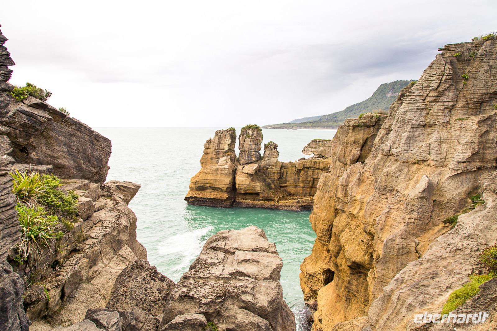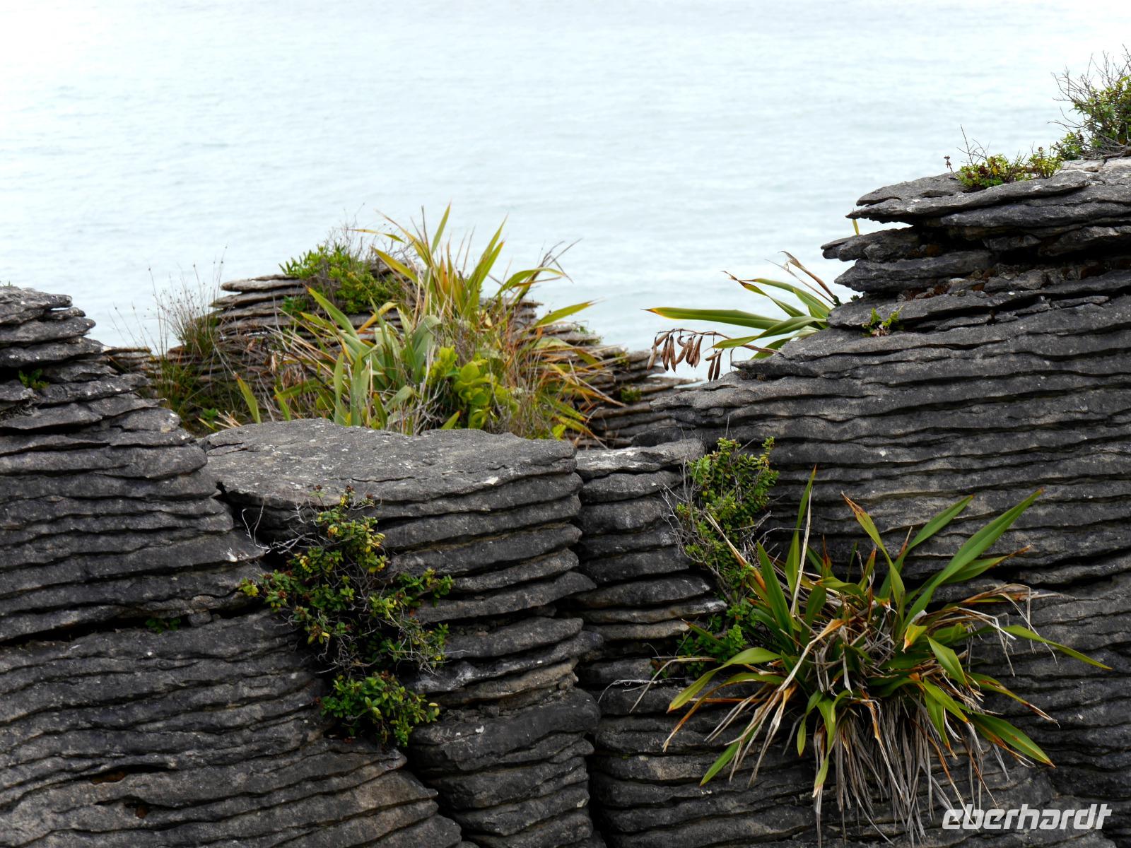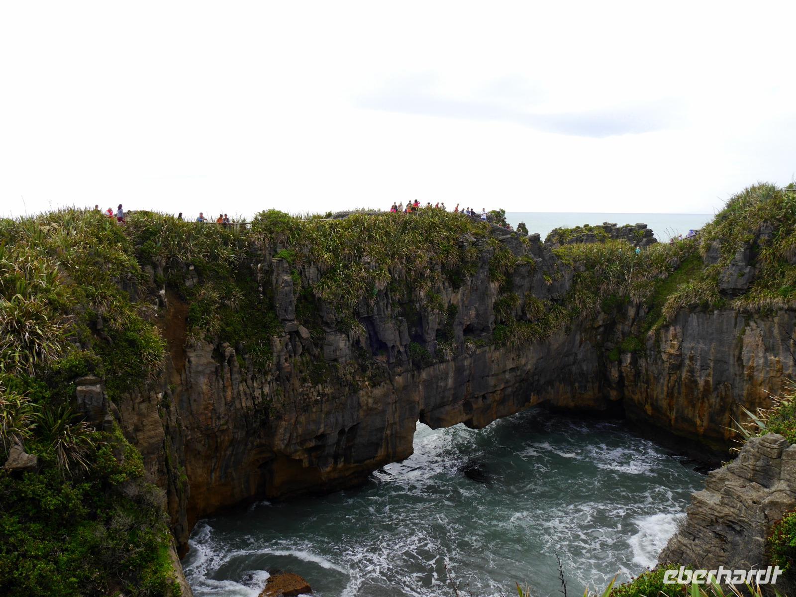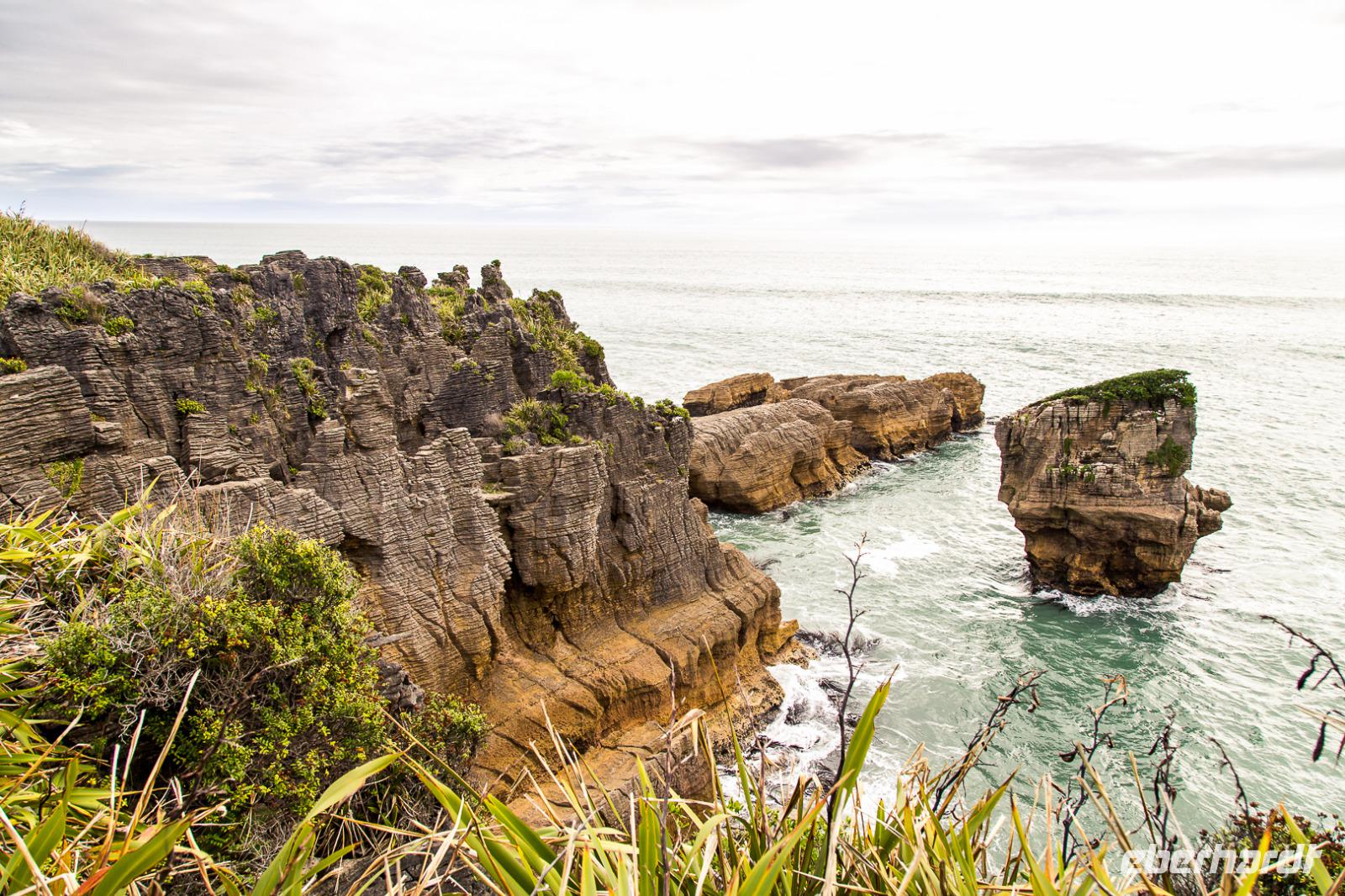 Heute verlassen wir den sonnigen Norden und reisen entlang der Flanken des Kahurangi Nationalparks durch die Schlucht des Buller Flusses an die Westküste. Die „Westcoaster" sind schon ein besonderes Völkchen - sie trotzen dem Regen und den lästigen Sandflies in einer der am dünnsten besiedelten Regionen des Landes. An der Westküste ist so wenig los, dass es südlich von Westport keine einzige Ampel gibt! Am Cape Foulwind unternehmen wir noch einen Spaziergang zu einer Kolonie von Seehunden, die sich auf den Felsen sonnen und im Wasser plantschen. Bevor wir zum Hotel nach Greymouth fahren, besuchen wir noch die Pancake Rocks in Punakaiki. Hier hat die Natur wiederum ein kleines Wunderwerk vollbracht. Die Felsen sind wie Plinsen aufgeschichtet und bilden interessante Formationen. Ein Spazierweg führt durch einen Wald aus New Zealand Flax und Nikau Palmen zu einigen schönen Aussichtspunkten. An die wilde Küste schmiegen sich die Berge mit einem grünen Teppich aus Südbuchen und Rata-Bäumen. Nun werden wir sehen, ob sich der weitläufige Ruf der regnerischen Westküste bewahrheitet... wir hoffen wie bisher auf gutes Wetter für die nächsten Tage.