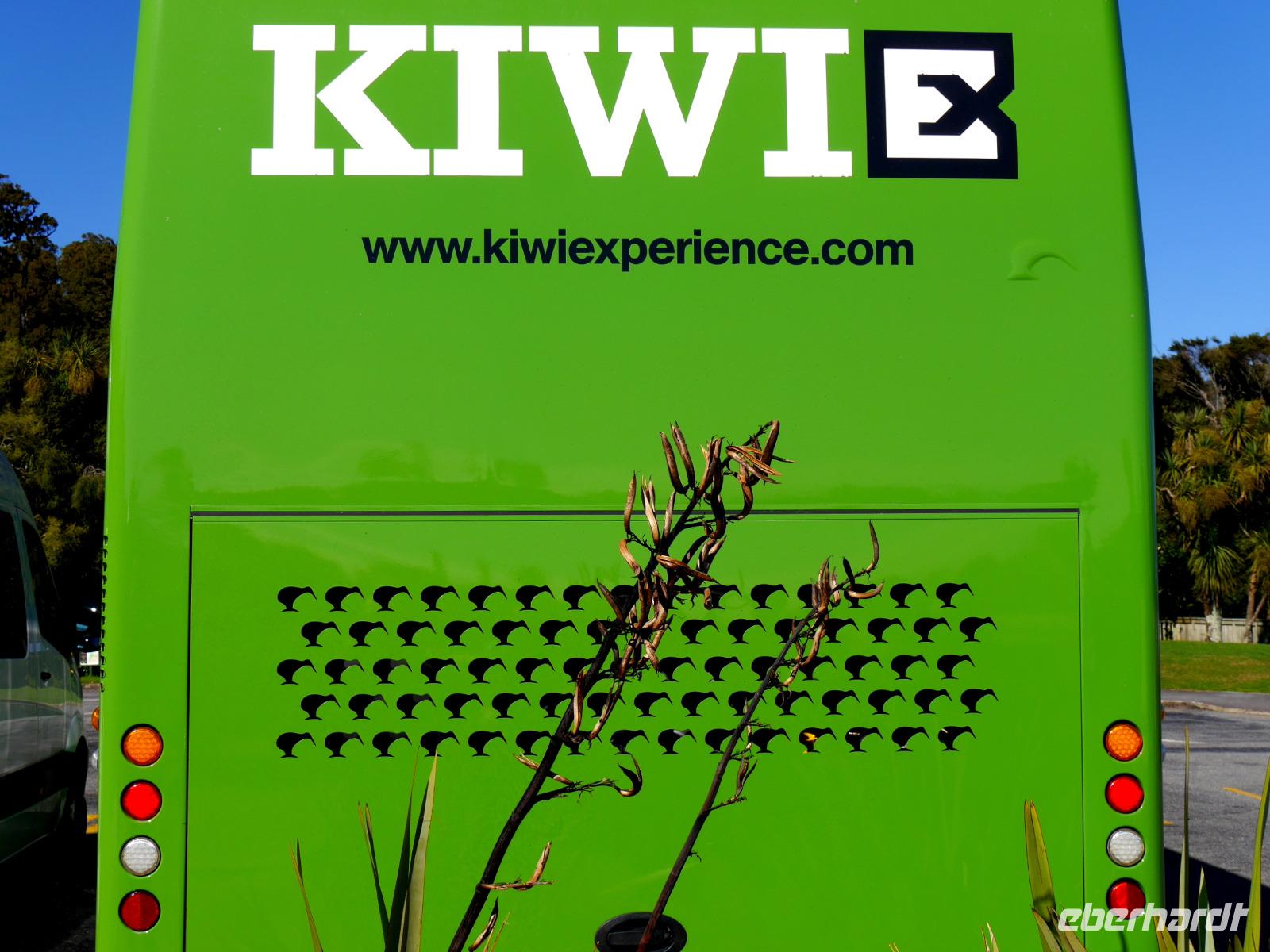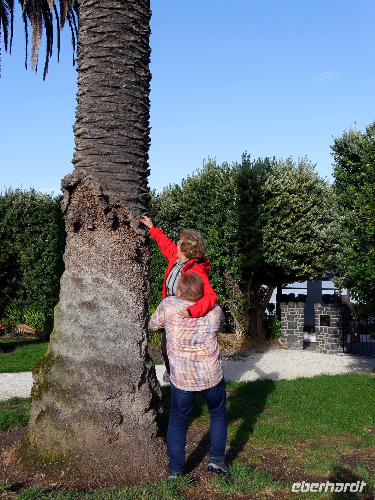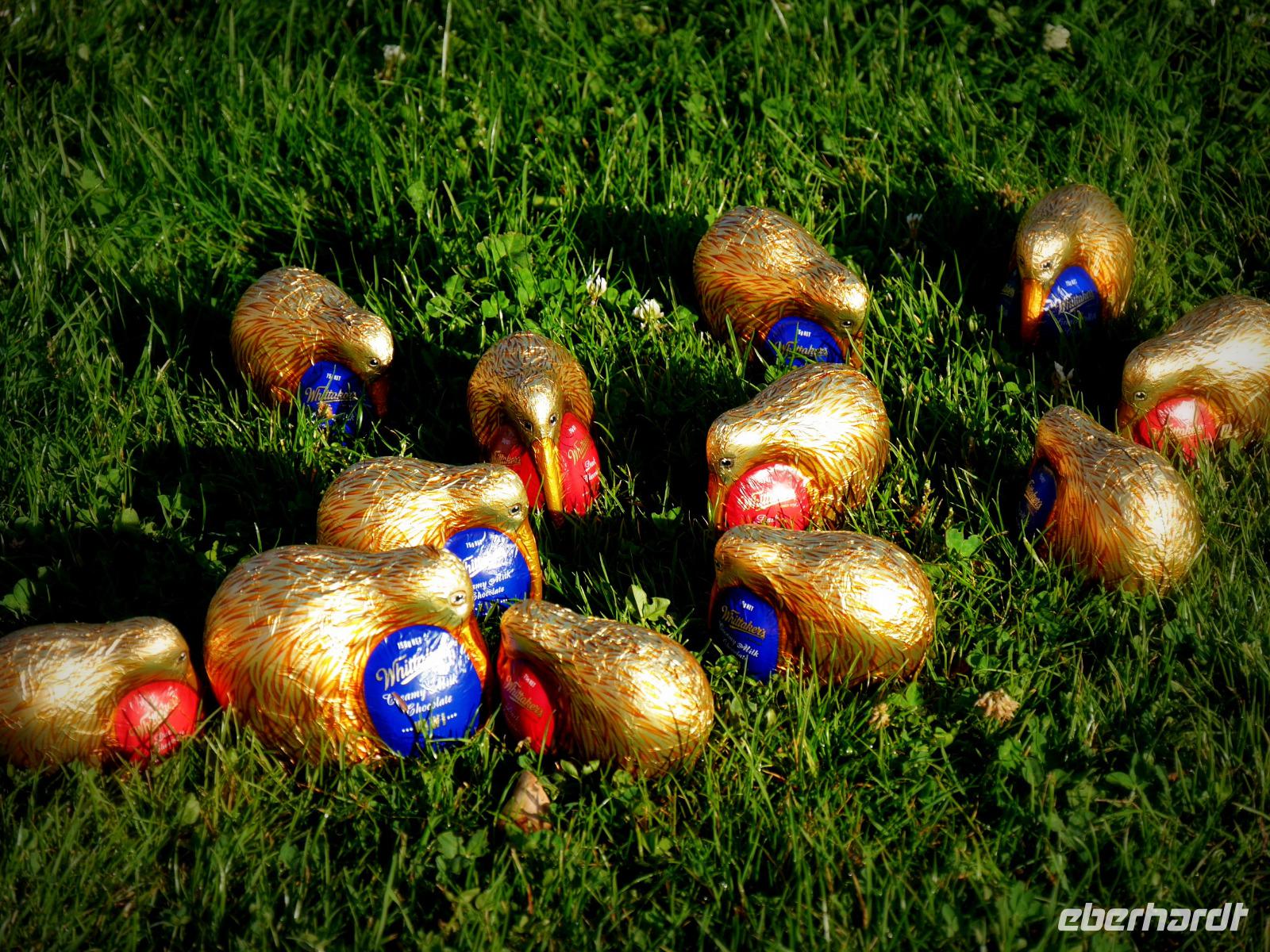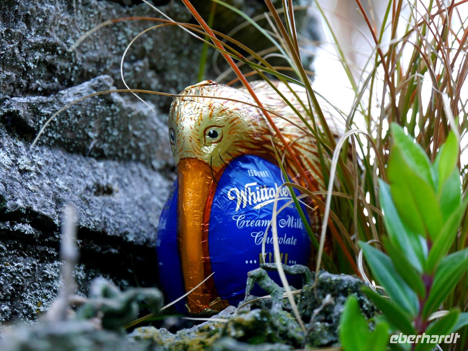 Wer hätte gedacht, dass Kiwis doch fliegen können!? Scheu sind die seltsamen Vögel allemal und verstecken sich heute im Gras, auf Palmen und in den Rosenbüschen von Akaroa... es ist ja schließlich Ostern !