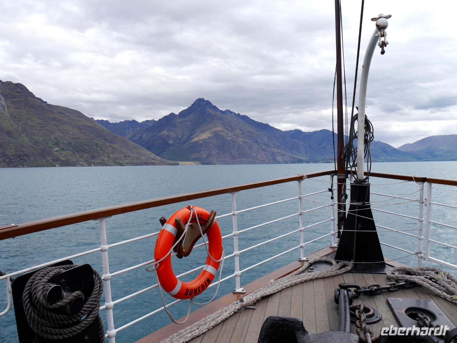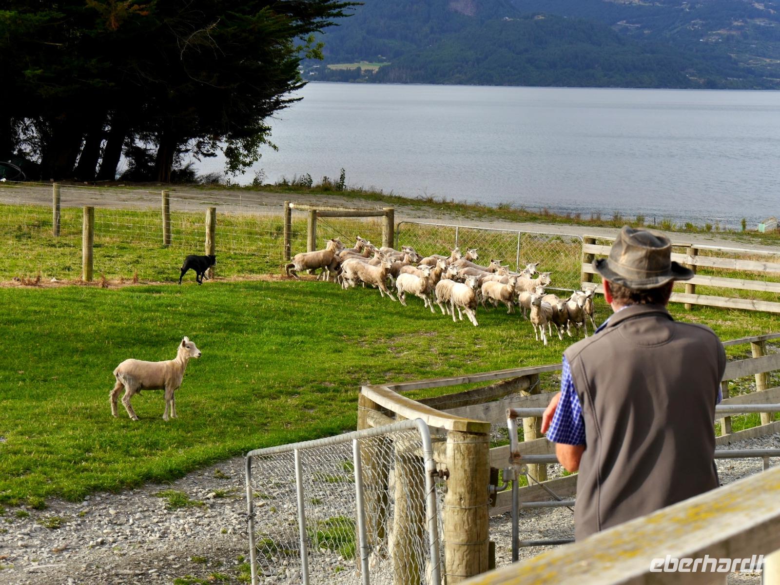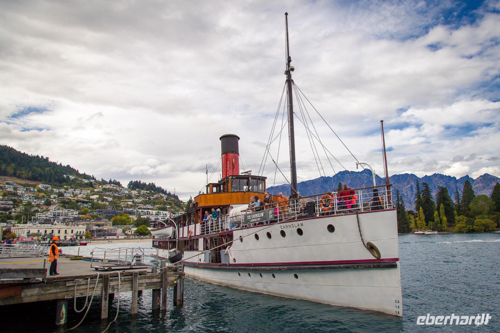 Wir lassen Wanaka hinter uns und fahren über die Crown Range und den Cardrona Pass nach Queenstown. Ein wenig nostalgische Atmosphäre finden wir vorher in Arrowtown, wo einst der Goldrausch viele Glücksritter anzog. Heutzutage gibt es ganz andere Attraktionen in der Region: Abenteuerlustige finden hier alle möglichen und unmöglichen Sportarten. An der Bungee-Brücke über dem Kawarau-River können wir die mutigen Springer beobachten. Dass die Neuseeländer ausgesprochen kreativ und einfallsreich sind, zeigt sich auch an den ausgefallenen Briefkästen. In Queenstown sehen wir eine Sammlung von über 70 besonderen Exemplaren. Die Abenteuerhauptstadt Neuseelands liegt malerisch am Ufer des Lake Wakatipu und bietet mit der lebendigen Atmosphäre Gelegenheit zum Bummeln und Verweilen. Das historische Dampfschiff "TSS Earnslaw" lädt am Abend zu einer Fahrt zur Walter Peak Station ein, wo neben einer Schaf-Show ein üppiges Buffet auf uns wartet.