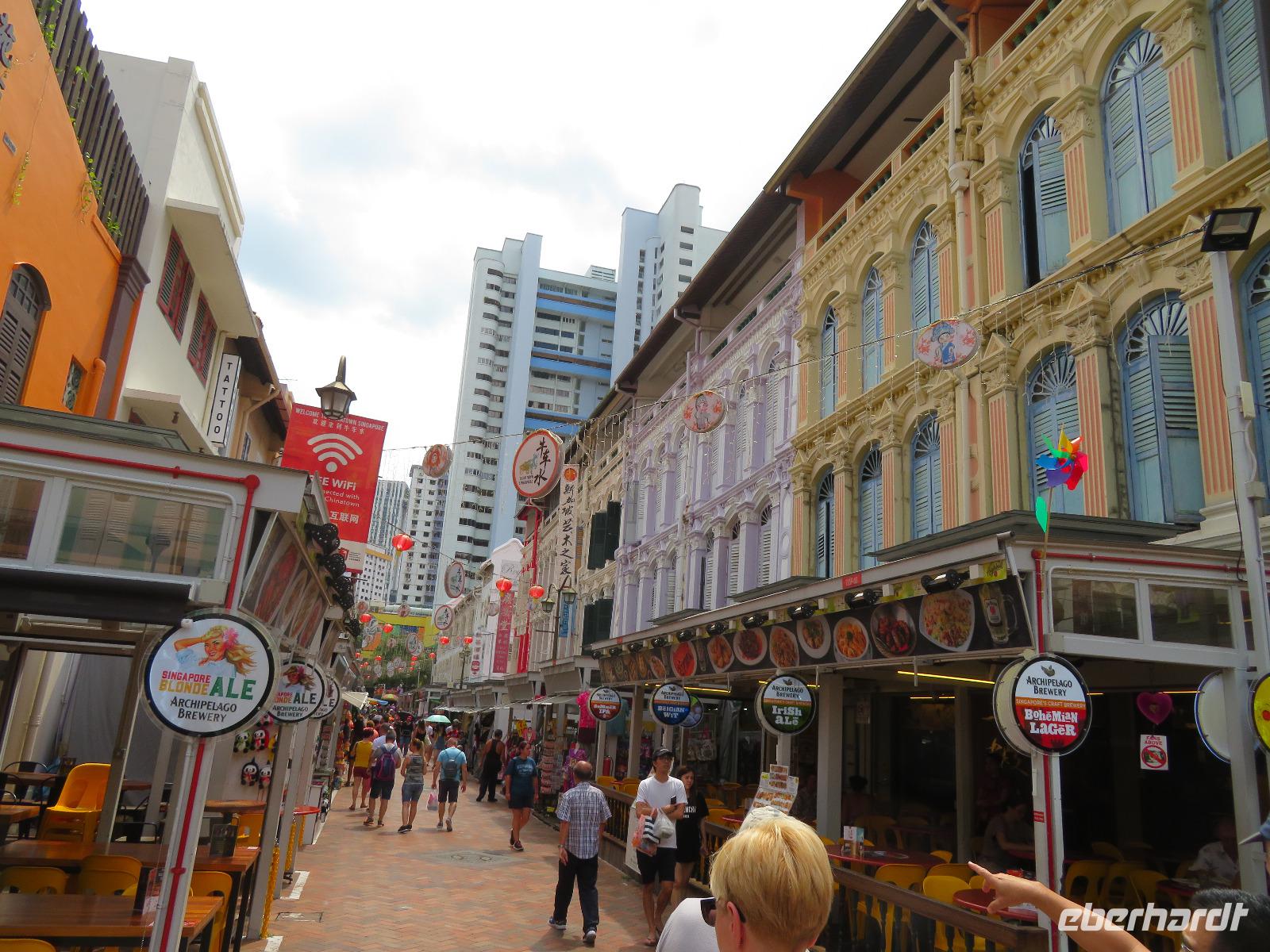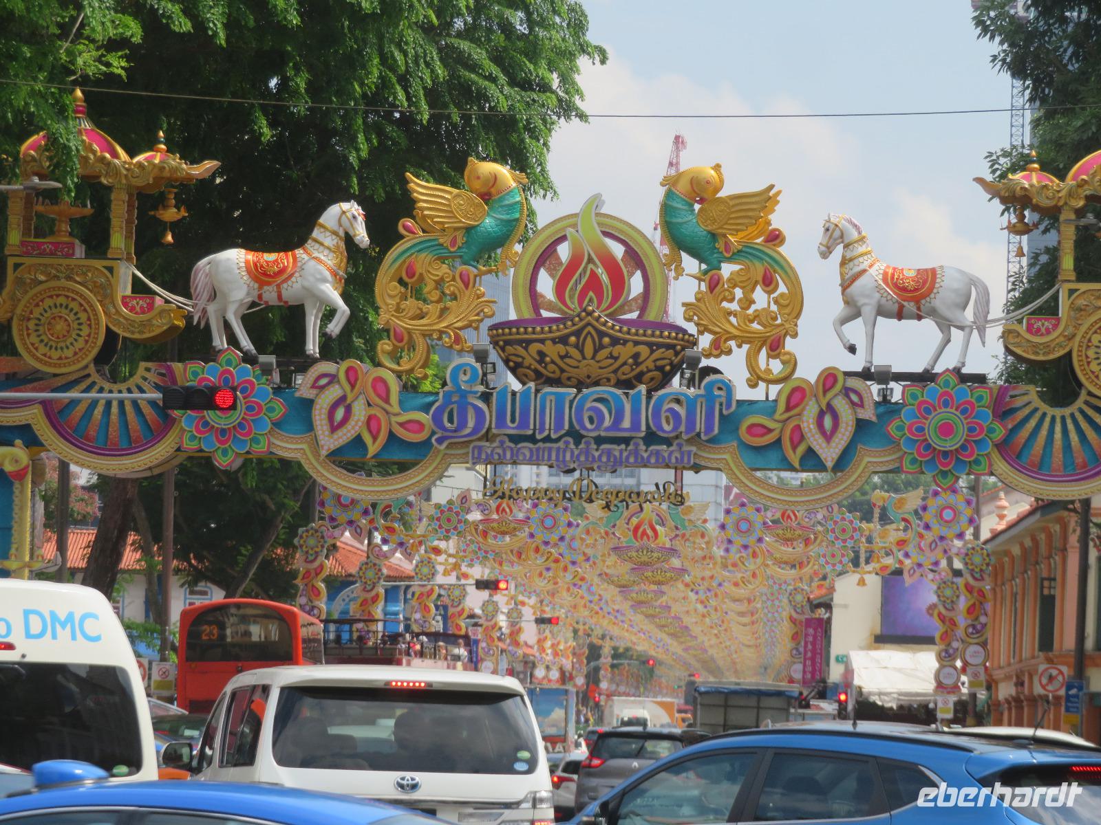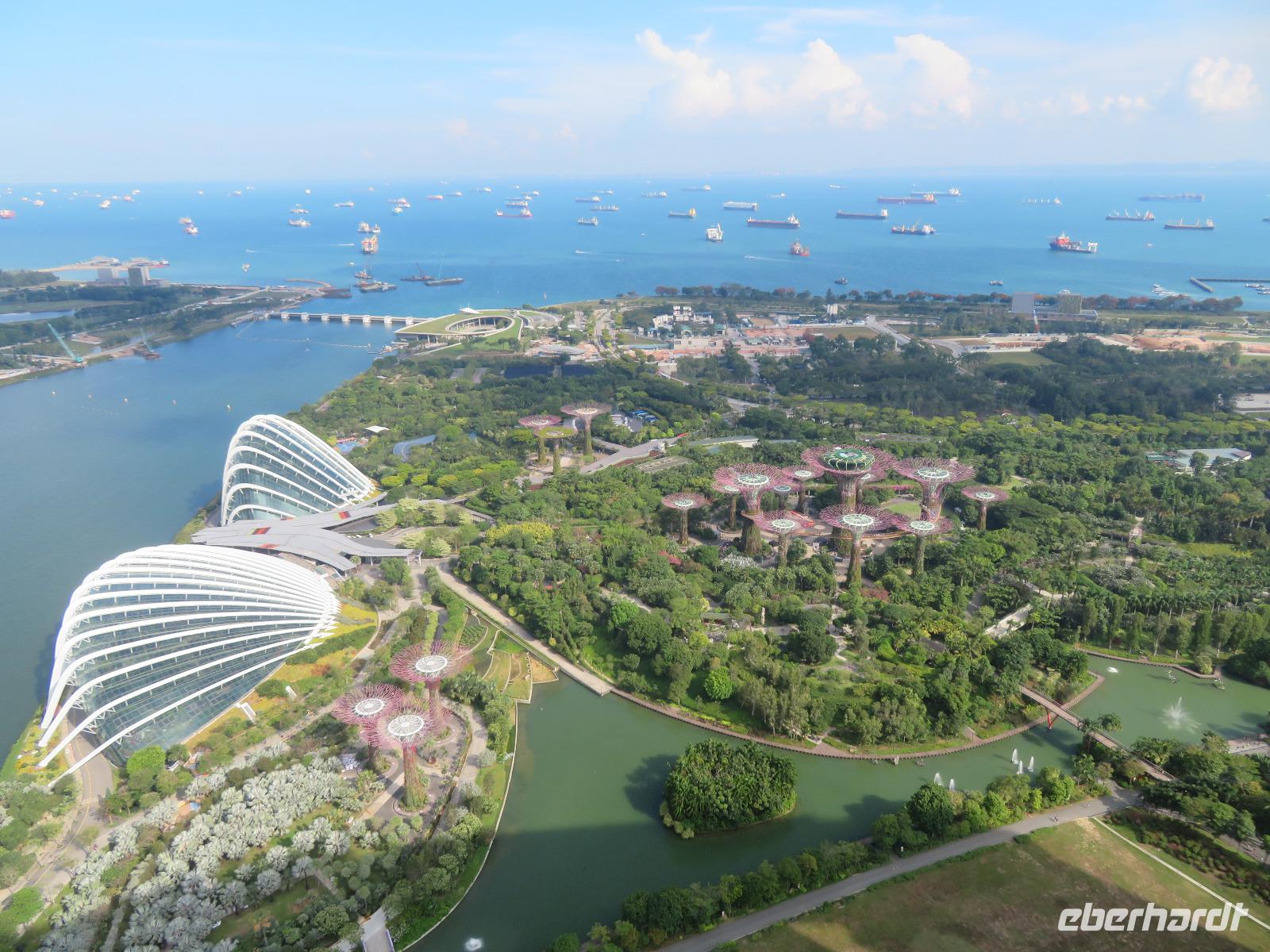 Da Singapur nicht nur nachts wirklich sehenswert ist, begrüßt uns am Morgen David zur Stadtrundfahrt. Singapur ist, und das haben wir bereits gestern gesehen, eine sehr grüne Stadt und wird auch als Gartenstadt bezeichnet. Unser erstes Ziel ist der Orchideengarten von Singapur. Gemeinsam mit David unternehmen wir einen Spaziergang durch die Anlage. Die Vielfalt der Farben und Blüten ist einmalig und wir genießen die friedvolle Ruhe die dieser Garten inmitten der Stadt ausstrahlt. Weiter fahren wir über die Orchard Road mit all ihren schicken Modeläden nach Little India, ebenso bunt, aber weniger ruhig. David führt uns über den Markt, es wird sich überall auf das indische Lichterfest Diwali vorbereitet - wohin das Auge sieht gibt es Räucherstäbchen, Feuerwerkskörper, Blumenketten. Etwas ruhiger wird es dann wieder „nebenan" im arabischen Viertel. Die Restaurants und Läden entlang der Straßen erinnern uns an einen Urlaub in der Türkei, am Ende der Hauptstraße steht dann die große Sultan-Moschee mit goldener Kuppel. Wir fahren weiter und entdecken unterwegs, zwischen all den neuen und modernen Hochhäusern dann auch noch ein paar Gebäude aus der Kolonialzeit. Schließlich in Chinatown angekommen stärken wir uns zunächst in einer der zahlreichen Garküchen „auf Rädern" bevor es dann wieder durch die bunten Gassen und zum buddhistischen Tempel geht. Unsere Sightseeing-Tour soll noch nicht beendet sein und so schließen wir sie gemeinsam mit der Auffahrt zum Observation Deck vom Marina Bay Sands Hotel ab. Von hier genießen wir noch einmal einen Blick über die Stadt bei Tageslicht. Zurück im Hotel bleibt noch genug Zeit um sich in einigen der Zimmer frisch zu machen und am Pool zu entspannen und sich auf die nächste Etappe mit dem Flugzeug vorzubereiten.