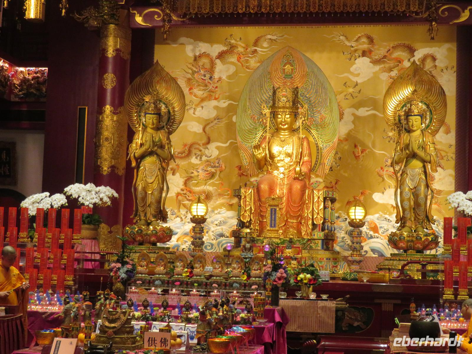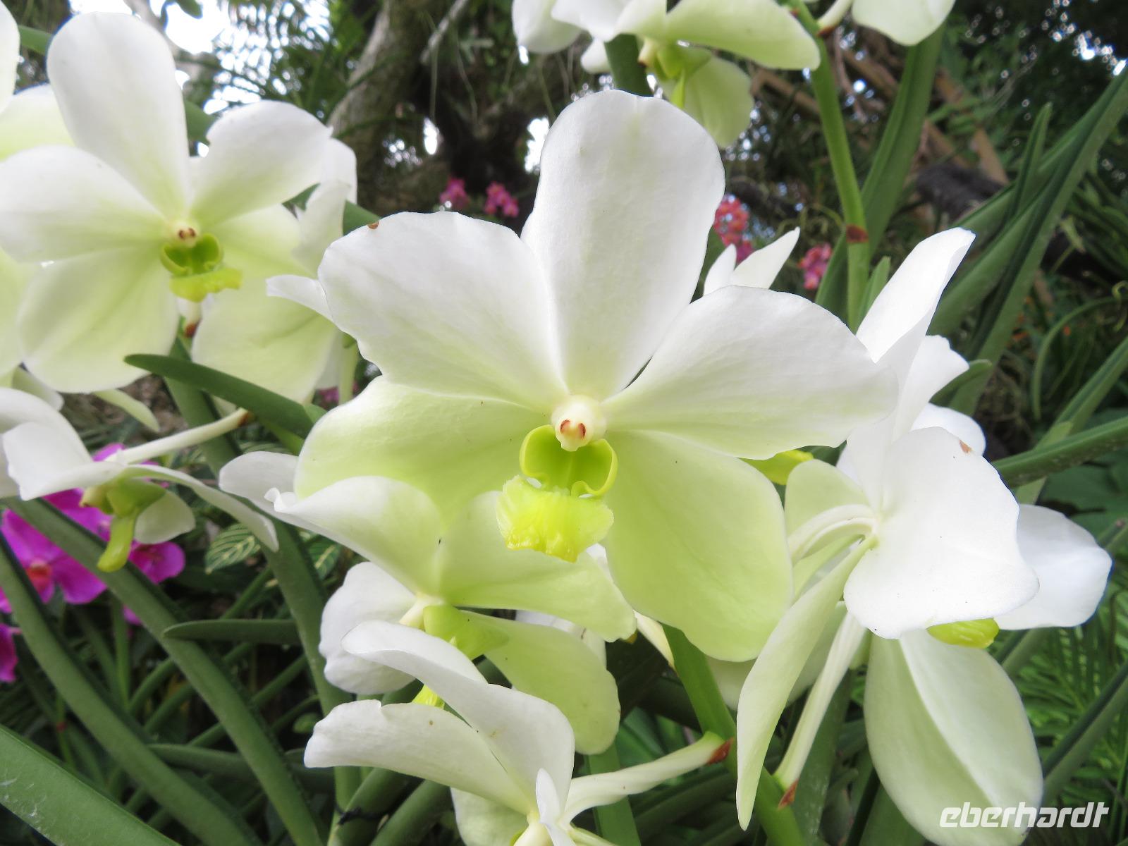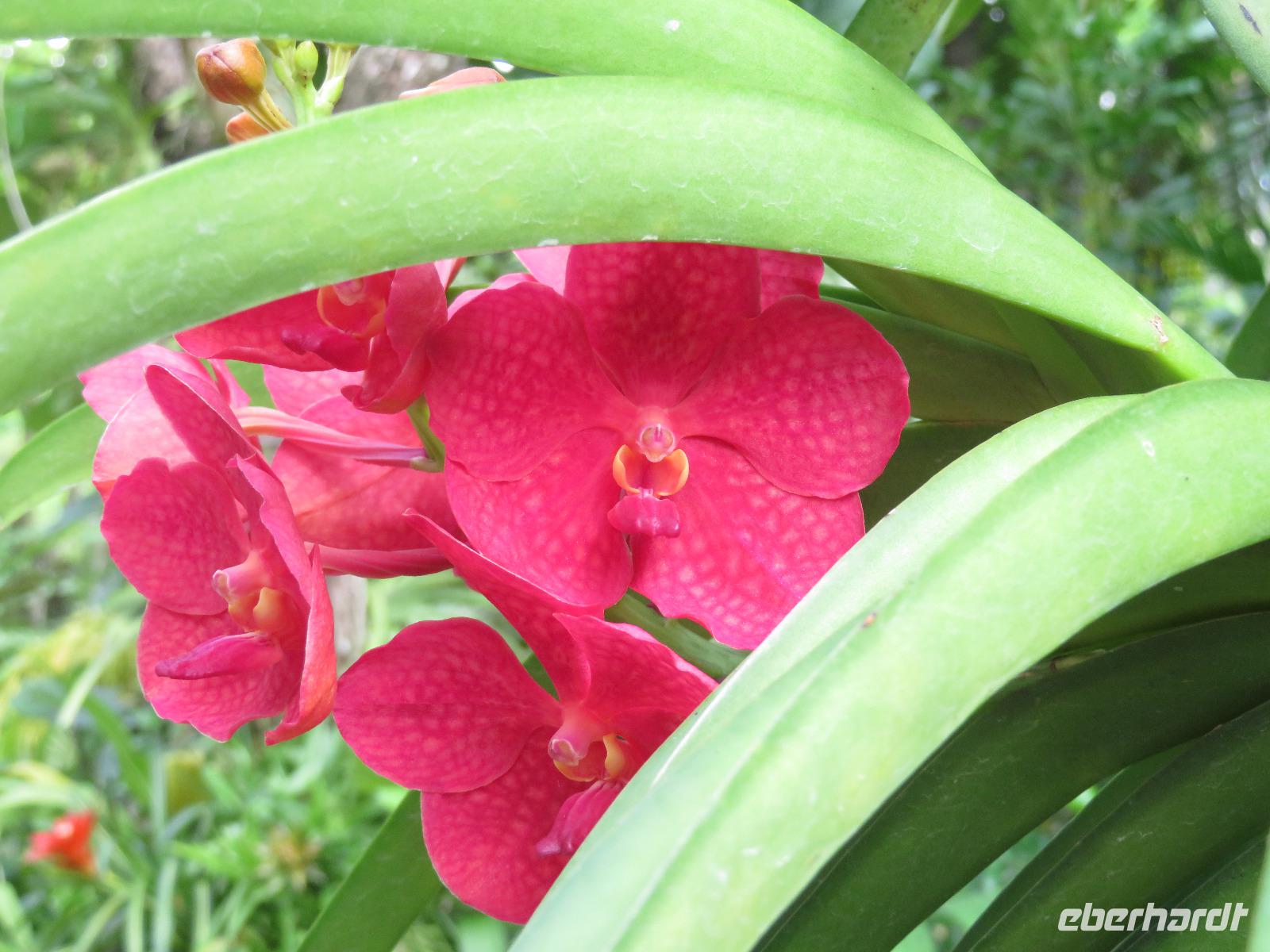Da Singapur nicht nur nachts wirklich sehenswert ist, begrüßt uns am Morgen David zur Stadtrundfahrt. Singapur ist, und das haben wir bereits gestern gesehen, eine sehr grüne Stadt und wird auch als Gartenstadt bezeichnet. Unser erstes Ziel ist der Orchideengarten von Singapur. Gemeinsam mit David unternehmen wir einen Spaziergang durch die Anlage. Die Vielfalt der Farben und Blüten ist einmalig und wir genießen die friedvolle Ruhe die dieser Garten inmitten der Stadt ausstrahlt. Weiter fahren wir über die Orchard Road mit all ihren schicken Modeläden nach Little India, ebenso bunt, aber weniger ruhig. David führt uns über den Markt, es wird sich überall auf das indische Lichterfest Diwali vorbereitet - wohin das Auge sieht gibt es Räucherstäbchen, Feuerwerkskörper, Blumenketten. Etwas ruhiger wird es dann wieder „nebenan" im arabischen Viertel. Die Restaurants und Läden entlang der Straßen erinnern uns an einen Urlaub in der Türkei, am Ende der Hauptstraße steht dann die große Sultan-Moschee mit goldener Kuppel. Wir fahren weiter und entdecken unterwegs, zwischen all den neuen und modernen Hochhäusern dann auch noch ein paar Gebäude aus der Kolonialzeit. Schließlich in Chinatown angekommen stärken wir uns zunächst in einer der zahlreichen Garküchen „auf Rädern" bevor es dann wieder durch die bunten Gassen und zum buddhistischen Tempel geht. Unsere Sightseeing-Tour soll noch nicht beendet sein und so schließen wir sie gemeinsam mit der Auffahrt zum Observation Deck vom Marina Bay Sands Hotel ab. Von hier genießen wir noch einmal einen Blick über die Stadt bei Tageslicht. Zurück im Hotel bleibt noch genug Zeit um sich in einigen der Zimmer frisch zu machen und am Pool zu entspannen und sich auf die nächste Etappe mit dem Flugzeug vorzubereiten.