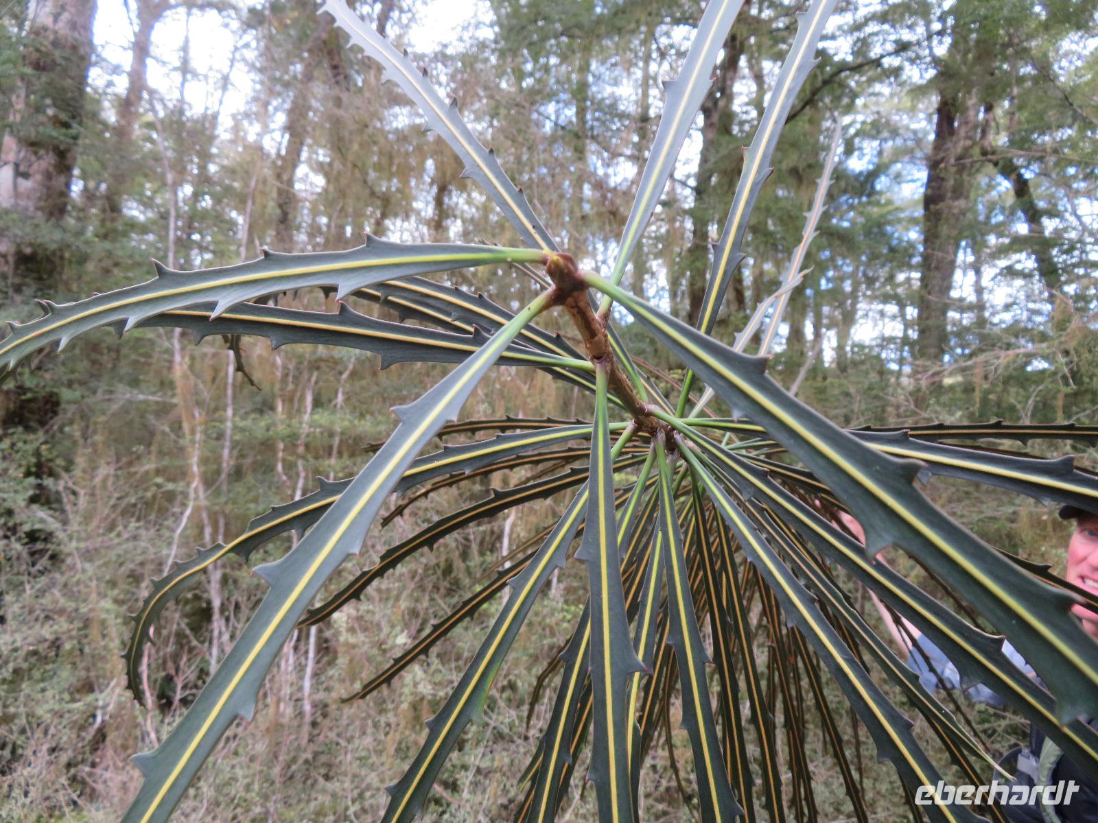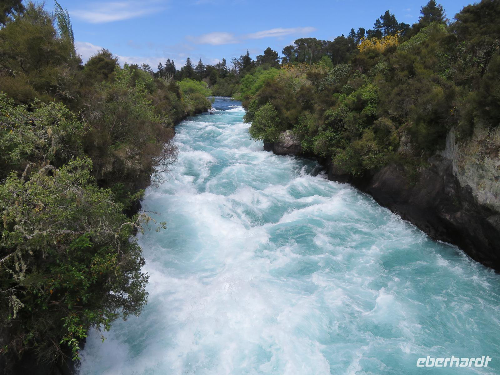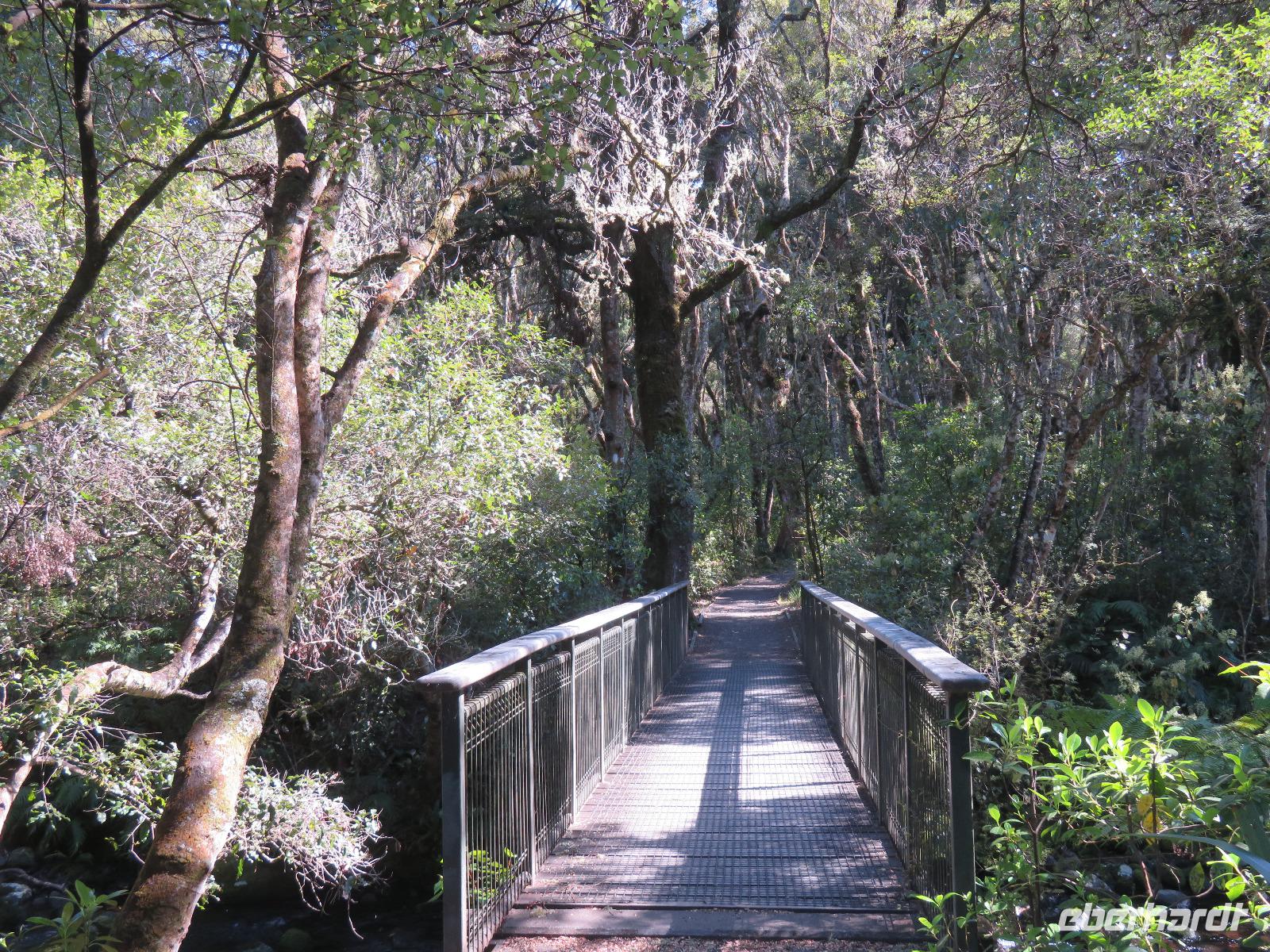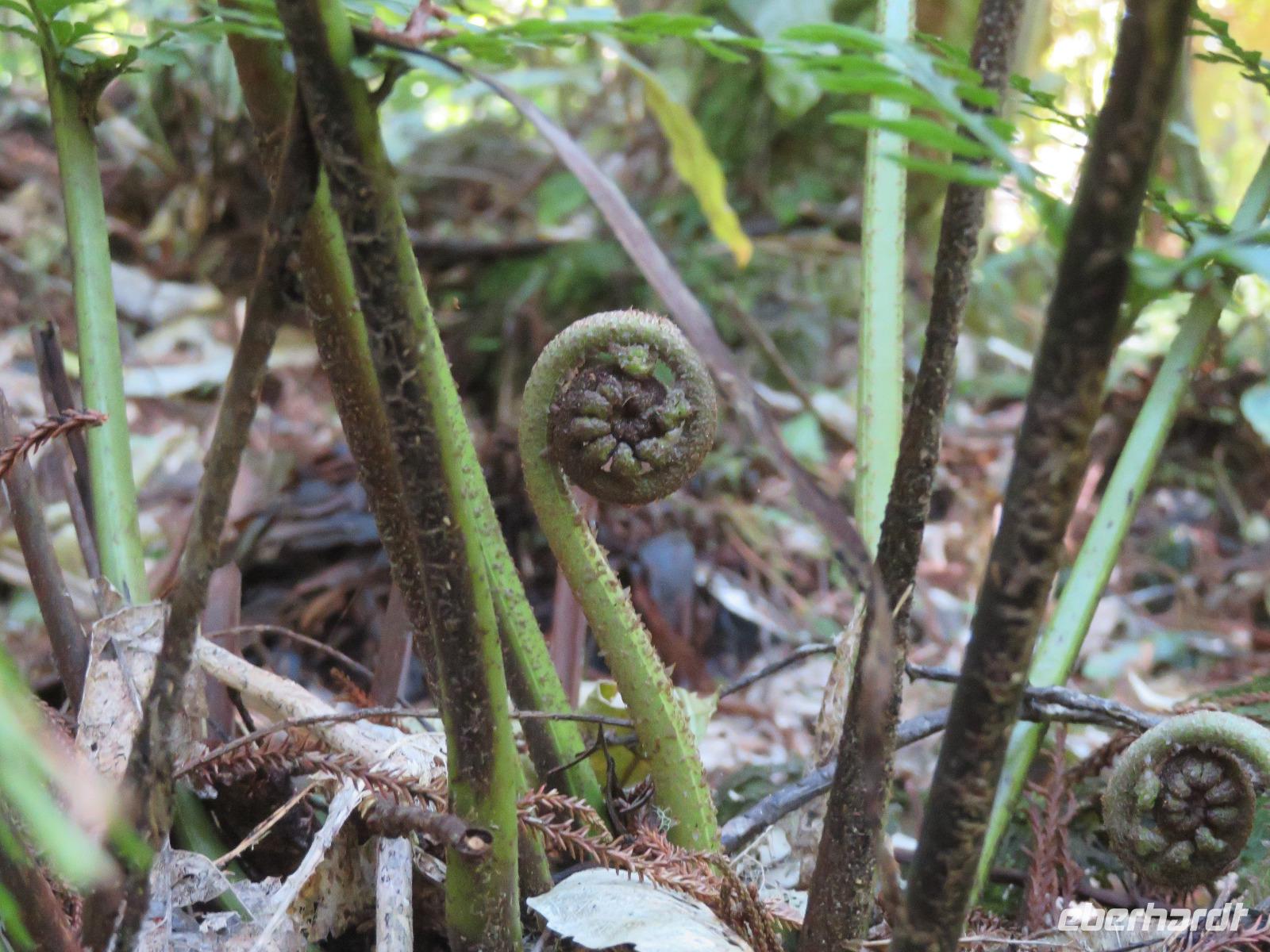Als hätten wir etwas zu viel Jagdwurst gegessen sind wir schnell wieder an der Weggabelung angekommen, an der wir uns von der Gruppe getrennt haben. Über viele Stufen gelangen wir die die steile Felswand hinunter und blicken auf den hübschen Taranaki-Wasserfall. Der Weg führt uns schließlich durch den Wald mit einer etwas abwechslungsreicheren Vegetation - Nach insgesamt 15 Kilometern und fünfeinhalb Stunden Laufzeit erreichen unsere platten Füße das Hotel wieder. Den Weg zum Dinner und an die Bar finden wir zum Glück auch ohne jede weitere Anstrengung!