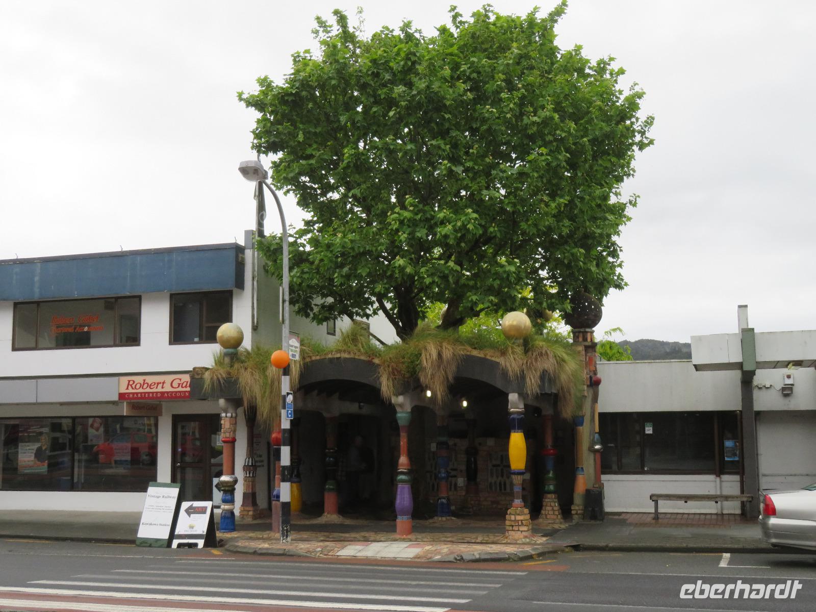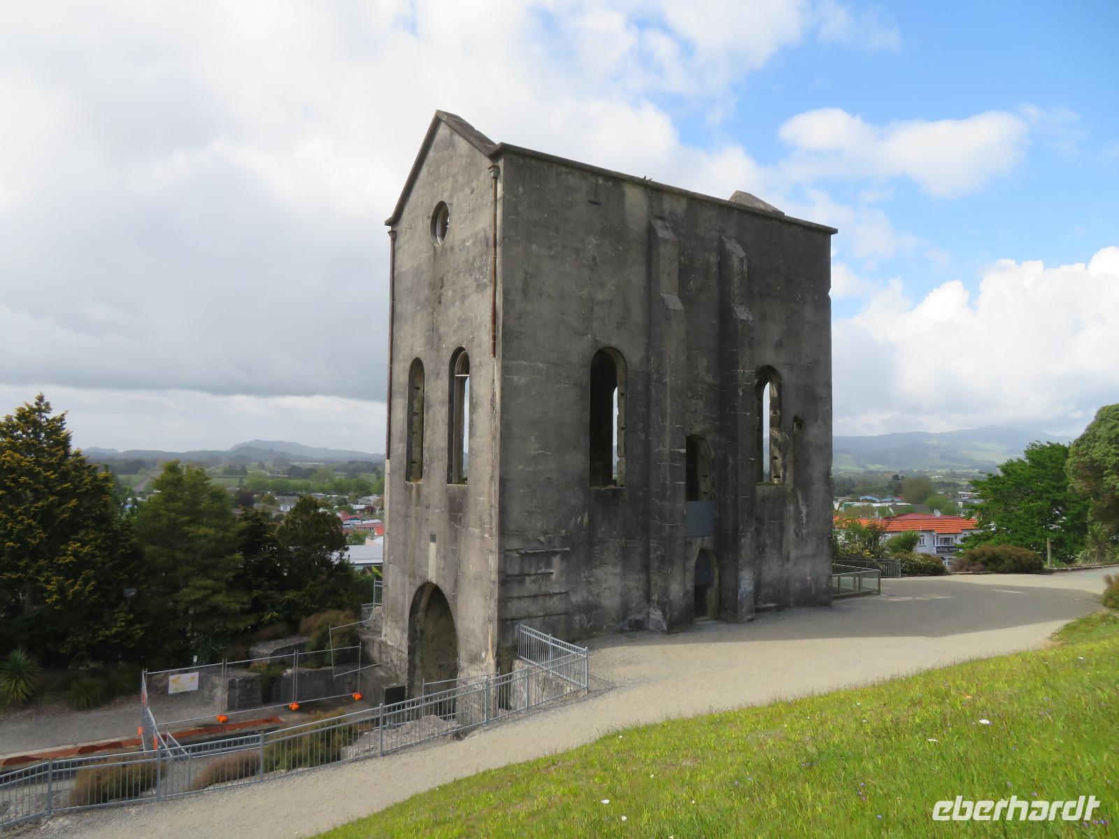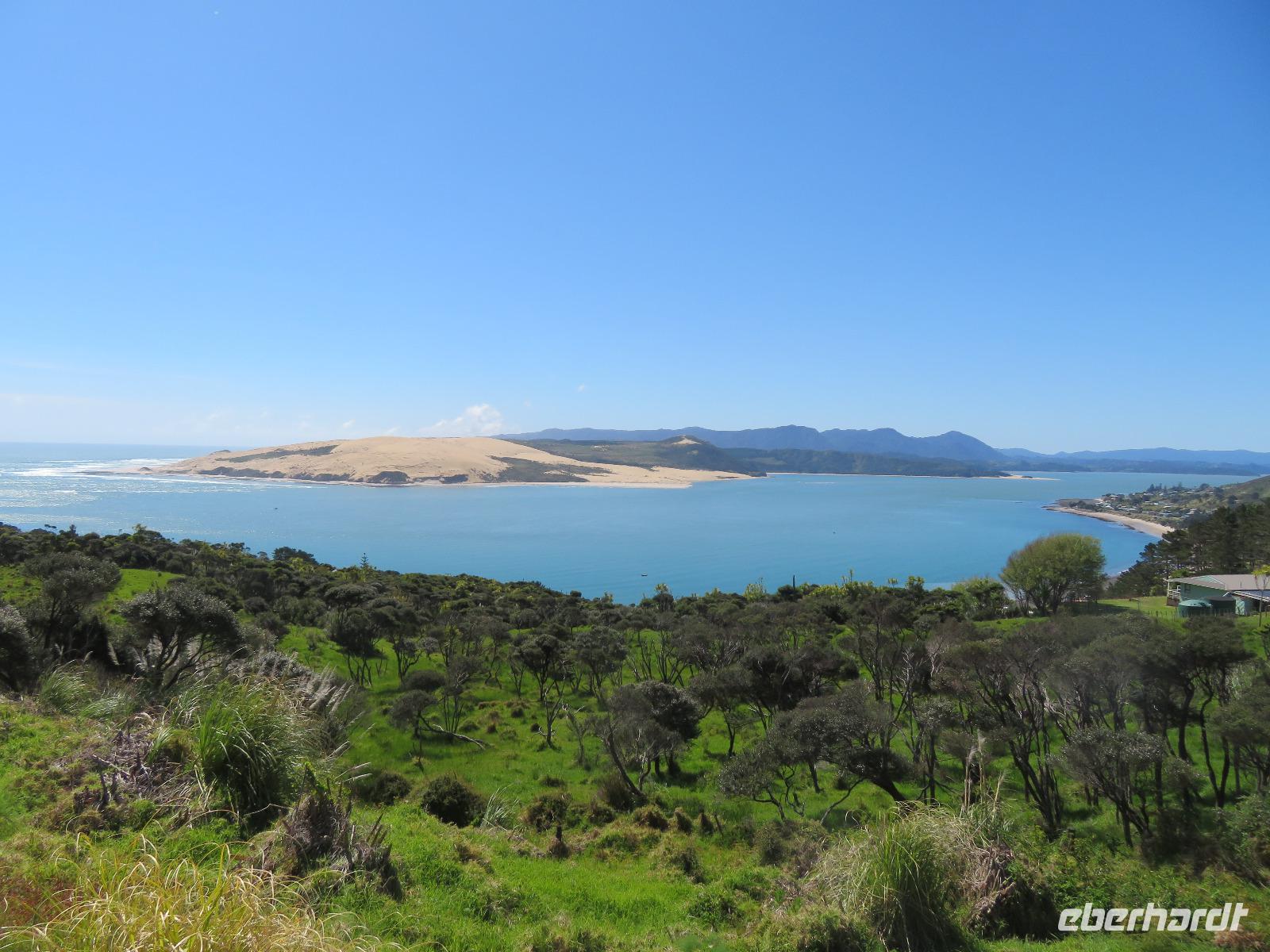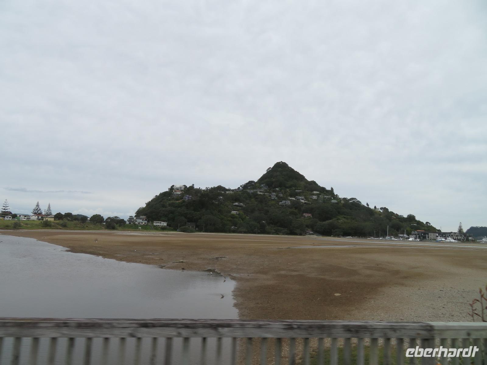 Es zieht uns wieder südwärts - nach dem Frühstück werden die Koffer wieder in den Bus geladen und wir ziehen wieder gemeinsam los. Diesmal über Kawakawa, mit Besuch der berühmten Hundertwasser-Toilette und Whangarei. Zwischendrin einen kleinen Schrecken in Bezug auf Kameraverschluckende Bussitze... Vorbei noch einmal an Wellsford und Auckland, bis wir südlich von Auckland auf „Neuland" treffen. Es zieht uns auf die Coromandel-Halbinsel. In der Ferne sehen wir schon die Bergkette der Coromandel Range, die sich über die komplette Halbinsel ausdehnt. In Thames, einem ehemaligen Goldgräber Städtchen, sehen wir auch heute noch alte historische Gebäude, wie die alte Minenschule. Ab hier schlängeln wir uns mit den Serpentinen durch die Hügel bis nach Tairua. Die Coromandel ist auch sehr unter den Aucklandern als Ferienziel beliebt. Viele Häuschen sind als Ferienwohnung zu mieten und es gibt sogar einen kleinen Flughafen. Wie schön es hier ist, das sehen wir besonders gut vom Paku Hill aus. Nach einem kurzen aber steilen Soaziergang haben wir von etwa 150 Metern aus eine tolle 360° Sicht über die Bucht und die Region. Wir sind neugierig, was uns morgen in dieser malerischen Umgebung noch erwarten wird. Den Abend lassen wir gemeinsam beim Essen im „The Pepe" ausklingen.