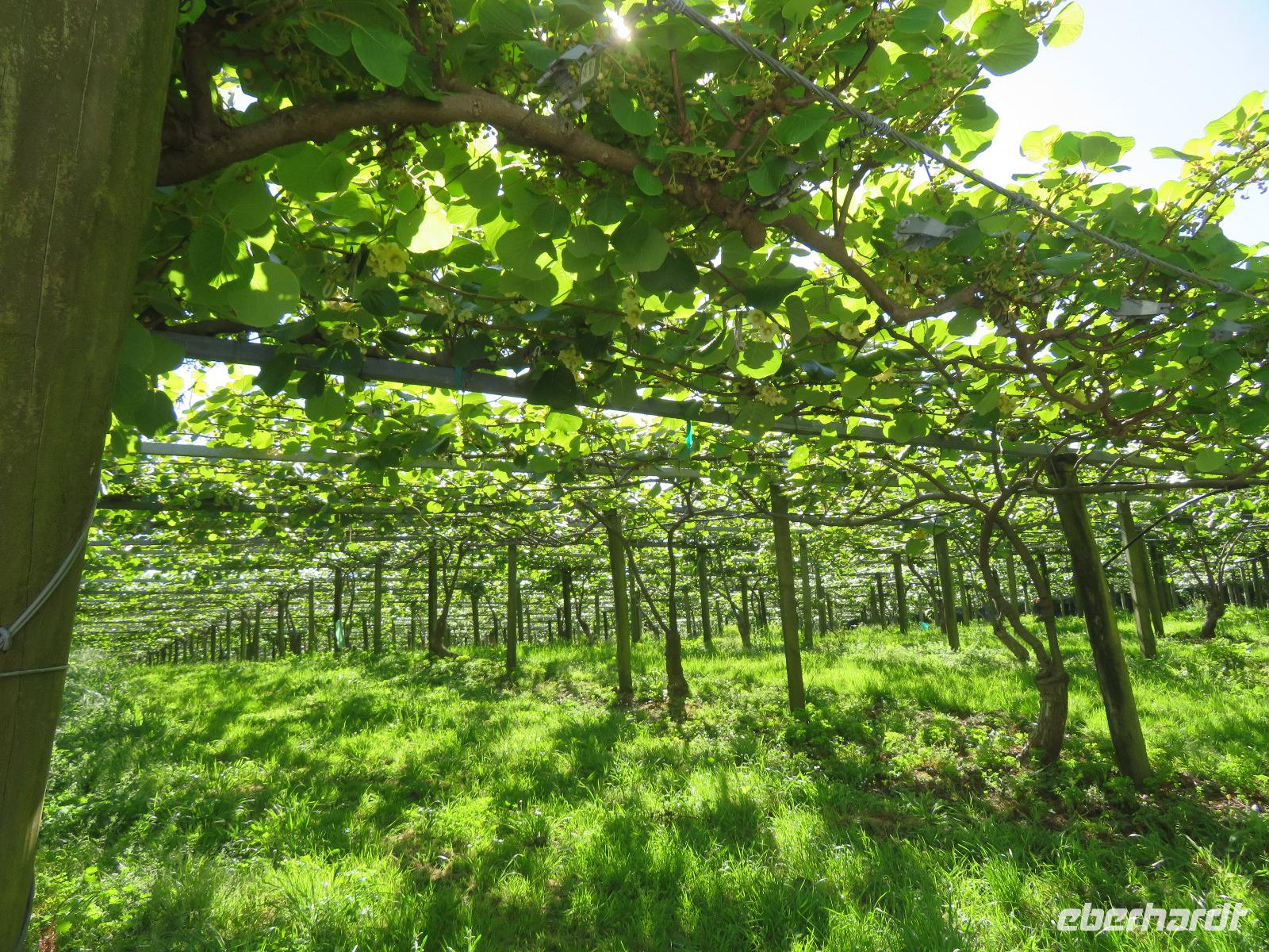 Nach einem entspannten ersten selbstgemachten Frühstück und ausgestattet mit Badetuch und Schaufel machen wir uns auf den Weg die Coromandel Halbinsel zu erkunden. Unterwegs halten wir an einer Plantage und Bernd zeigt uns dort die Kiwibäume, leider noch ohne richtige Kiwi-Frucht, dafür ist es noch etwas zu früh...