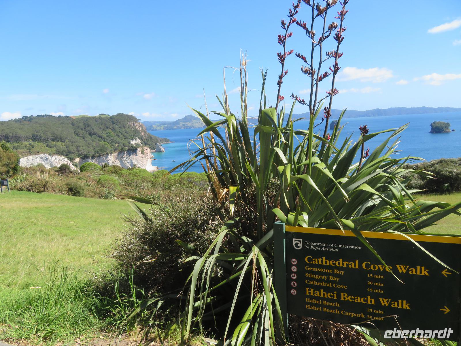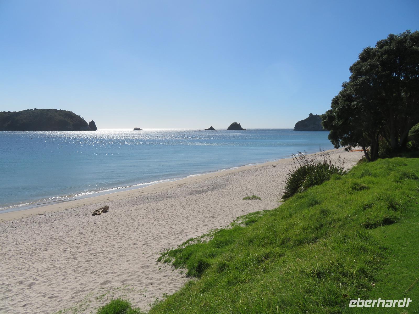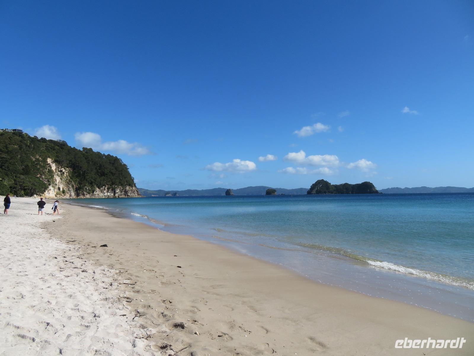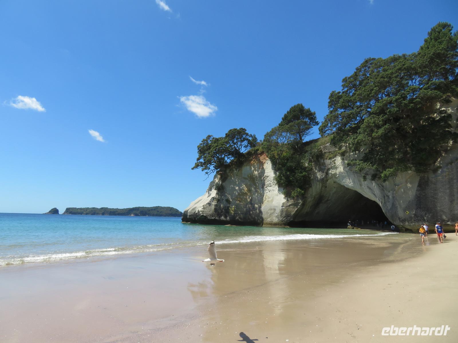 Unser erstes Ziel soll die Cathedral Cove sein, doch zuvor stimmen wir uns bereits am Hahei Beach auf Sonne, Strand und Pazifik ein - einfach unbeschreiblich schön, so fast allein an einem so langen Sandstrand zu sein, ohne mit Handtüchern reservierte Liegen vorzufinden...