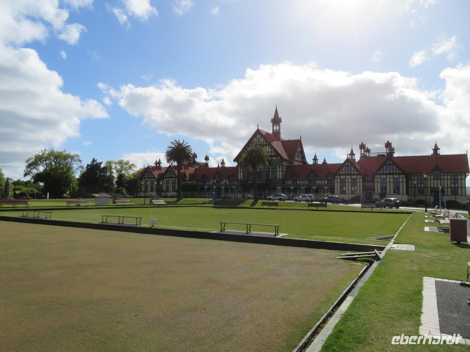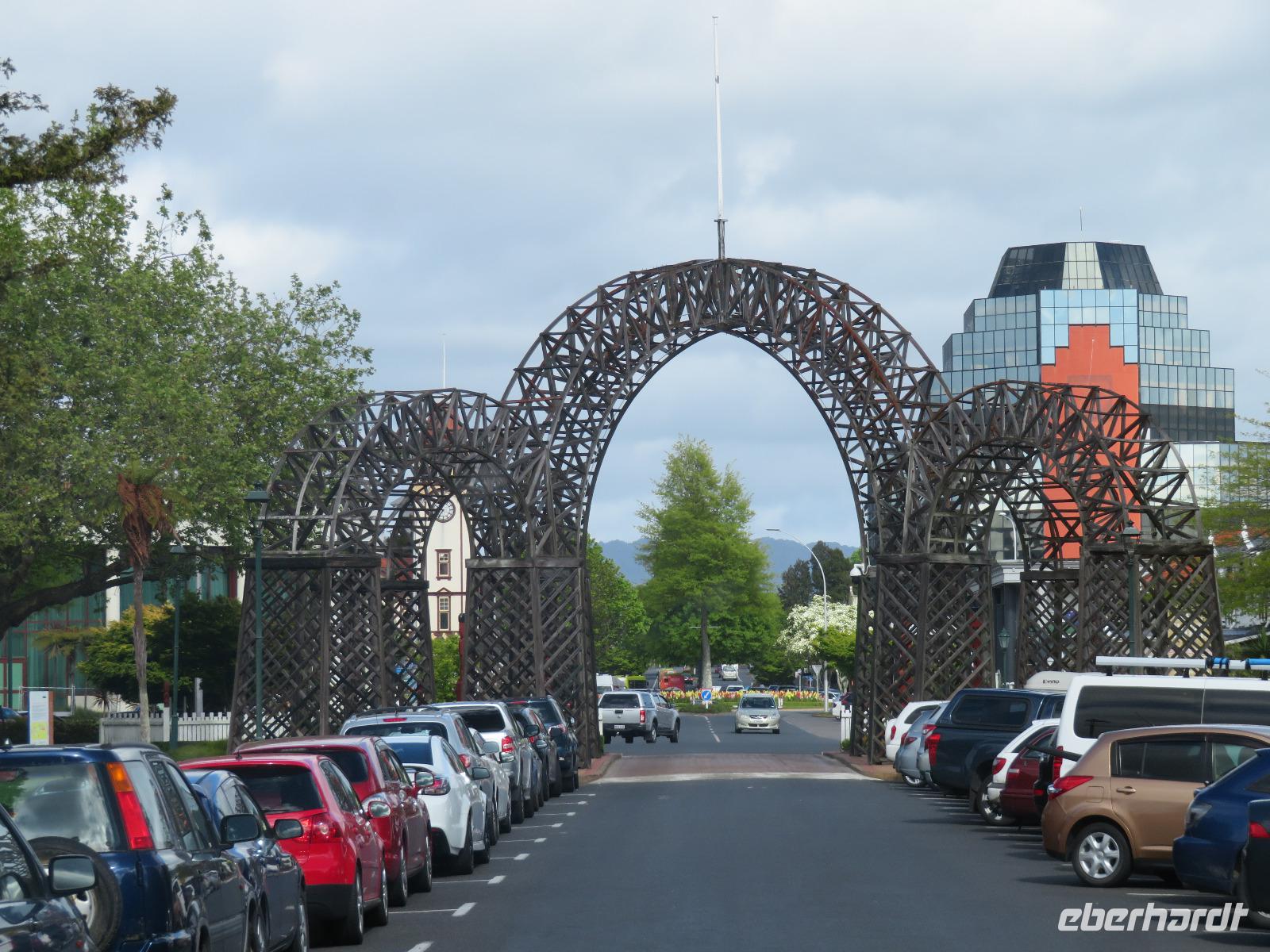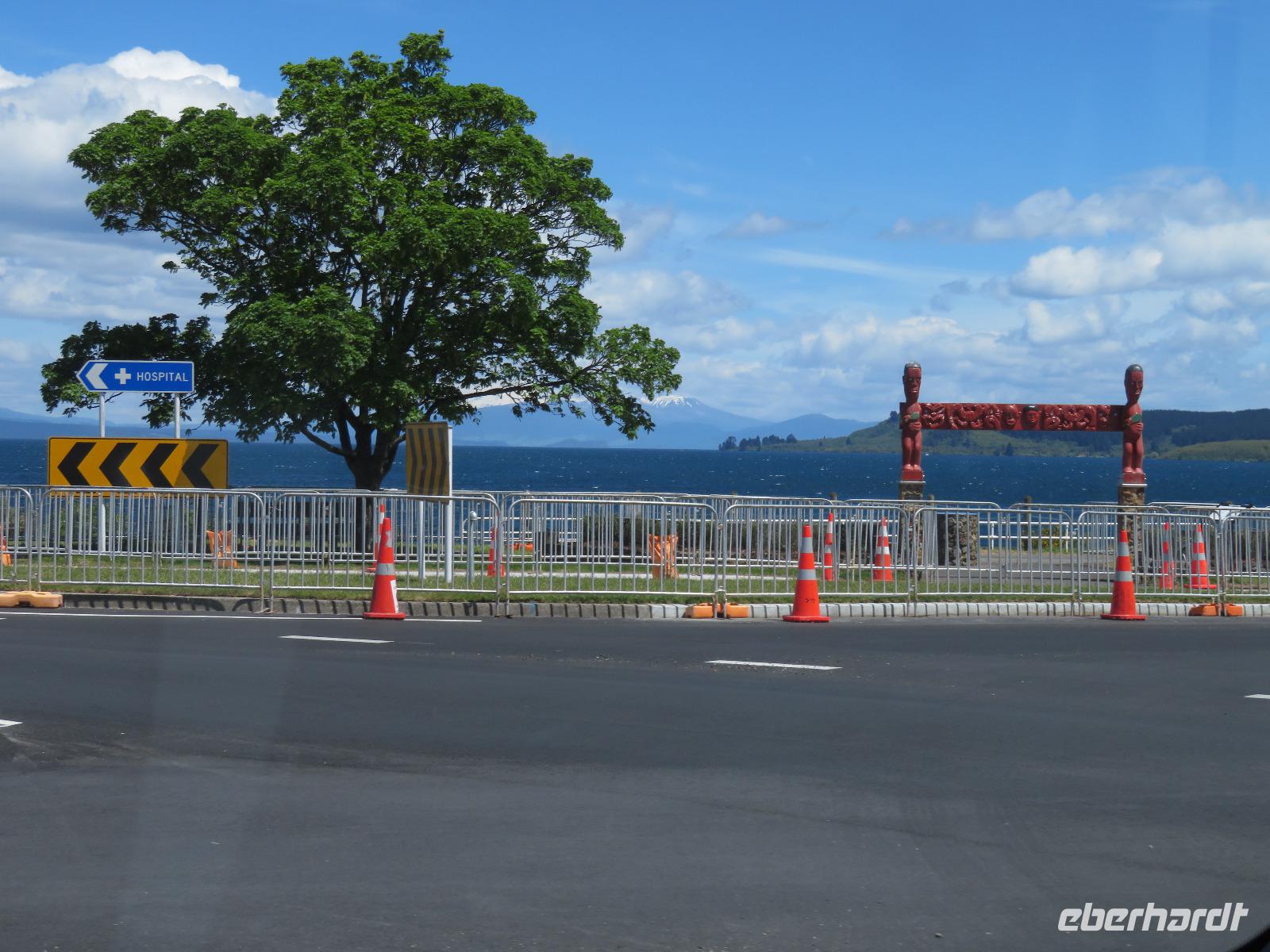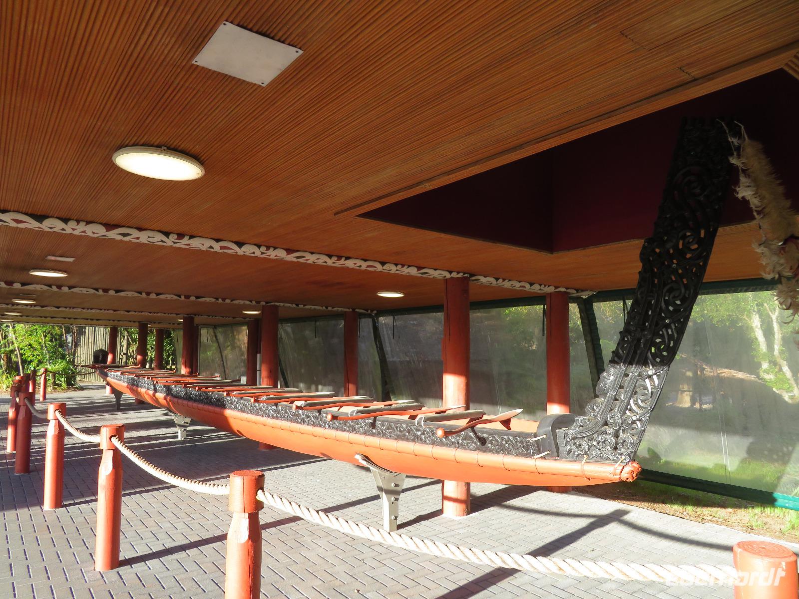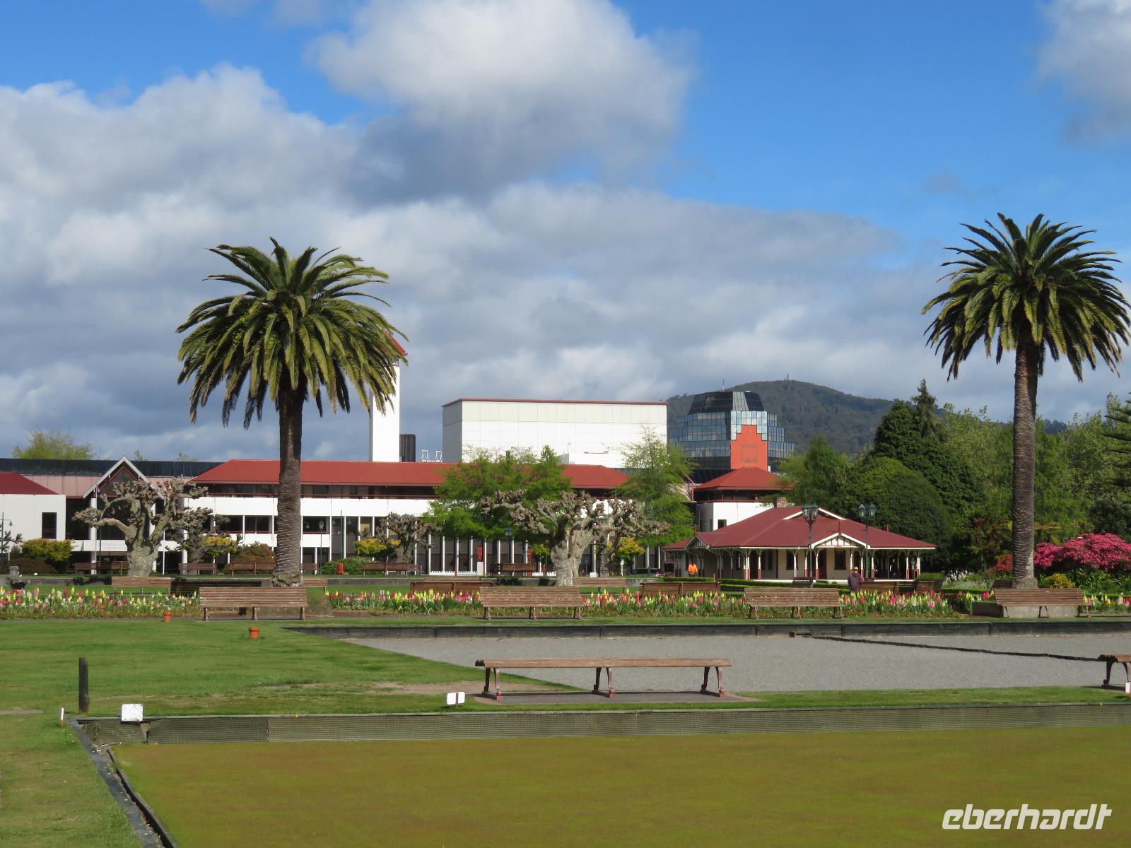 Leider müssen wir uns heute schon wieder von unserem „Urlaub am Strand" verabschieden und setzen die Reise weiter in die Inselmitte fort. Auf Weg passieren wir einige kleine Ortschaften wie Waihi, einer weiteren Goldgräberstadt. Hier ist das Thema aber noch brandaktuell und wir sehen eine riesige Mine, eingezäunt und der letzte Erdrutsch noch gut sichtbar. Unsere Mittagspause legen wir im Auenland ein, in der Kleinstadt Matamata. Hier kommen wir Peter Jacksons Trilogie „Der Herr der Ringe" und „Der Hobbit" etwas näher - stilecht ist auch das Besucherzentrum. Wir nähern uns schließlich unserem Tagesziel Rotorua, besuchen vorher jedoch das Geothermalgebiet Wai-O-Tapu. Spätestens hier steigt uns auch der markante Schwefelgeruch in die Nase. Bei einem ausgiebigen Rundgang bewundern wir die farbenfrohen Pools, heißen Quellen und bizarren Krater. Zurück in Rotorua steht der Abend ganz im Zeichen der Maori-Kultur, denn diese Region gilt auch als das Zentrum der Maori. Wir drehen eine kleine Runde durch die Anlage von Te Puia, sehen ein traditionelles Waka, den etwas modernisierten Erdofen, in dem unser Abendessen zubereitet wird. Nach der Willkommenszeremonie durch den Chief und seine Krieger, erhalten wir mit Tänzen und Gesang einen Eindruck der polynesischen Kultur. Schließlich können wir am Buffet reichlich schlemmen. Zum Abschluss soll der Pohutu-Geysir noch eine eindrucksvolle Wassersäule in den nächtlichen Himmel spucken, aber scheinbar ist das Abendessen auch bei ihm heute etwas ausgiebiger ausgefallen...