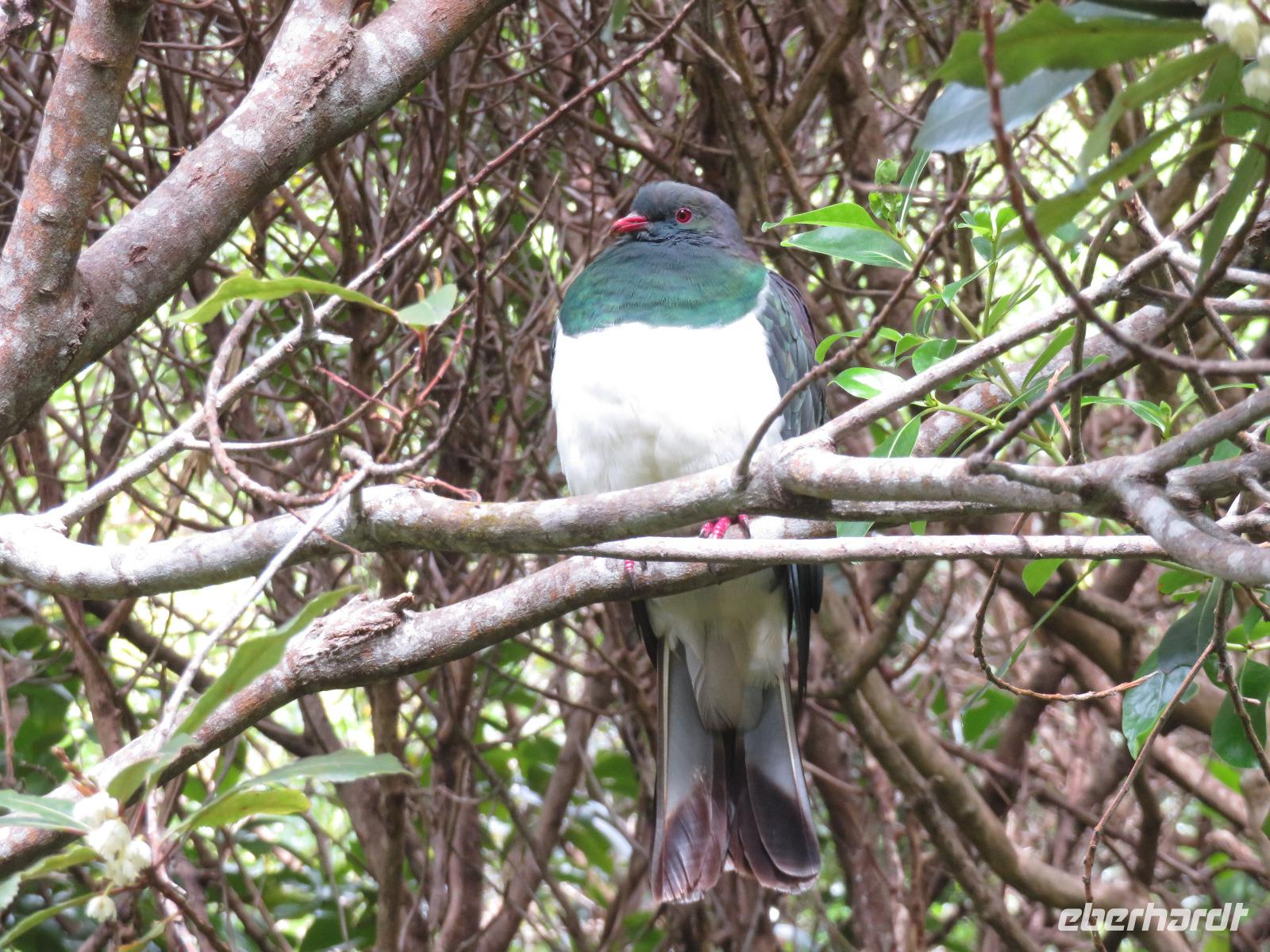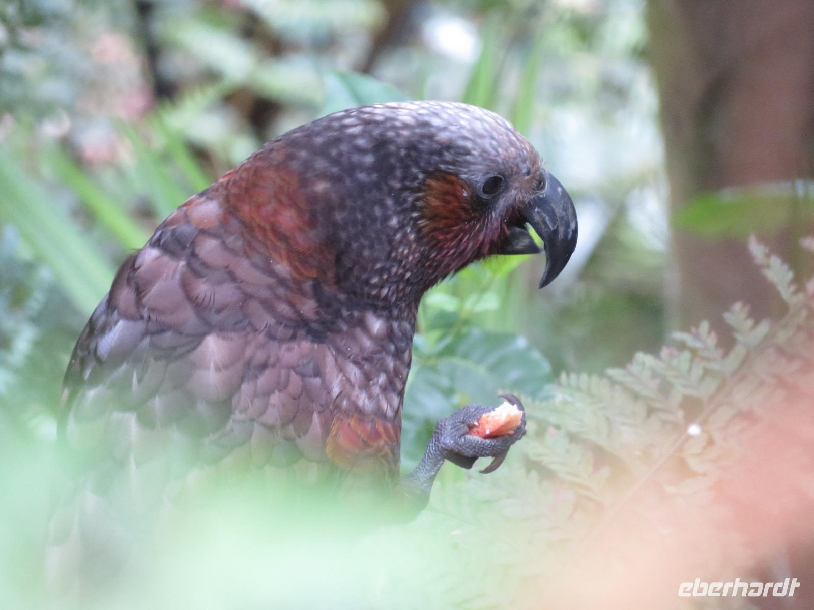 Für den krönenden Abschluss auf der Nordinsel fahren wir heute Morgen mit dem Boot auf die Naturschutzinsel Kapiti. Kapiti ist seit 1998 komplett frei von Plagegeistern, es gibt keine Possums, Ratten, Mäuse die die Eier der seltenen Vögel auf der Insel bedrohen, aber auch kein Vieh, wie Ziegen, Schafe oder Kühe. Über die letzten Jahre hat sich der Wald auf Kapiti so gut erhohlt, dass sich die heimische Tierwelt auch wieder wohl fühlt. Auf Kapiti leben mittlerweile wieder der seltenen Takahe, der Kiwi, der Waldpapagei, genannt Kaka und viele kleinere Singvögel wie der Bellbird, Tieke oder Fantail. Nach einer kurzen Einführung in die Geschichte der Insel durch unseren Guide Robert, gehen wir dann auf eigene Erkundungstour. Gleich zu Beginn werden wir von der Waldtaube, Kereru, begrüßt. Weitere Wegbegleiter sind der Tui, Fantail und Bellbird auf unserem Weg zur Futterstation. Einige von uns haben sogar so viel Glück und erspähen im dichten Laubwerk den Ruru, die kleine Eule. An der Futterstation angekommen werden wir bereits vom neugierigen Kaka erwartet, der sogar so frech ist und einem das Sandwich aus der Hand klaut. Mit seiner Beute zieht er sich dann auf den Baum zurück. Umzingelt von Weka, Bellbird, Kaka und Hihi, dem Stichbird, genießen wir unseren Mittagssnack bevor wir uns wieder auf den Weg machen und zum Strand hinuntergehen. Ein wahres Konzert begleitet uns dabei. Unten am Unterstand wieder angekommen bleibt noch etwas Zeit um sich über das Gesehene zu unterhalten und ein paar weitere Bilder zu schießen. Schließlich geht's zurück an Land nach Paraparaumu. Es trennen uns nun nur noch knapp 50 Kilometer bis zur Hauptstadt Wellington. Über Port Nicholson fahren wir in die quirlige Stadt. Bernd zeigt uns zunächst das Regierungsviertel mit dem Beehieve und den anderen imposanten Gebäuden. Leider wird die alte St. Pauls Cathedral zurzeit restauriert und so können wir sie nur von außen bewundern. Weiter geht's durch die Stadtviertel, „Wolkenkratzer" und kleine alte Häuser die an längst vergangene Zeiten erinnern prägen ein ganz außergewöhnliches Stadtbild. Vom Mt. Victoria aus haben wir dann einen tollen Überblick über die Bucht und das umliegende Gebiet. Nach unserer Stadtrundfahrt ist es Zeit im Hotel einzuchecken, etwas zu verschnaufen um dann gemeinsam entlang der Waterfront zu unserem Restaurant zu spazieren. Die Zeit auf der Nordinsel verging nahezu wie im Flug. Doch uns erwarten noch zwei weitere spannende uns sicher erlebnisreiche Wochen auf der Südinsel.