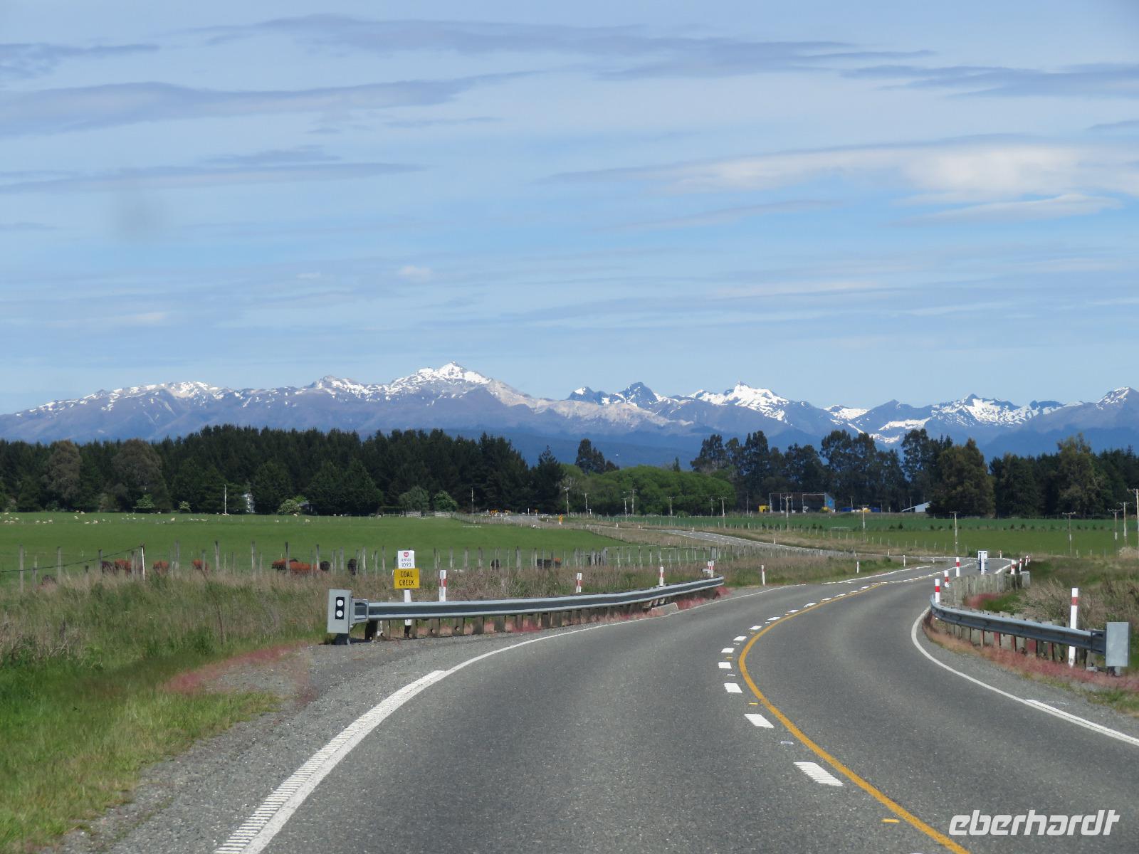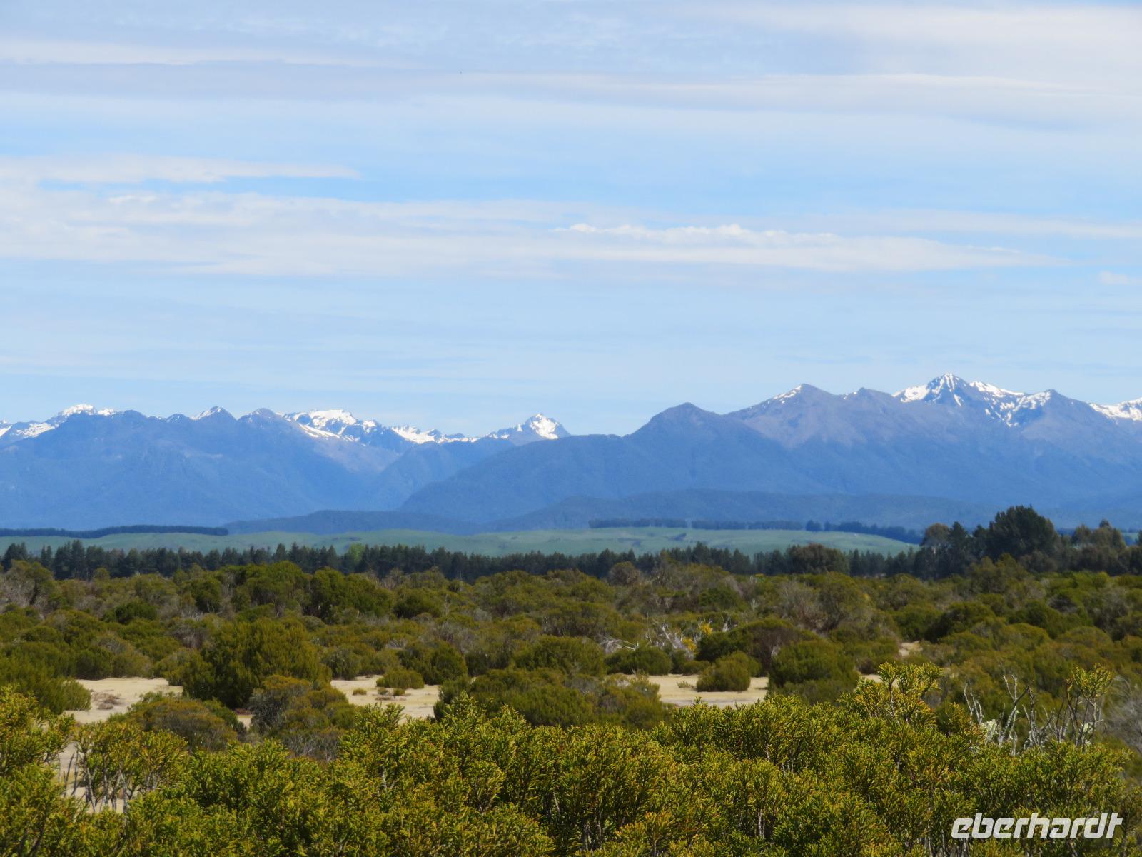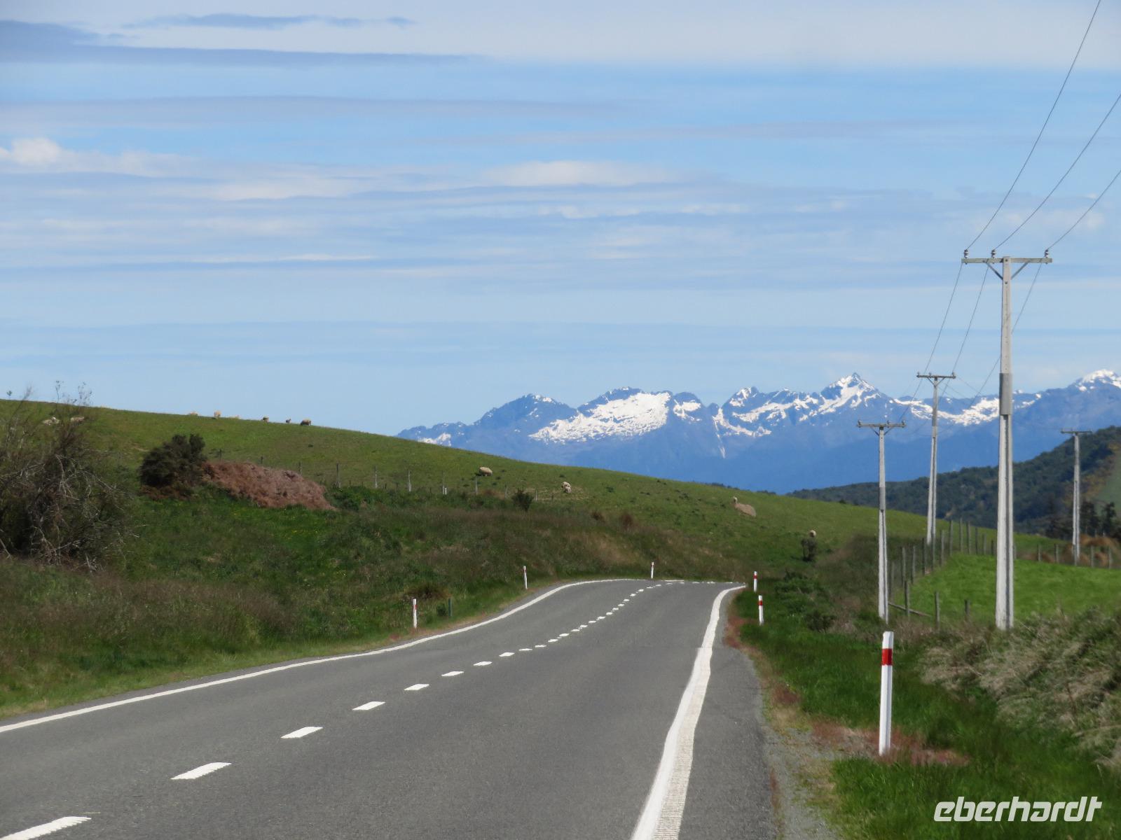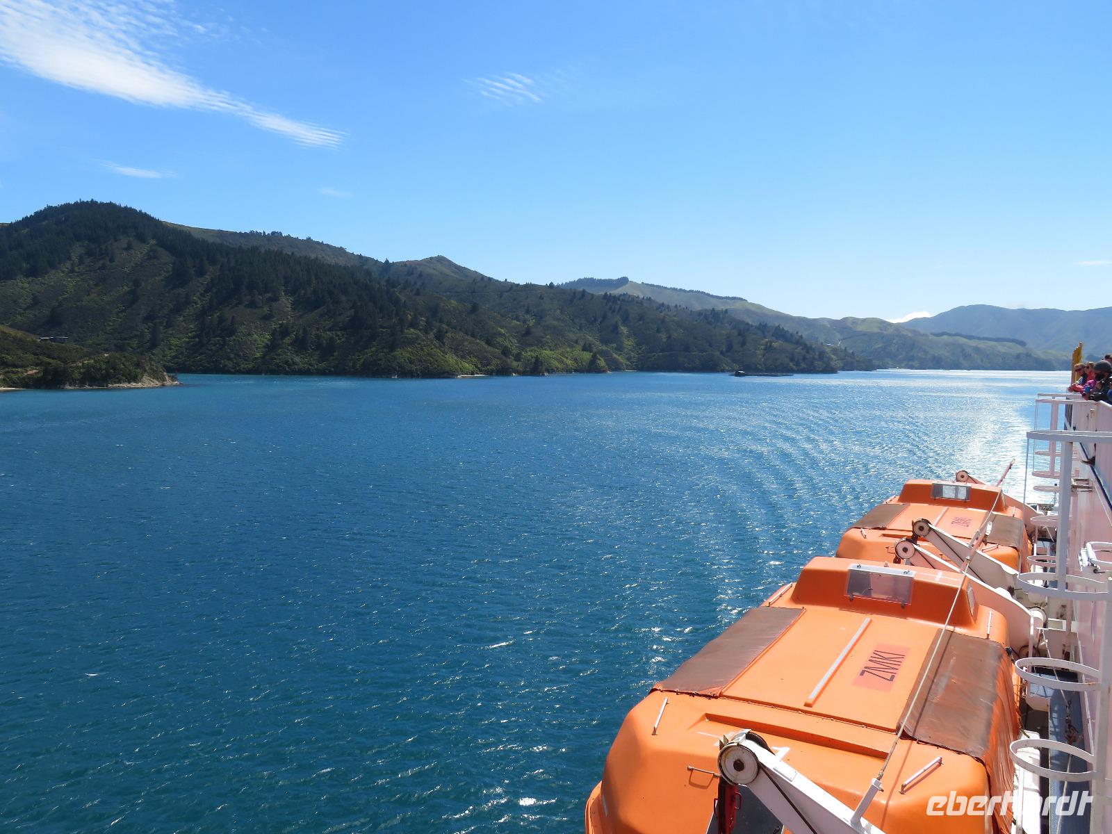 Früh am Morgen treibt uns Bernd heute aus den Federn, noch mit den letzten Schlafsandkrümel fahren wir durch das gerade erwachende Wellington. Die Fähre Kaitaki, aus der Interislander-Familie, welche übrigens auch die größte Fähre ist, bringt uns bei ruhiger See in knapp dreieinhalb Stunden und mit etwas Verspätung auf die Südinsel nach Picton. Wir halten uns nicht lange auf, fahren über Blenheim ins Wairau Valley, vorbei an unzähligen Weingütern und ihren Weinbergen - immer mal wieder sieht man auch die hohen schneebedeckten Gipfel der umliegenden Bergketten. In St. Arnaud angekommen, statten wir dem Lake Rotoiti einen kurzen Besuch ab. Schwarze Schwäne, junge Entenküken und jede Menge große schwarze Aale heißen uns hier willkommen. Premiere feiern wir heute allerdings mit den kleinen schwarzen Sandflies, ab sofort ist der Insektenschutz im Handgepäck ein wohlgesehener Freund. Weiter fahren wir ins Motueka Vally hinein, Bernds Heimat - und wie gut es ihm hier draußen geht, das lernen wir bei einer Teepause mit selbstgemachen Apfelsaft und Keksen kennen. Schließlich bringt uns Bernd nach Motueka ins Hotel wo wir uns auf unser gemeinsames Abendessen vorbereiten und den ersten Abend auf der Südinsel im Sprig and Fern mit selbstgebrautem Bier ausklingen lassen.