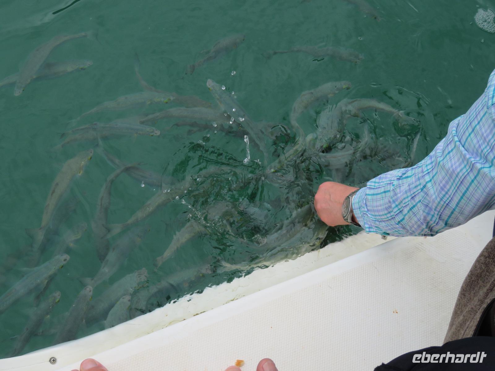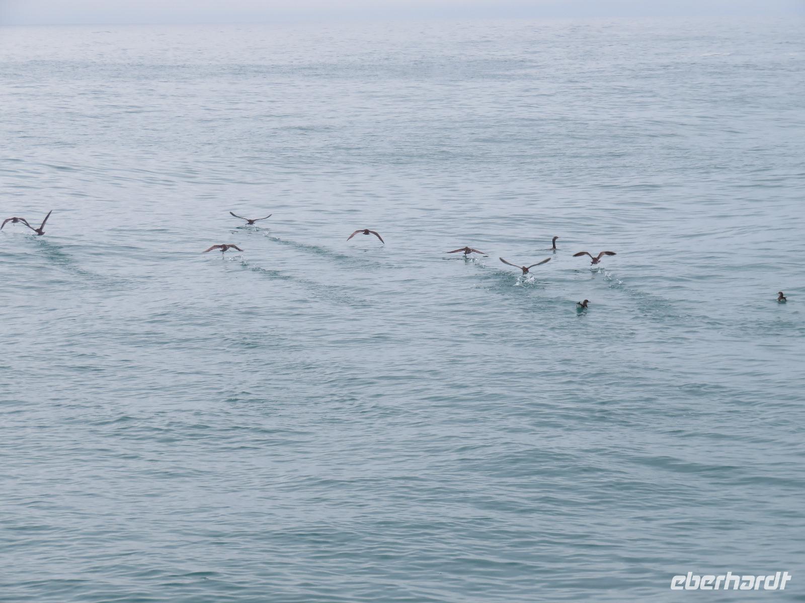 Wir gehen an Bord der Monarch und begeben uns, ausgestatten mit regendichten Jacken und Fernglas, auf „Safari". Albatrosse, Möwen, Seebären und andere Tiere sollen sich hier draußen tummeln - na dann, wo bleibt ihr? Nun muss man sagen, dank des Windes und des Regens haben wir den einen und anderen Albatros tatsächlich segeln sehen, einige sind sogar ganz dicht neben unserem Boot.