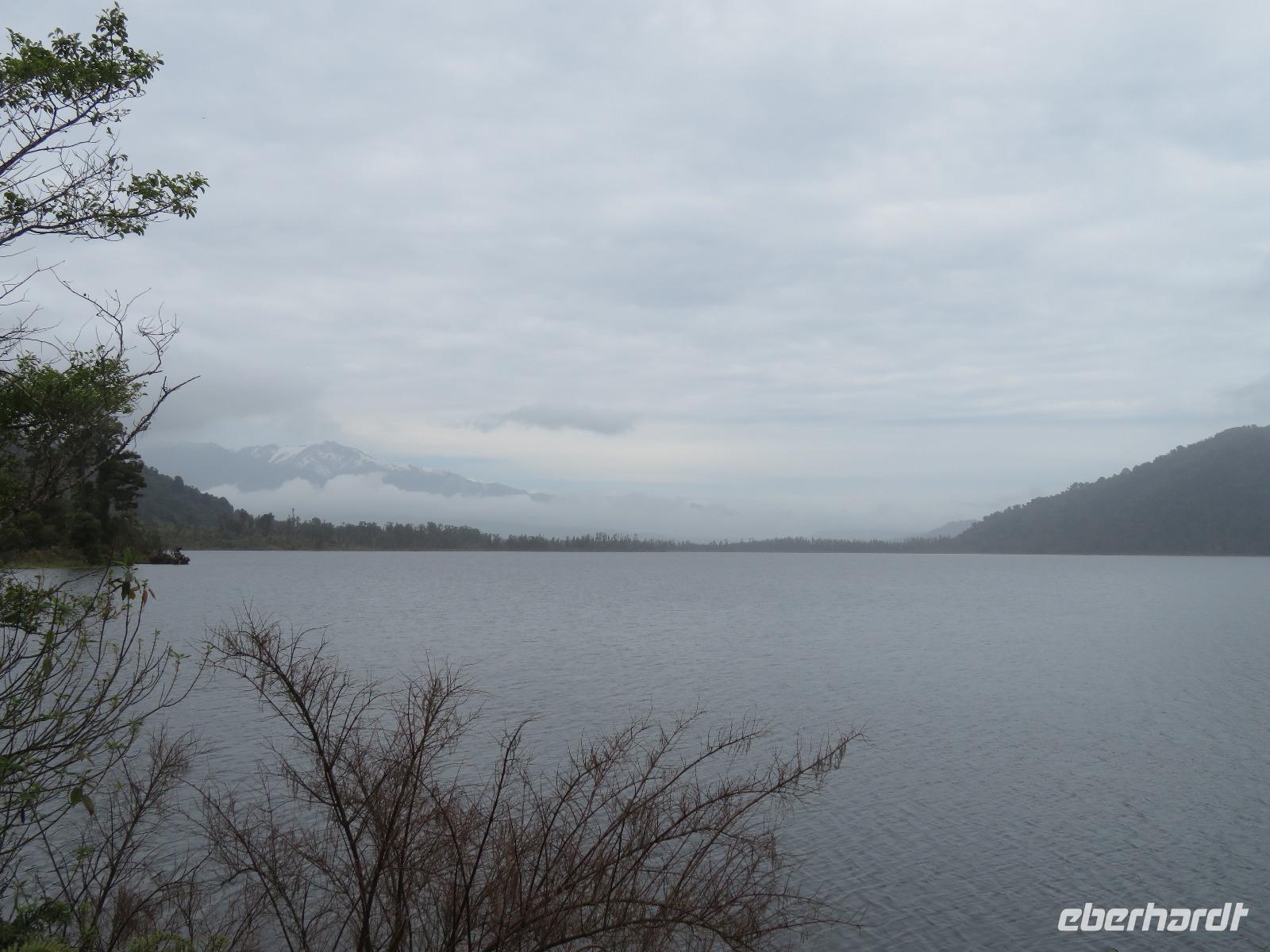 Neuer Morgen - Neues Abenteuer. Doch leider auch heute wieder sehr regnerisch. Die Wolken hängen tief in Te Anau. Und die Nationalparkstraße nach Milford ist eine 120 kilometerlange Sackgasse. Wir halten immer mal wieder an für Fotostopps, zum Beispiel an den Mirror Lakes, die heute aber eher nur die Wolkendecke und ihre Regentropfen spiegeln...