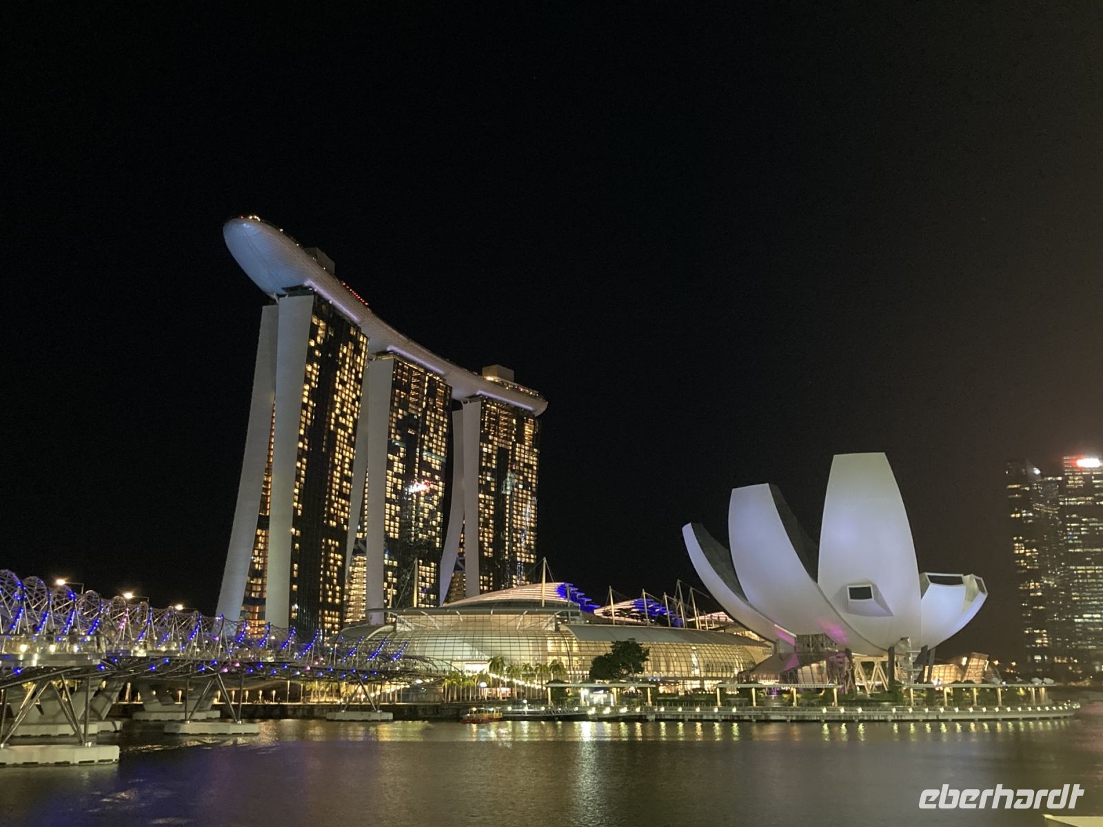 Nach der Ankunft im Hotel am frühen Abend und einem tollen Upgrade machten wir uns zu Fuß auf den Weg in die Löwenstadt. Wir kamen dabei an vielen Sehenswürdigkeiten vorbei und sahen das Marina Bay Sands am Abend sowie den Singapore Flyer außerdem liefen wir über die Helix Brücke. Beim Marina Bay Sands bestaunten wir die Lasershow und im Anschluss das Gardens by the Bay. Im Anschluss daran machten wir uns zu Fuß auf den Rückweg und stoppten an einem Supermarkt für einen späten Snack, Getränke oder etwas zu essen. Dann freuten sich alle auf eine erholsame Nacht.
