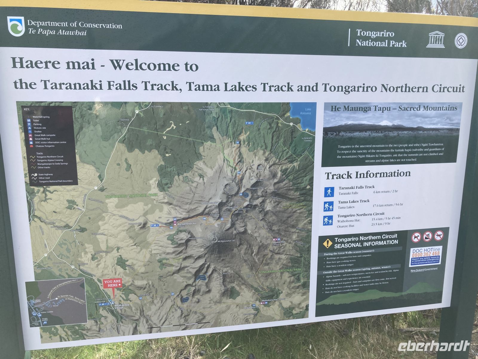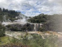 An diesem sonnigen Tag machten wir uns früh auf zu unserer Wanderung im Tongariro Nationalpark. Die Wanderung begann in Whakapapa und führte durch die eindrucksvolle vulkanische Landschaft. Die drei Vulkane: Ruapehu, Ngauruhoe und Tongariro konnte man dabei sehr gut sehen. Das Ziel waren dabei die blau schillernden Tama Lakes. Dort machten wir auch bei einem eindrucksvollen Blick unsere Mittagspause. Es gab eine etwas leichtere (circa 2-3h) und eine mittelschwere Wanderung (circa 5-7h), circa 480 Meter Auf- und Abstieg. Auf dem Rückweg stoppten wir noch bei den Taranaki Falls und liefen weiter durch ein Waldstück zum Hotel. Am Abend erinnerten wir uns bei einem Abendessen an die tollen Wanderungen zurück und ließen den Tag noch einmal Revue passieren.