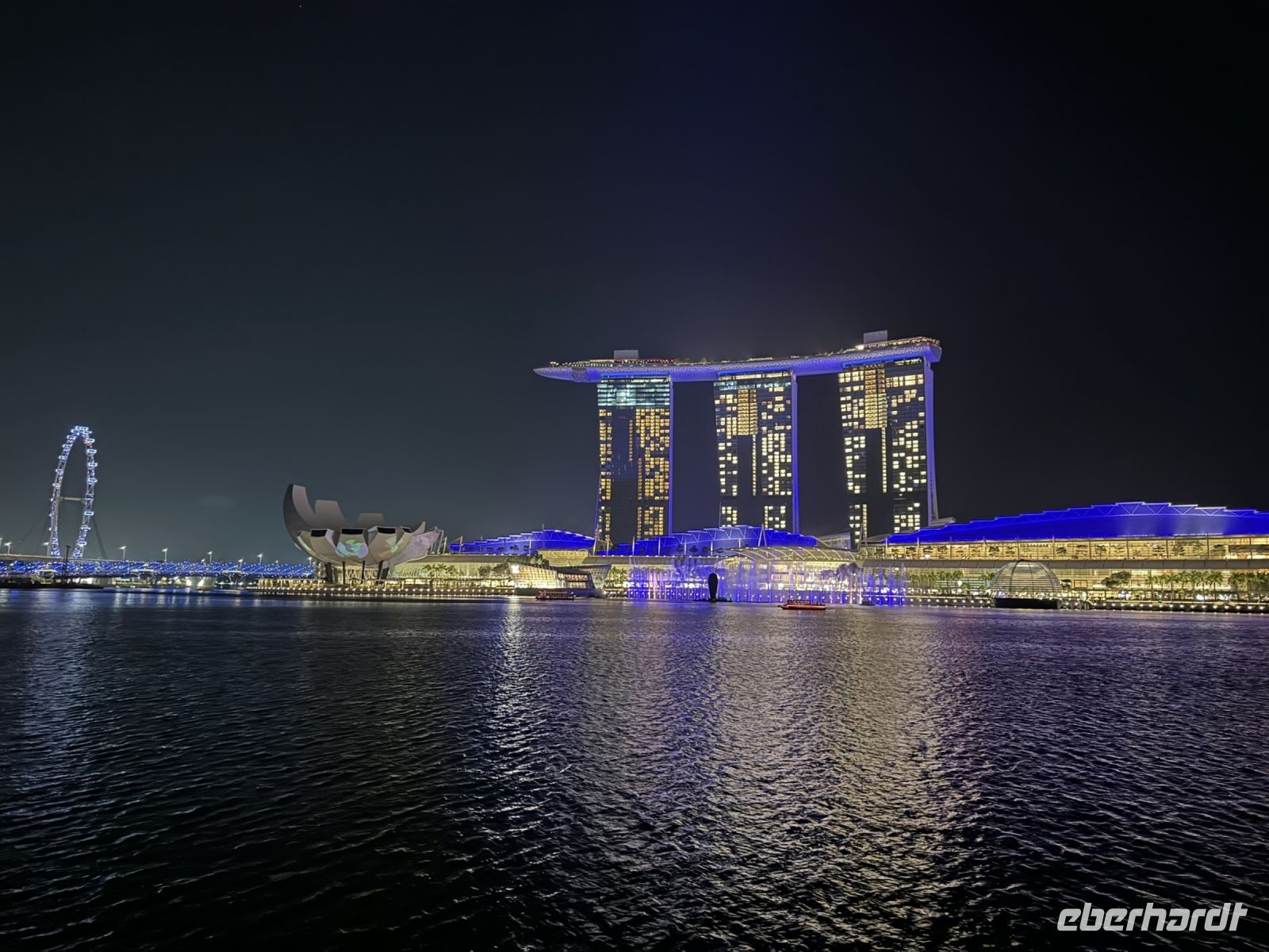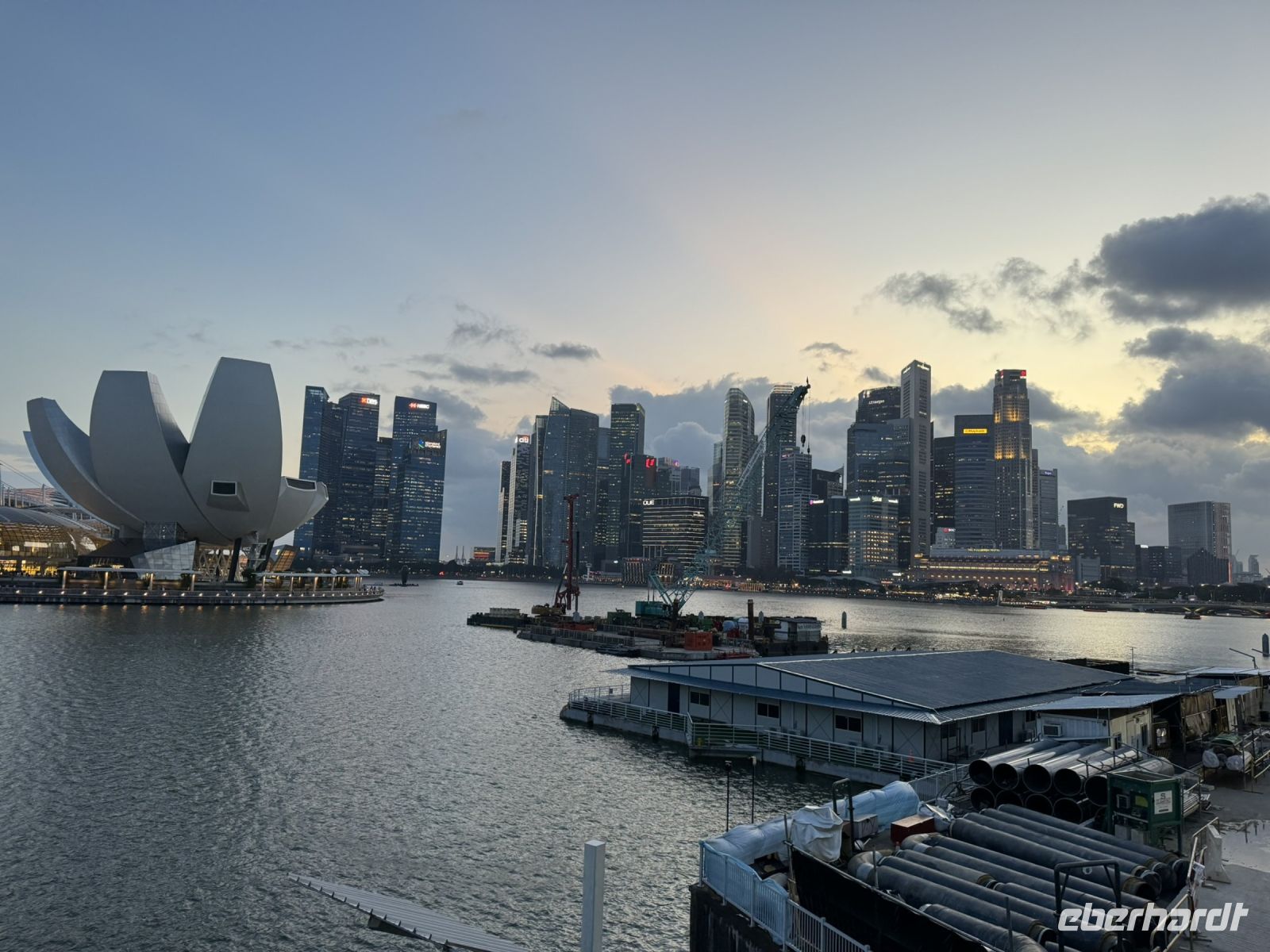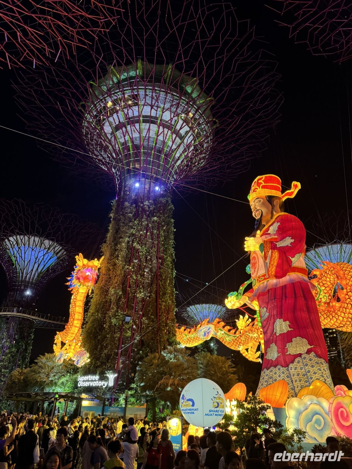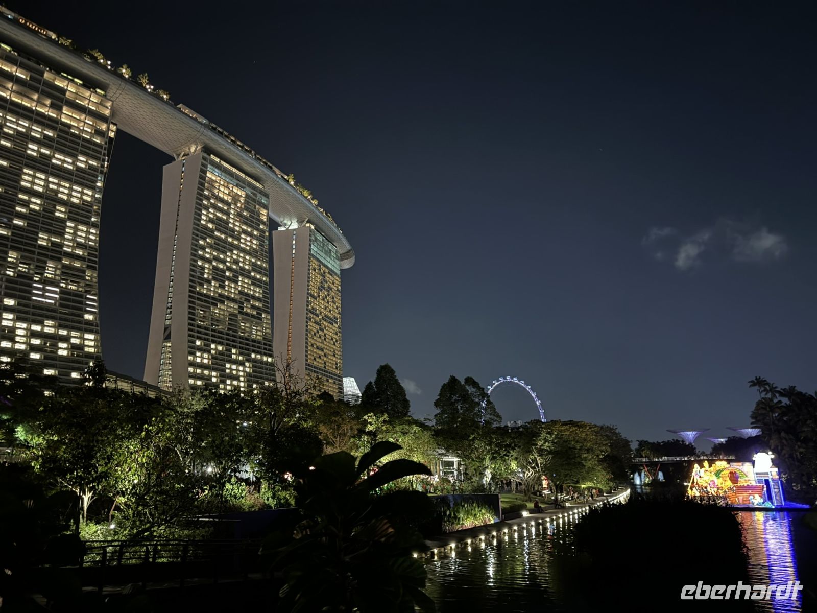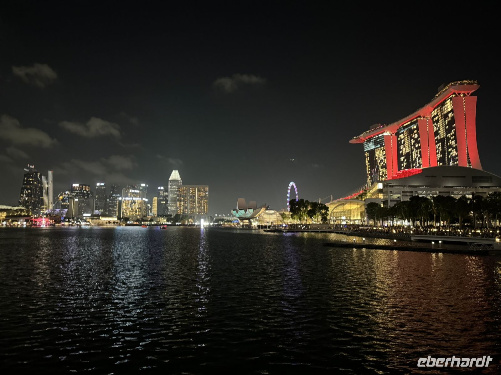 Wir sind über Nacht geflogen und daher war die 12-stündige Flugzeit nicht schlecht. Nach unserer Landung in Singapur haben wir unsere örtliche Reiseleiterin Helena kennengelernt und erste Informationen über die Stadt erhalten, wie z. B.: Singapur erstreckt sich über eine Fläche von ca. 720 km², hat etwa 5,7 Millionen Einwohner und fünf offizielle Sprachen. Wir fanden eine grüne und saubere Stadt vor, mit ihrer spektakulären Skyline und der schönen Bucht. Anschließend sind wir über die Esplanade und die Helix-Brücke zu den Gardens By the Bay gegangen. Aufgrund des chinesischen Neujahrsfestes trafen wir viele Menschen überall an und konnten leider nicht viel von der Show sehen. Dennoch war alles beleuchtet und sehr schön mit verschiedenen Drachen dekoriert, da es das Jahr des Drachen ist. Wir setzten unseren Spaziergang durch die Gartenanlage fort bis zum Hotel und dem Einkaufszentrum Marina Bay Sands. Dort versuchten wir einen guten Platz zu finden, um die beeindruckende Lichtershow mit einem schönen Blick auf die Bucht zu beobachten. Auf eigene Faust nahmen wir den Rückweg auf uns und genossen den Aufenthalt und die Nacht im Hotel.