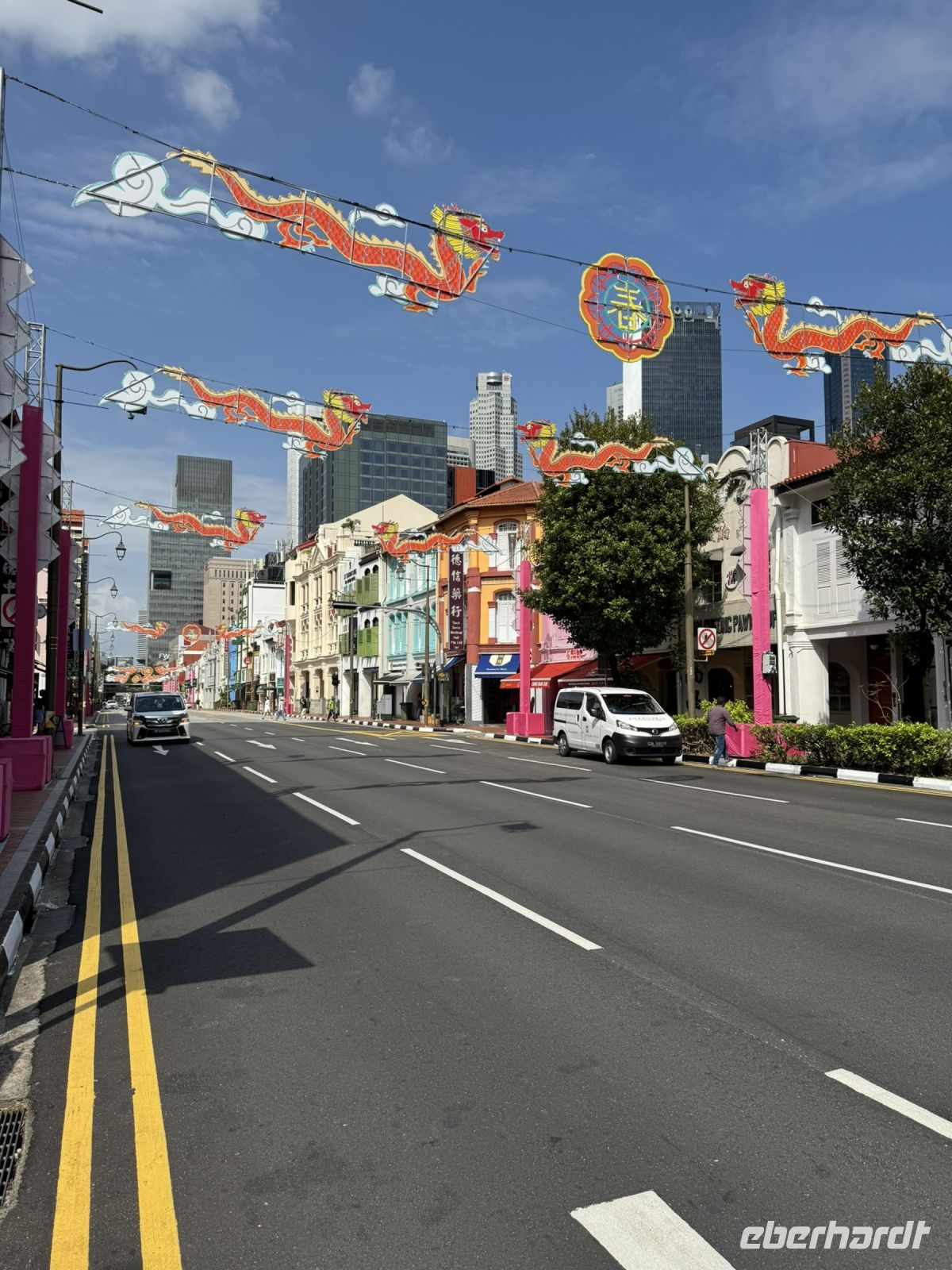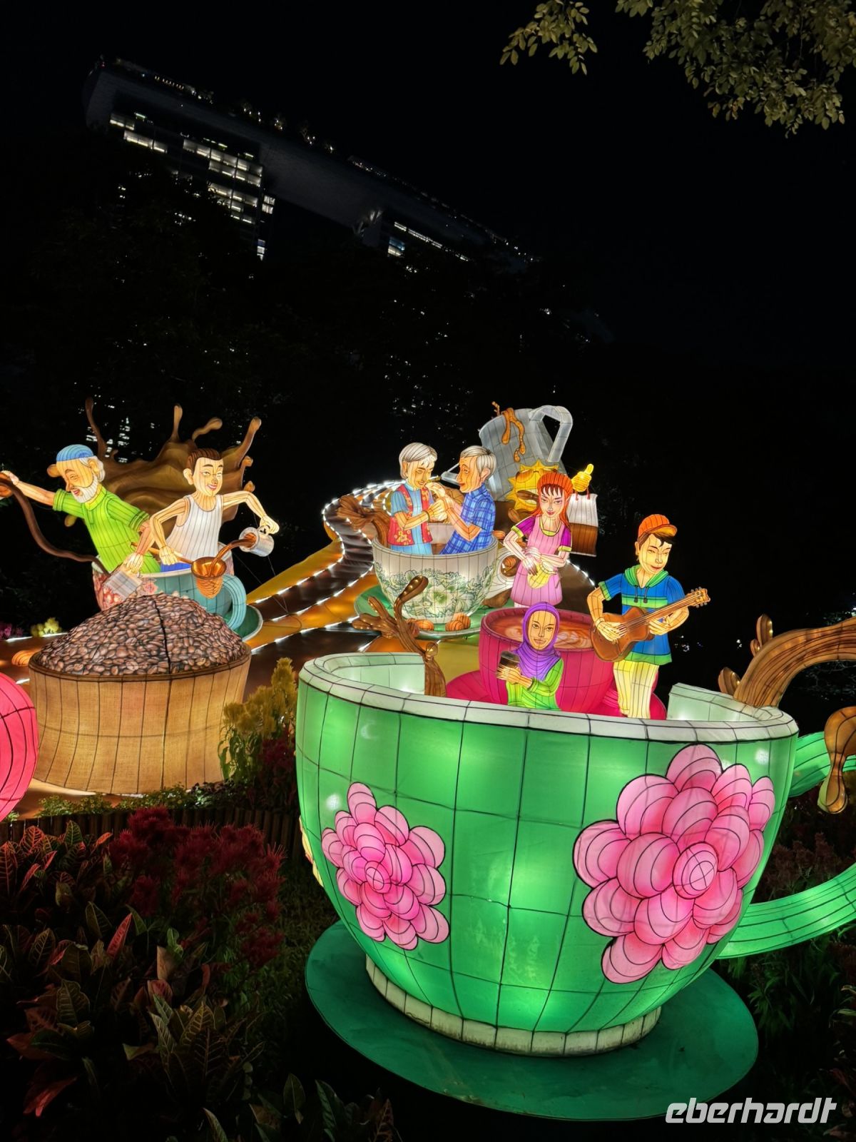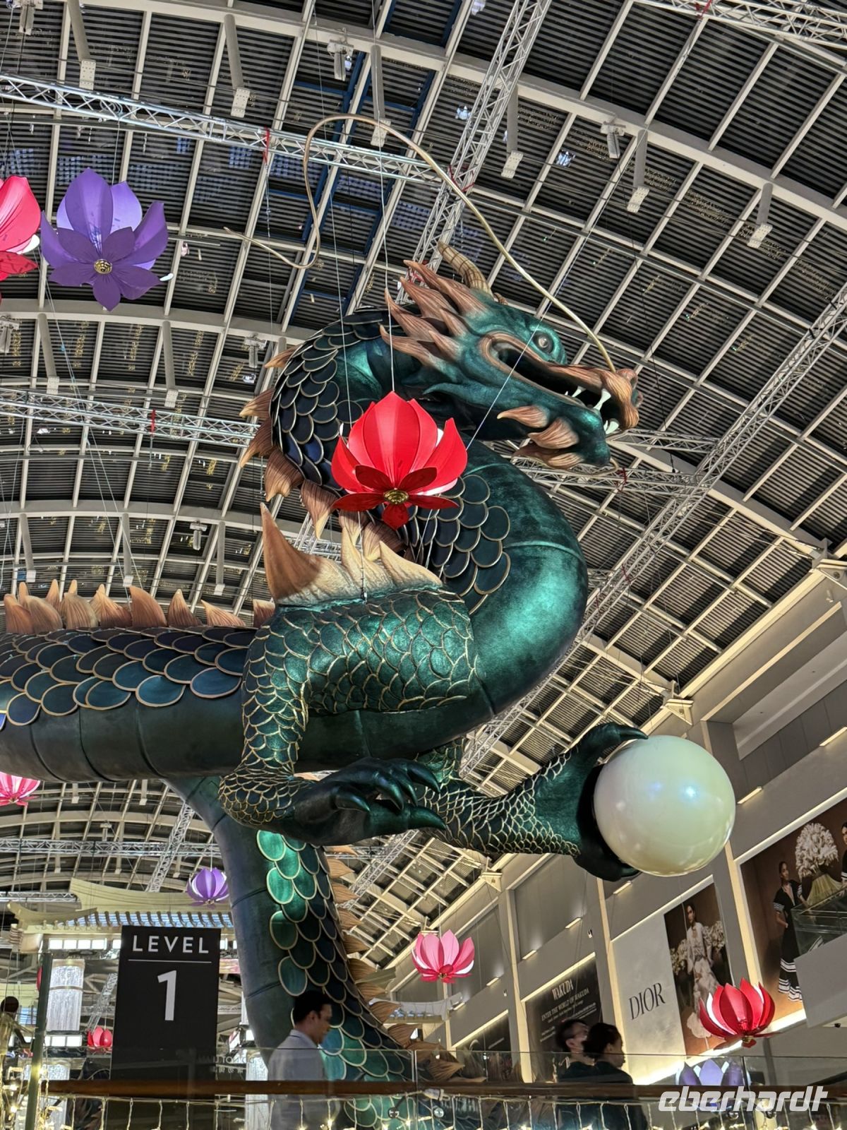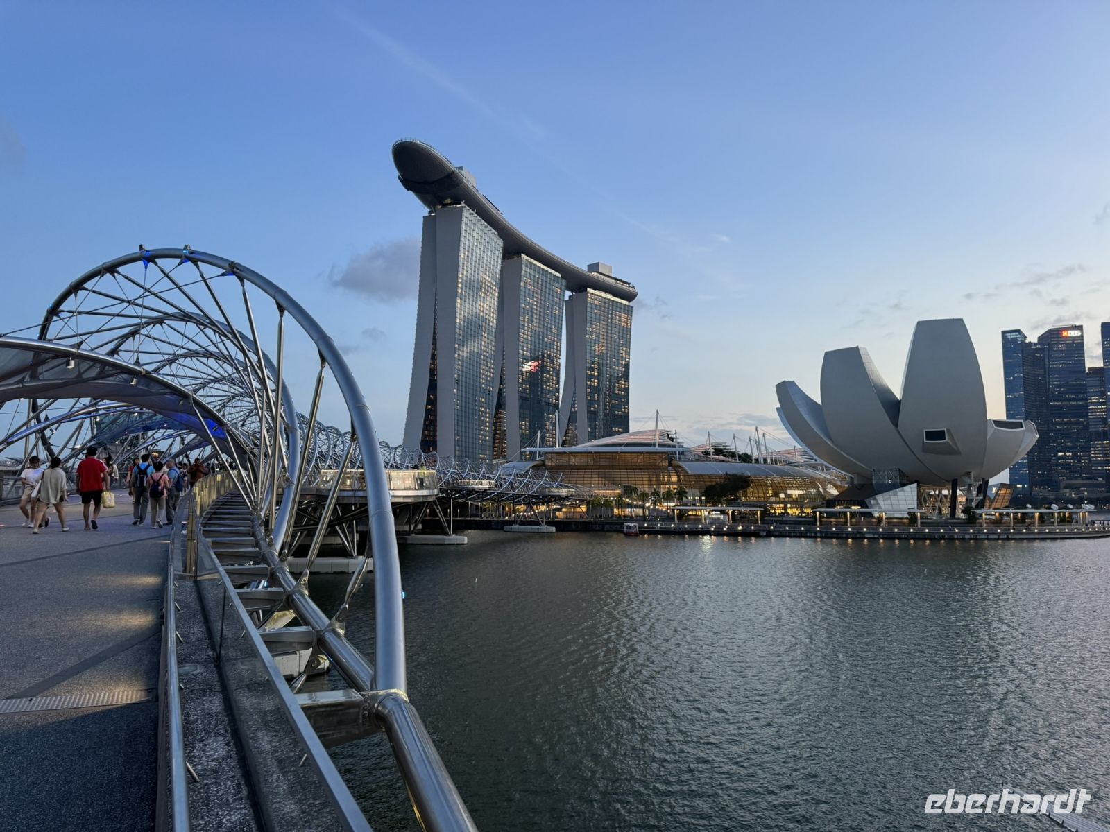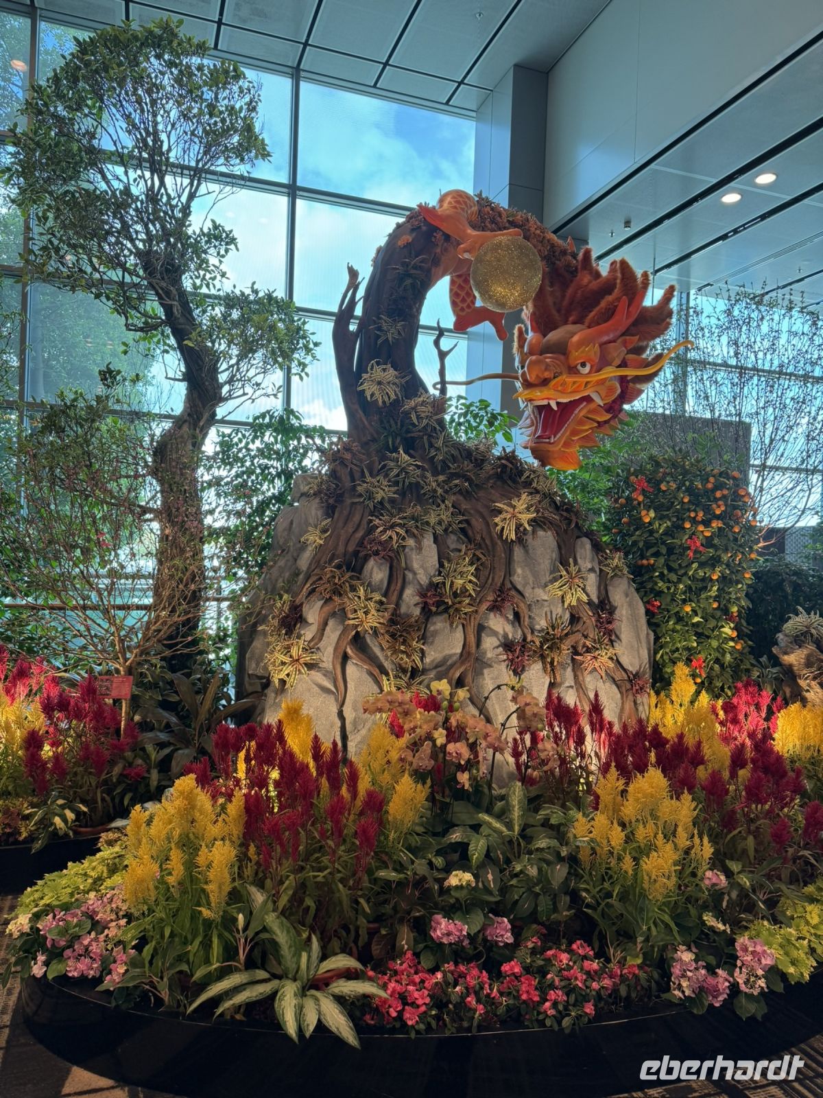 Wir sind über Nacht geflogen und daher war die 12-stündige Flugzeit nicht schlecht. Nach unserer Landung in Singapur haben wir unsere örtliche Reiseleiterin Helena kennengelernt und erste Informationen über die Stadt erhalten, wie z. B.: Singapur erstreckt sich über eine Fläche von ca. 720 km², hat etwa 5,7 Millionen Einwohner und fünf offizielle Sprachen. Wir fanden eine grüne und saubere Stadt vor, mit ihrer spektakulären Skyline und der schönen Bucht. Anschließend sind wir über die Esplanade und die Helix-Brücke zu den Gardens By the Bay gegangen. Aufgrund des chinesischen Neujahrsfestes trafen wir viele Menschen überall an und konnten leider nicht viel von der Show sehen. Dennoch war alles beleuchtet und sehr schön mit verschiedenen Drachen dekoriert, da es das Jahr des Drachen ist. Wir setzten unseren Spaziergang durch die Gartenanlage fort bis zum Hotel und dem Einkaufszentrum Marina Bay Sands. Dort versuchten wir einen guten Platz zu finden, um die beeindruckende Lichtershow mit einem schönen Blick auf die Bucht zu beobachten. Auf eigene Faust nahmen wir den Rückweg auf uns und genossen den Aufenthalt und die Nacht im Hotel.