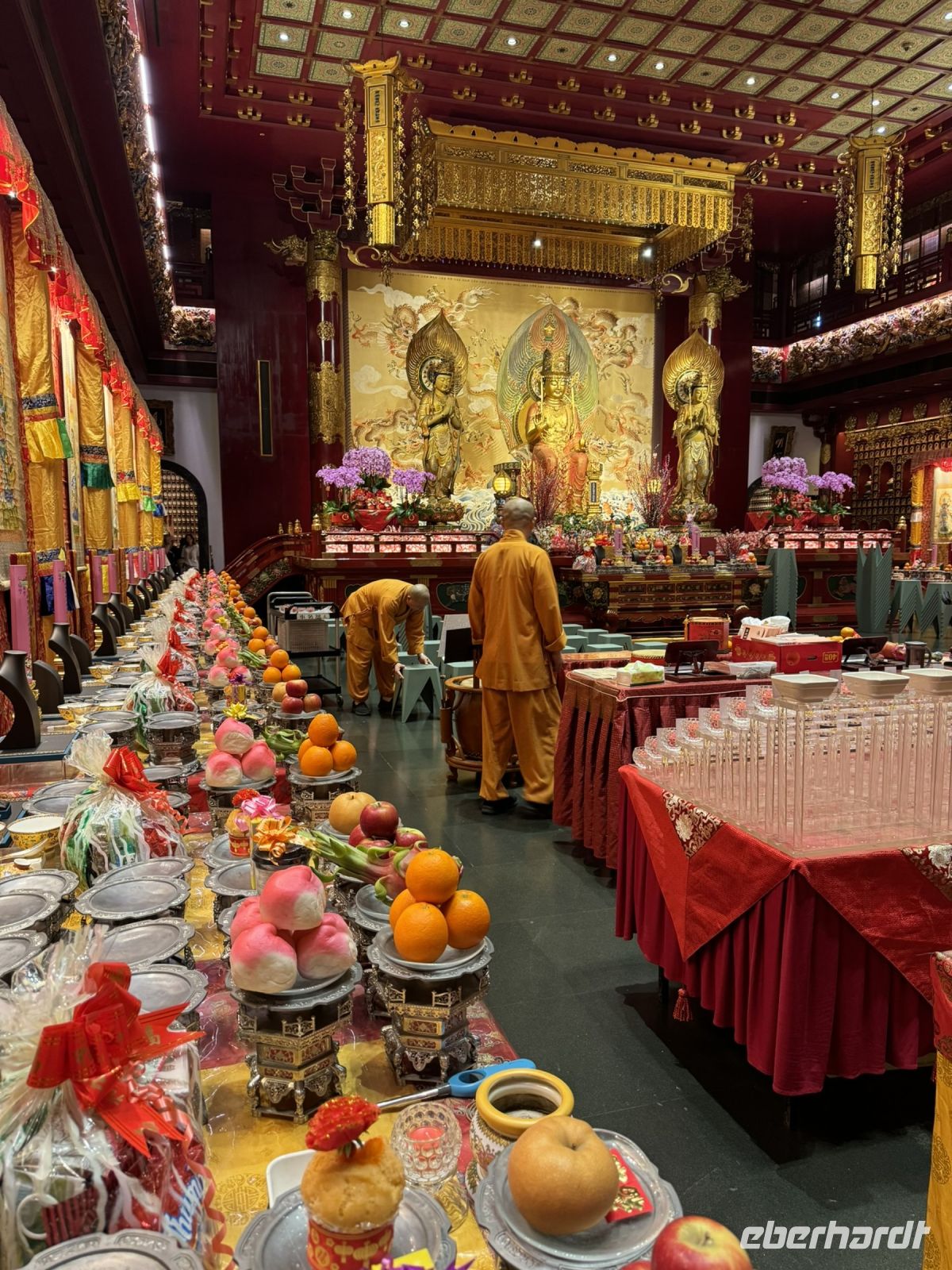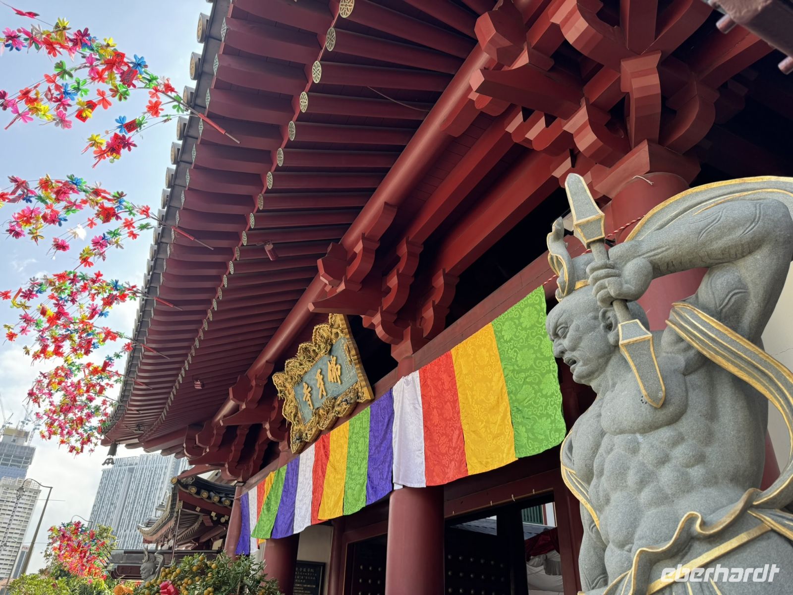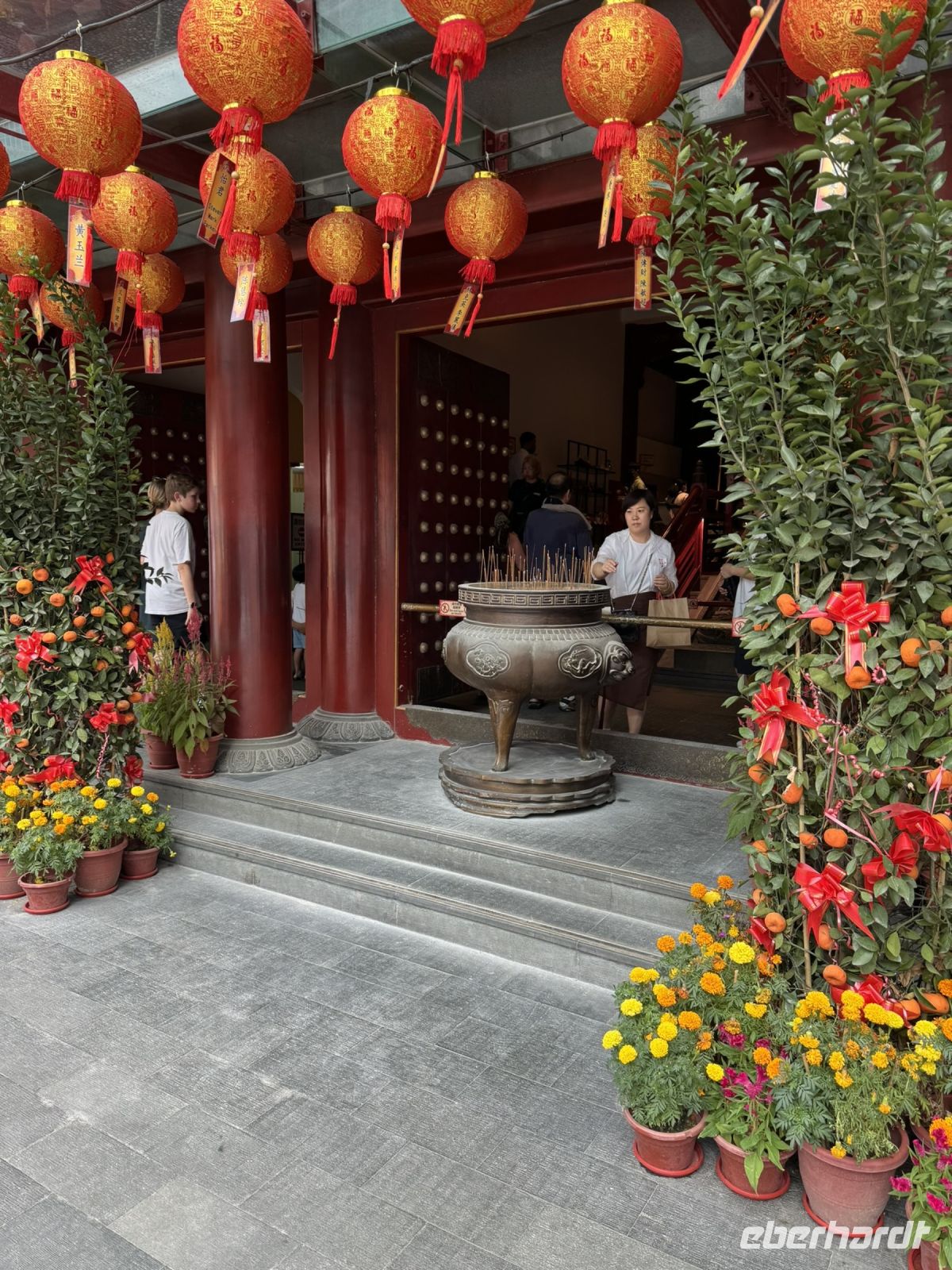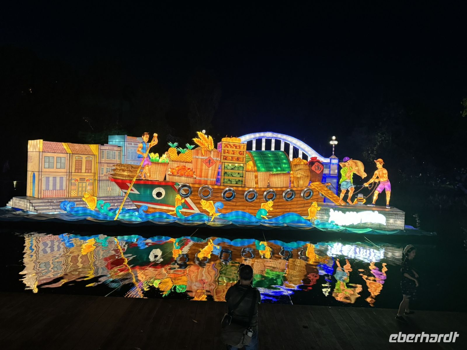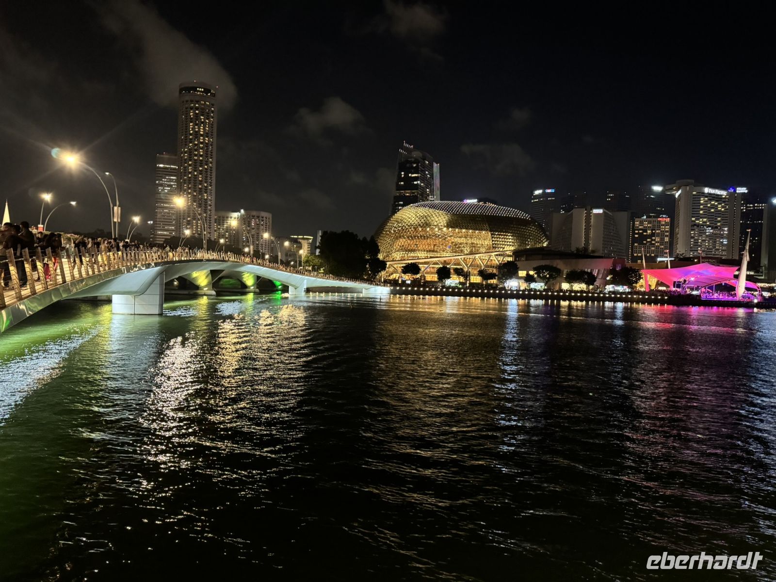 Wir sind über Nacht geflogen und daher war die 12-stündige Flugzeit nicht schlecht. Nach unserer Landung in Singapur haben wir unsere örtliche Reiseleiterin Helena kennengelernt und erste Informationen über die Stadt erhalten, wie z. B.: Singapur erstreckt sich über eine Fläche von ca. 720 km², hat etwa 5,7 Millionen Einwohner und fünf offizielle Sprachen. Wir fanden eine grüne und saubere Stadt vor, mit ihrer spektakulären Skyline und der schönen Bucht. Anschließend sind wir über die Esplanade und die Helix-Brücke zu den Gardens By the Bay gegangen. Aufgrund des chinesischen Neujahrsfestes trafen wir viele Menschen überall an und konnten leider nicht viel von der Show sehen. Dennoch war alles beleuchtet und sehr schön mit verschiedenen Drachen dekoriert, da es das Jahr des Drachen ist. Wir setzten unseren Spaziergang durch die Gartenanlage fort bis zum Hotel und dem Einkaufszentrum Marina Bay Sands. Dort versuchten wir einen guten Platz zu finden, um die beeindruckende Lichtershow mit einem schönen Blick auf die Bucht zu beobachten. Auf eigene Faust nahmen wir den Rückweg auf uns und genossen den Aufenthalt und die Nacht im Hotel.