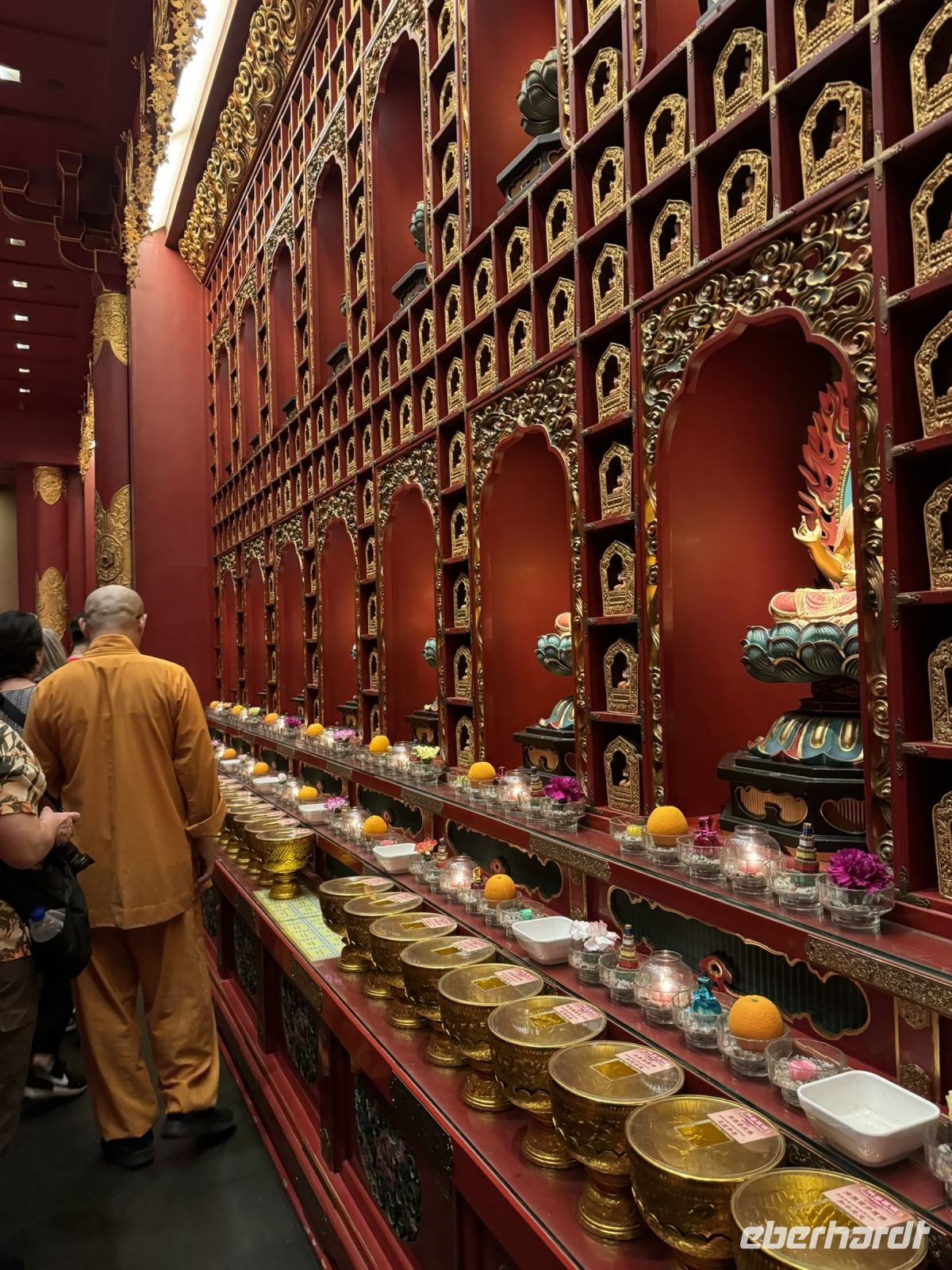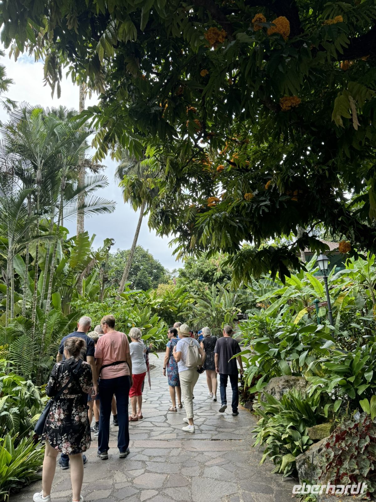 Der Vormittag stand zur freien Verfügung, um die Stadt auf eigene Faust zu erkunden. Dennoch trafen wir uns und einige Teilnehmer der Gruppe gingen bis zum Clarke Quay. Dort machten wir eine kleine Bootsfahrt entlang des Flusses und der Bucht, um die Stadt aus einer neuen Perspektive zu erleben. Die Zeit verging wie im Flug, daher mussten wir zurück ins Hotel, um uns dort mit unserer Reiseleiterin Helena für unsere Stadtbesichtigung zu treffen. Zuerst besuchten wir den Botanischen Garten mit seinen verschiedenen Bananenpflanzen, Palmen und grünen Flächen, in denen das Wasser eine wichtige Rolle spielt. Der Orchideengarten durfte natürlich nicht fehlen! Dort gab es eine Vielzahl von Orchideen aus der ganzen Welt in allen Farben und Größen. Gemäß der Tradition des Gartens tragen einige der Orchideen den Namen einer Persönlichkeit. Nach dieser wunderschönen Zeit fuhren wir weiter ins Viertel Little India, spazierten durch ein paar Straßen und probierten die exotische Mangostane. Obst und Gemüse sowie Gold- und religiöse Geschäfte erinnerten uns an Indien. Anschließend fuhren wir nach Chinatown. Zuerst besuchten wir den Buddha Tooth Relic Tempel und trafen dann auf dem Weg den indischen Sri Mariamman Tempel. Die Traditionen des Viertels sind noch immer lebendig und man kann sie an den verschiedenen Fassaden und dem typischen Ambiente des chinesischen Viertels erkennen. Danach fuhren wir zum Marina Bay Sands, um etwas in der Sky Bar zu trinken. Vom höchsten Punkt der Stadt verabschiedeten wir uns von Singapur, bevor wir zum Flughafen fuhren und unseren nächsten Flug nach Auckland nahmen.