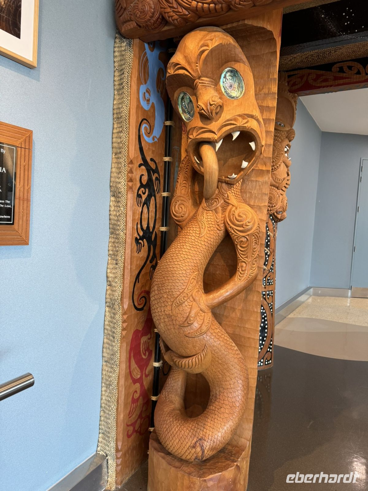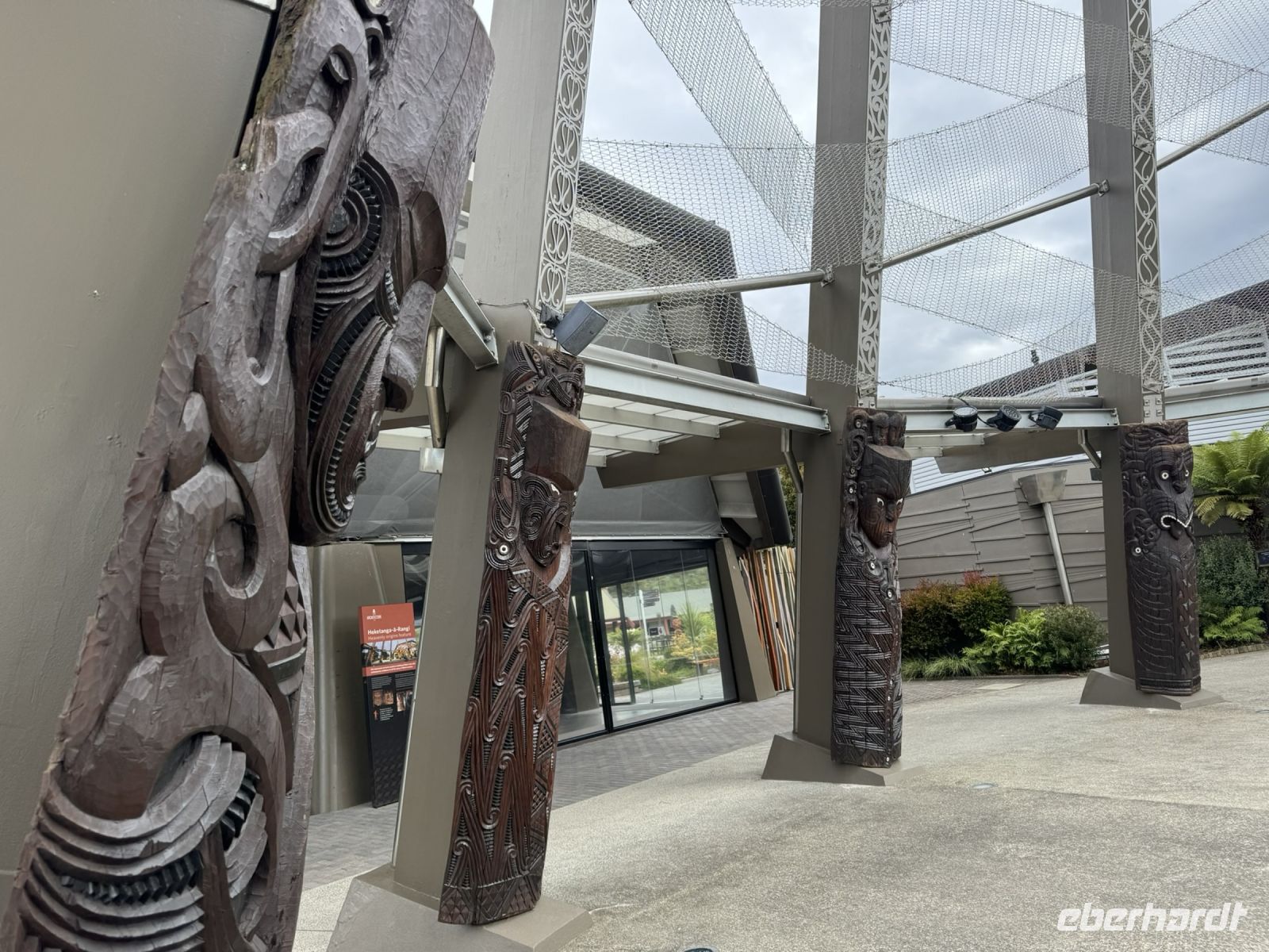 Wir begannen den Tag mit einer lustigen Bootsfahrt über den Kanal bis zur Kapiti Insel, die 10 km lang und 2 km breit ist. Wir hatten Glück und sahen sogar Delphine. Im 19. Jahrhundert hatte die Insel etwa 2.000 Einwohner zwischen den beiden benachbarten Inseln und der Kapiti-Insel, eine Mischung aus europäischer und Maori-Bevölkerung. Obwohl damals 74% der Insel für die Viehzucht gerodet wurde, ist sie heute ein Naturschutzgebiet, in dem invasive Ratten, giftige Insekten, Katzen und andere nicht-einheimische Tiere eliminiert wurden, da damals nur Vögel dort lebten. Wir lernten viel über Kaka, Weka, Tui, Kakariki, Tieke, Kokako, Piwakawaka, Robin, Popokotea, Takahe, Kereru und die Kiwis. Kurioserweise starben 1912 alle Kiwis in Neuseeland aus, außer fünf Exemplaren, die direkt auf die Kapiti Island gebracht wurden. Seitdem kann man über 1.000 Kiwis in diesem Gebiet finden und insgesamt über 2.000 Exemplare in ganz Neuseeland. Während unserer Wanderung beobachteten wir Weka, Tui, Korimako und Tieke. Anschließend fuhren wir mit dem Boot zurück nach Paraparaumu und machten dort unsere Mittagspause. Danach ging es weiter nach Wellington, der Hauptstadt Neuseelands. Zuerst fuhren wir direkt zum Mount Victoria, um das beste Panorama der Stadt zu genießen. Auf unserem Weg durch die Stadt entdeckten wir den Hafenbereich, das Regierungsgebäude, das Parlament (Bienenkorb/Beehive) und die Holzkirche von St. Paul. Am Abend hatten wir Freizeit, um das Ambiente der Stadt zu erleben.