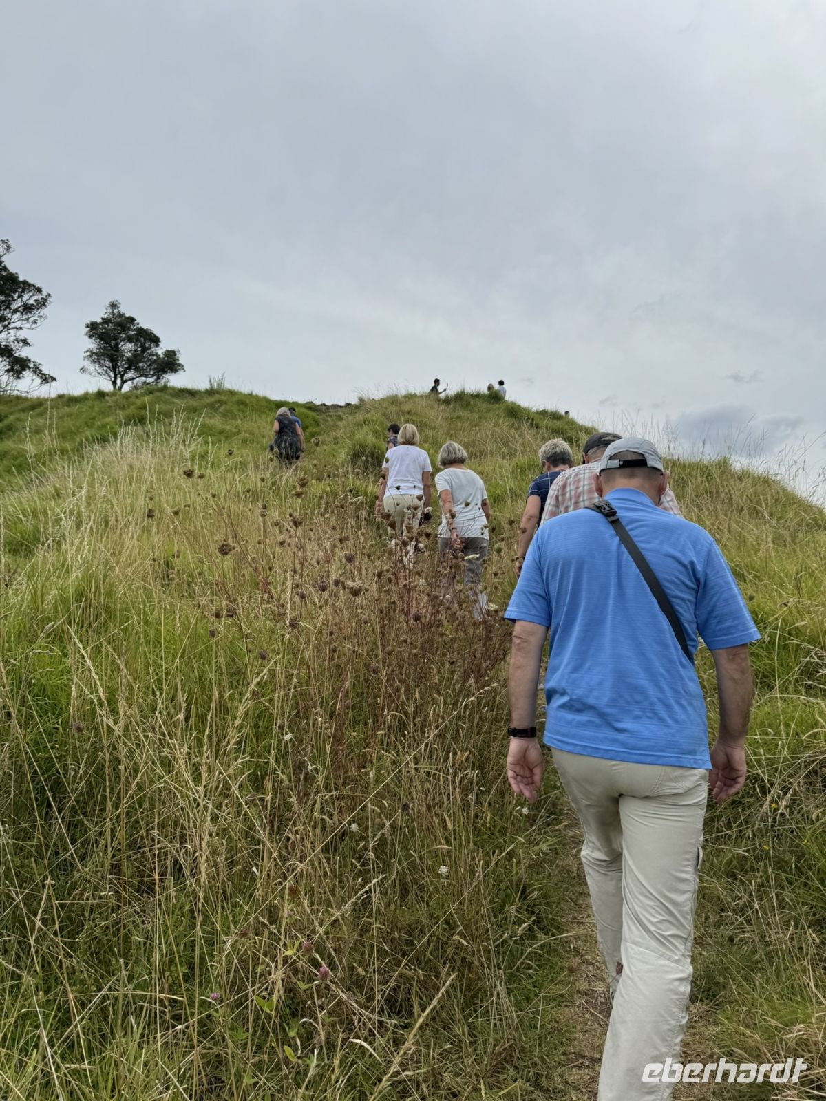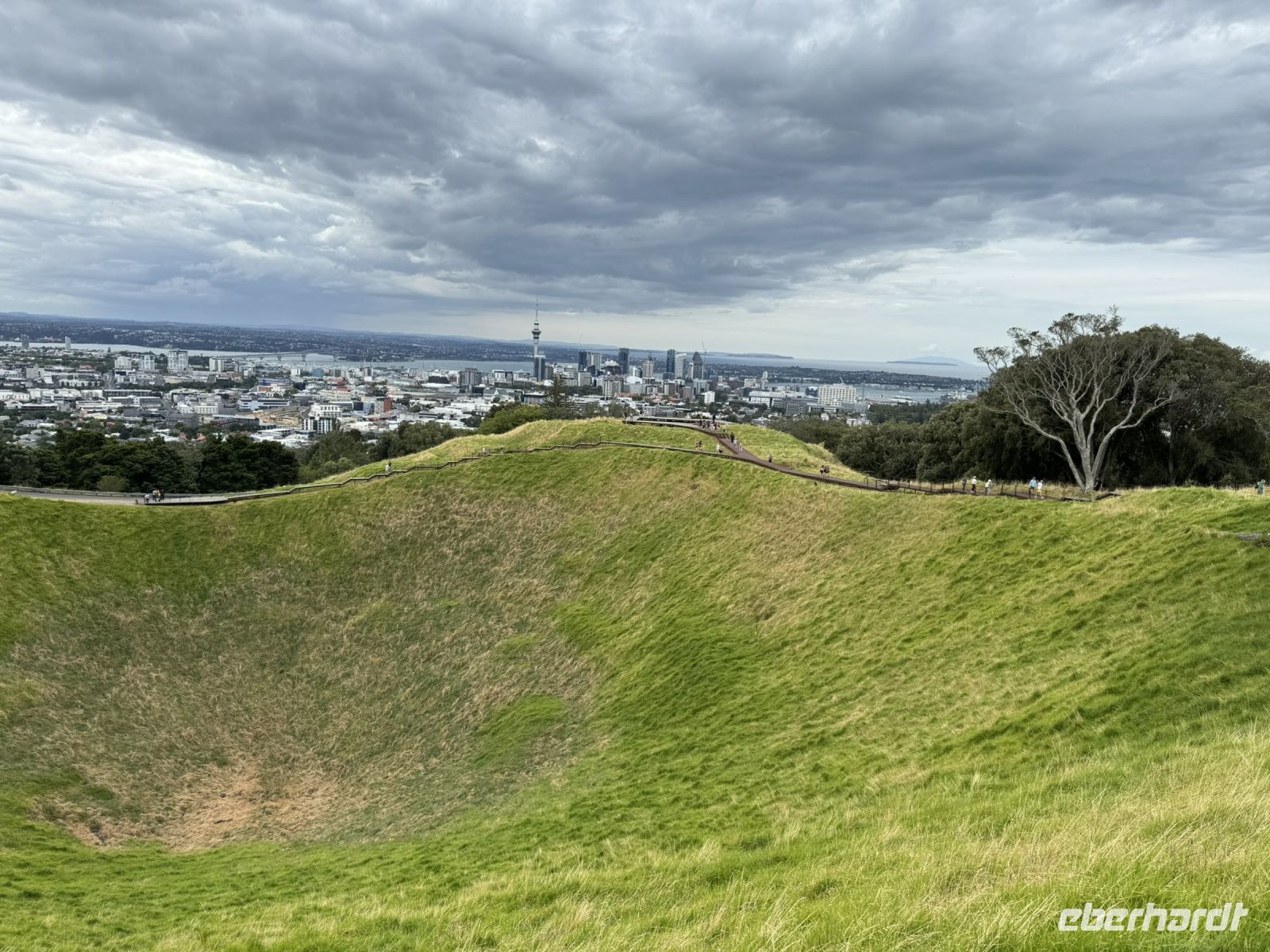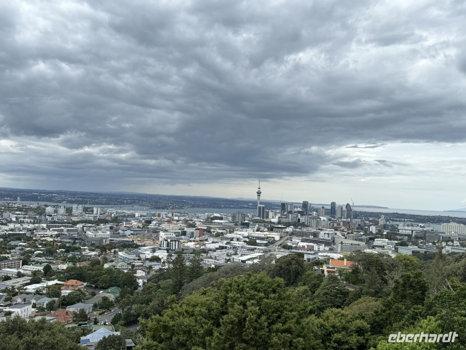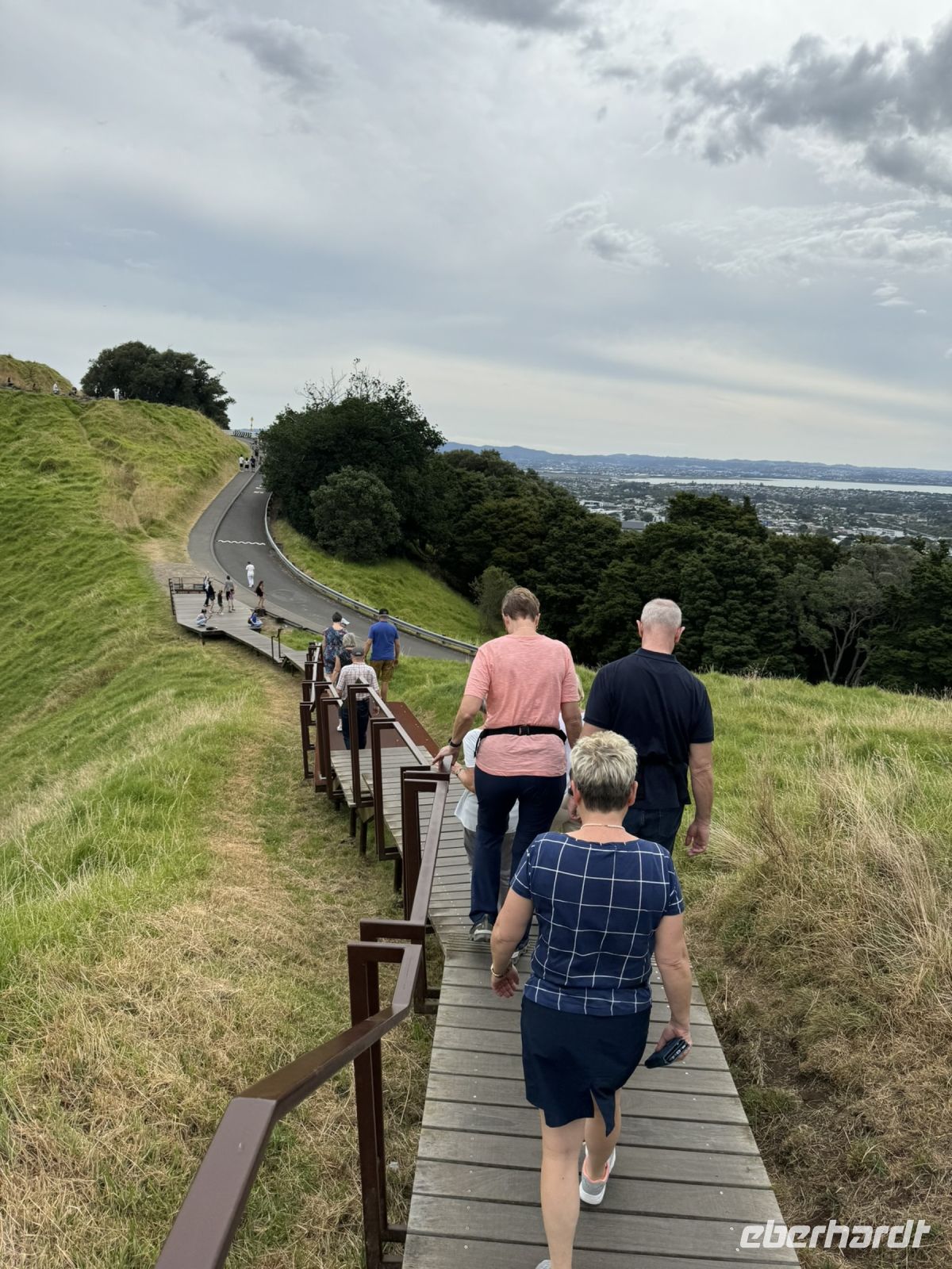 In Neuseeland wurden wir von unserem örtlichen Reiseleiter Michael begrüßt, nach einer ausgiebigen Einreisekontrolle. Zuerst besuchten wir einen typischen Supermarkt und holten uns Snacks. Während der Stadtrundfahrt durchquerten wir verschiedene Viertel und bekamen einen Eindruck vom Lebensstil der Neuseeländer. Es war beeindruckend zu sehen, wie sich die Stadt zwischen verschiedenen Vulkanen emporhebt und die modernen Türme des Stadtzentrums direkt an der Bucht liegen. Trotz all der Bebauung fanden wir eine gute Harmonie zwischen den Häusern und dem Grün der Natur. Besonders als wir zum Vulkan Maungawhau oder Mount Eden gingen, wurde uns dies bewusst. Anschließend fuhren wir zurück zum Hotel und verbrachten unser erstes gemeinsames Abendessen in Neuseeland.