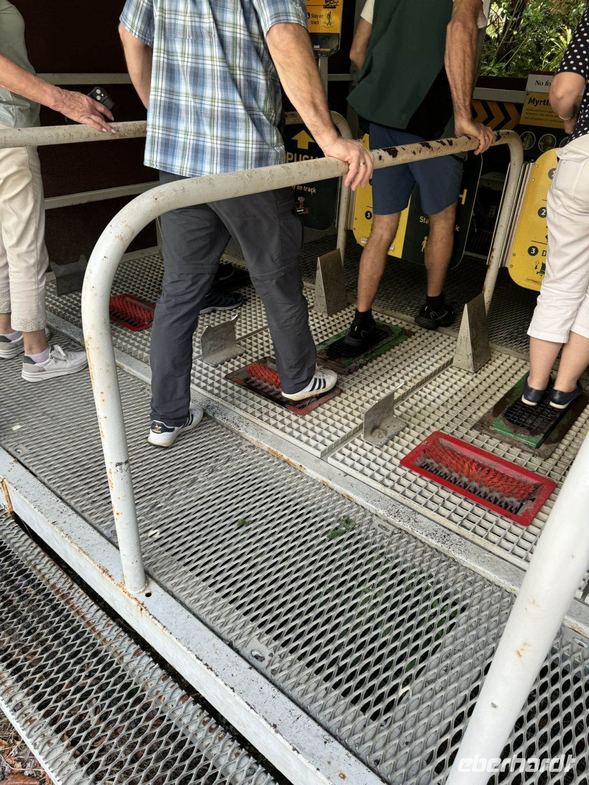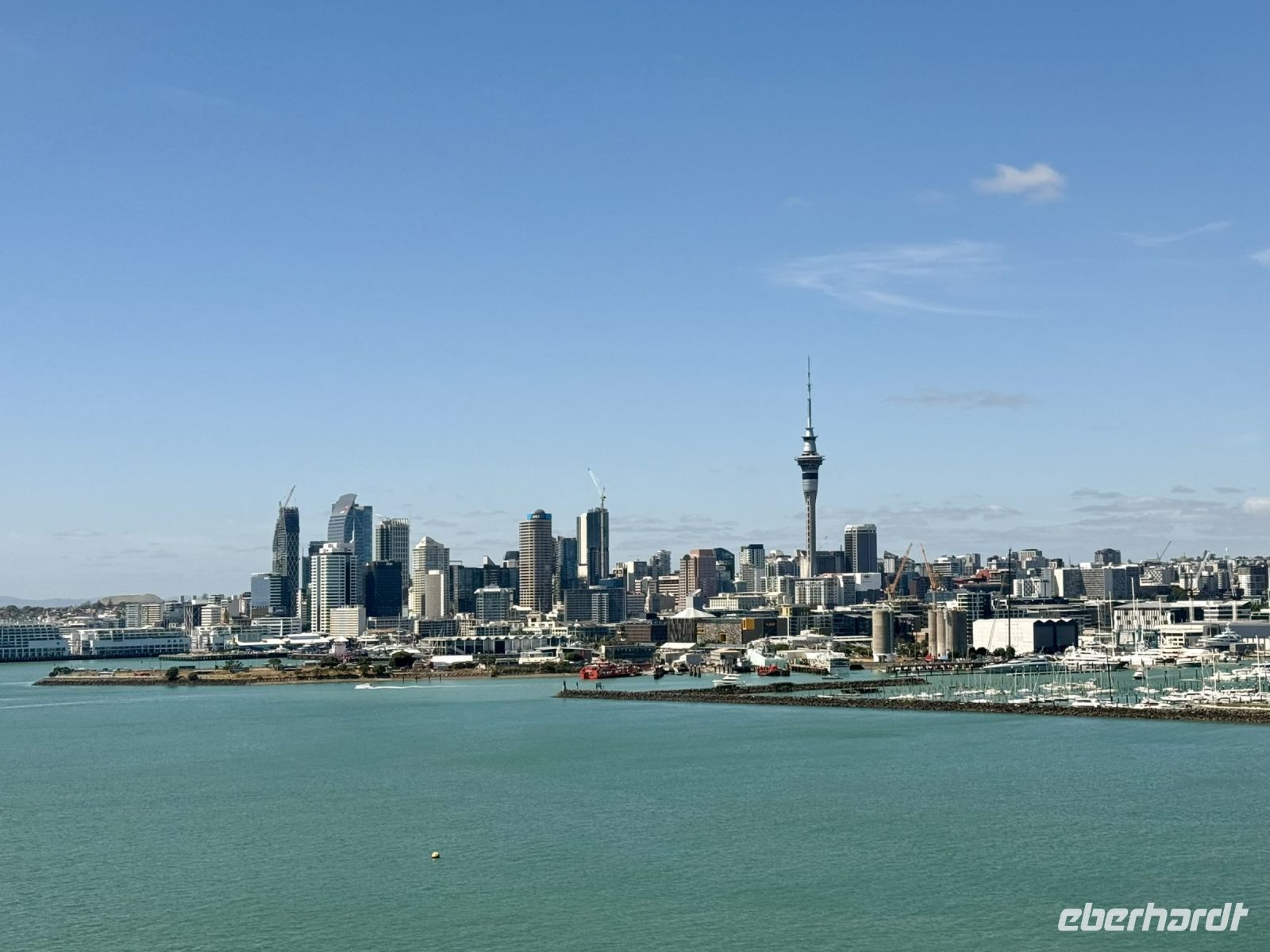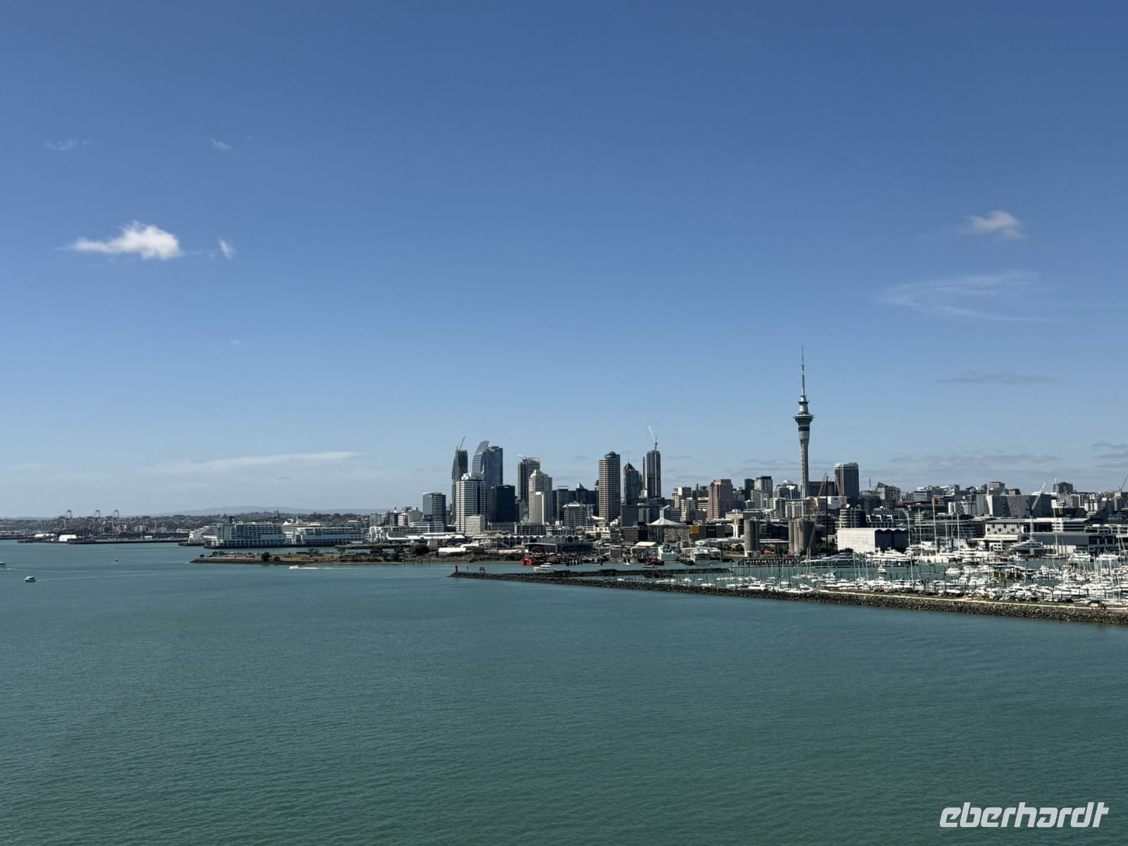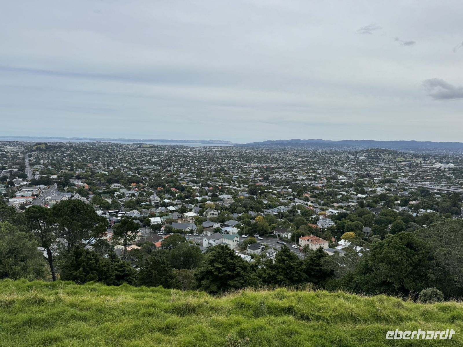 In Neuseeland wurden wir von unserem örtlichen Reiseleiter Michael begrüßt, nach einer ausgiebigen Einreisekontrolle. Zuerst besuchten wir einen typischen Supermarkt und holten uns Snacks. Während der Stadtrundfahrt durchquerten wir verschiedene Viertel und bekamen einen Eindruck vom Lebensstil der Neuseeländer. Es war beeindruckend zu sehen, wie sich die Stadt zwischen verschiedenen Vulkanen emporhebt und die modernen Türme des Stadtzentrums direkt an der Bucht liegen. Trotz all der Bebauung fanden wir eine gute Harmonie zwischen den Häusern und dem Grün der Natur. Besonders als wir zum Vulkan Maungawhau oder Mount Eden gingen, wurde uns dies bewusst. Anschließend fuhren wir zurück zum Hotel und verbrachten unser erstes gemeinsames Abendessen in Neuseeland.