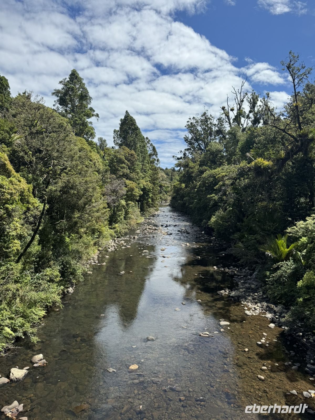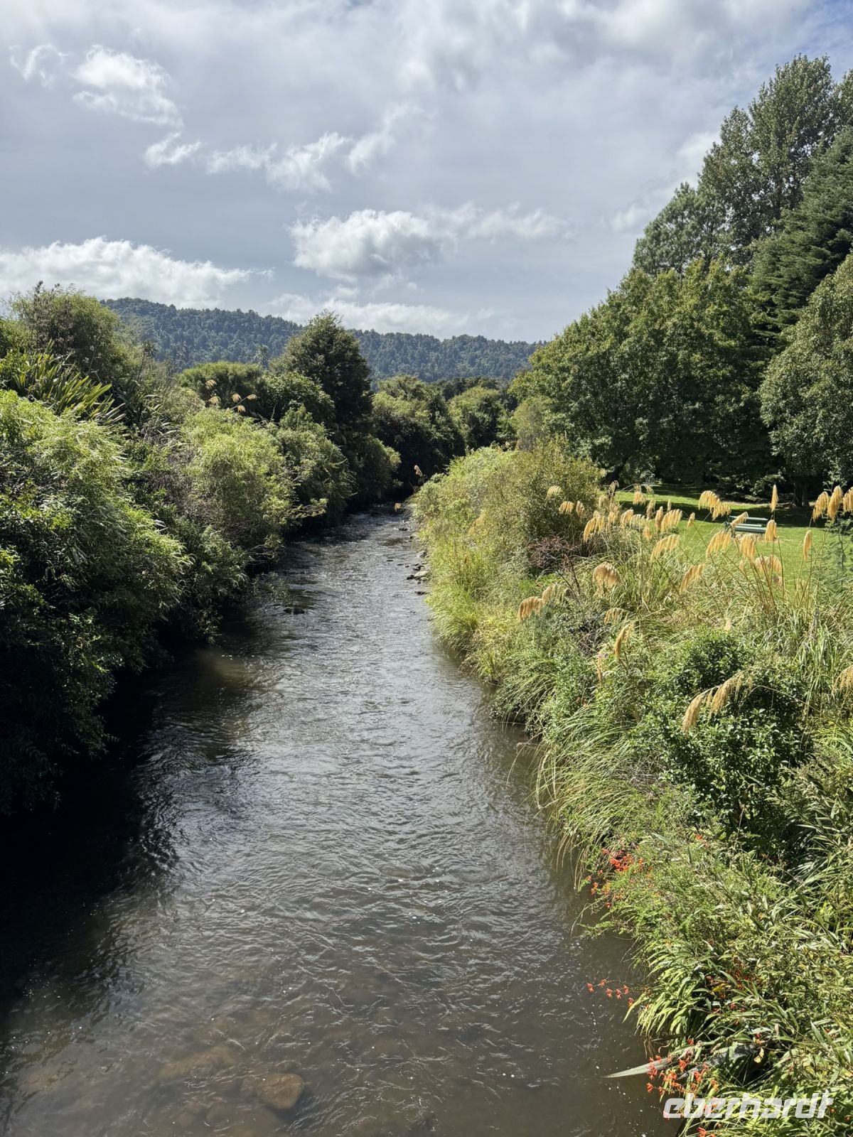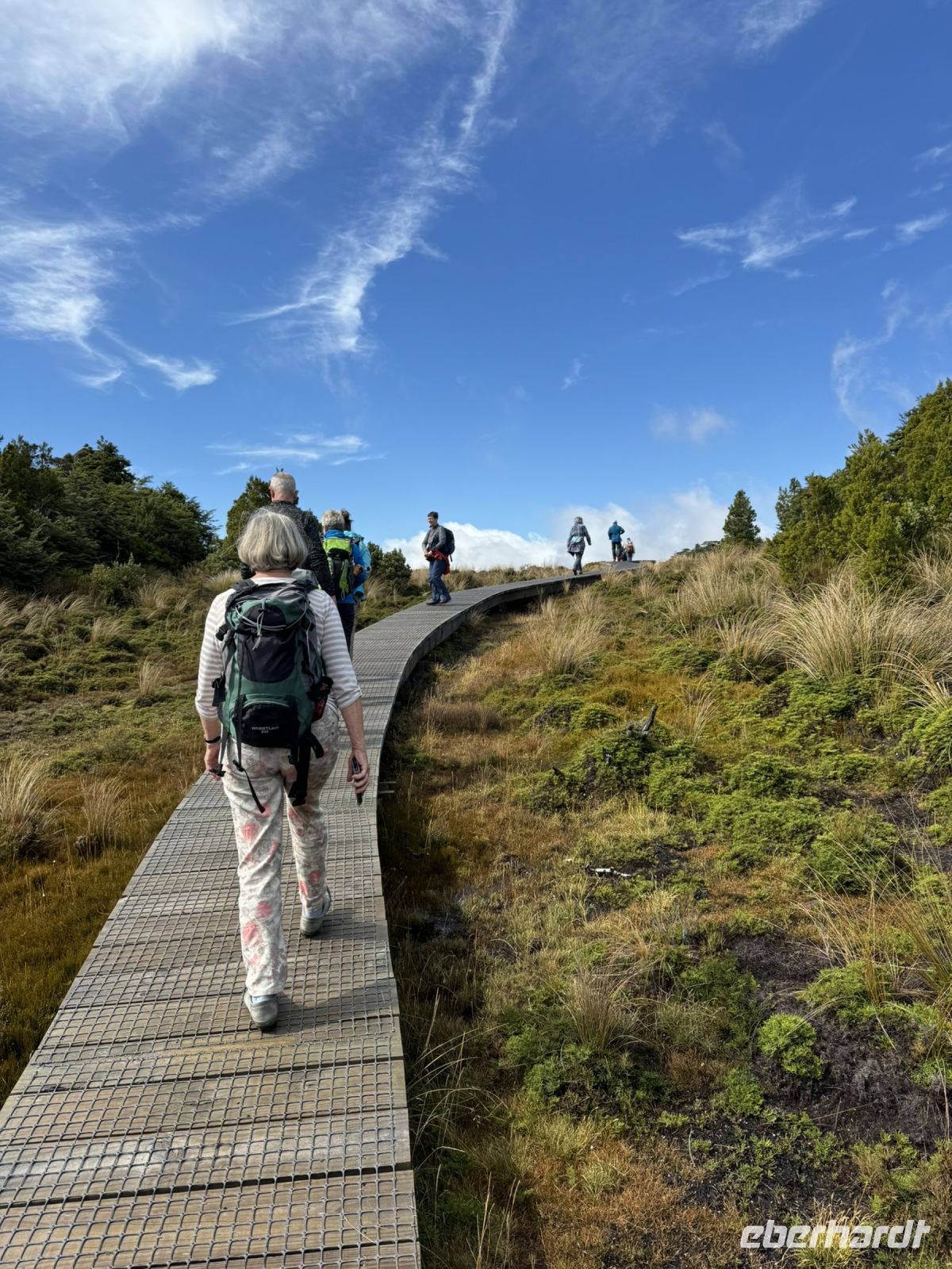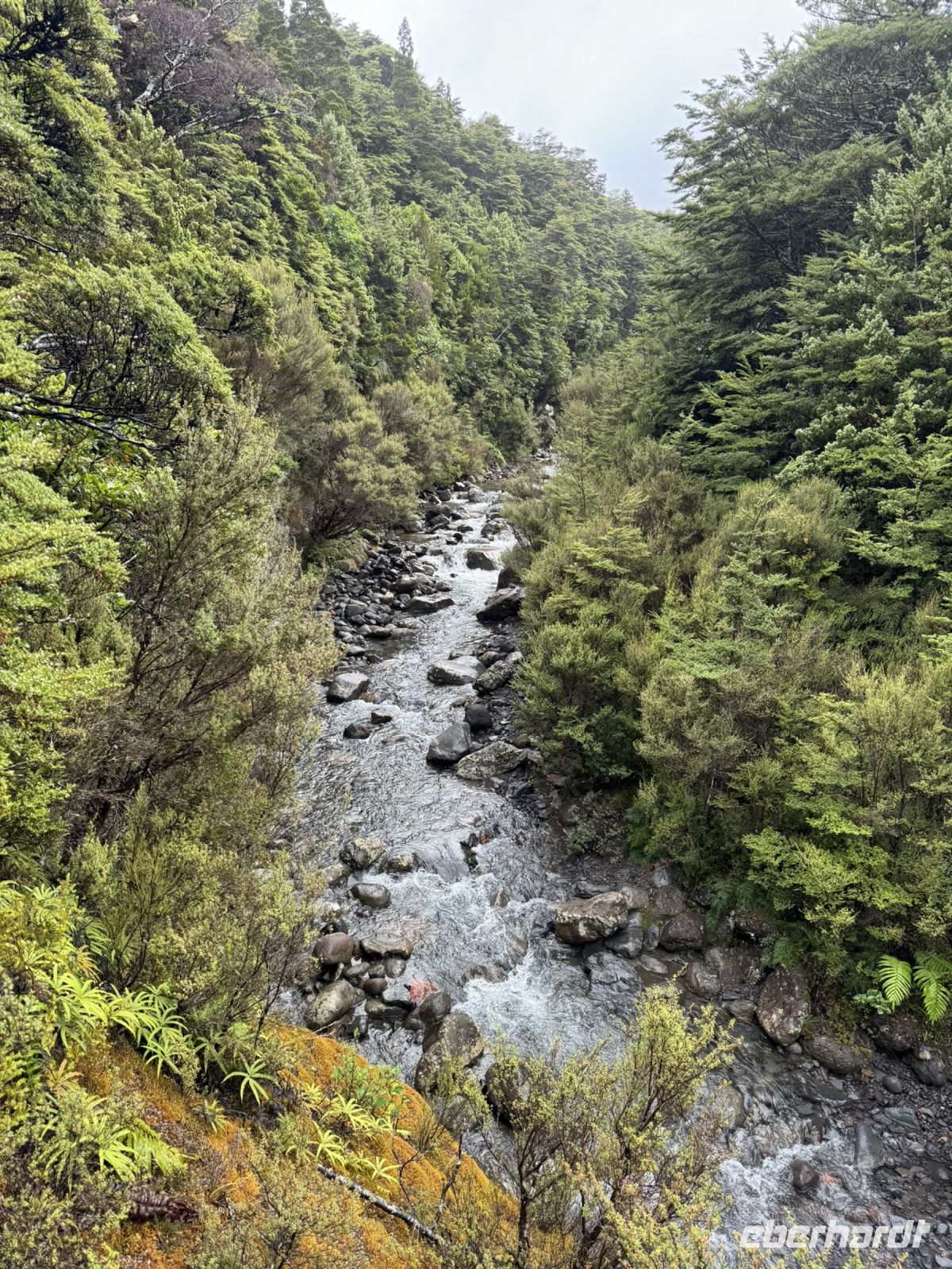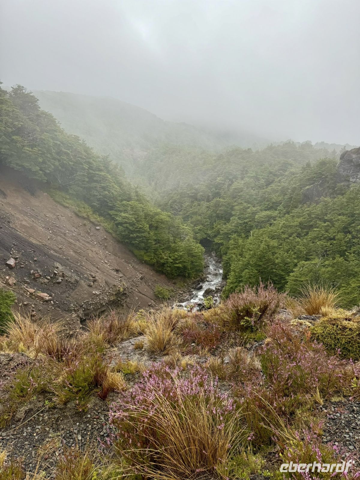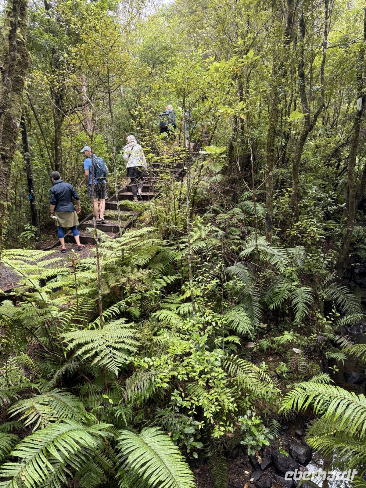 Nach einer Nacht mit viel Wind und Regen fuhren wir auf 1610 Meter Höhe direkt in das Skigebiet Turoa. Als wir ankamen, waren wir von Wolken umgeben und sahen, dass alles geschlossen war. Nach ein paar Minuten besuchten wir den Mangawhero Wasserfall, der weltberühmt ist, weil er auch als Gollum's Pool bekannt ist. An diesem Wasserfall wurde eine Szene aus "Der Herr der Ringe" gedreht, in der Gollum ein Bad nimmt. Anschließend machten wir eine zweite Wanderung zum Waitonga Wasserfall. Zuerst war es etwas steil, aber gut mit Stufen ausgebaut. Wir hatten Spaß im Wald, wo langsam der Nebel verschwand, und die ersten Sonnenstrahlen des Tages durchkamen. Oben angekommen genossen wir einen schönen Blick auf die Sümpfe mit Blick auf den Ruapehu Berg und die Gletscherzunge. Auf dem Weg hinunter zum Wasserfall konnten wir entspannen und die beeindruckende Aussicht genießen. Am Nachmittag gingen wir vom Hotel über die Brücke und durch die Wiese zum Ausgangspunkt für unsere Wanderung. Wir wanderten durch den Mangawhero Wald bei angenehmen Klima und entdeckten viele neue Arten von Pflanzen und Bäumen.