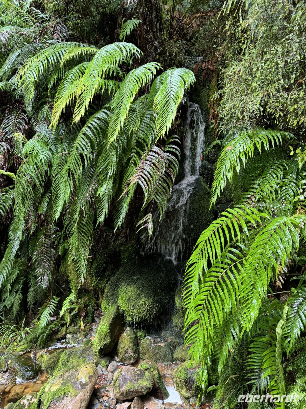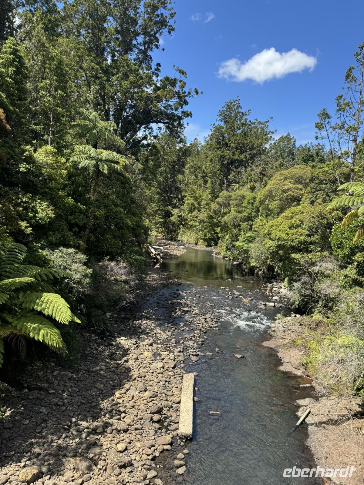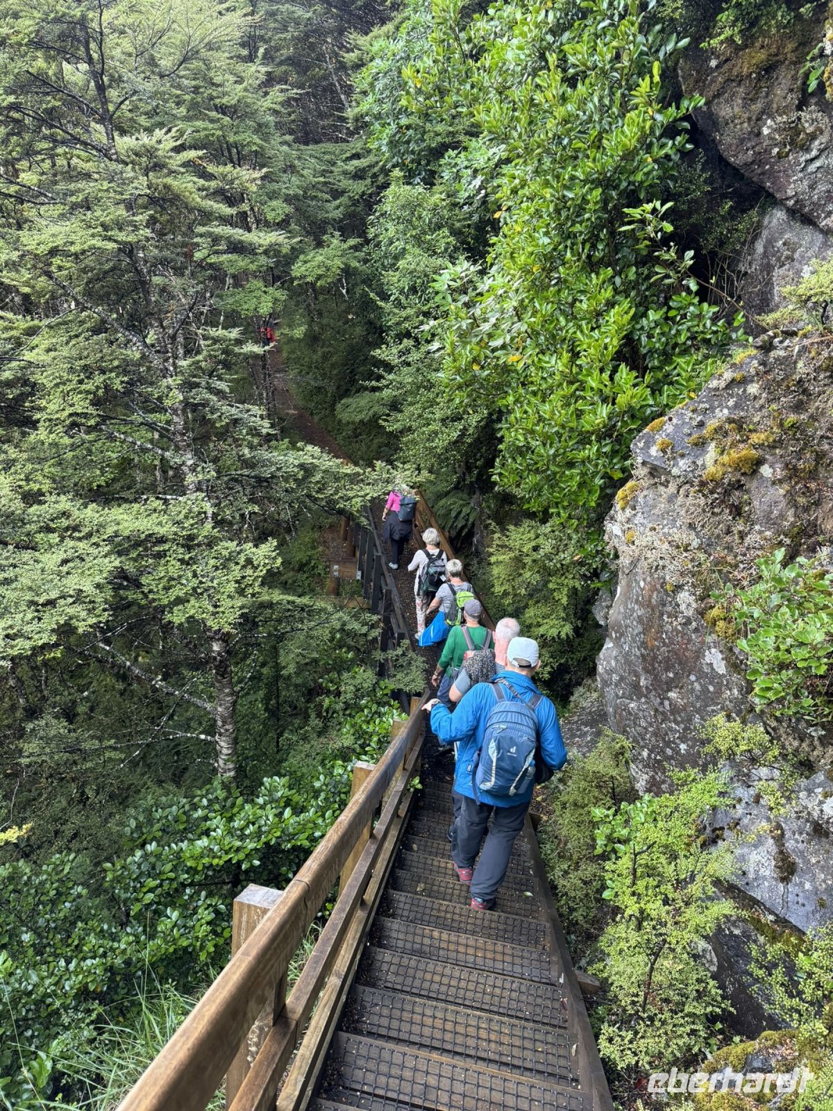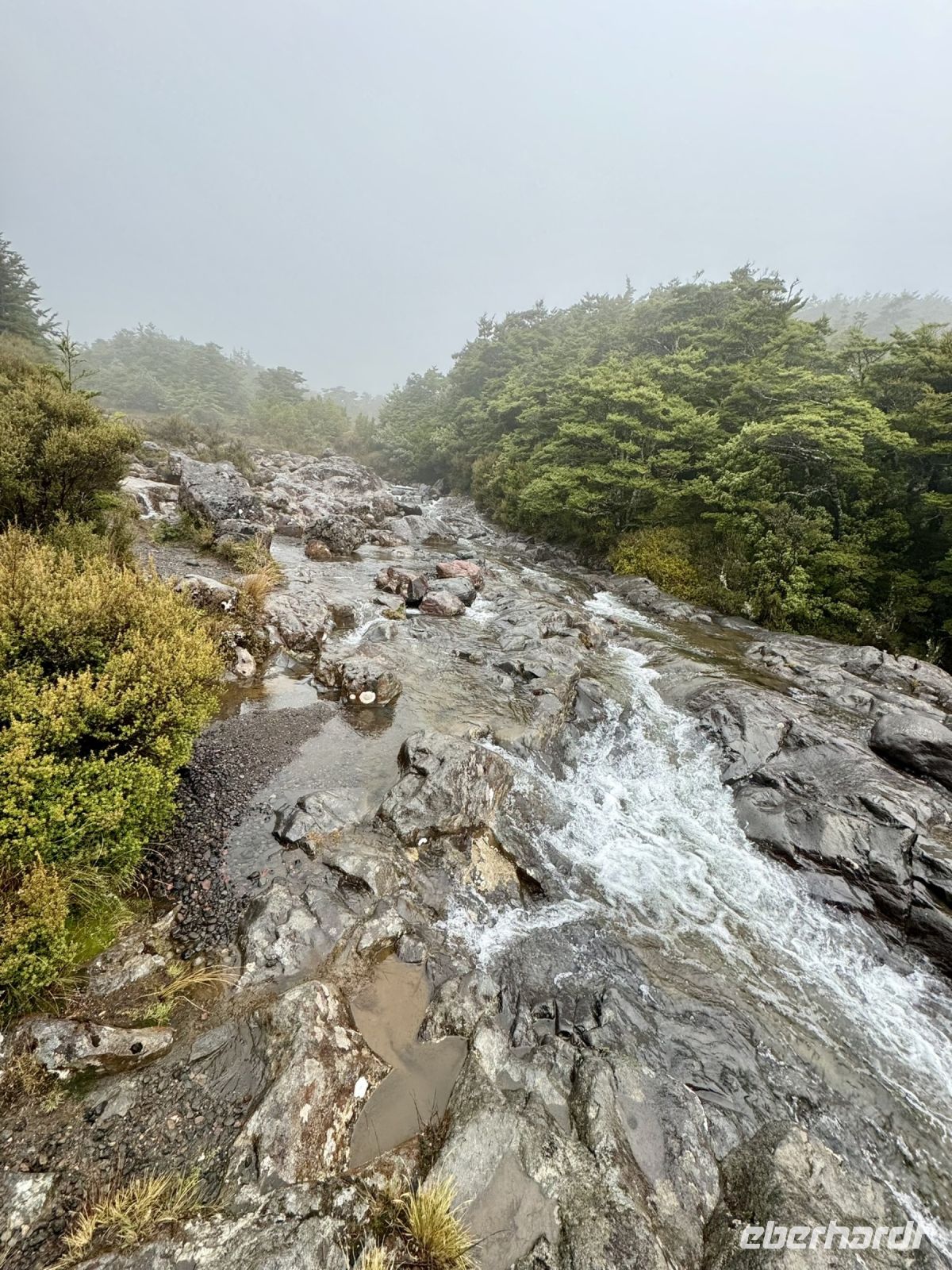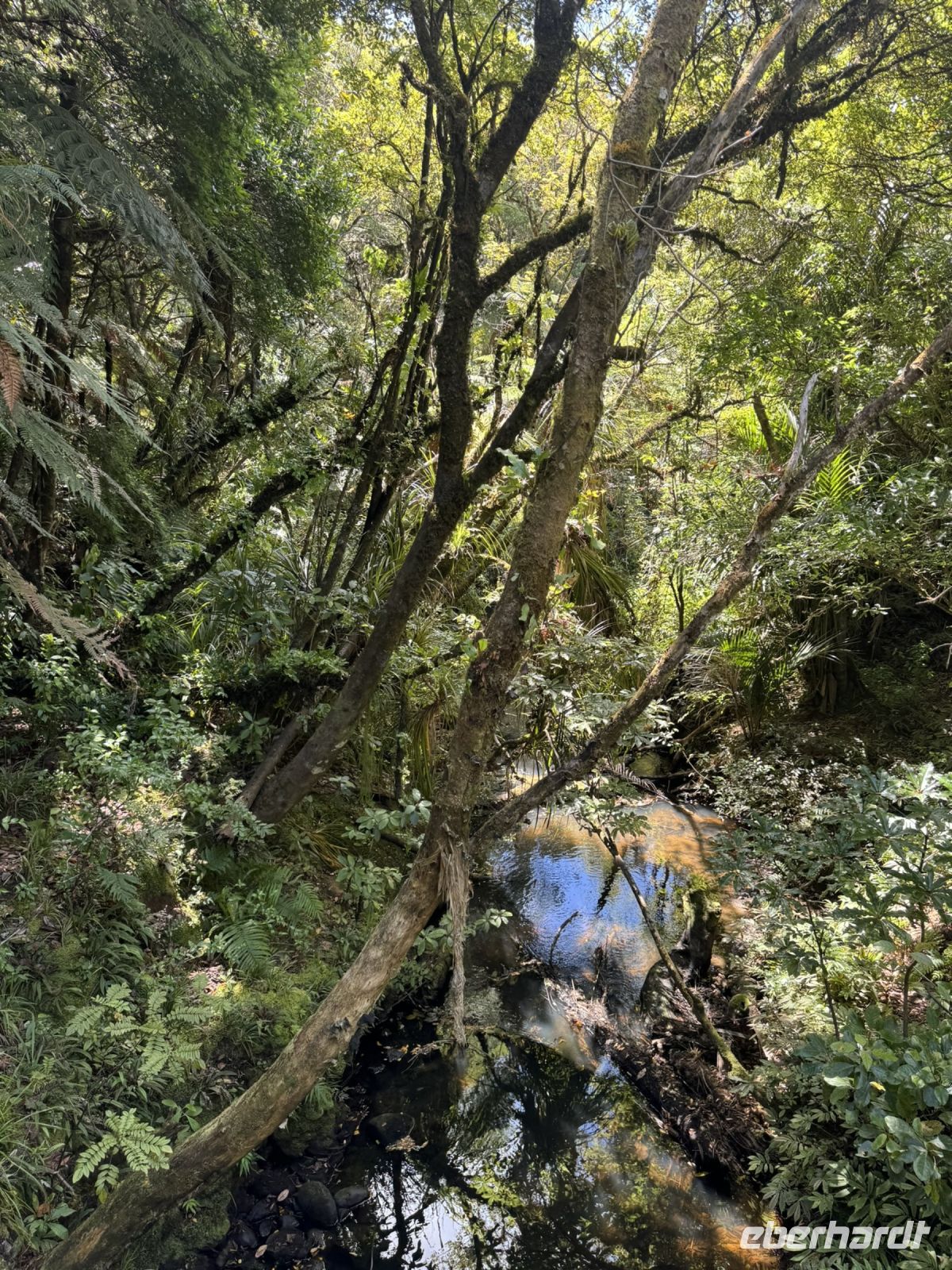 Nach einer Nacht mit viel Wind und Regen fuhren wir auf 1610 Meter Höhe direkt in das Skigebiet Turoa. Als wir ankamen, waren wir von Wolken umgeben und sahen, dass alles geschlossen war. Nach ein paar Minuten besuchten wir den Mangawhero Wasserfall, der weltberühmt ist, weil er auch als Gollum's Pool bekannt ist. An diesem Wasserfall wurde eine Szene aus "Der Herr der Ringe" gedreht, in der Gollum ein Bad nimmt. Anschließend machten wir eine zweite Wanderung zum Waitonga Wasserfall. Zuerst war es etwas steil, aber gut mit Stufen ausgebaut. Wir hatten Spaß im Wald, wo langsam der Nebel verschwand, und die ersten Sonnenstrahlen des Tages durchkamen. Oben angekommen genossen wir einen schönen Blick auf die Sümpfe mit Blick auf den Ruapehu Berg und die Gletscherzunge. Auf dem Weg hinunter zum Wasserfall konnten wir entspannen und die beeindruckende Aussicht genießen. Am Nachmittag gingen wir vom Hotel über die Brücke und durch die Wiese zum Ausgangspunkt für unsere Wanderung. Wir wanderten durch den Mangawhero Wald bei angenehmen Klima und entdeckten viele neue Arten von Pflanzen und Bäumen.