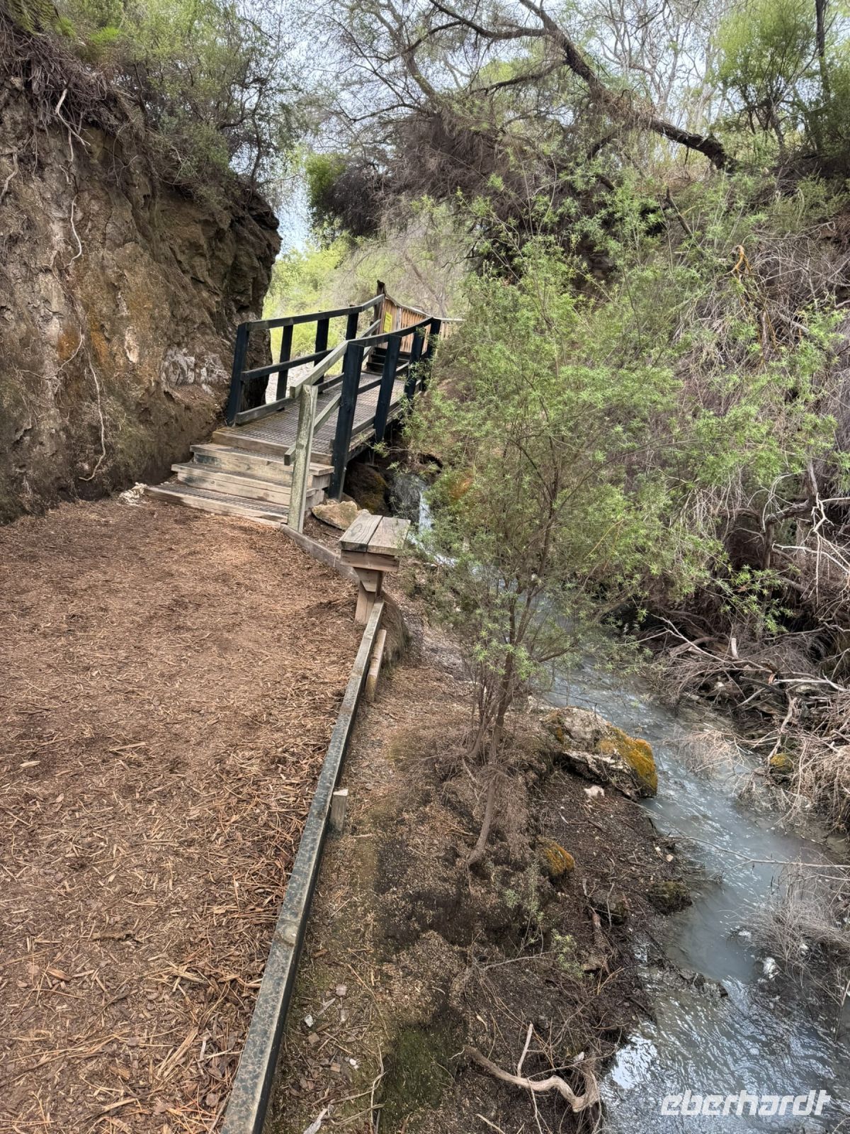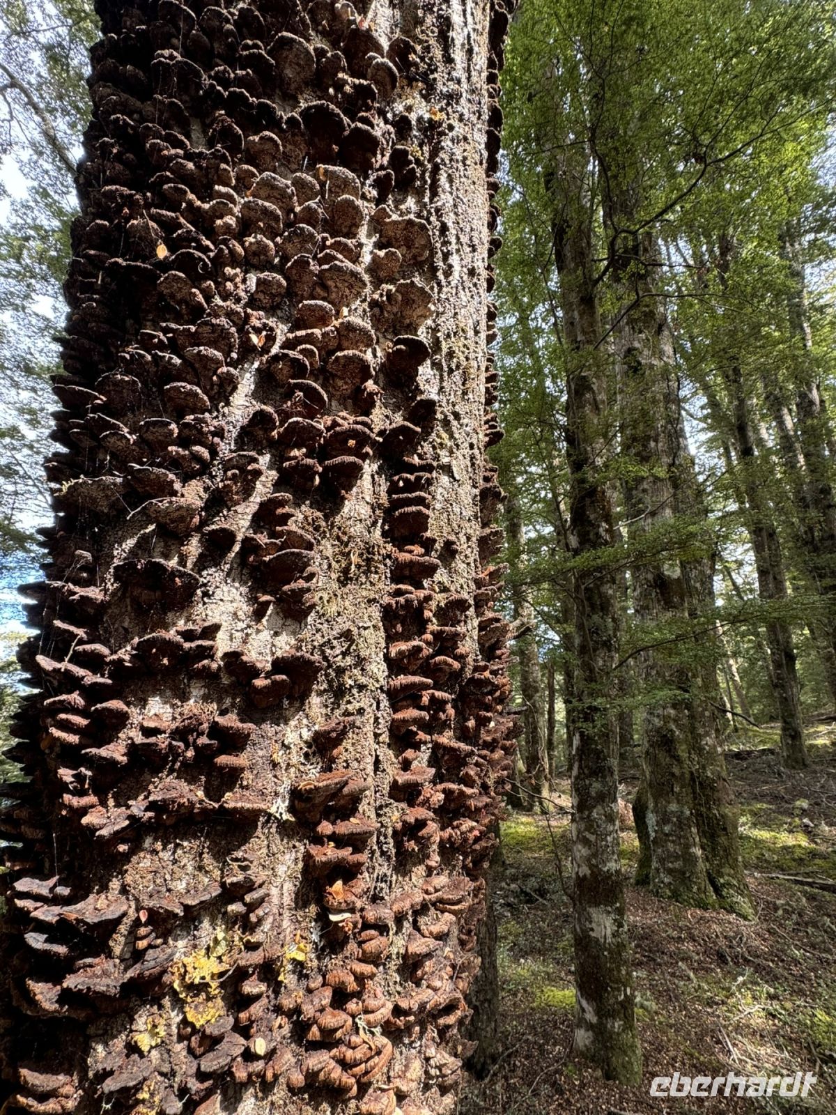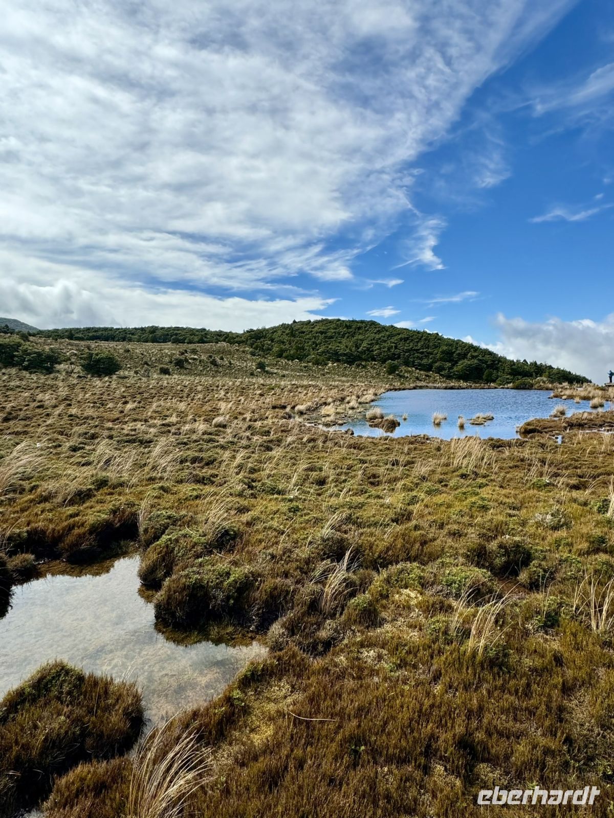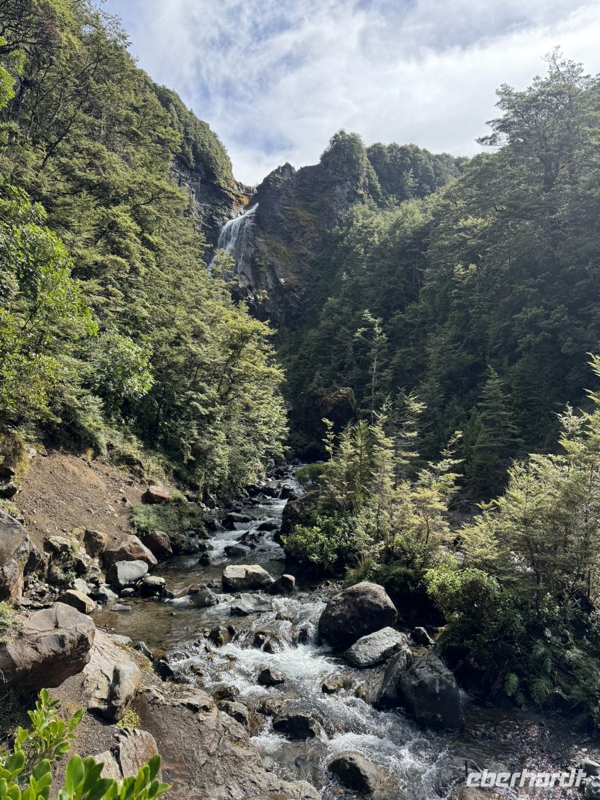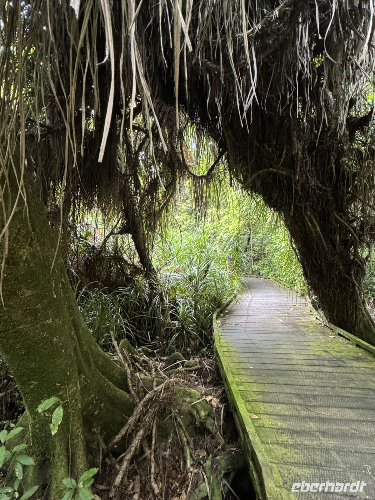 Nach einer Nacht mit viel Wind und Regen fuhren wir auf 1610 Meter Höhe direkt in das Skigebiet Turoa. Als wir ankamen, waren wir von Wolken umgeben und sahen, dass alles geschlossen war. Nach ein paar Minuten besuchten wir den Mangawhero Wasserfall, der weltberühmt ist, weil er auch als Gollum's Pool bekannt ist. An diesem Wasserfall wurde eine Szene aus "Der Herr der Ringe" gedreht, in der Gollum ein Bad nimmt. Anschließend machten wir eine zweite Wanderung zum Waitonga Wasserfall. Zuerst war es etwas steil, aber gut mit Stufen ausgebaut. Wir hatten Spaß im Wald, wo langsam der Nebel verschwand, und die ersten Sonnenstrahlen des Tages durchkamen. Oben angekommen genossen wir einen schönen Blick auf die Sümpfe mit Blick auf den Ruapehu Berg und die Gletscherzunge. Auf dem Weg hinunter zum Wasserfall konnten wir entspannen und die beeindruckende Aussicht genießen. Am Nachmittag gingen wir vom Hotel über die Brücke und durch die Wiese zum Ausgangspunkt für unsere Wanderung. Wir wanderten durch den Mangawhero Wald bei angenehmen Klima und entdeckten viele neue Arten von Pflanzen und Bäumen.