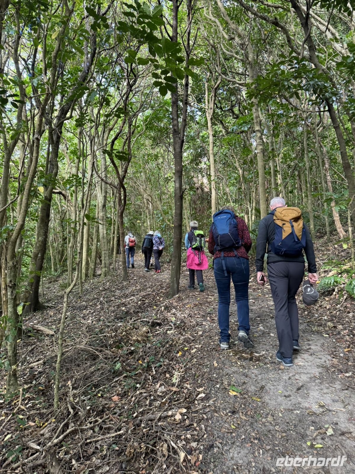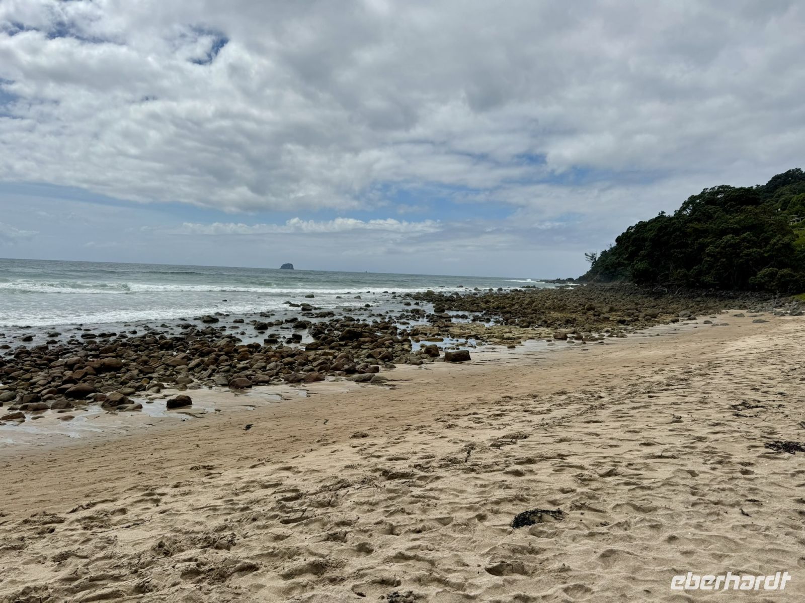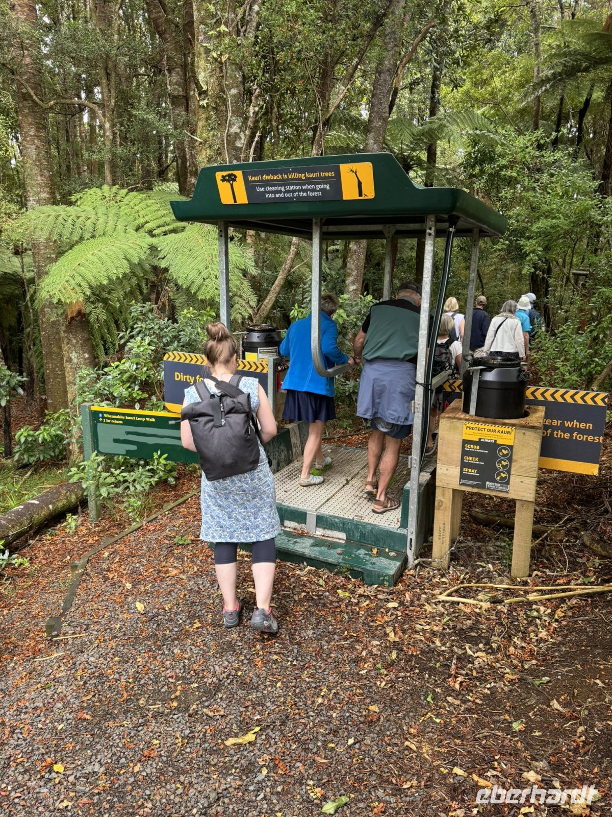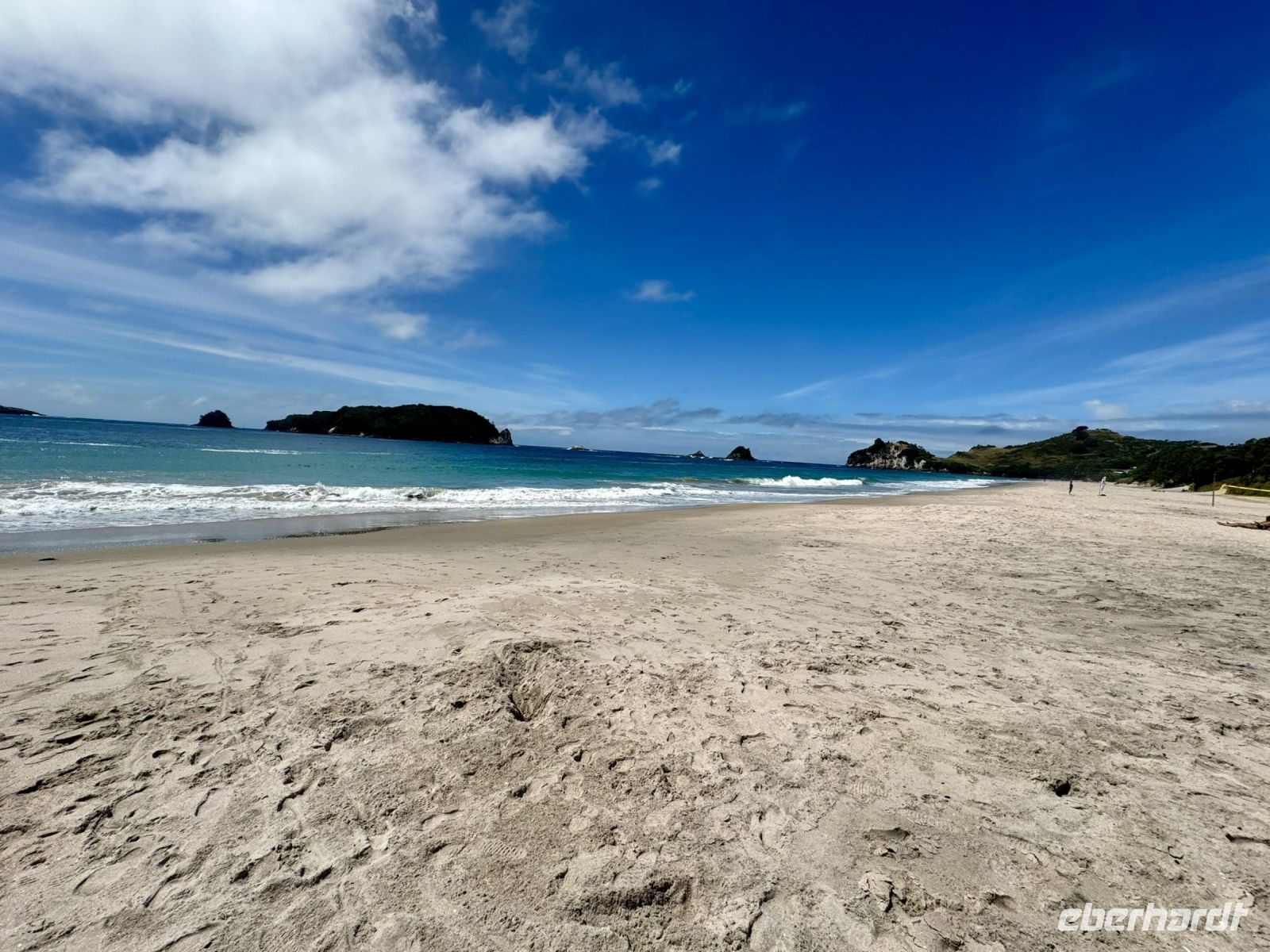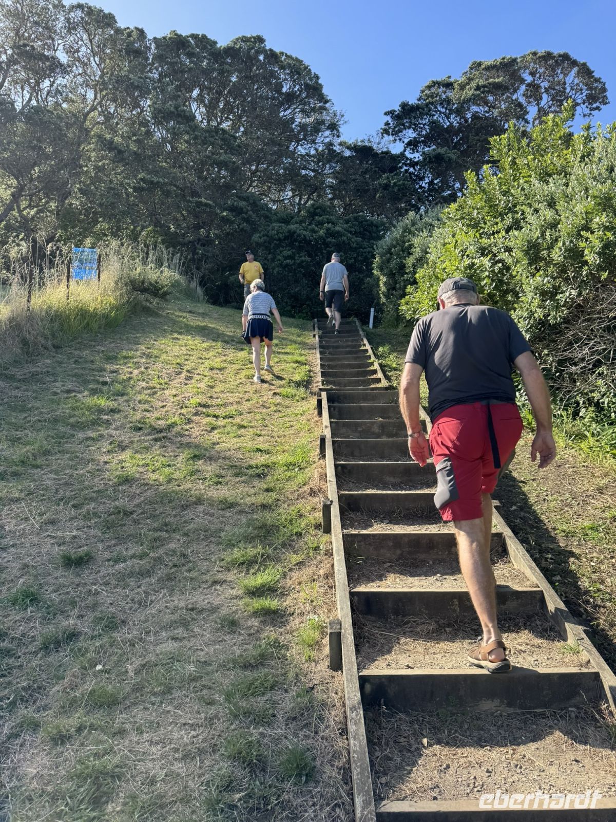 Der Tag begann mit ein paar Wolken am Himmel, aber dennoch herrschte eine angenehme Temperatur von 20 Grad zum Wandern. Im Kiwi-Gebiet Whenuakite fanden wir einen fantastischen Wald mit vielen einheimischen Pflanzen und Bäumen, darunter auch die Kauri-Bäume. Unter anderem entdeckten wir zum Beispiel den Silberfarn, der als nationales Symbol gilt und mit seiner silbernen Farbe auf der Rückseite beeindruckt. Er wird auch unter anderem als Symbol für den Tourismus oder Rugby verwendet. Eine weitere kuriose Pflanze ist die Nikaupalme (ohne Kokosnuss), sie produziert zwar keine essbaren Früchte, aber kleine Beeren, die von Vögeln gegessen werden können. Es war eine tolle Wanderung in dieser harmonischen Umgebung, in der wir allein dem Lied der Natur lauschten. Anschließend fuhren wir zum Hot Water Beach! Dort steckten wir unsere Füße tief in den Sand und spürten die heißen Temperaturen. Natürlich mussten wir viel lachen, als einige Besucher aufgrund der Wassertemperatur ganz rot wurden. Der blaue Himmel kehrte zurück und bot uns einen herrlichen Blick auf Cove Beach. Schon fast sommerlich fühlte es sich an, als wir in Hahei Beach anhielten, um zu baden und unsere Mittagspause am Strand zu genießen sowie unser Eis „Hockey Pokey“ zu essen. Am Nachmittag hatten wir Freizeit zum Baden oder Ausruhen, bevor wir unser gemeinsames Grillabendessen im Haus des Reiseleiters genossen. Bei unserer Party durften natürlich nicht die neuseeländischen Vitamine und unsere gute Stimmung fehlen.