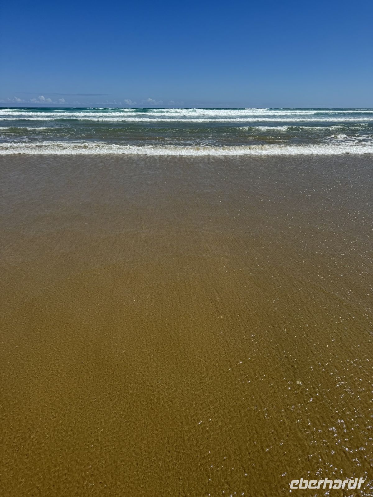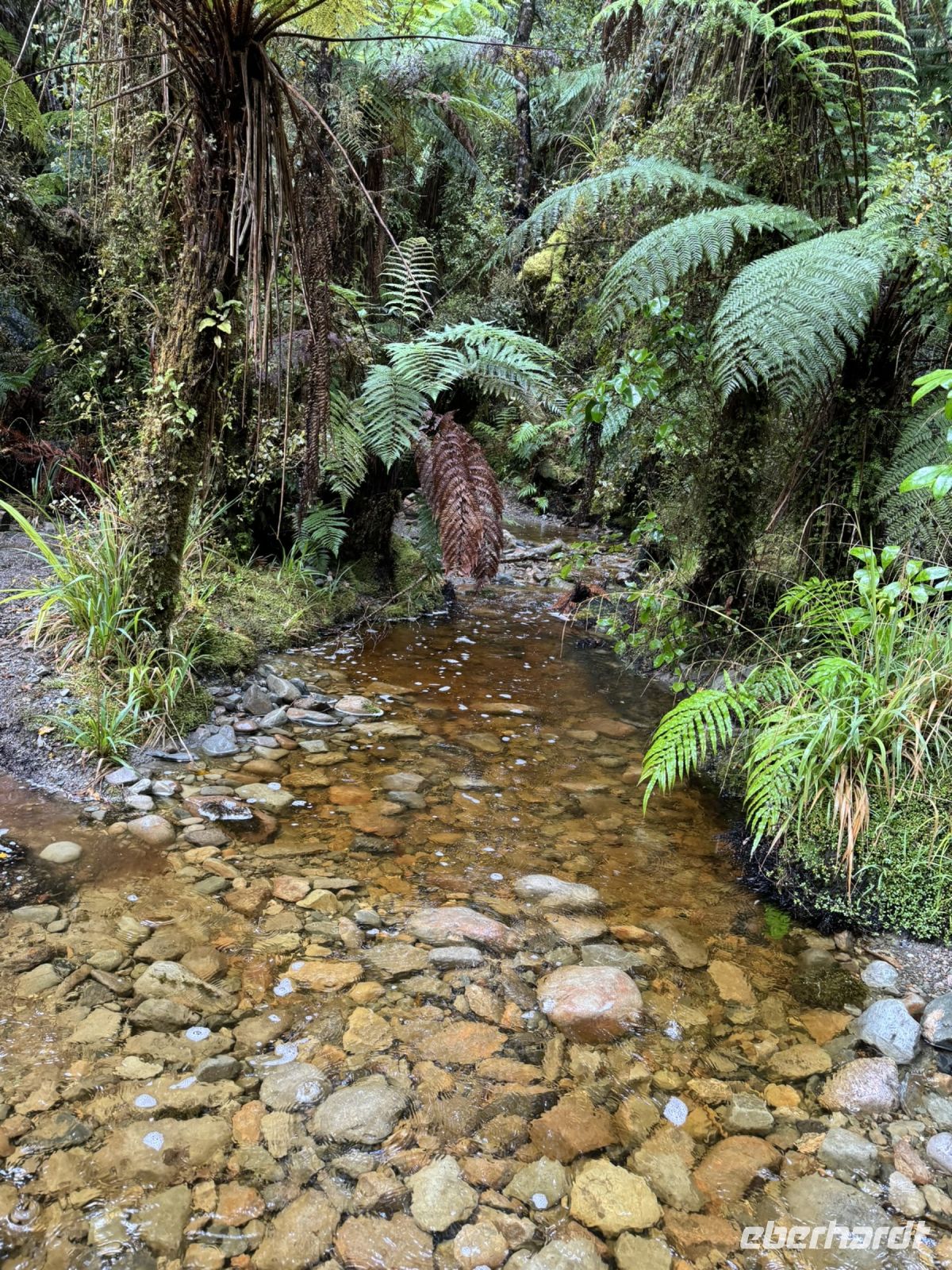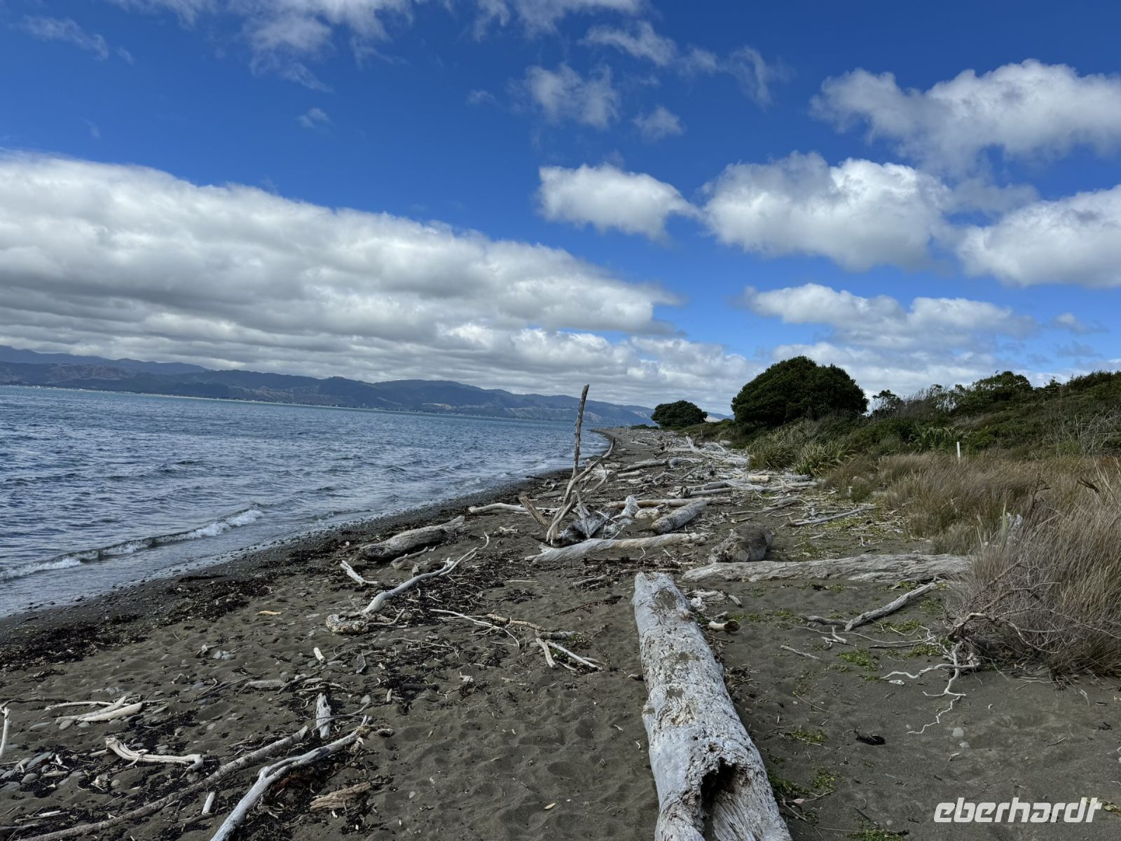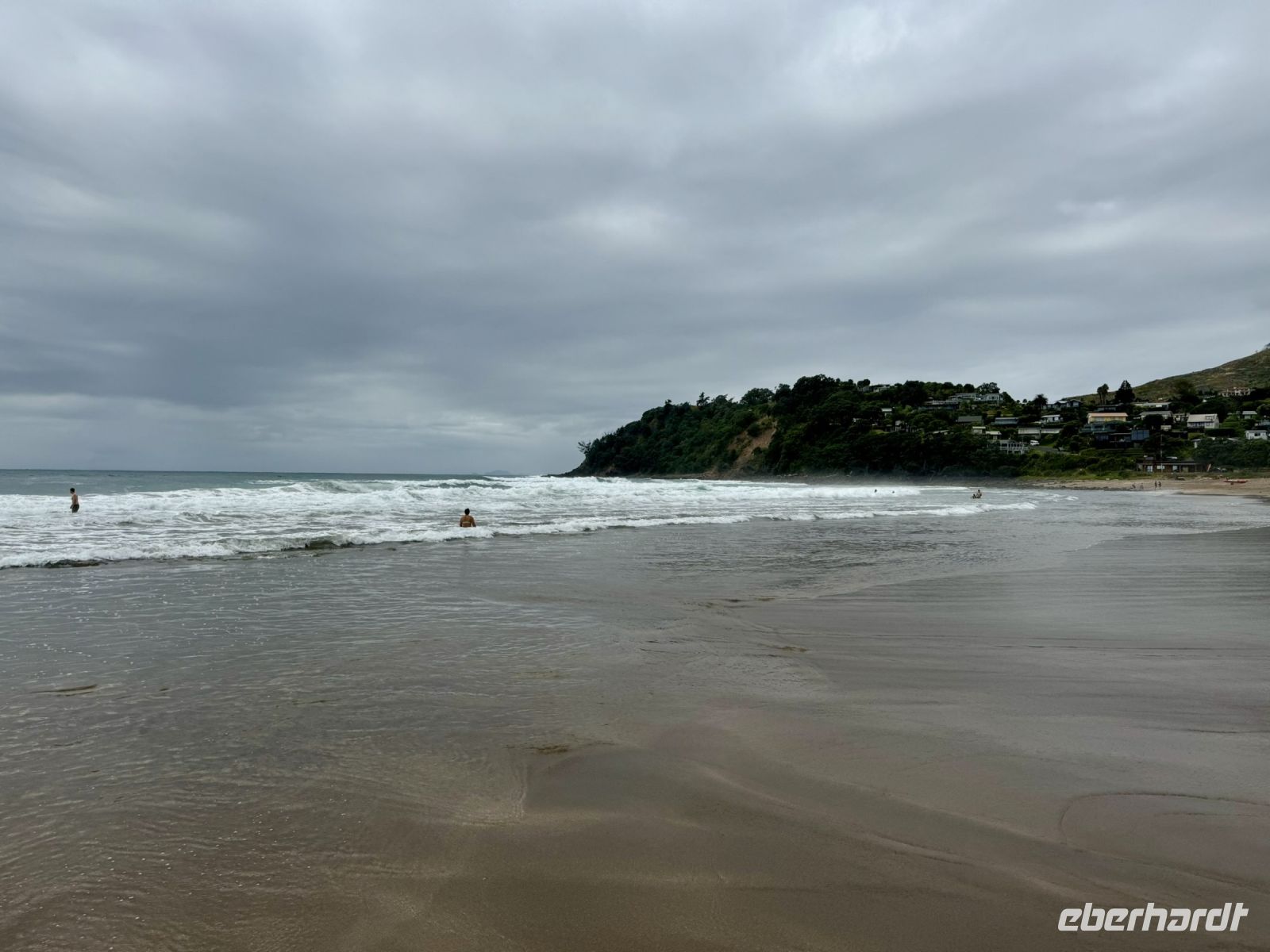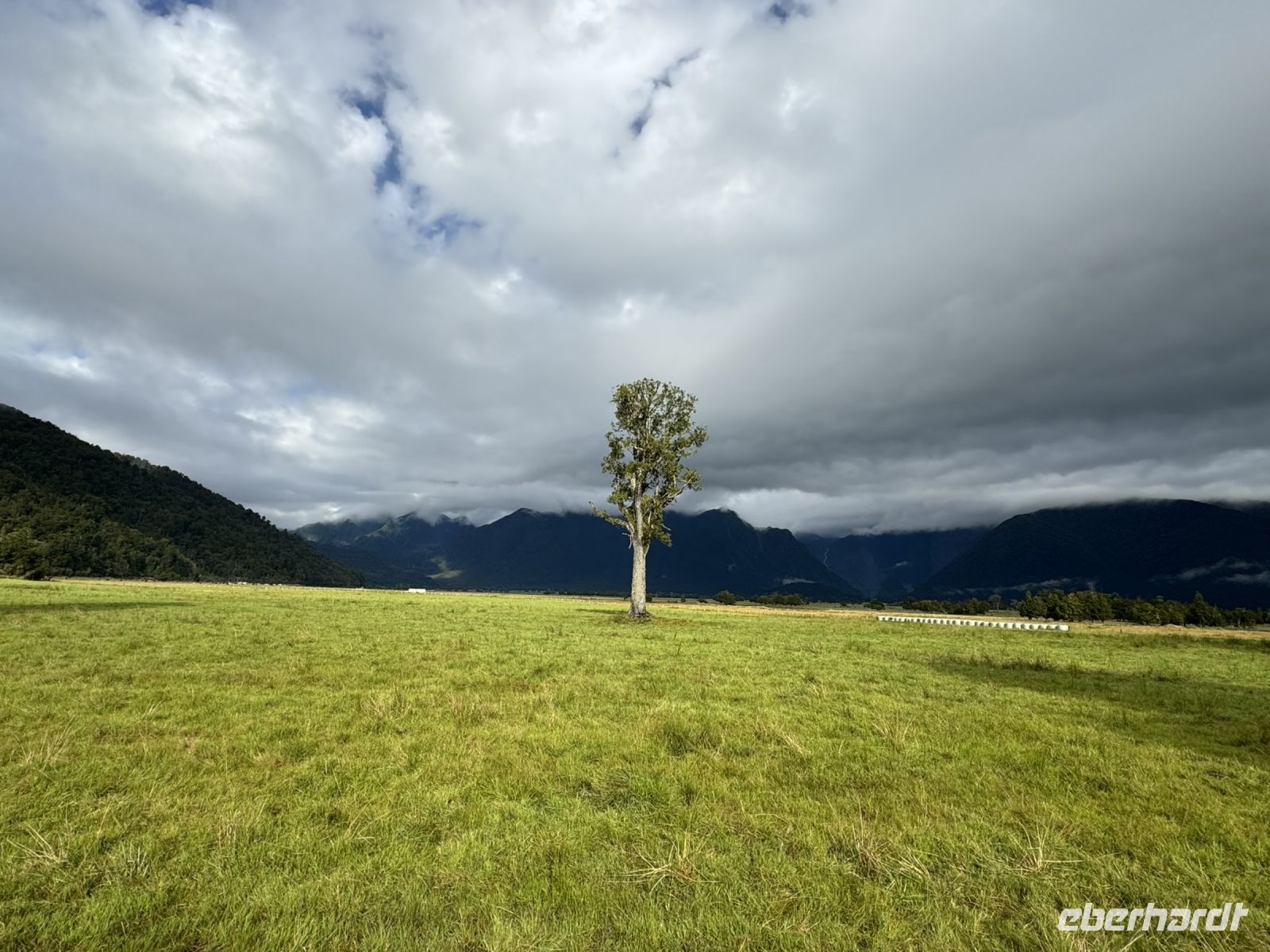 Es hatte die ganze Nacht durchgeregnet und am Anfang des Tages war der Himmel immer noch bedeckt. Deswegen konnte man leider nicht mit dem Helikopter fliegen. Trotzdem fuhren wir entlang der Westküste und machten unterschiedliche Stopps am Strand und am See. Bei Ship Creek fanden wir kleine Dünen, den Tasmal-See und wir spazierten durch den Swamp Forest.