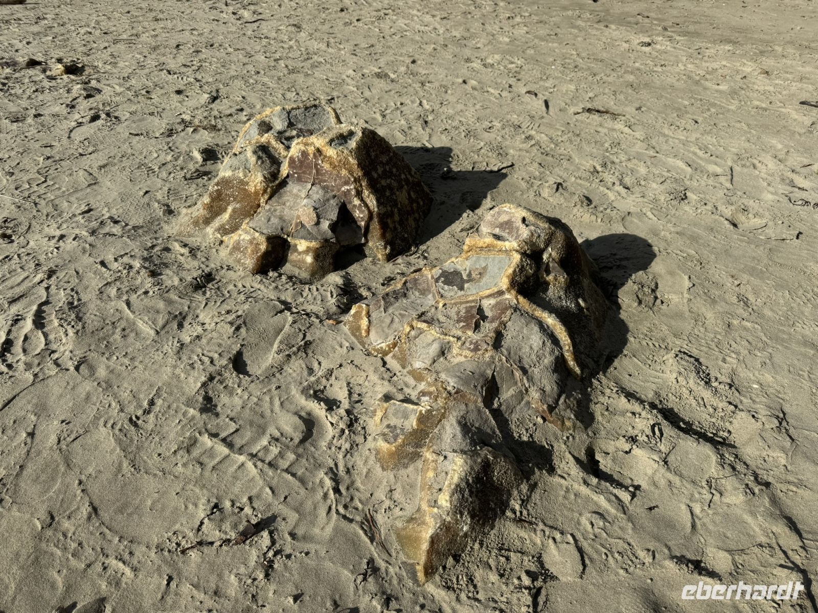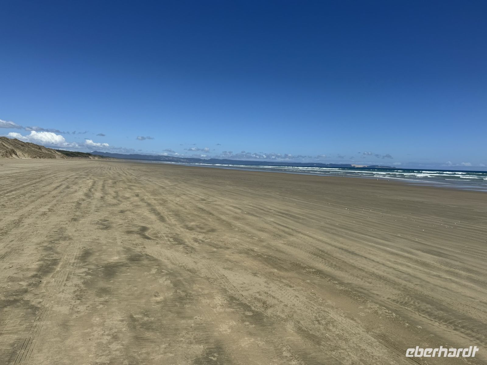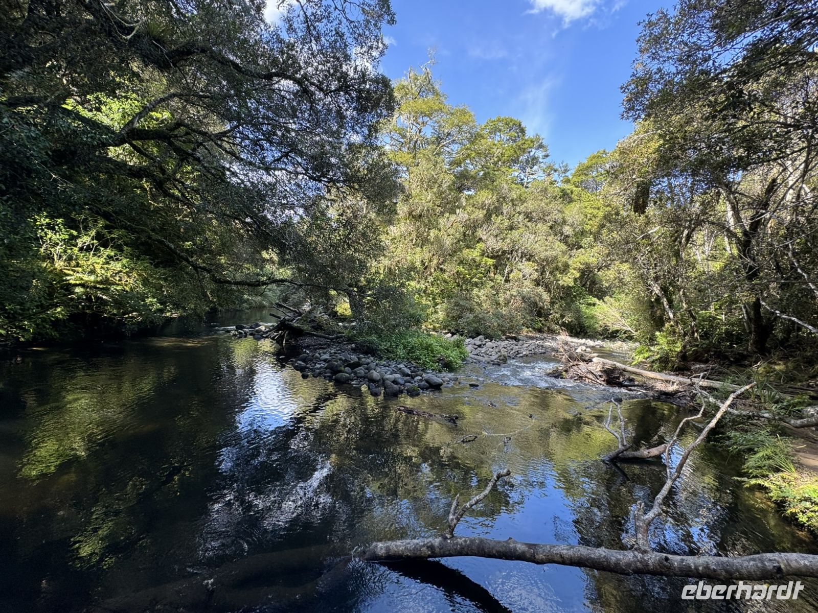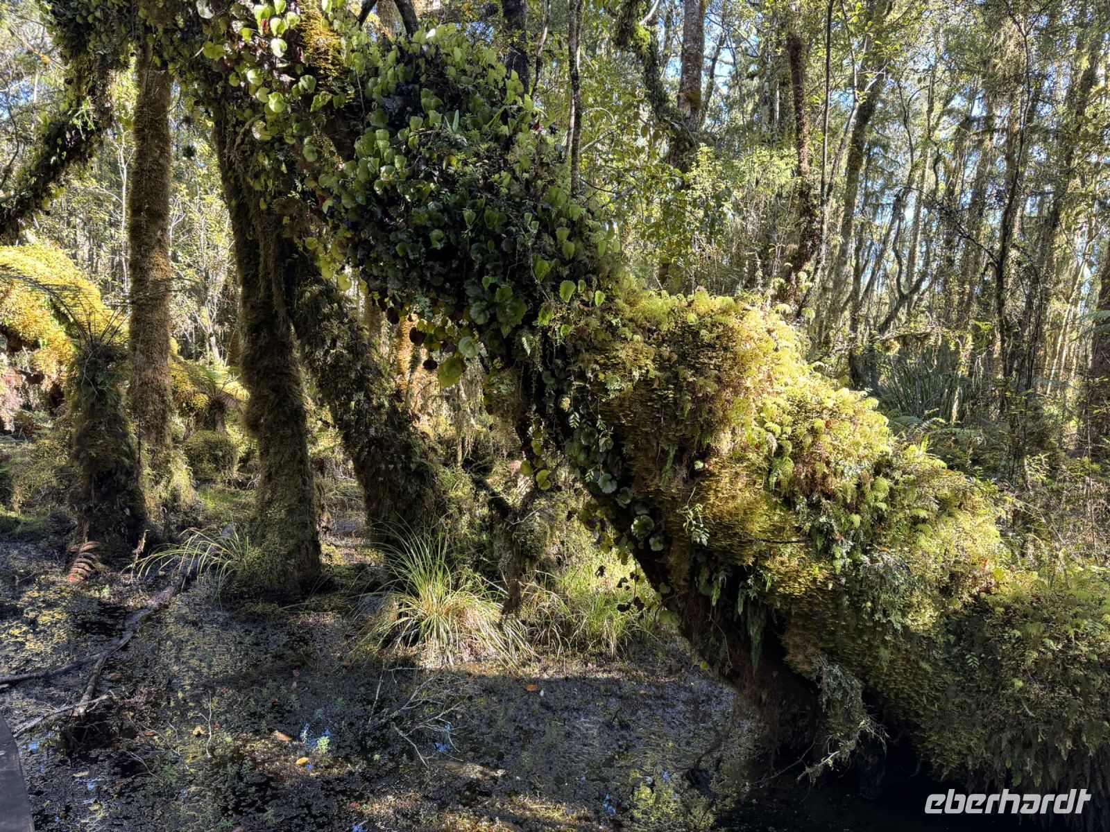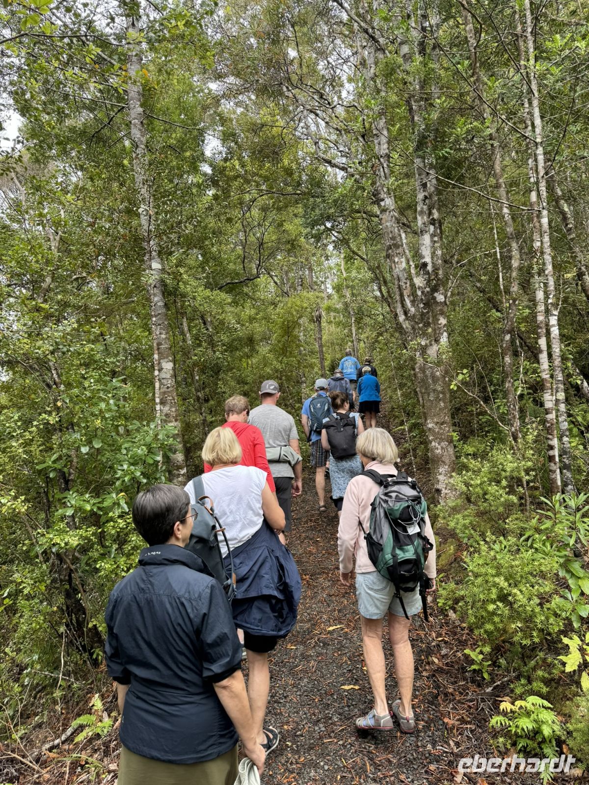 Es hatte die ganze Nacht durchgeregnet und am Anfang des Tages war der Himmel immer noch bedeckt. Deswegen konnte man leider nicht mit dem Helikopter fliegen. Trotzdem fuhren wir entlang der Westküste und machten unterschiedliche Stopps am Strand und am See. Bei Ship Creek fanden wir kleine Dünen, den Tasmal-See und wir spazierten durch den Swamp Forest.