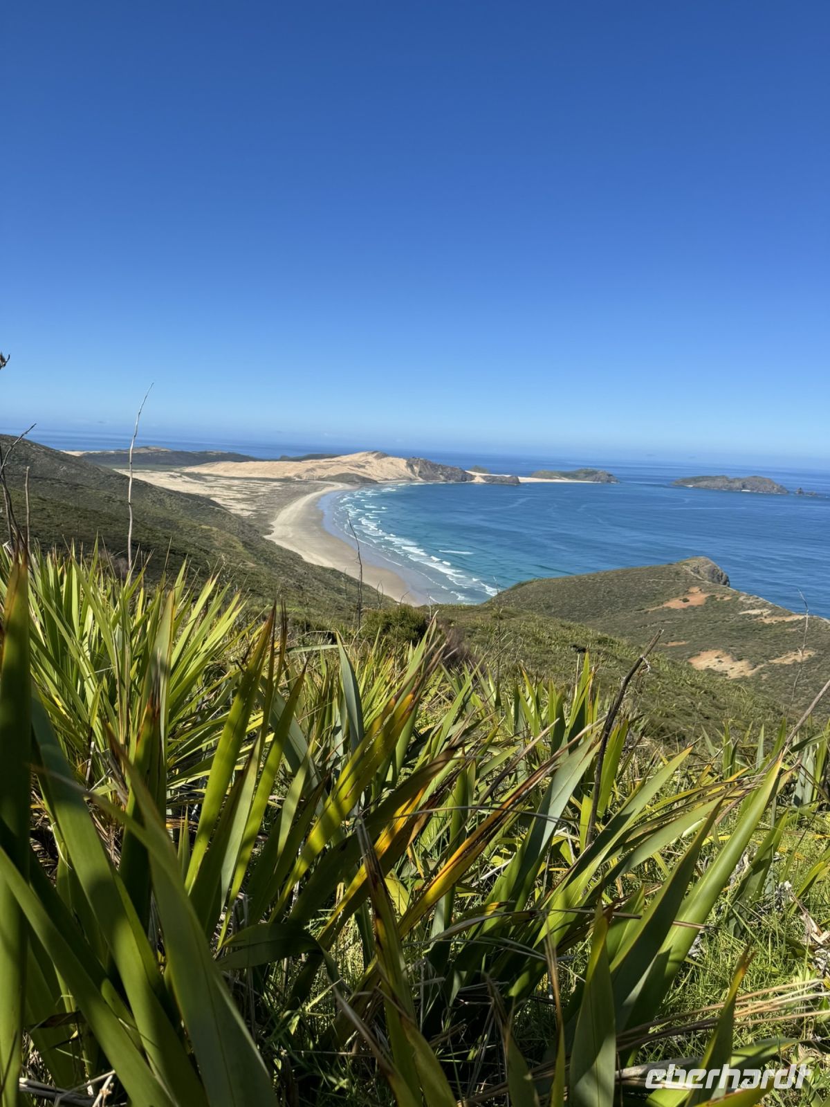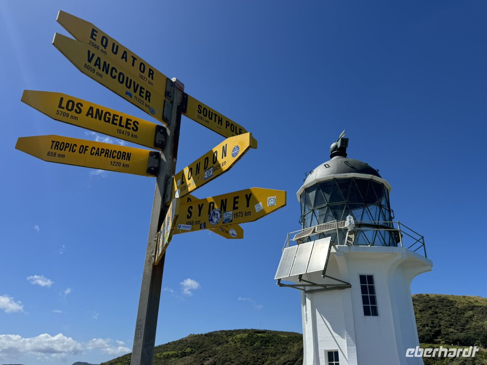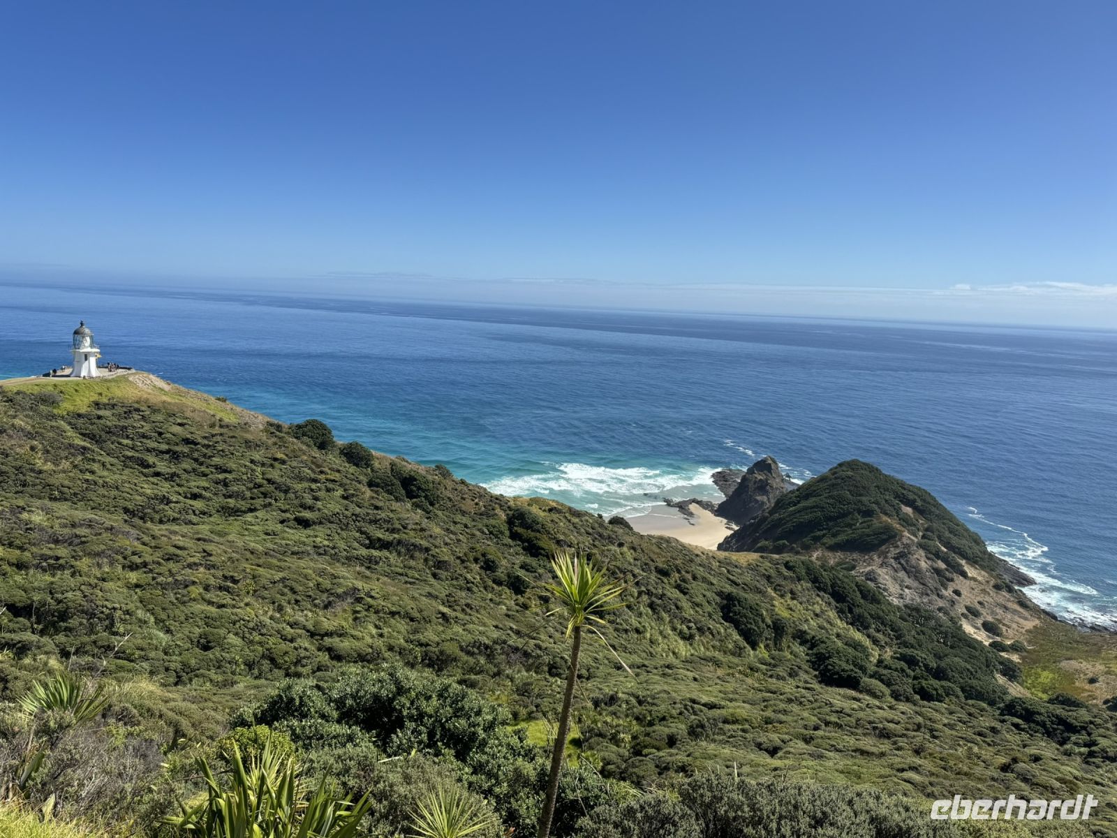 An dieser Tagesstour konnten wir die Bay of Islands bei einer Schifffahrt kennenlernen oder einen Tagesausflug zum Cape Reinga erleben. Wir starteten früh am Morgen in Richtung Norden, begleitet von den ersten Sonnenstrahlen des Tages. Unterwegs durchquerten wir verschiedene Dörfer wie Kerikeri (sehr windig), Waipapa (Wasser), Kaeo (eine Stadt, die ursprünglich zwischen Vulkanen gegründet wurde) und Mangonui (ein kleines Fischerdorf). Wir entdeckten viele Strände, Hütten und Vulkane entlang des Weges. Anschließend überquerten wir die Doubtless Bay, die früher sehr wichtig für den Walfang und andere Lebensmittel war. Man sollte daran denken, dass die ehemalige Stadt Russell ein strategischer Punkt für das Geschäft des Landes war. In Taipa machten wir eine Kaffeepause, bevor wir weiter nach Norden fuhren. Auf dem Weg nach Waiharara entdeckten wir die Avocado-Region und lernten mehr über die alten Industrien sowie die sieben verschiedenen Sorten von Teebäumen des Landes. Als wir am Cape Reinga ankamen, erwarteten uns strahlender Sonnenschein und sommerliche Temperaturen. Das Kap wird auch als Te Rerenga Wairua bezeichnet, was auf die Rückkehr nach Hawaiki (der ursprünglichen Heimat der Maori) hinweist. Es trägt auch den zweiten Namen Atua Peruperu (spirituelle Reise). Das Kap wurde auch von dem britischen Entdecker Cook und dem Portugiesen Abel Tasman besucht, dem ersten Europäer an dieser Küste. Anschließend genossen wir Fish and Chips in Pukenui direkt an der östlichen Küste und fuhren dann zur westlichen Küste zum 90 Mile Beach, wo wir Sandboarding machten und unsere Füße ins Wasser steckten. Bevor wir zurückfuhren, besichtigten wir die große Kauri-Treppe.
