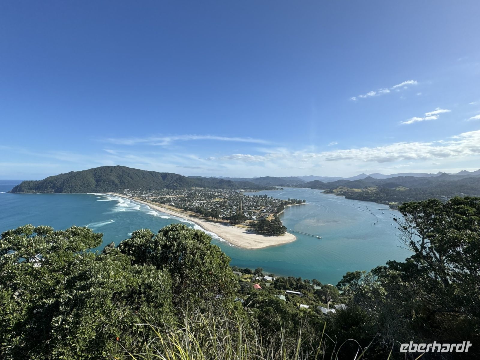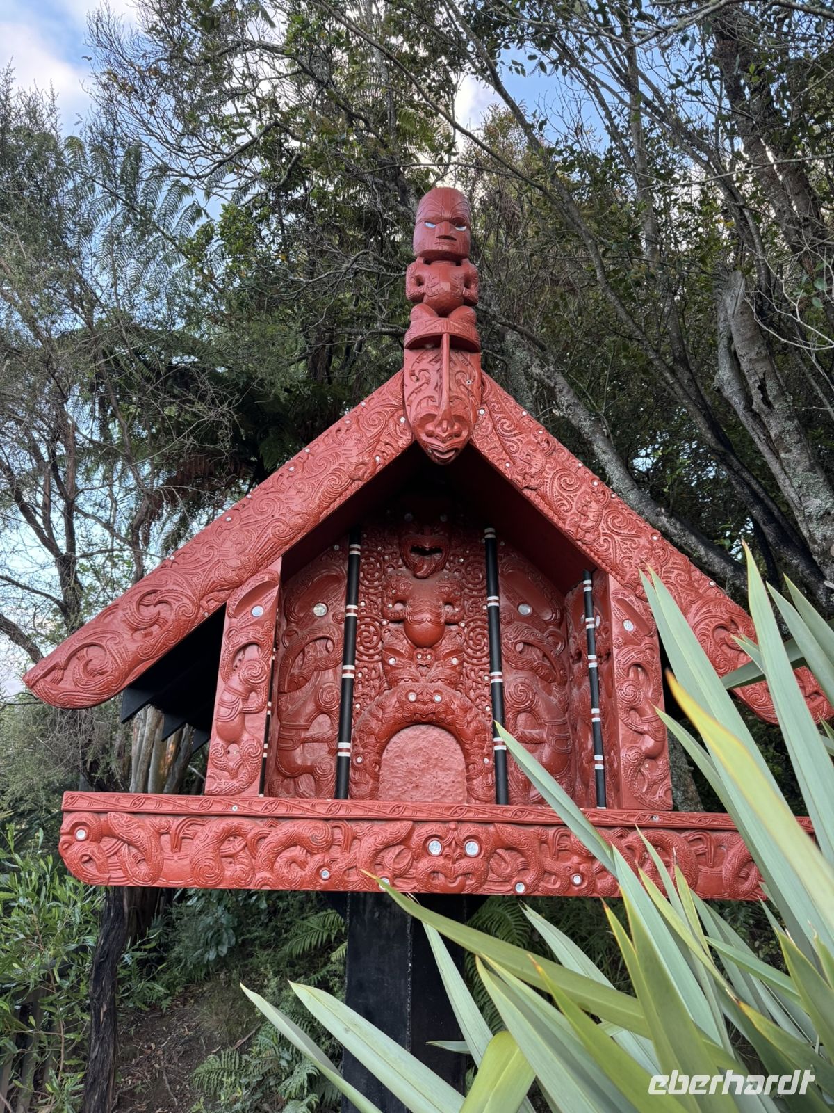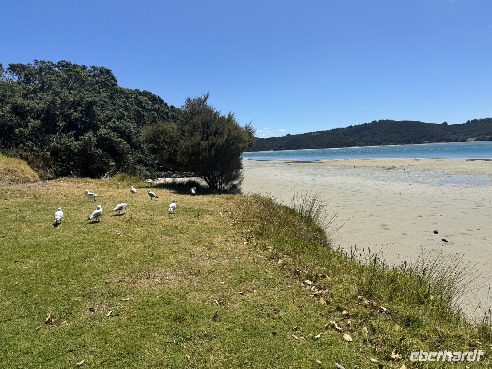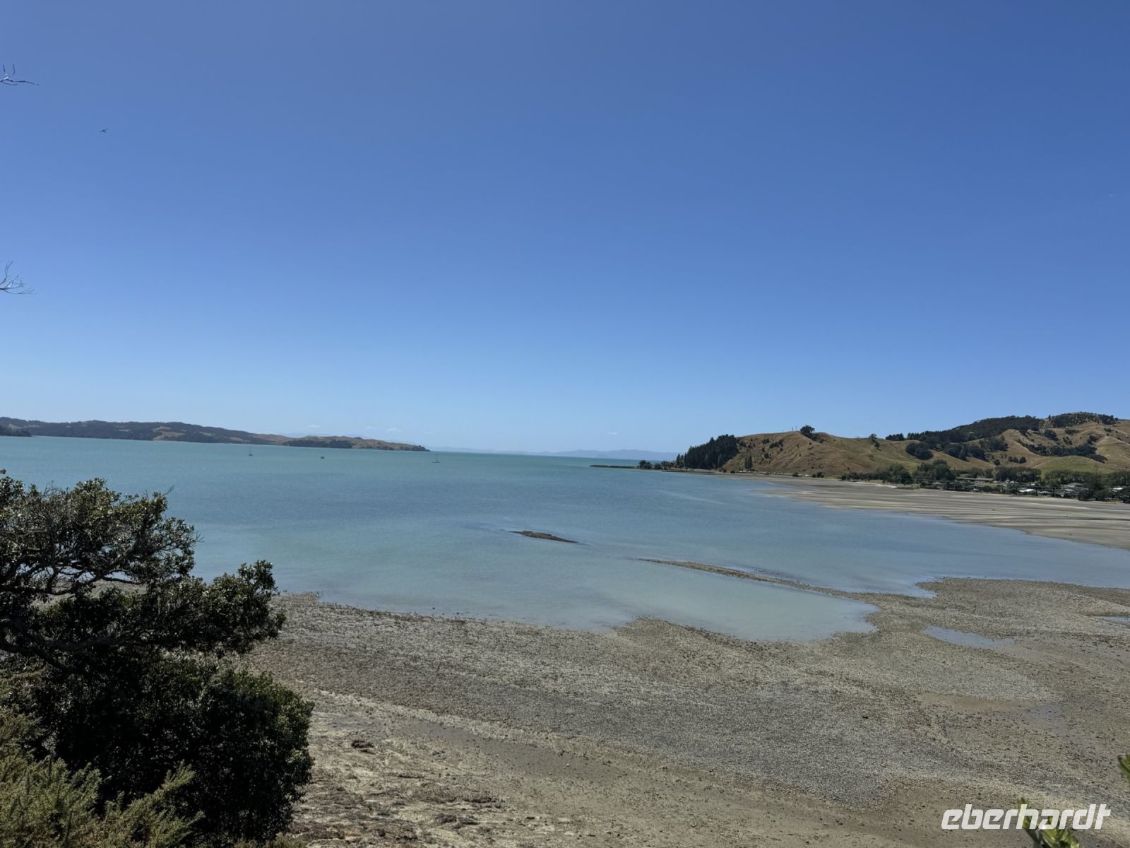 Nach einem guten Frühstück fuhren wir nach Kawakawa. Dieses Dorf ist bekannt für die Toilettenkunst von Hundertwasser, die wirklich sehr kunstvoll mit Pflanzen- und Vogelmotiven dekoriert ist. Während der Fahrt schien die Sonne und wir genossen die Kontraste der Natur entlang des Weges. Nach einer langen Fahrt überquerten wir Auckland und hielten in Kawakawa für unsere Mittagspause in einer schönen Anlage mit herrlichem Blick auf den Strand. Die Fahrt führte uns weiter entlang des Strandes mit wunderbaren Ausblicken auf die Coromandel-Halbinsel. In Thames entdeckten wir den alten Charme des Goldrausches und des Wilden Westens, der immer noch präsent war.