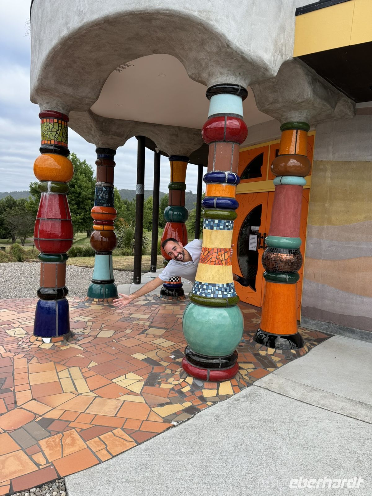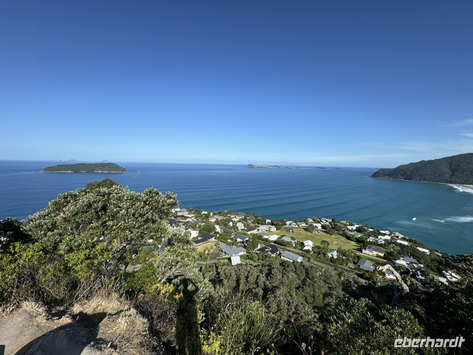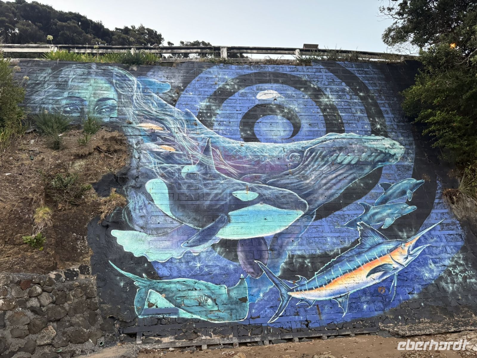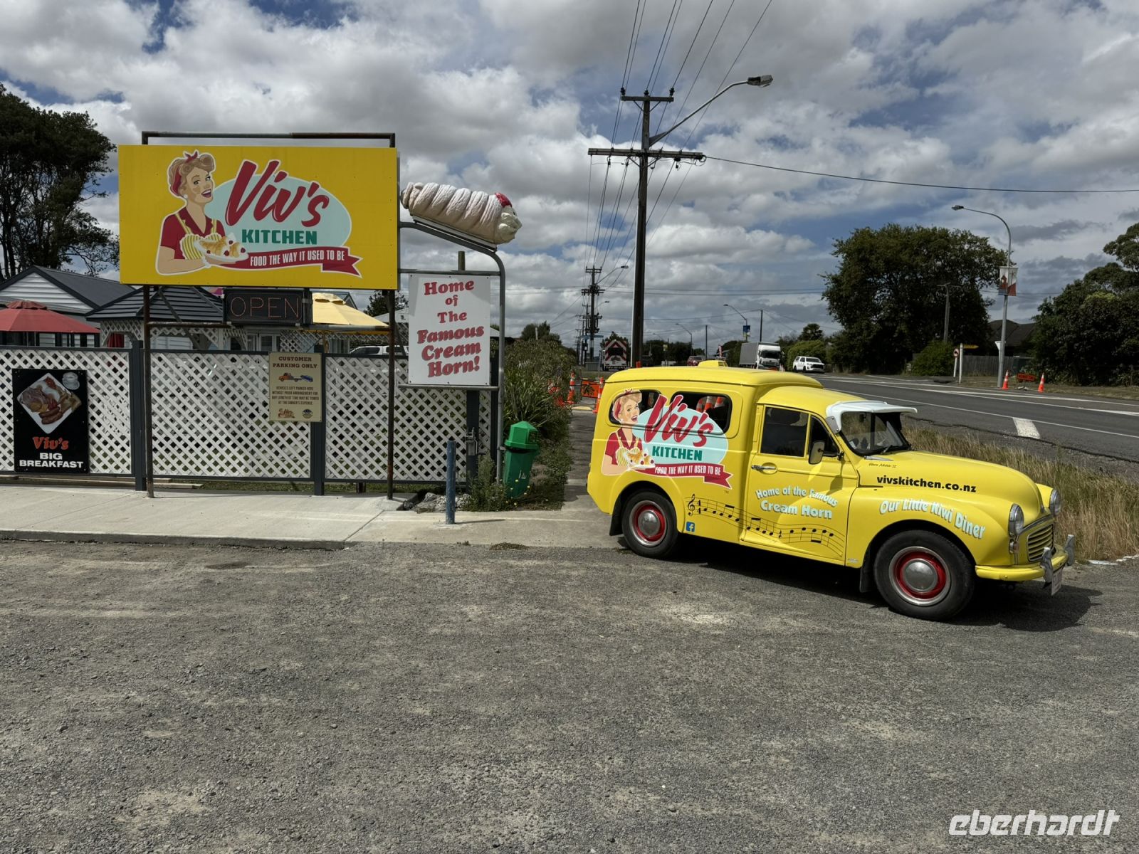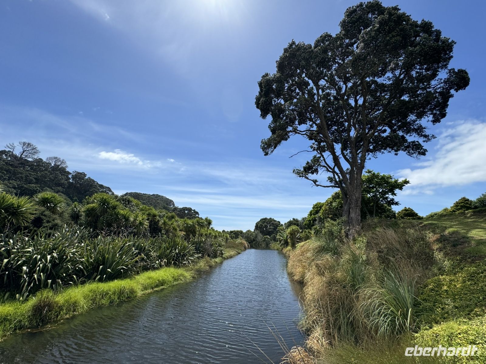 Nach einem guten Frühstück fuhren wir nach Kawakawa. Dieses Dorf ist bekannt für die Toilettenkunst von Hundertwasser, die wirklich sehr kunstvoll mit Pflanzen- und Vogelmotiven dekoriert ist. Während der Fahrt schien die Sonne und wir genossen die Kontraste der Natur entlang des Weges. Nach einer langen Fahrt überquerten wir Auckland und hielten in Kawakawa für unsere Mittagspause in einer schönen Anlage mit herrlichem Blick auf den Strand. Die Fahrt führte uns weiter entlang des Strandes mit wunderbaren Ausblicken auf die Coromandel-Halbinsel. In Thames entdeckten wir den alten Charme des Goldrausches und des Wilden Westens, der immer noch präsent war.