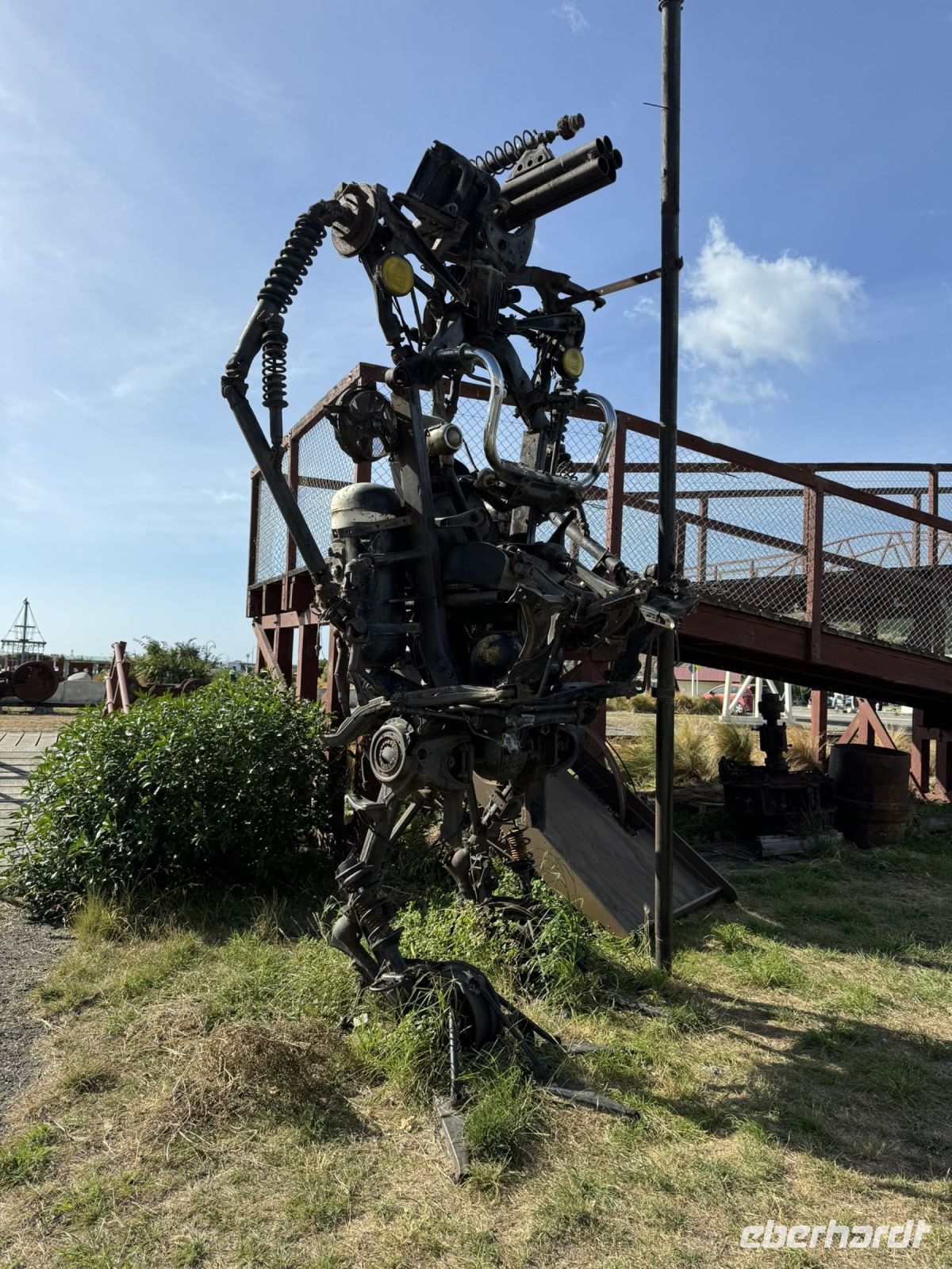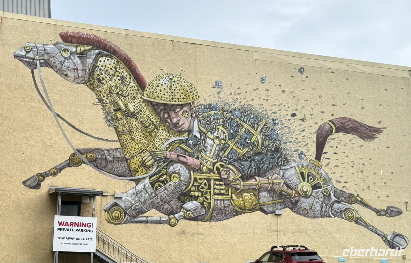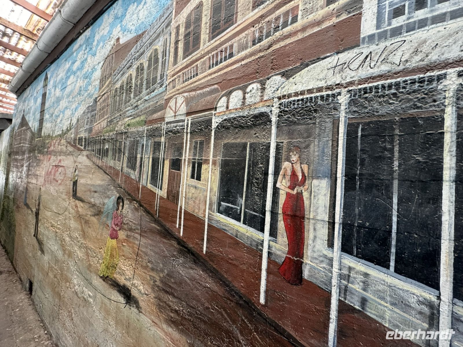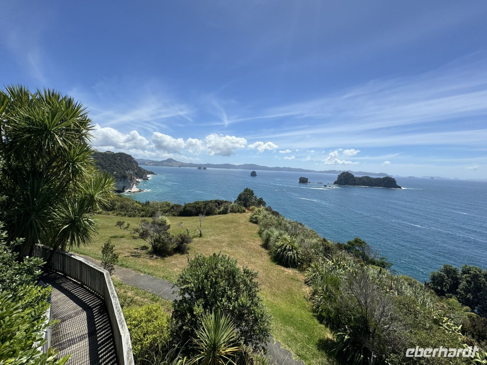 Nach einem guten Frühstück fuhren wir nach Kawakawa. Dieses Dorf ist bekannt für die Toilettenkunst von Hundertwasser, die wirklich sehr kunstvoll mit Pflanzen- und Vogelmotiven dekoriert ist. Während der Fahrt schien die Sonne und wir genossen die Kontraste der Natur entlang des Weges. Nach einer langen Fahrt überquerten wir Auckland und hielten in Kawakawa für unsere Mittagspause in einer schönen Anlage mit herrlichem Blick auf den Strand. Die Fahrt führte uns weiter entlang des Strandes mit wunderbaren Ausblicken auf die Coromandel-Halbinsel. In Thames entdeckten wir den alten Charme des Goldrausches und des Wilden Westens, der immer noch präsent war.