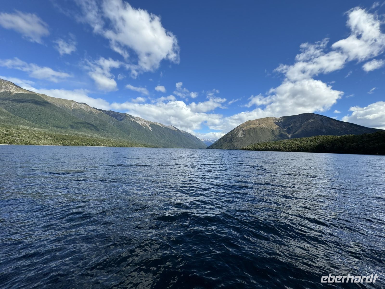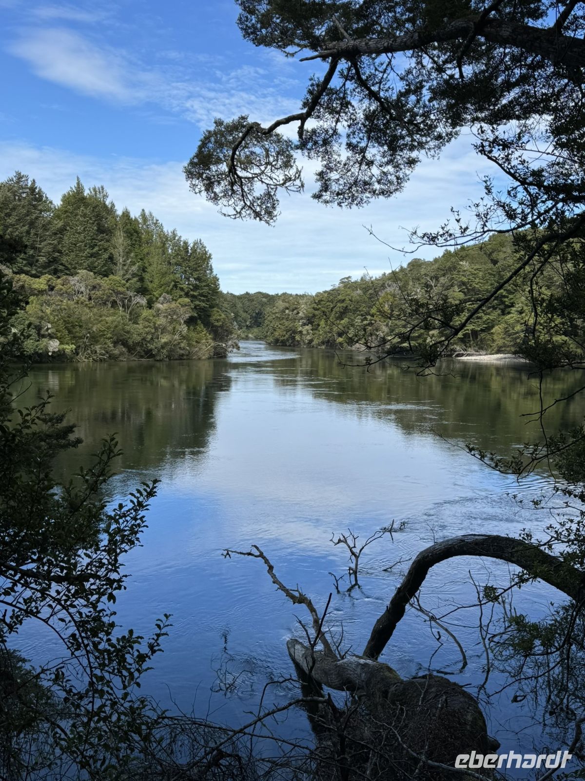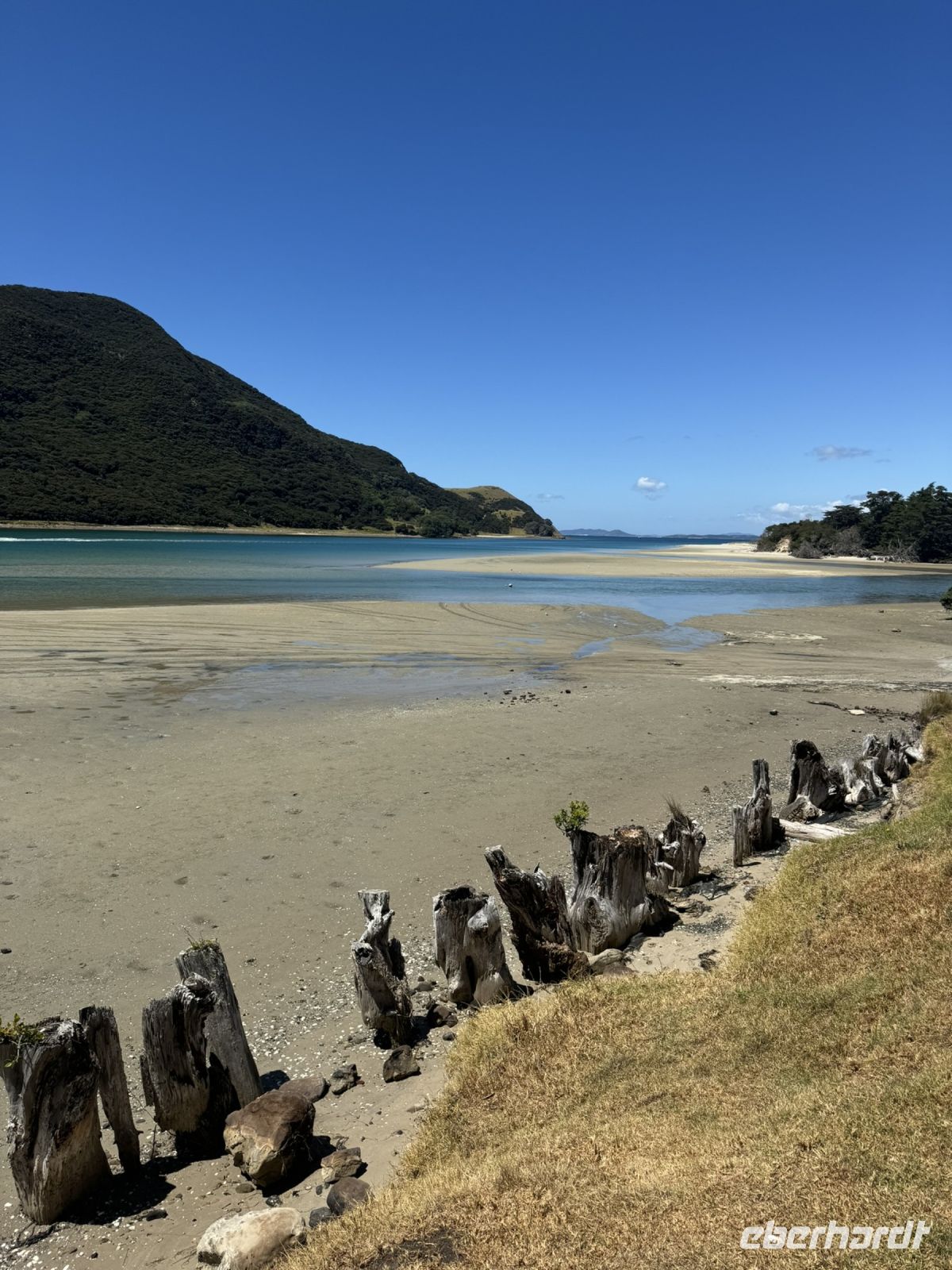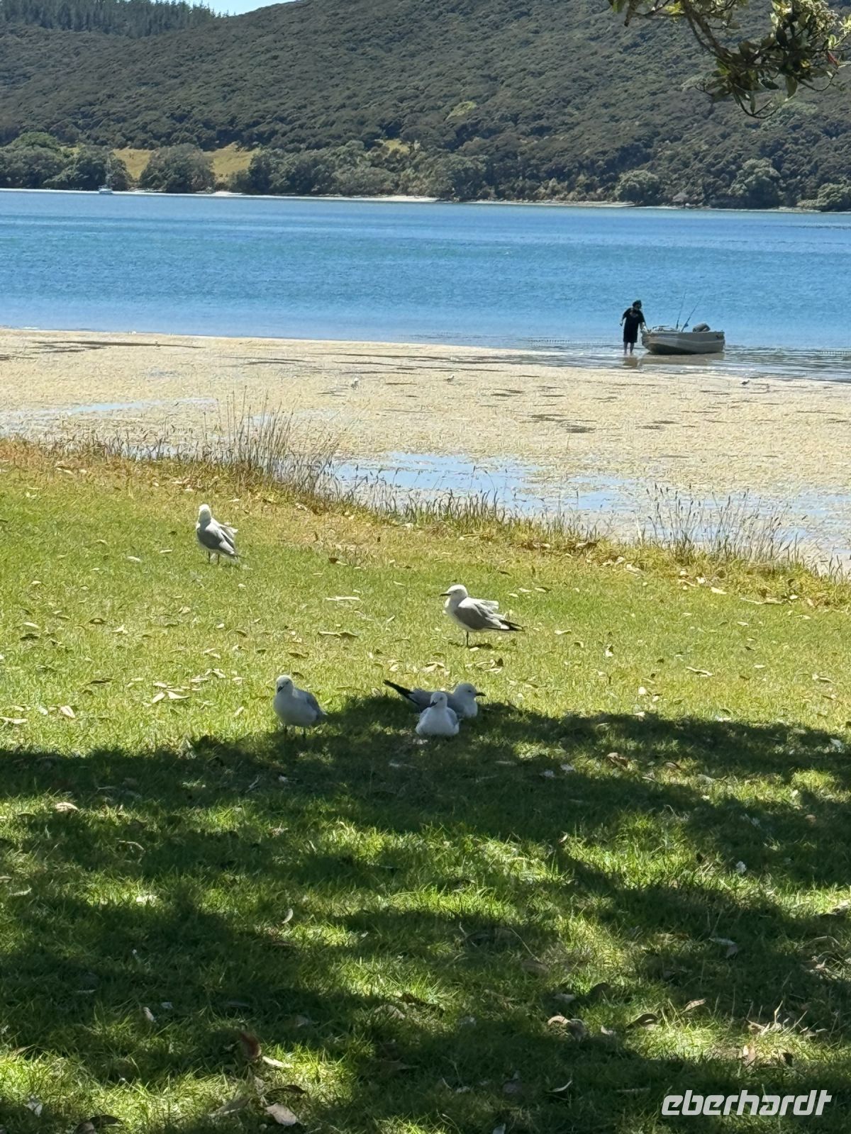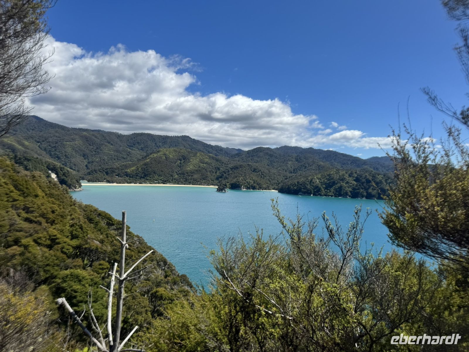 Am Anfang des Tages waren ein paar Wolken zu sehen, aber langsam kam die Sonne mit ihrer Kraft durch, um einen tollen Tag zu garantieren! Wir fuhren gemeinsam mit unserer lieben Sonja nach Kaiteriteri. Dort entdeckten wir einen wunderschönen Strand und eine Bucht und stiegen mit Hilfe eines kleinen Bootes in unseren exklusiv von Eberhardt gecharterten Katamaran ein. Während einer entspannten Fahrt im Abel Tasman Nationalpark konnten wir die Vögel hören und die Seebären beobachten. Anschließend machten wir eine kleine Wanderung. Dort sprangen wir ins Wasser für ein erfrischendes Bad, bevor wir unser Mittagessen genossen. Wir tankten Energie mit leckeren Portionen und genossen dieses kleine Paradies auf dem Rückweg.