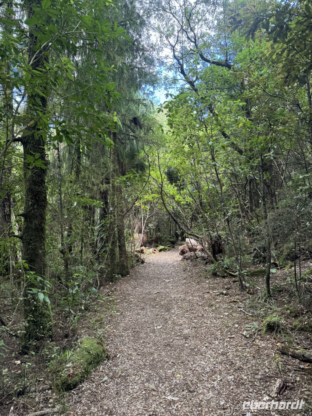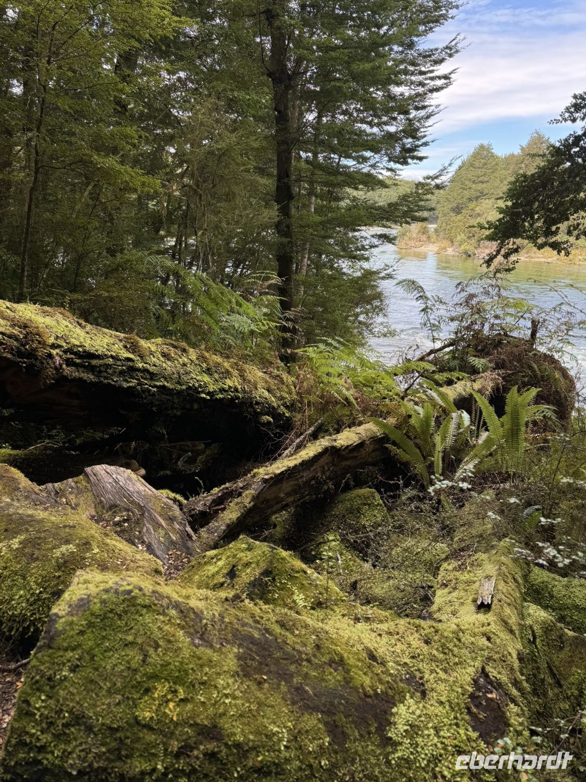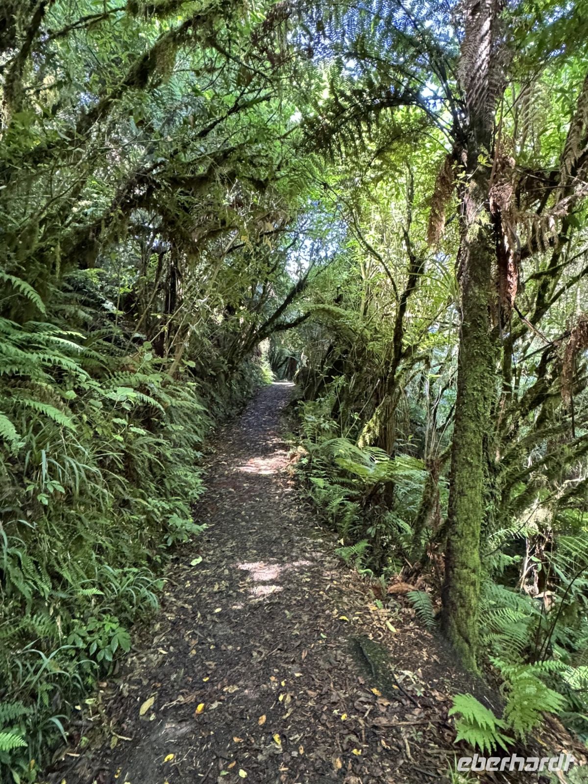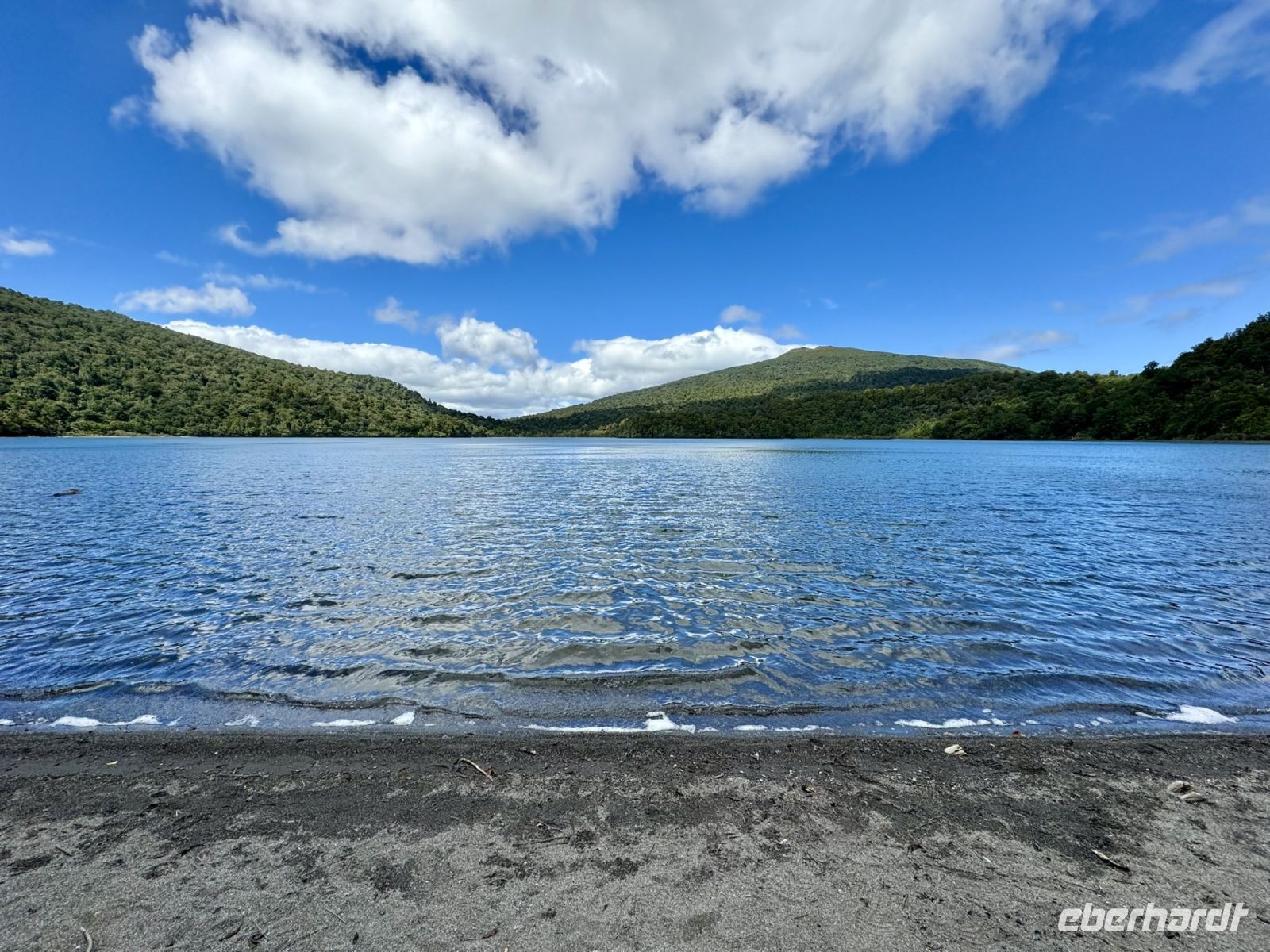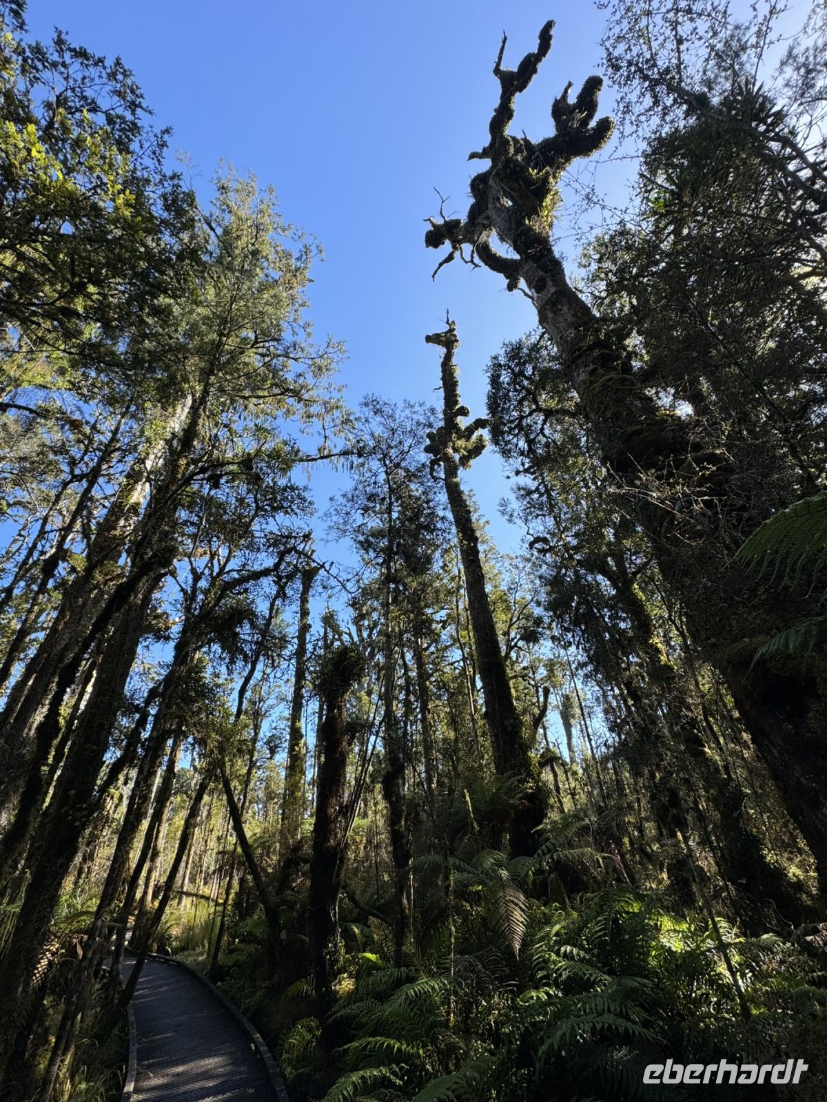 Bei unserer Wanderung am Vormittag war es zuerst etwas steil, aber dann wurde es sehr angenehm, bis wir einen umgestürzten Baum in der Mitte des Weges fanden. Das machte die Route noch schöner und langsam kamen wir am See an. Wir gingen einmal um den See herum und dann noch ein Stück weiter zum zweiten See, wo wir die beeindruckende Schönheit der Natur erlebten. Am Ende unserer Route feierten wir Jörgs Geburtstagsparty und setzten unsere Fahrt mit den Sonnenstrahlen fort. Unsere Mittagspause machten wir in Viv's Kitchen, wo wir die besten Sahnehörnchen des Landes probieren mussten! Anschließend hielten wir in Rapihi zum Einkaufen an und schauten uns die typische Marke Icebreaker an. Zum Abschluss besuchten wir das Naturreservat Nga Manu, wo wir einen echten Kiwi sowie Tuatara, Kea, Weta und andere einheimische Arten sehen konnten. Dort machten wir auch einen schönen Spaziergang durch den Wald.