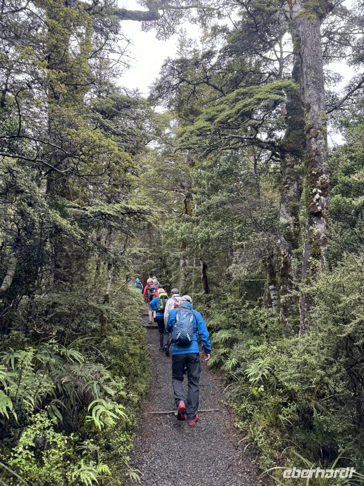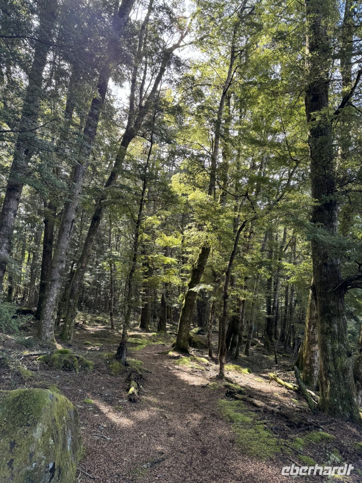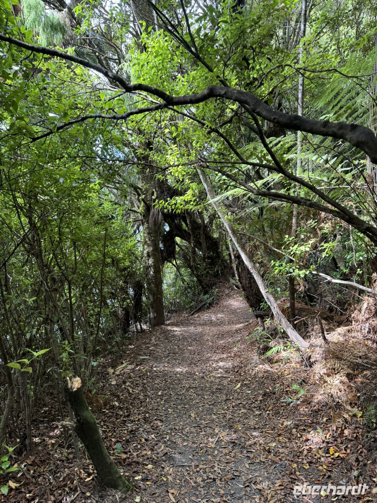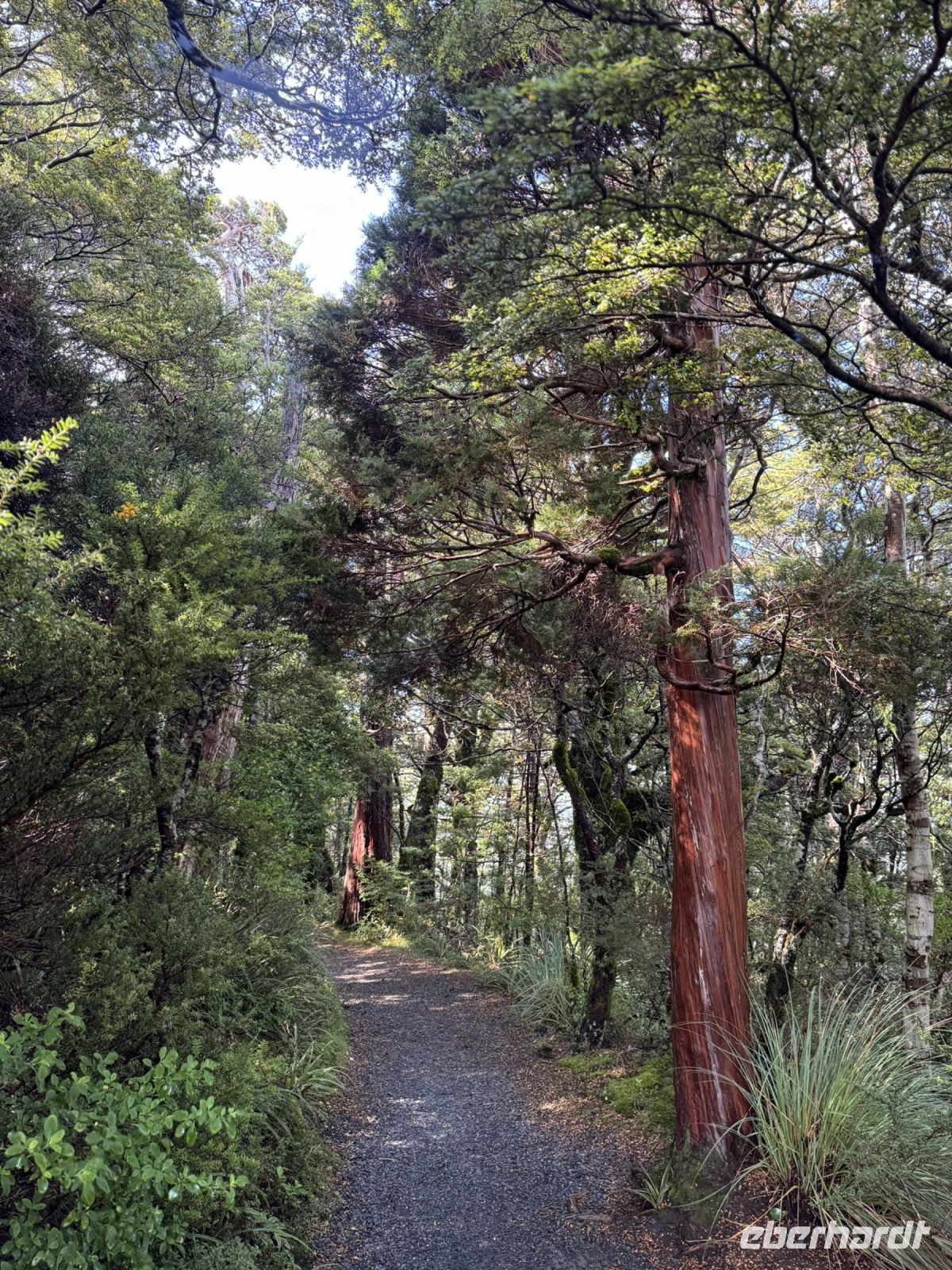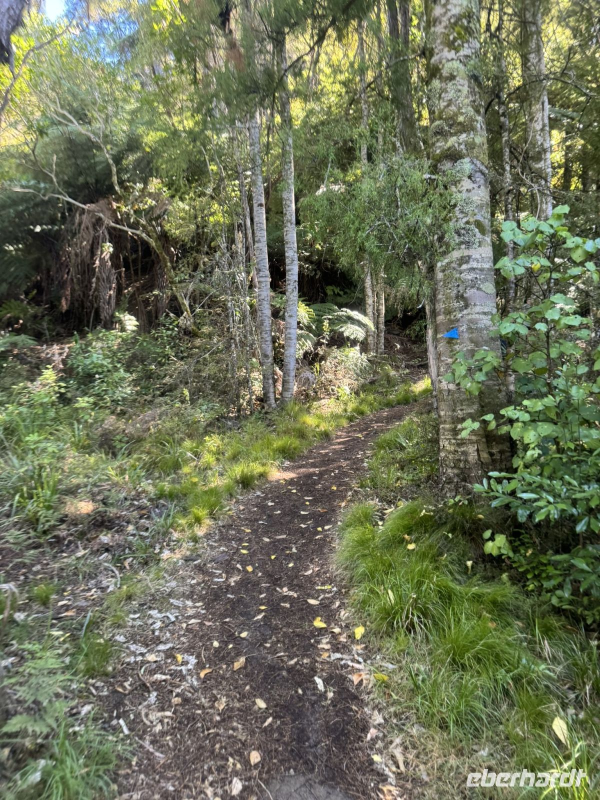 Bei unserer Wanderung am Vormittag war es zuerst etwas steil, aber dann wurde es sehr angenehm, bis wir einen umgestürzten Baum in der Mitte des Weges fanden. Das machte die Route noch schöner und langsam kamen wir am See an. Wir gingen einmal um den See herum und dann noch ein Stück weiter zum zweiten See, wo wir die beeindruckende Schönheit der Natur erlebten. Am Ende unserer Route feierten wir Jörgs Geburtstagsparty und setzten unsere Fahrt mit den Sonnenstrahlen fort. Unsere Mittagspause machten wir in Viv's Kitchen, wo wir die besten Sahnehörnchen des Landes probieren mussten! Anschließend hielten wir in Rapihi zum Einkaufen an und schauten uns die typische Marke Icebreaker an. Zum Abschluss besuchten wir das Naturreservat Nga Manu, wo wir einen echten Kiwi sowie Tuatara, Kea, Weta und andere einheimische Arten sehen konnten. Dort machten wir auch einen schönen Spaziergang durch den Wald.