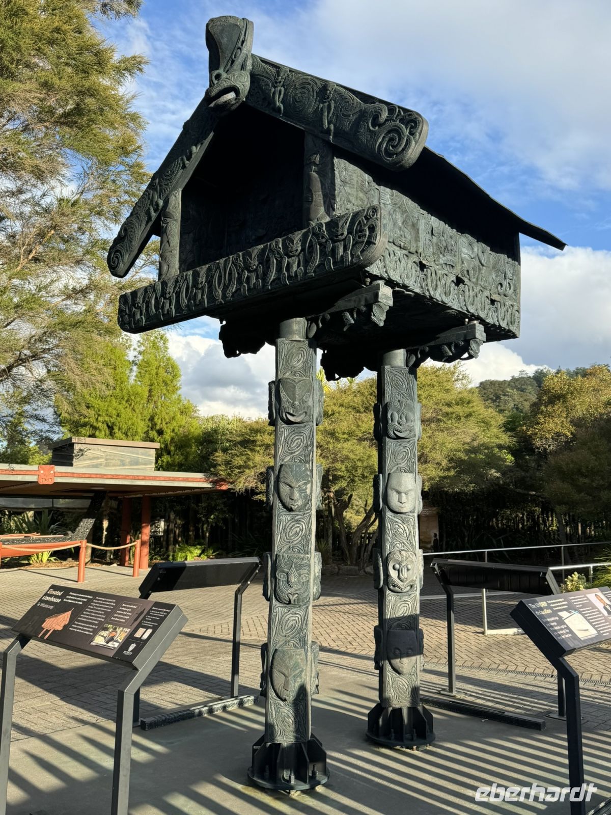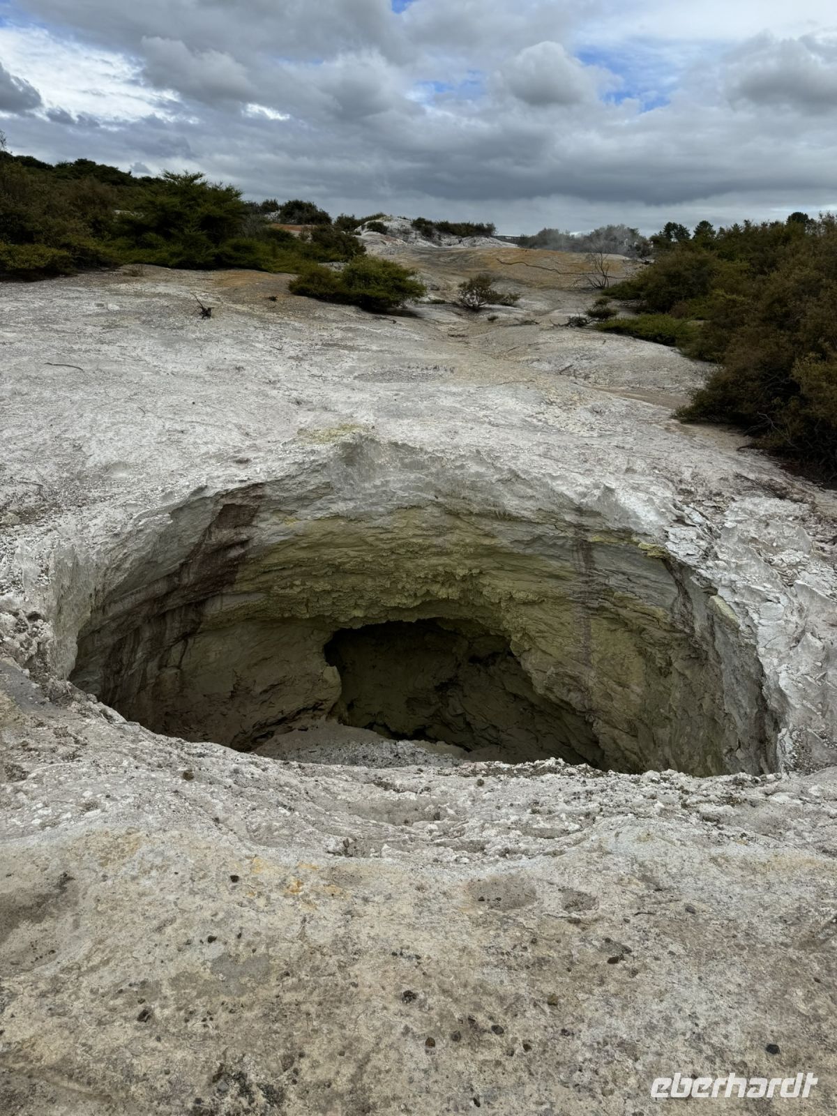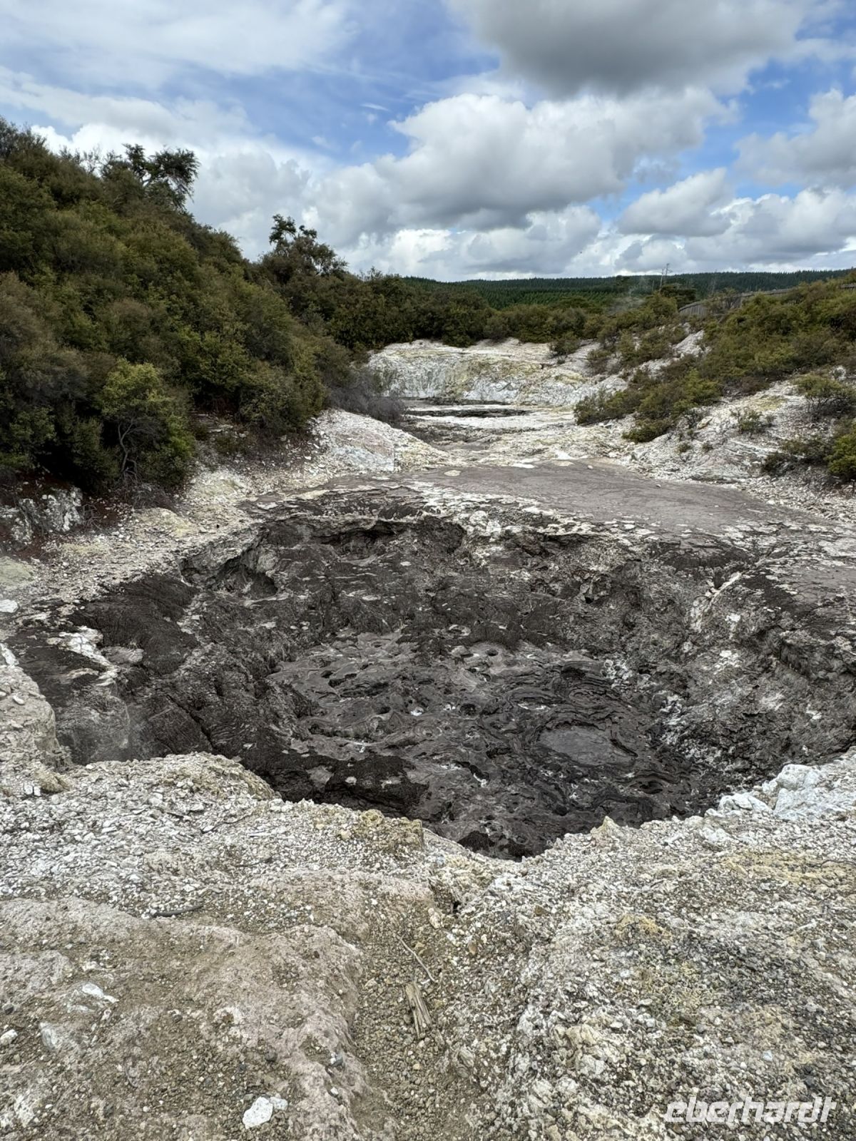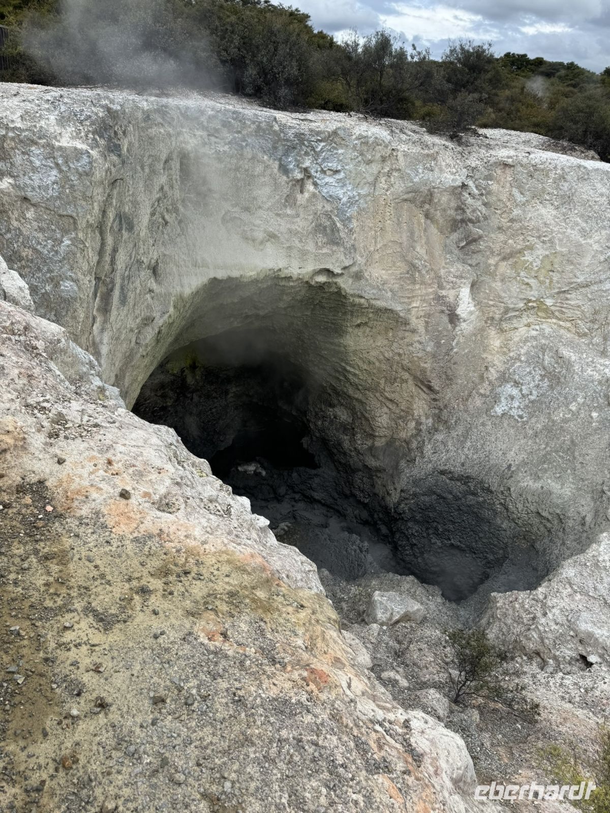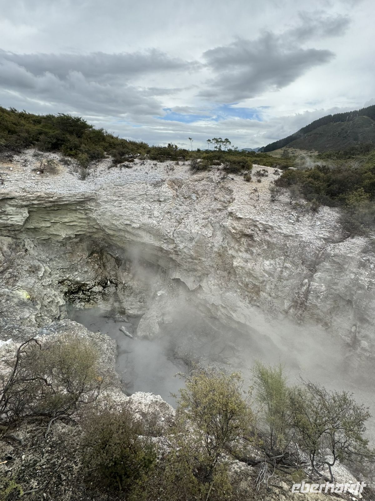 Wir verließen langsam die Coromandel-Halbinsel und hielten in Waihi. Bei einem kleinen Spaziergang entdeckten wir die alte Gold- und Silbermine mit einem Erdschacht von 240 Metern Tiefe, der sich sogar bis auf 400 Meter Tiefe erstreckt. Anschließend erlebten wir ein Hobbit-Gefühl in Matamata, wo wir das Hobbiton Tourismuszentrum besuchten. Unsere Reise führte uns weiter nach Tairua, wo wir eine gigantische Hundestatue, Schafe und Ziegen entdeckten und unsere Mittagspause einlegten. Auf dem Weg nach Rotorua kamen wir an einem vulkanischen Gebiet vorbei und man konnte einige vulkanische Steine an den Hütten erkennen. Am Kratersee in Rotorua sahen wir die alte Caldera. Unser nächster Halt war das Thermal Wonderland Wai-O-Tapi, wo wir auf Wanderwegen die verschiedenen Krater erkundeten. Die Farben spielten in diesem aktiven vulkanischen Gebiet eine wichtige Rolle. Besonders beeindruckend war das schwefelige Aroma und der Rauch beim Champagner Pool, was ein schönes Bild in der Natur ergab. Die Route endete neben einem riesigen hellgelben Pool. Bevor wir die Anlage verließen, machten wir einen Zwischenstopp beim Mud Pool, um die Aktivität zu beobachten. In Rotorua fuhren wir direkt zum Hotel und hatten genügend Zeit, um uns zu erfrischen, bevor wir zu unserem Abendessen gingen. In Te Puia genossen wir unser leckeres Abendessen sowie eine typische Maori-Show. Zuerst nahmen wir an einem Ritual teil, bei dem man zwischen Frieden oder Krieg wählen musste. Anschließend betraten wir eine große Halle und erlebten eine wunderschöne Show mit verschiedenen Instrumenten. Zum Abschluss besuchten wir die Geysire und genossen den Moment mit einer heißen Schokolade.