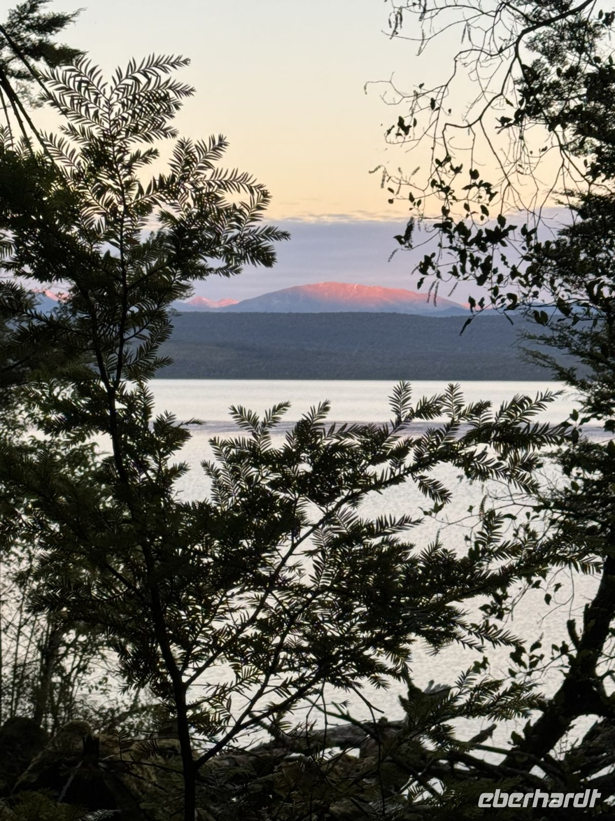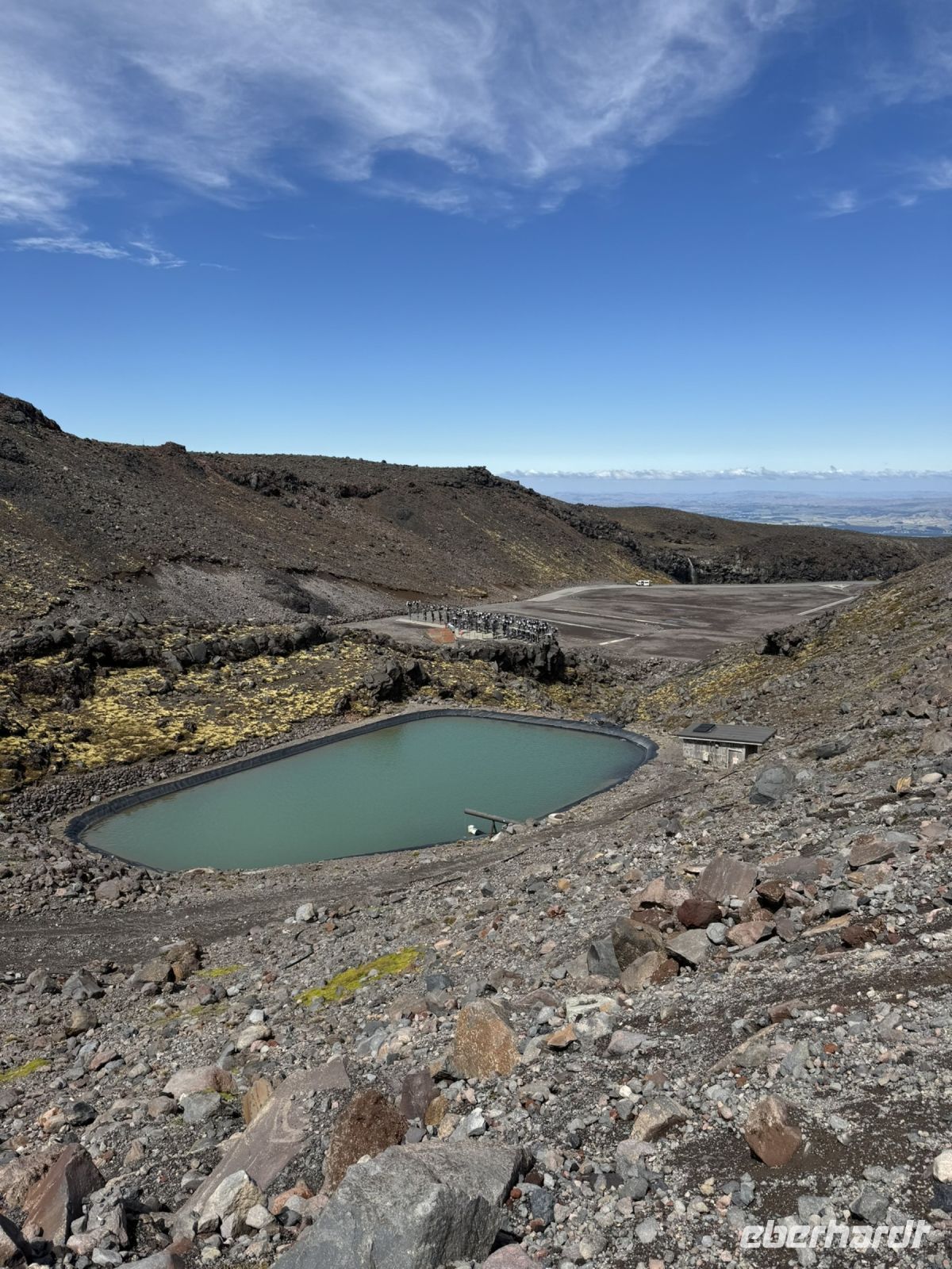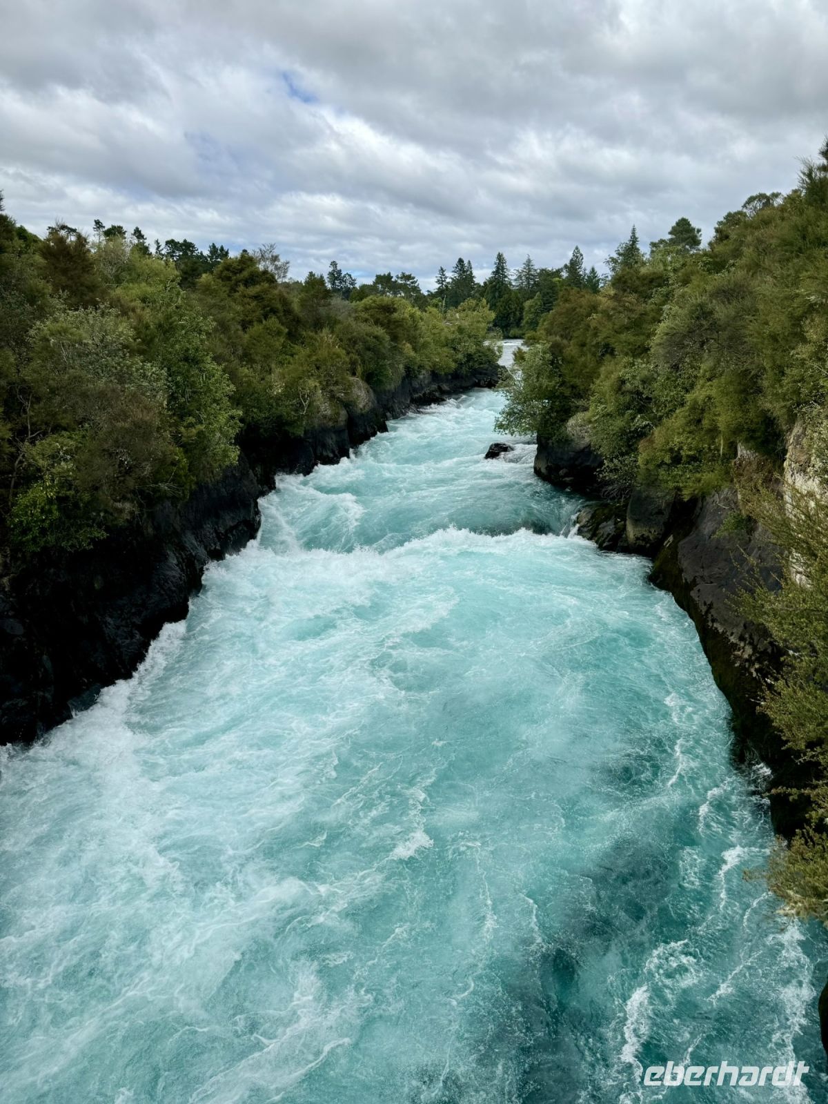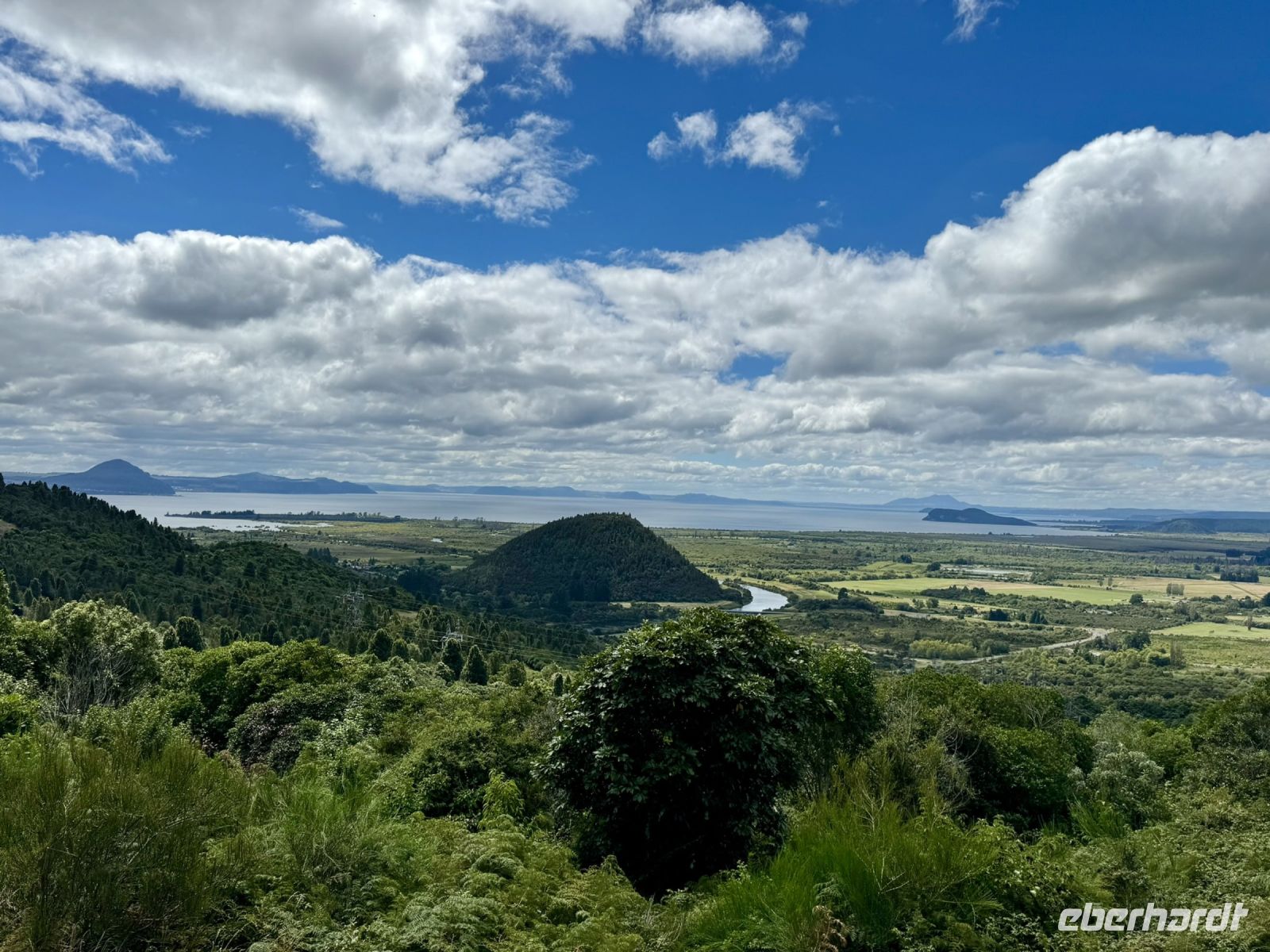Nach dem Frühstück machten wir eine Stadtrundfahrt durch den Badeort direkt am See Rotorua und hatten unsere Shopping-Momente. Anschließend fuhren wir in Richtung Süden nach Wairakei, um die beeindruckenden Huka Wasserfälle zu sehen. Über 200.000 Liter Wasser stürzen dort pro Minute hinunter! Wir fuhren weiter am Taupo-See vorbei, der sich in einem alten Krater befindet. Dank des Sonnenscheins waren die Ausblicke fantastisch und wir konnten die Fahrt richtig genießen. In Motuoapa machten wir unsere Mittagspause und hielten für einen letzten Fotostopp am Taupo-See an. Danach wanderten wir im Tongariro Nationalpark zum Rotopounamu See. Zunächst mussten wir einen steilen Anstieg von über 130 Metern Höhenunterschied bis zum Ufer des Sees bewältigen. Auf einer Höhe von 700 Metern erreichten wir den See und spazierten entlang des Waldes am Ufer, wo wir auch kleine Strände entdeckten. Anschließend setzten wir unsere Fahrt fort nach Ohakune.