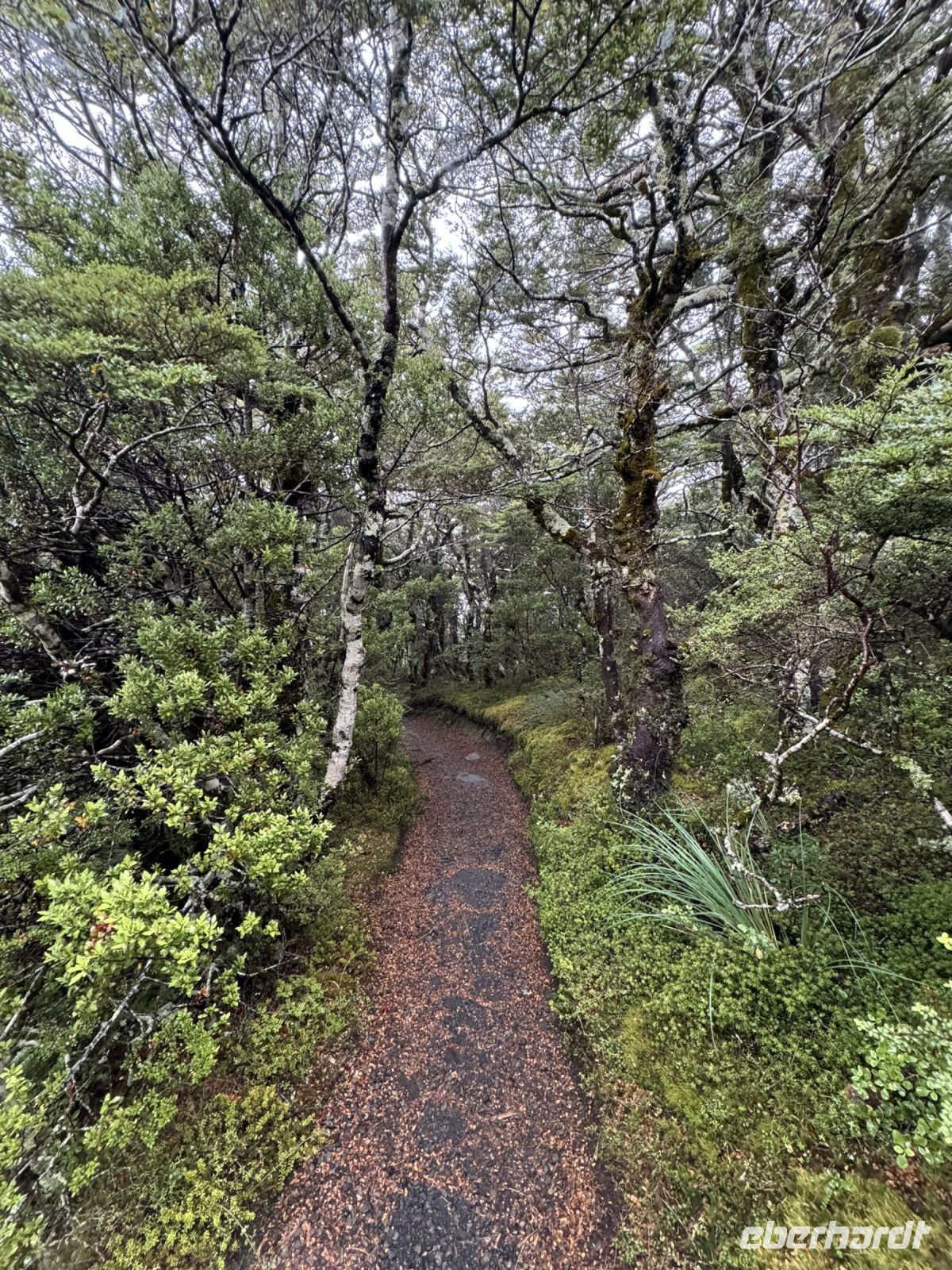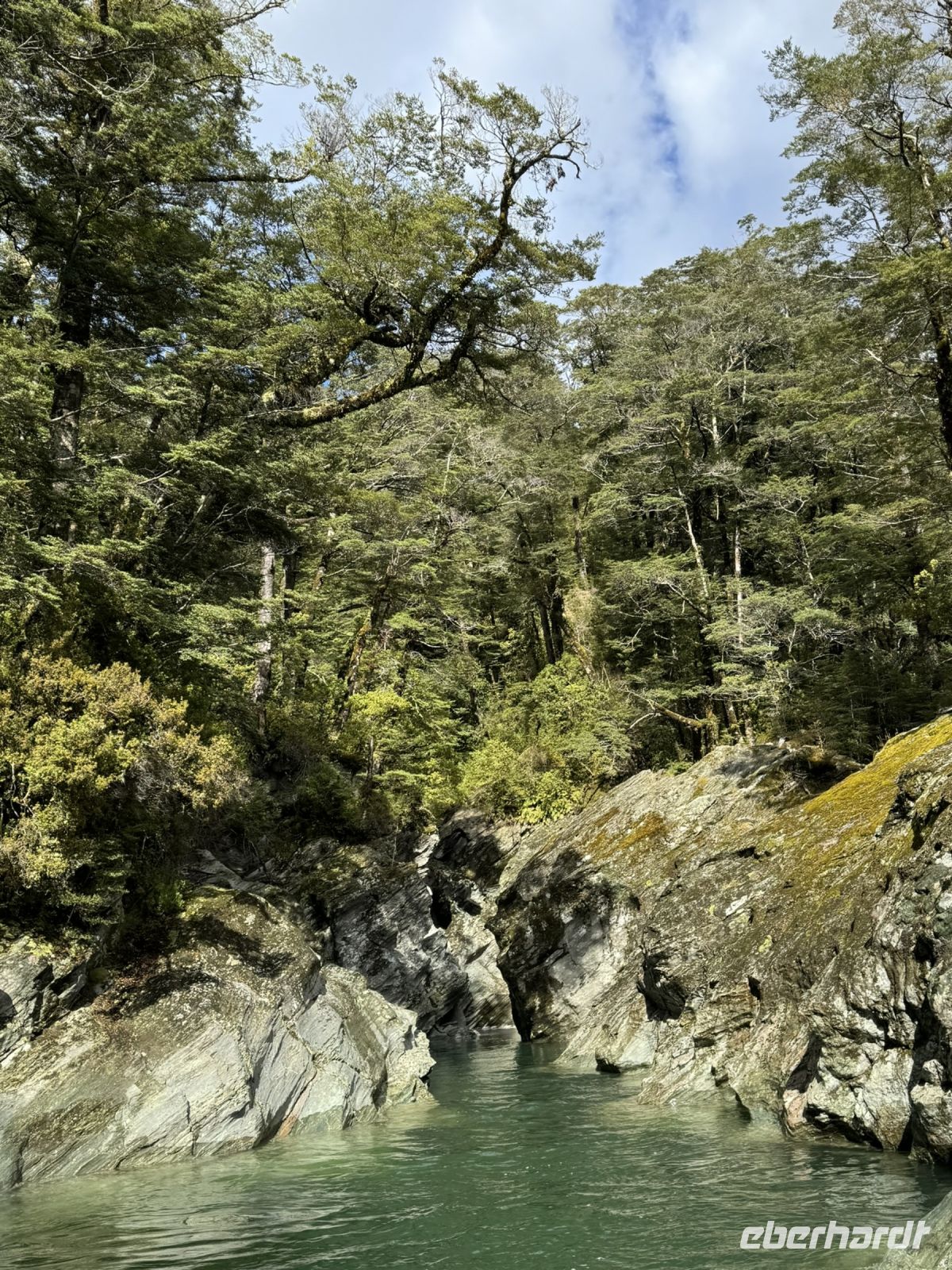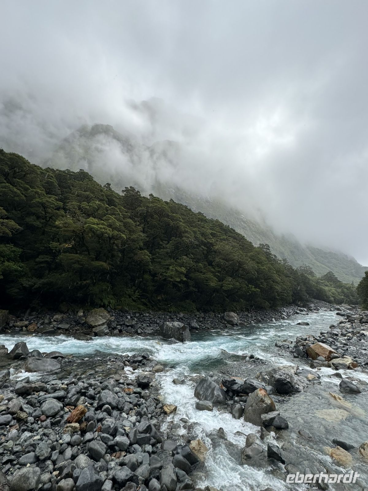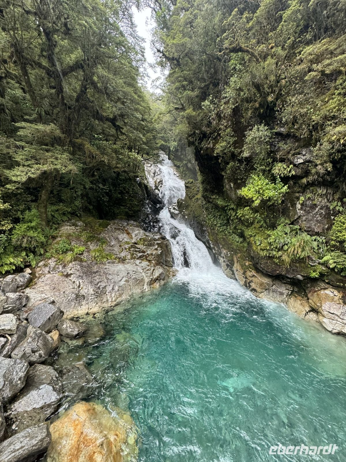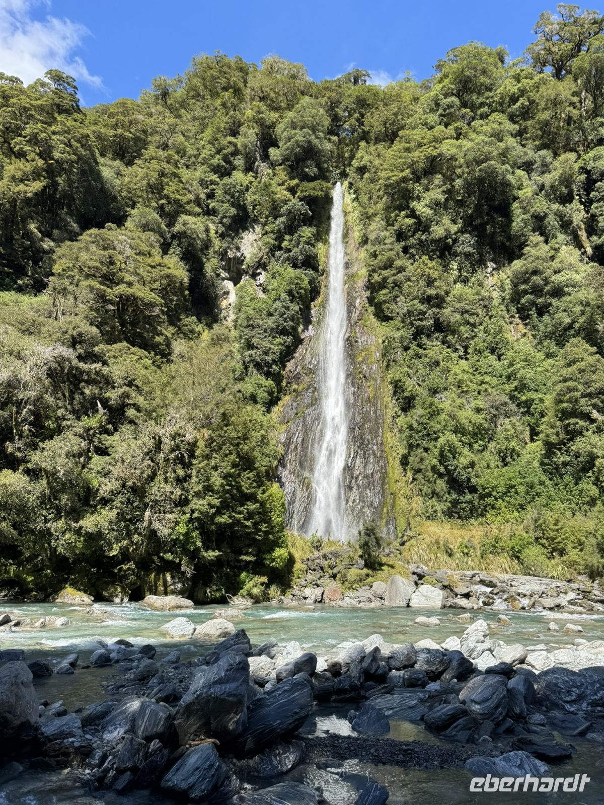 Am Morgen begrüßte uns ein wunderschöner Regenbogen am Himmel, während wir gemächlich und entspannt auf Panoramastraßen Richtung Milford Sound fuhren. Unterwegs machten wir einige Fotostopps, darunter im Eglinton Valley mit seinem imposanten Bergpanorama im Hintergrund. Dort besuchten wir auch den Spiegel-See. Obwohl es im Hollyford Valley regnete, konnten wir dennoch wunderschöne Wasserfälle sehen. Am Monkey Creek riefen wir nach den Keas, aber sie schienen noch beim Frühstück zu sein. Im The Chasm machten wir einen Spaziergang durch den Wald.