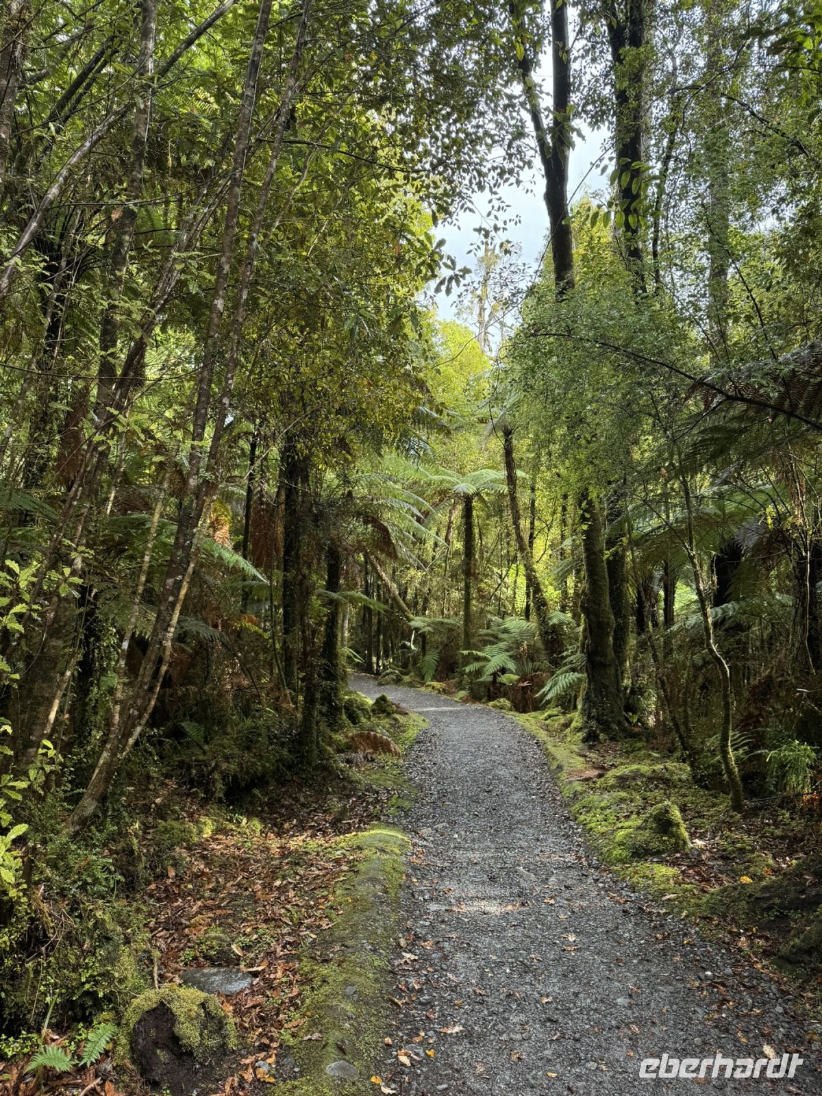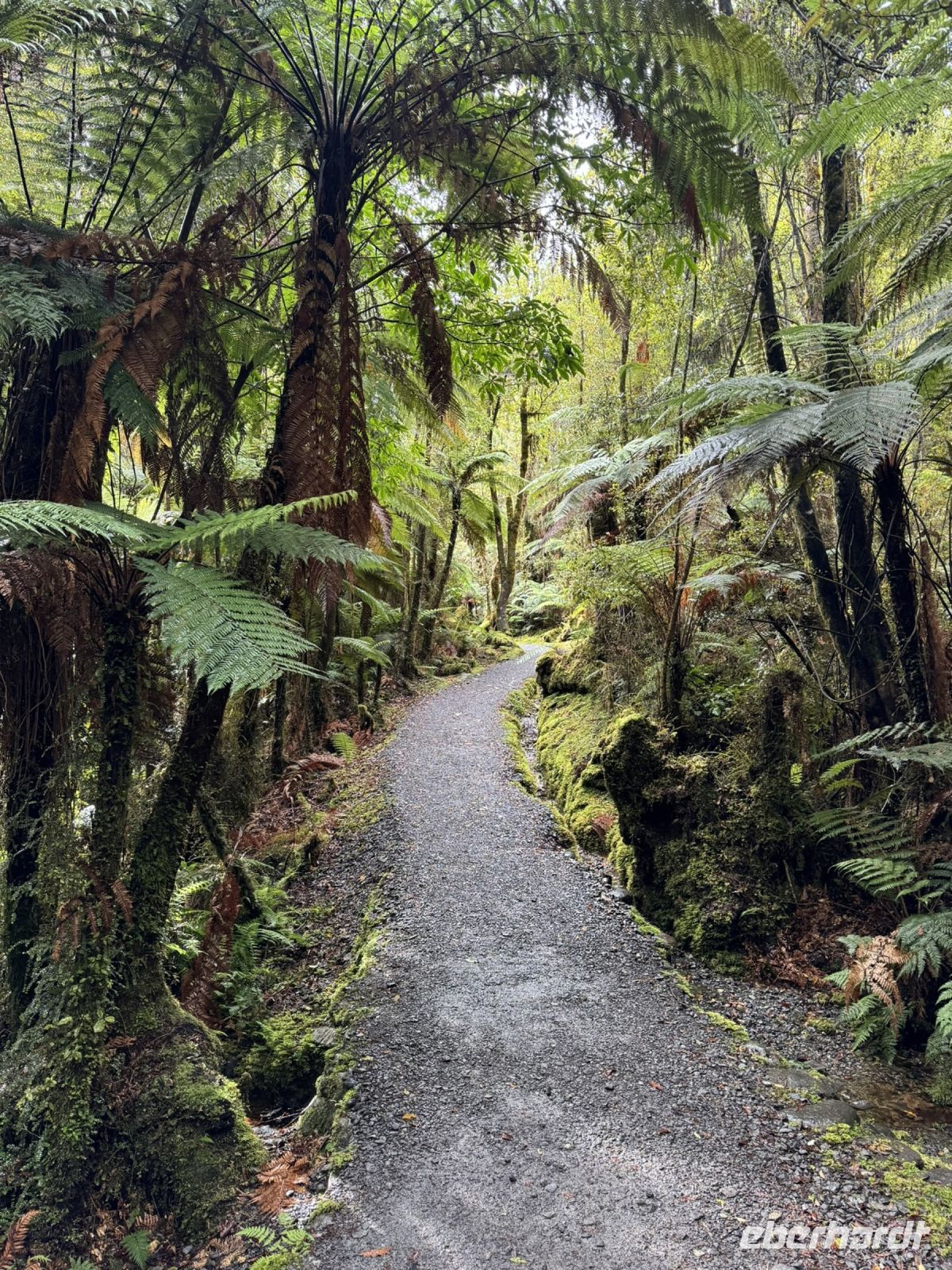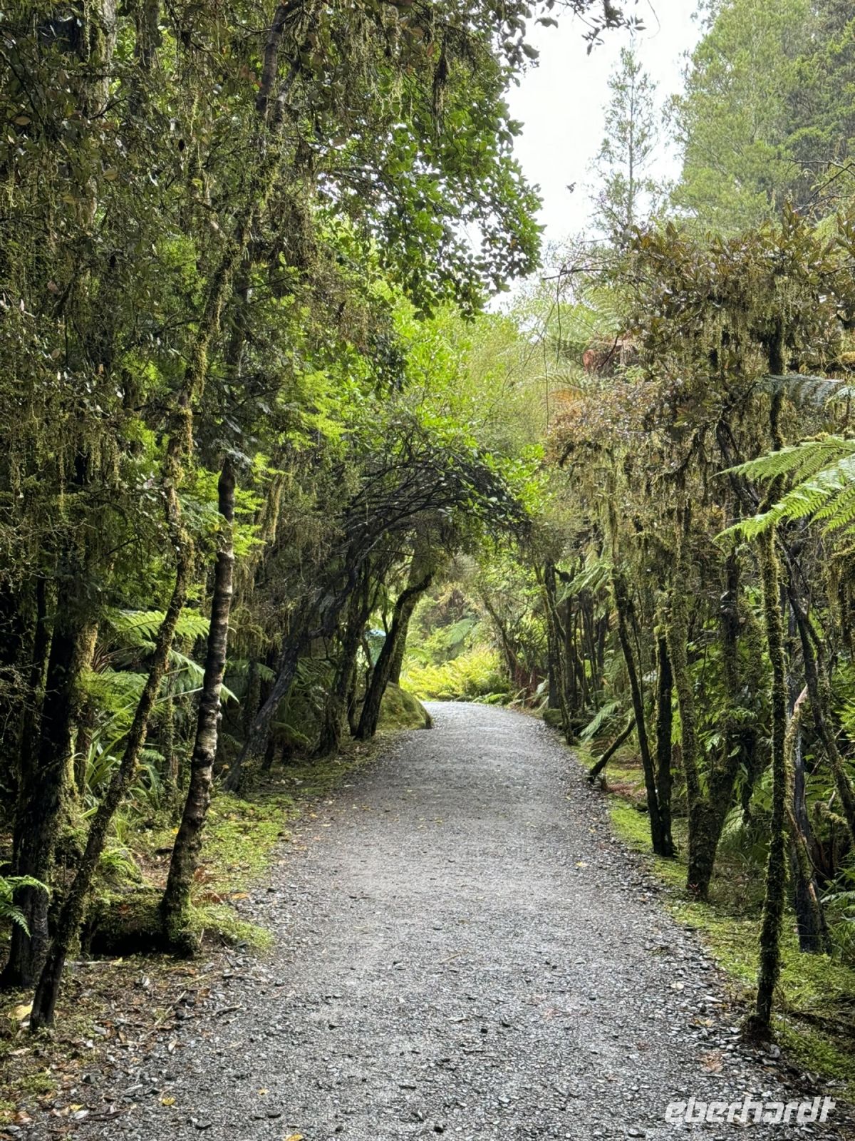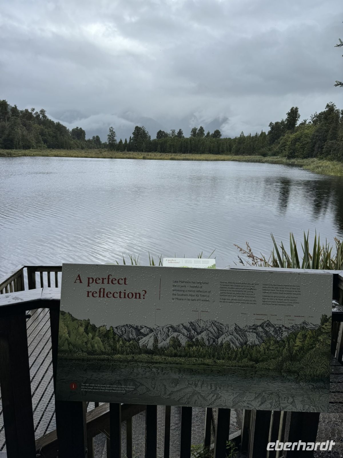 Beim Lake Lanthe machten wir einen Fotostopp bevor wir in Franz Josef ankammen. Leider hat es geregnet und wir mussten unsere Pläne ändern. Aber erstmal hatten wir unsere Mittagspause und danach sahen wir ein tolles Video über den Westland Nationalpark. So erkannten wir besser, alles was vor unsere Augen kam.