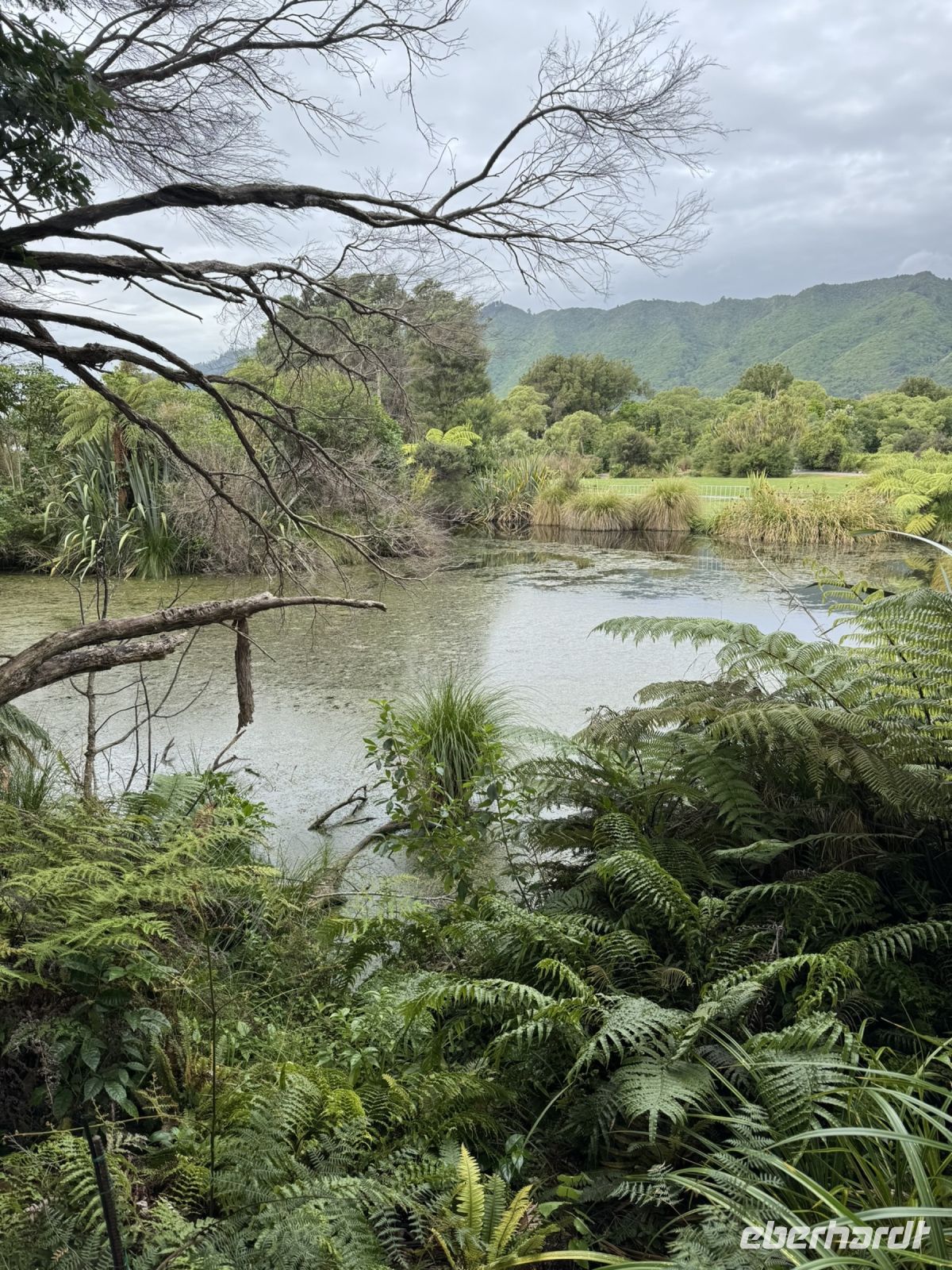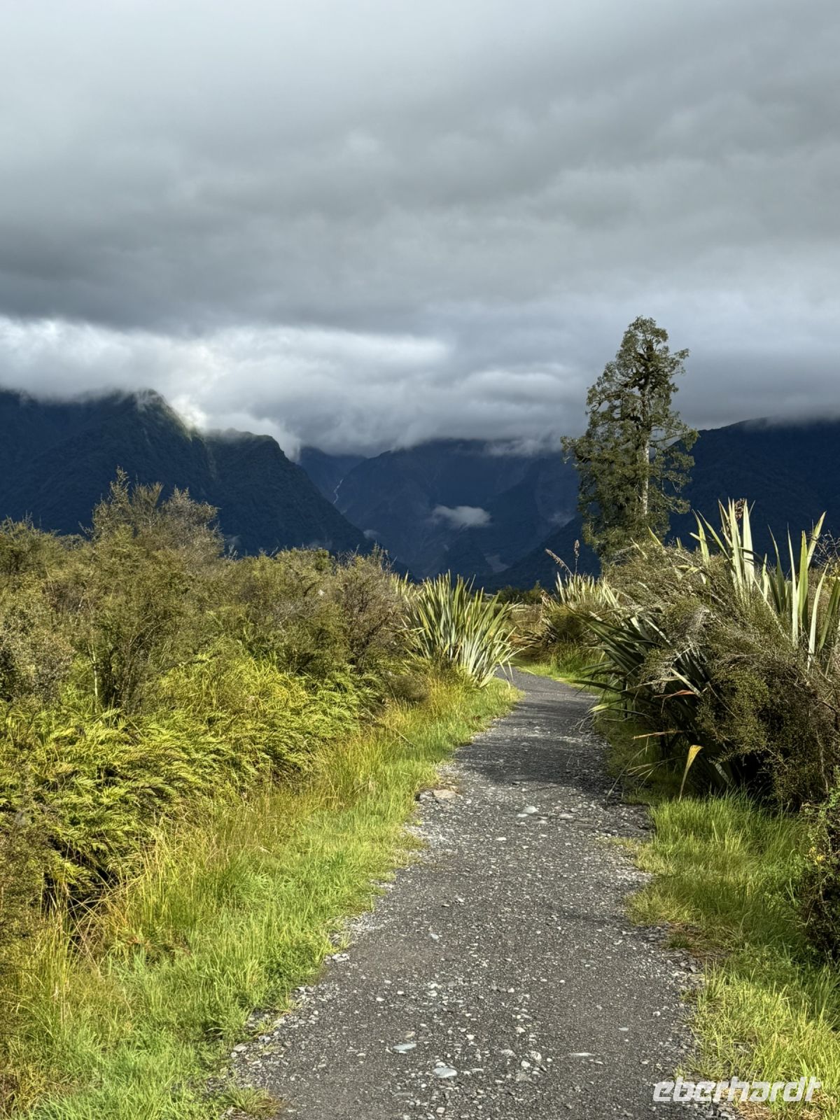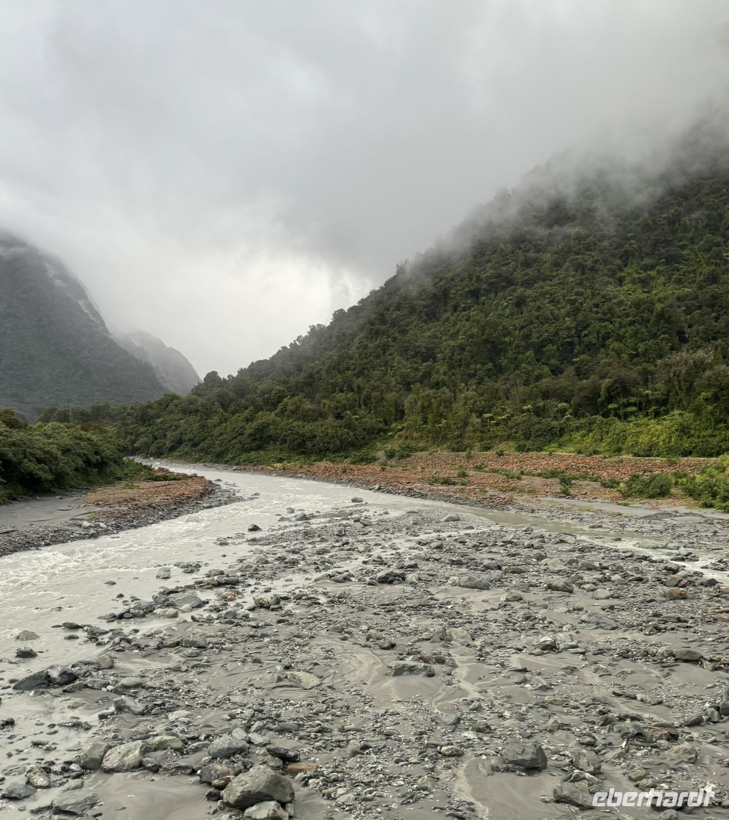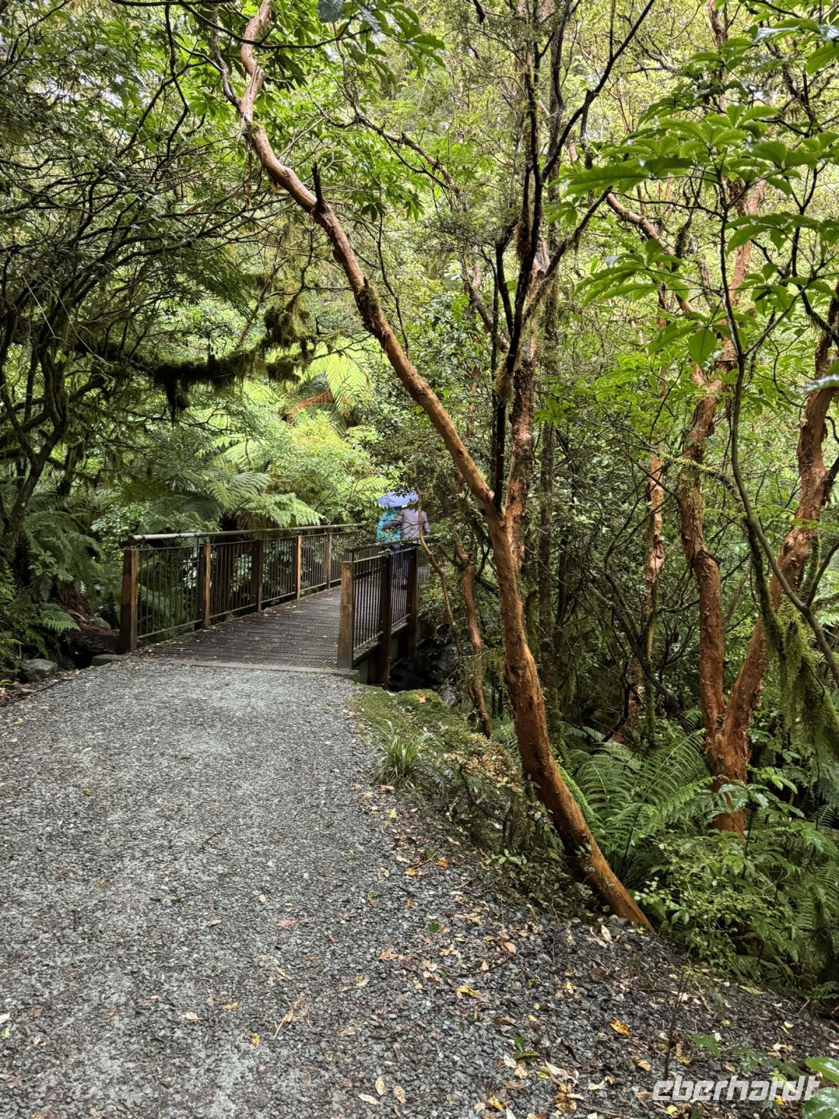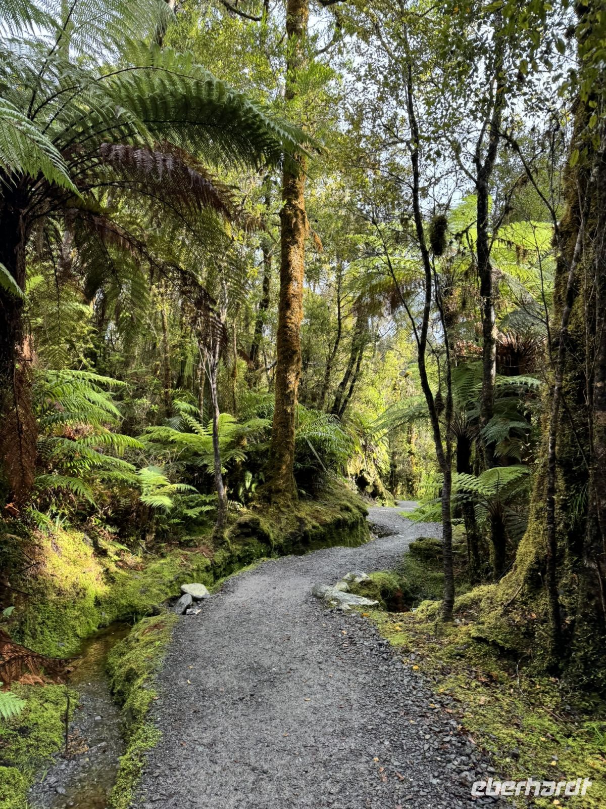 Beim Lake Lanthe machten wir einen Fotostopp bevor wir in Franz Josef ankammen. Leider hat es geregnet und wir mussten unsere Pläne ändern. Aber erstmal hatten wir unsere Mittagspause und danach sahen wir ein tolles Video über den Westland Nationalpark. So erkannten wir besser, alles was vor unsere Augen kam.