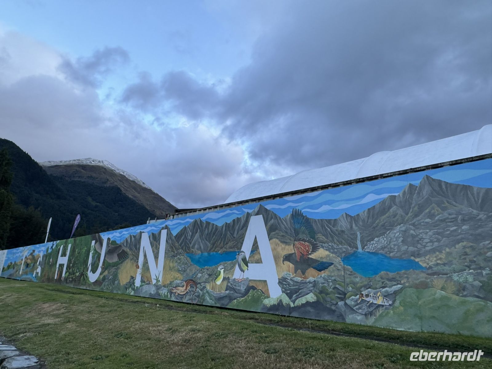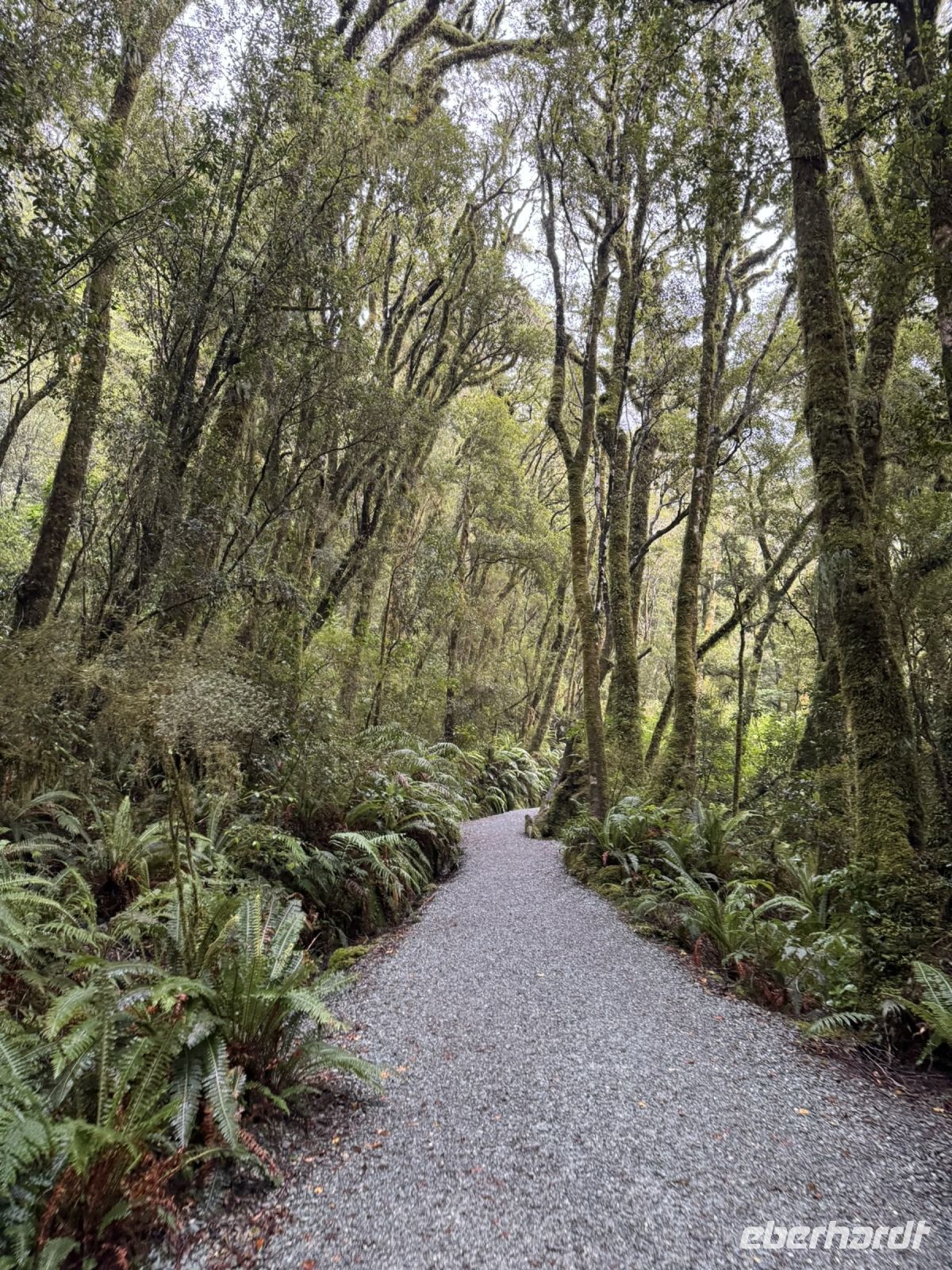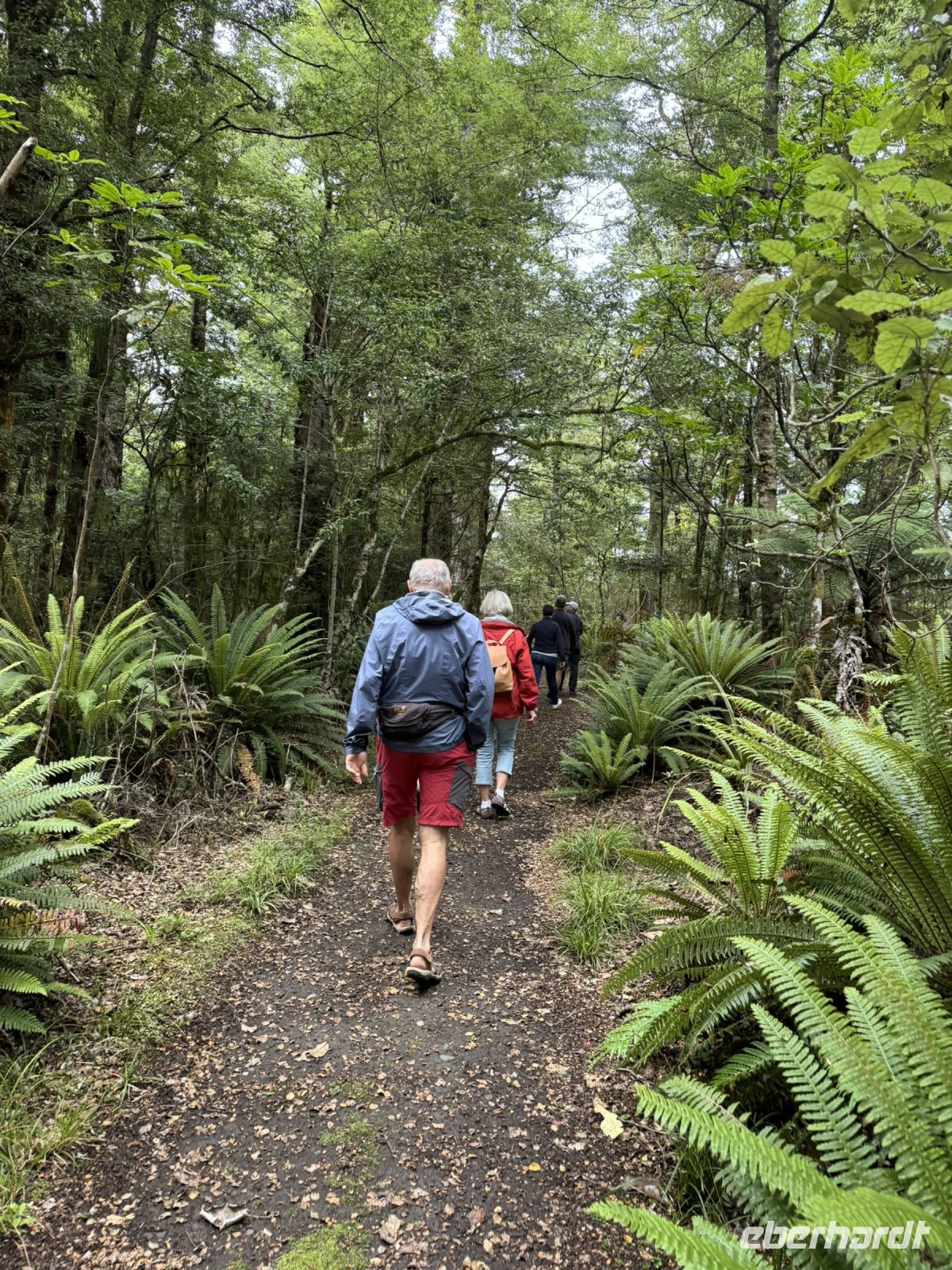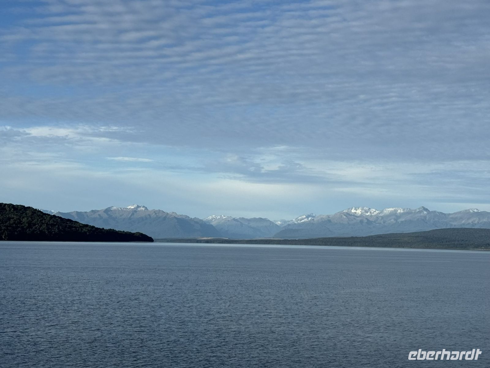 An diesem Tag verließen wir die Stadt Queenstown und überquerten den See bis zum Südteil. Dort befindet sich Kingston mit seinen schönen Aussichten zum See und den Bergen. Ein Stück weiter unten fanden wir Garston, wo wir eine Pause einlegten. Wir durchquerten ein kleines Naturschutzgebiet, in dem das Bültengras immer noch wächst. Das schöne Panorama mit dem Grün, den Schafen und den schneebedeckten Bergen faszinierte uns. Wir hielten in Manapouri direkt am See und genossen unsere Mittagspause mit schöner Aussicht und der Ruhe der Natur. Danach wanderten wir den Kepler Track entlang, überquerten eine Holzhängebrücke und gingen durch einen Wald mit Pilzen und weichem, moosbedecktem Boden. Der Weg führte uns mit kleinen Höhenunterschieden entlang des Flusses, mal war es etwas dunkel, mal feucht und singende Vögel waren zu hören. Eine Szene aus „Herr der Ringe“ wurde hier gedreht, ganz spezifisch der letzte Moment des ersten Films. In Te Anau angekommen, sind wir zuerst ins Hotel gefahren und dann in die Stadt zum Abendessen gegangen, bevor wir die Glühwürmchen beobachteten. Wir fuhren mit dem Boot über den Te Anau See zu einer Insel mit großartigen Aussichten auf die Berge. Als wir ankamen, gingen wir mit Harry in die Höhle und fanden die ersten Glühwürmchen. Die Höhle ist nur etwa 12.000 Jahre alt, das ist geologisch gesehen noch sehr jung, deshalb kann man dort keine Stalaktiten oder Stalagmiten finden. In der Höhle angekommen, haben wir die Kraft des Dart River gesehen, sowie die schönen Wasserfälle. Wir stiegen in kleine Boote um und fuhren durch die Höhle, wird fanden viele Glühwürmchen an der Höhlendecke. Anschließend sahen wir eine Video-Erklärung über das Leben der Glühwürmchen mit einer Tasse heißer Schokolade oder Tee, bevor wir zurückfuhren. Nach diesem schönen Erlebnis spazierten wir am Ufer des Sees entlang zu unserem Motel.