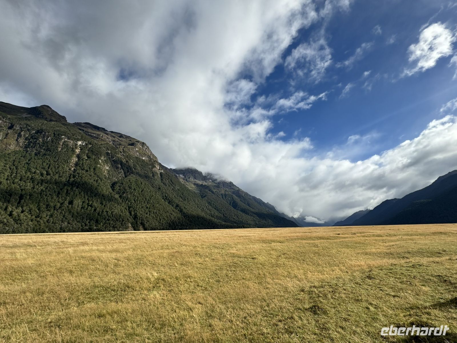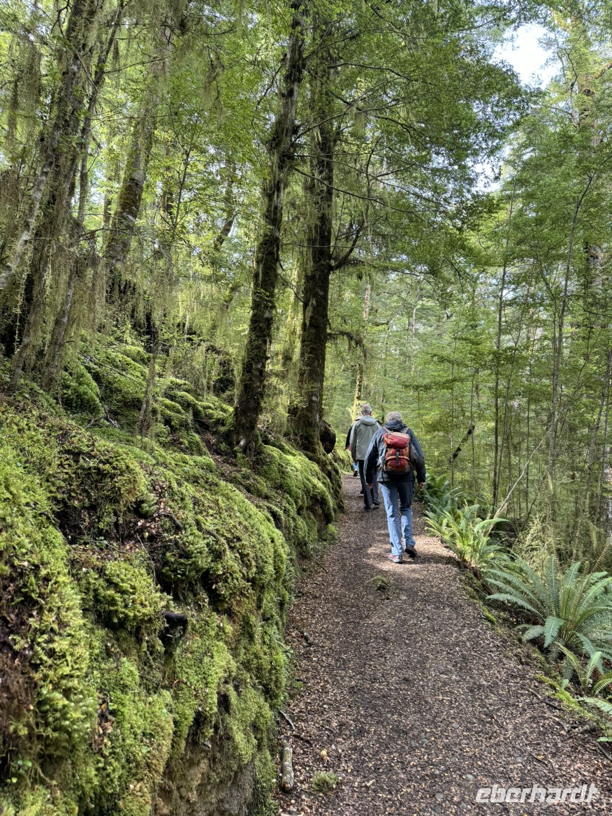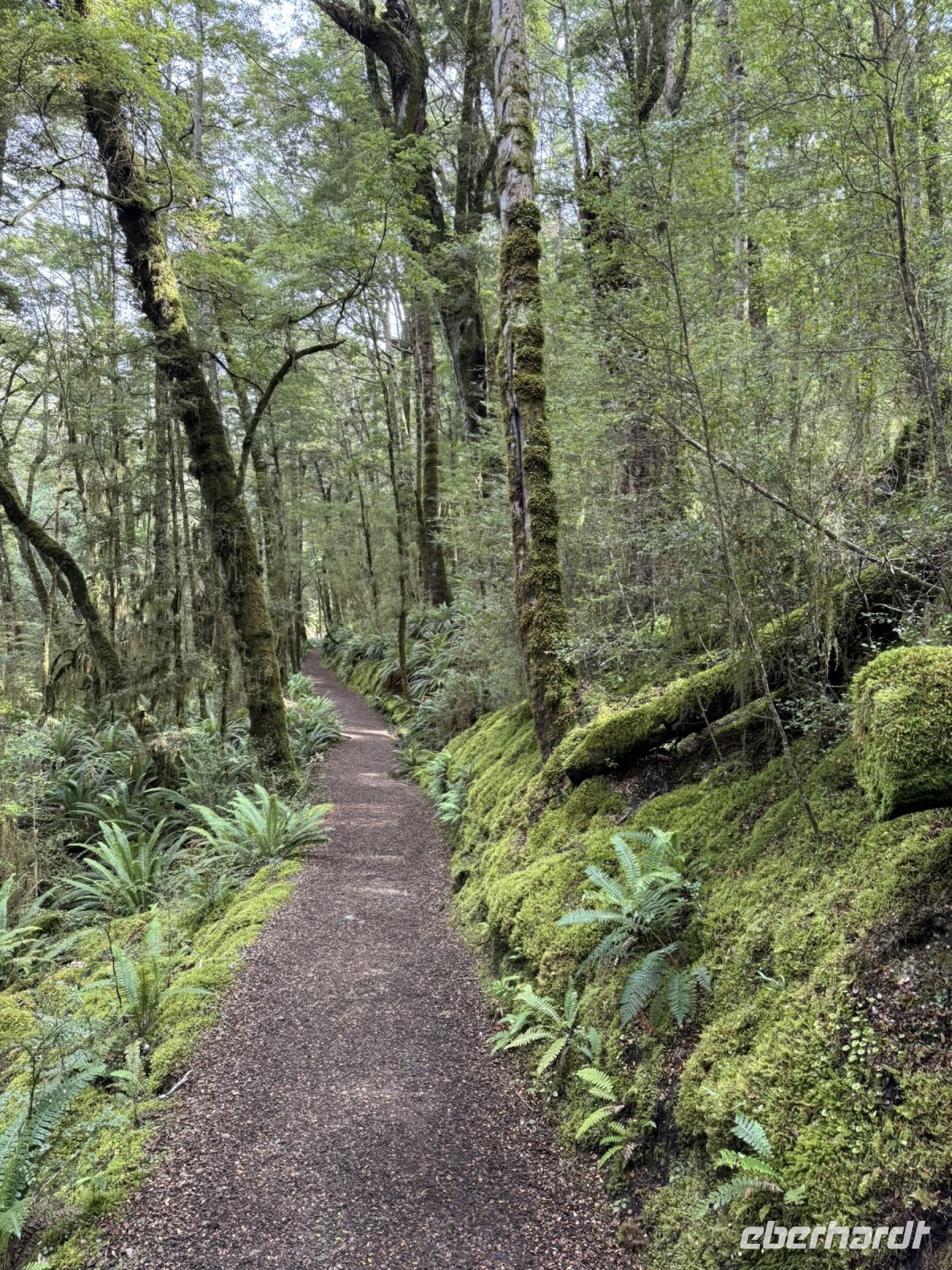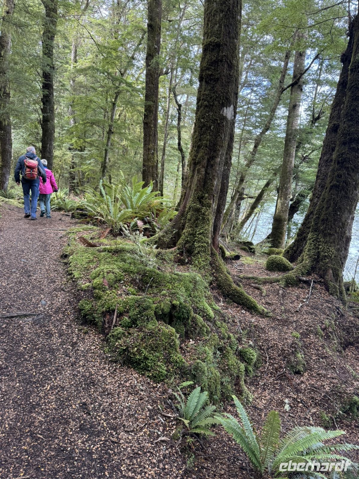 An diesem Tag verließen wir die Stadt Queenstown und überquerten den See bis zum Südteil. Dort befindet sich Kingston mit seinen schönen Aussichten zum See und den Bergen. Ein Stück weiter unten fanden wir Garston, wo wir eine Pause einlegten. Wir durchquerten ein kleines Naturschutzgebiet, in dem das Bültengras immer noch wächst. Das schöne Panorama mit dem Grün, den Schafen und den schneebedeckten Bergen faszinierte uns. Wir hielten in Manapouri direkt am See und genossen unsere Mittagspause mit schöner Aussicht und der Ruhe der Natur. Danach wanderten wir den Kepler Track entlang, überquerten eine Holzhängebrücke und gingen durch einen Wald mit Pilzen und weichem, moosbedecktem Boden. Der Weg führte uns mit kleinen Höhenunterschieden entlang des Flusses, mal war es etwas dunkel, mal feucht und singende Vögel waren zu hören. Eine Szene aus „Herr der Ringe“ wurde hier gedreht, ganz spezifisch der letzte Moment des ersten Films. In Te Anau angekommen, sind wir zuerst ins Hotel gefahren und dann in die Stadt zum Abendessen gegangen, bevor wir die Glühwürmchen beobachteten. Wir fuhren mit dem Boot über den Te Anau See zu einer Insel mit großartigen Aussichten auf die Berge. Als wir ankamen, gingen wir mit Harry in die Höhle und fanden die ersten Glühwürmchen. Die Höhle ist nur etwa 12.000 Jahre alt, das ist geologisch gesehen noch sehr jung, deshalb kann man dort keine Stalaktiten oder Stalagmiten finden. In der Höhle angekommen, haben wir die Kraft des Dart River gesehen, sowie die schönen Wasserfälle. Wir stiegen in kleine Boote um und fuhren durch die Höhle, wird fanden viele Glühwürmchen an der Höhlendecke. Anschließend sahen wir eine Video-Erklärung über das Leben der Glühwürmchen mit einer Tasse heißer Schokolade oder Tee, bevor wir zurückfuhren. Nach diesem schönen Erlebnis spazierten wir am Ufer des Sees entlang zu unserem Motel.
