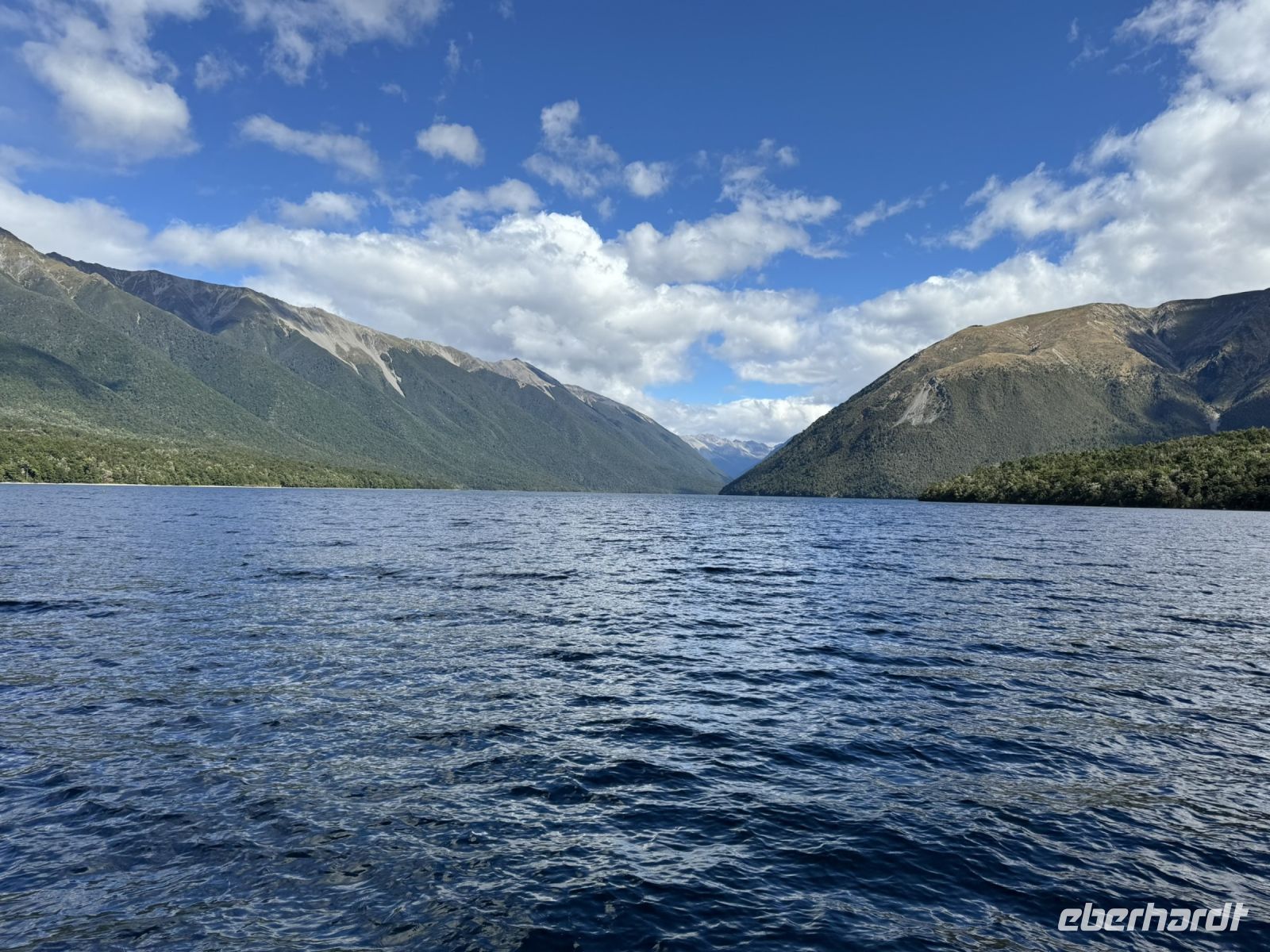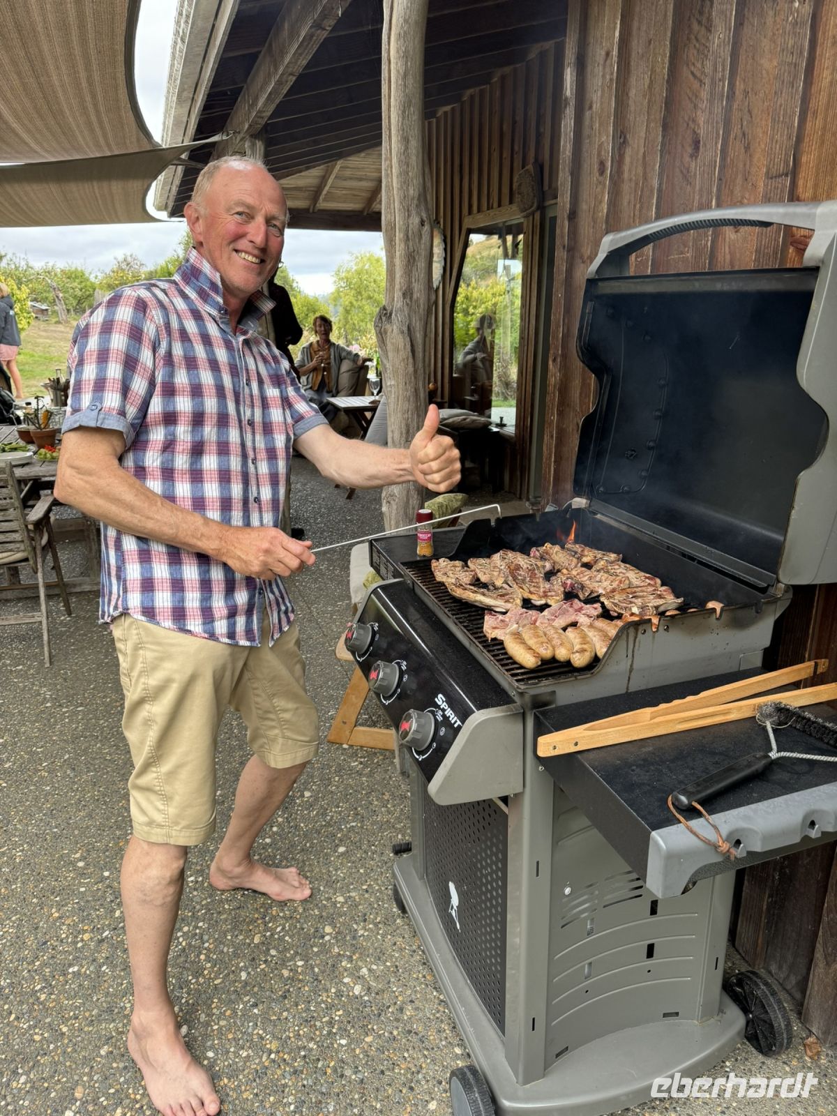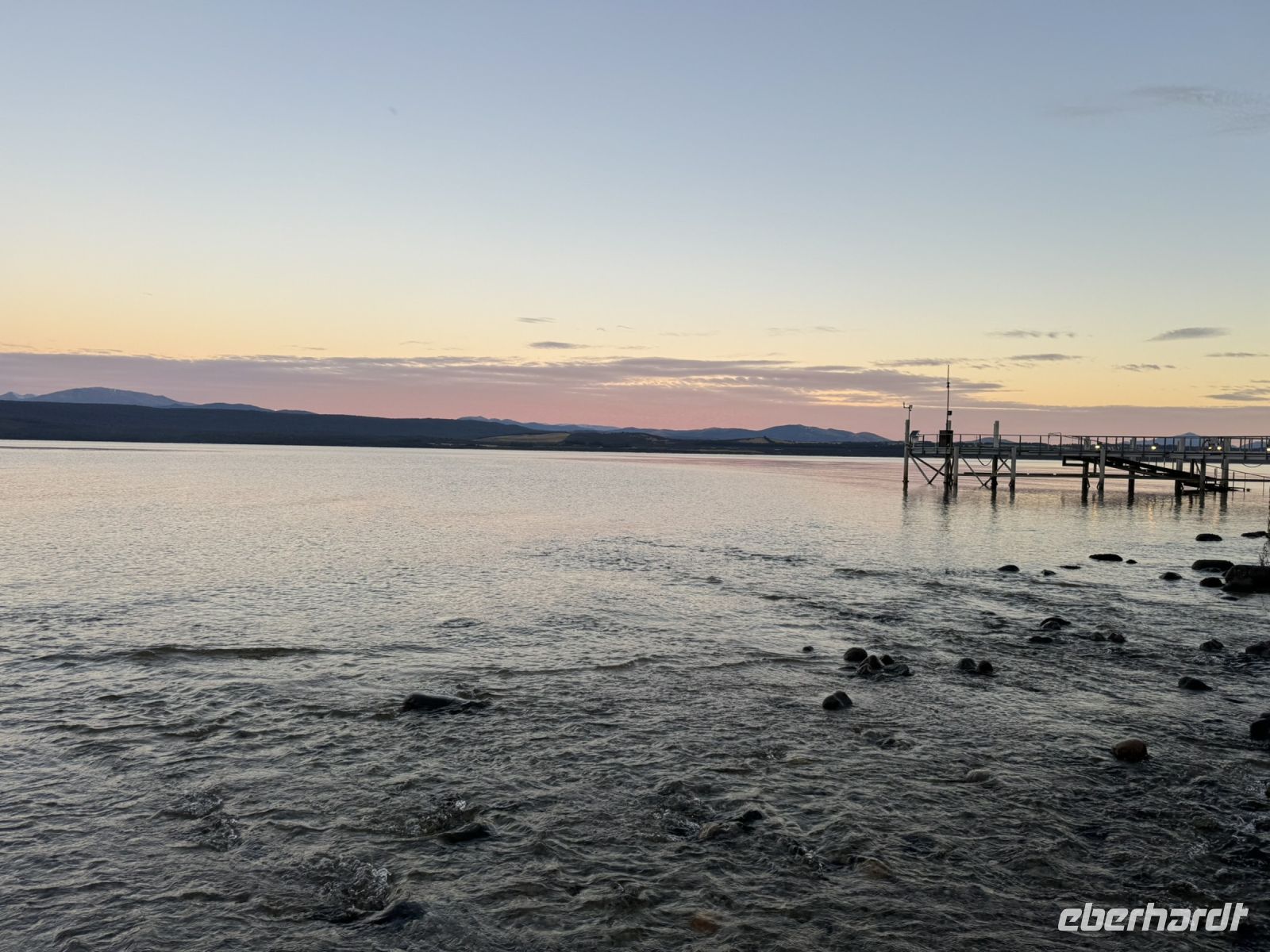 Wir sind relativ früh aufgebrochen, trotz einiger Wolken und Regen, aber unsere Reise geht weiter. Wir freuen uns auf die Südinsel! Unterwegs überquerten wir die Cook-Straße und den Tory-Kanal nach Picton. Als wir in Picton ankamen, fuhren wir durch die Weinregion Marlborough, wobei 74% des produzierten Weins aus Sauvignon Blanc besteht, obwohl auch andere Rebsorten zu finden sind. Es handelt sich um ein großes flaches Tal, das etwa 70 km lang ist. Sogar die Erntesaison hat in dieser Region bereits begonnen. In diesem Tal machten wir unsere Mittagspause und besuchten die Weinkellerei Forrest. Manuela erzählte uns die Geschichte der Weinkellerei und erklärte uns den Prozess der Weinherstellung, während wir verschiedene Weine probierten. Natürlich durften wir auch an einer Weinverkostung teilnehmen! Wir probierten Sauvignon Blanc, Riesling und Pinot Noir. Nach dem Besuch im Wein-Tal kamen wir in St. Arnaud an, direkt am Nelson Lake, den wir ausgiebig fotografierten. Anschließend genossen wir einen Grillabend im Haus von Bernd, der uns sein Landhaus zeigte und ein köstliches Essen für uns zubereitete. Wir lernten seine Frau Ulrike und die 25 Schafe kennen, sahen den Gemüsegarten und die Obstplantage und begannen mit einer wunderschönen Vorspeise aus seinem Gemüsegarten gefolgt von leckerem Lamm als Hauptgang. Es war wirklich ein Erlebnis, das wir sehr genossen haben! Vielen Dank an Bernd für seine Gastfreundschaft!